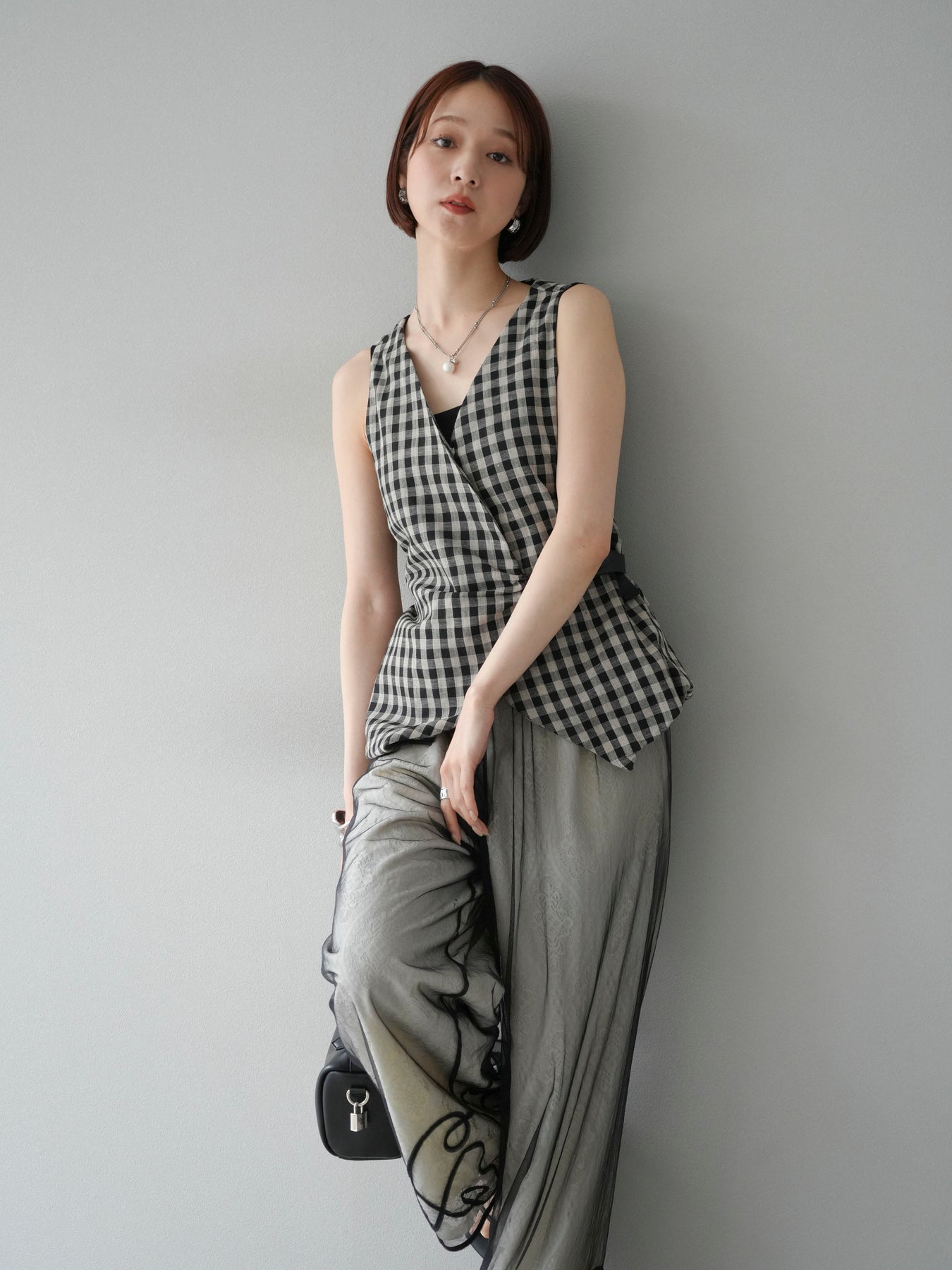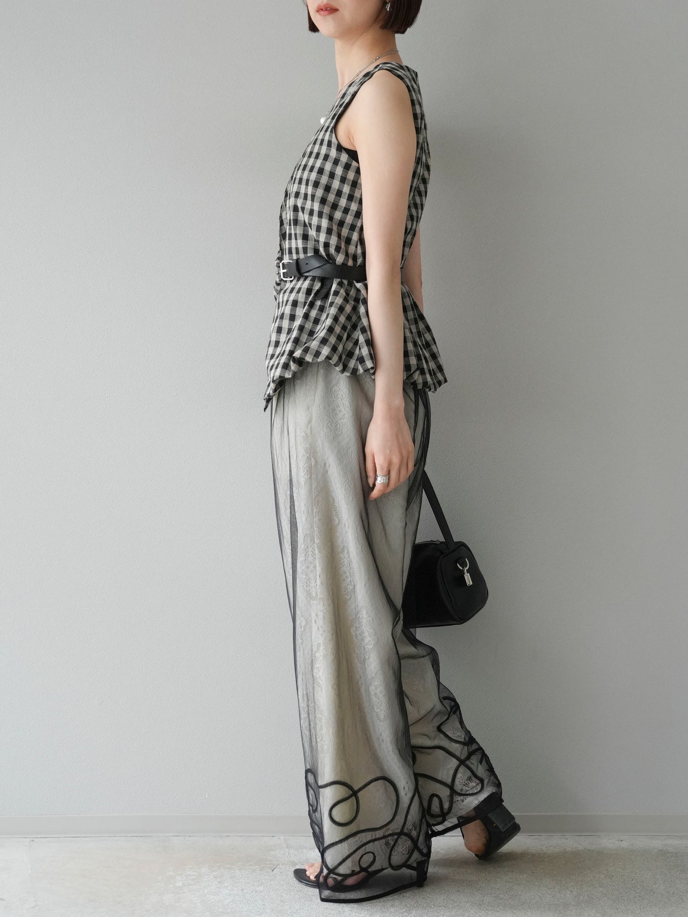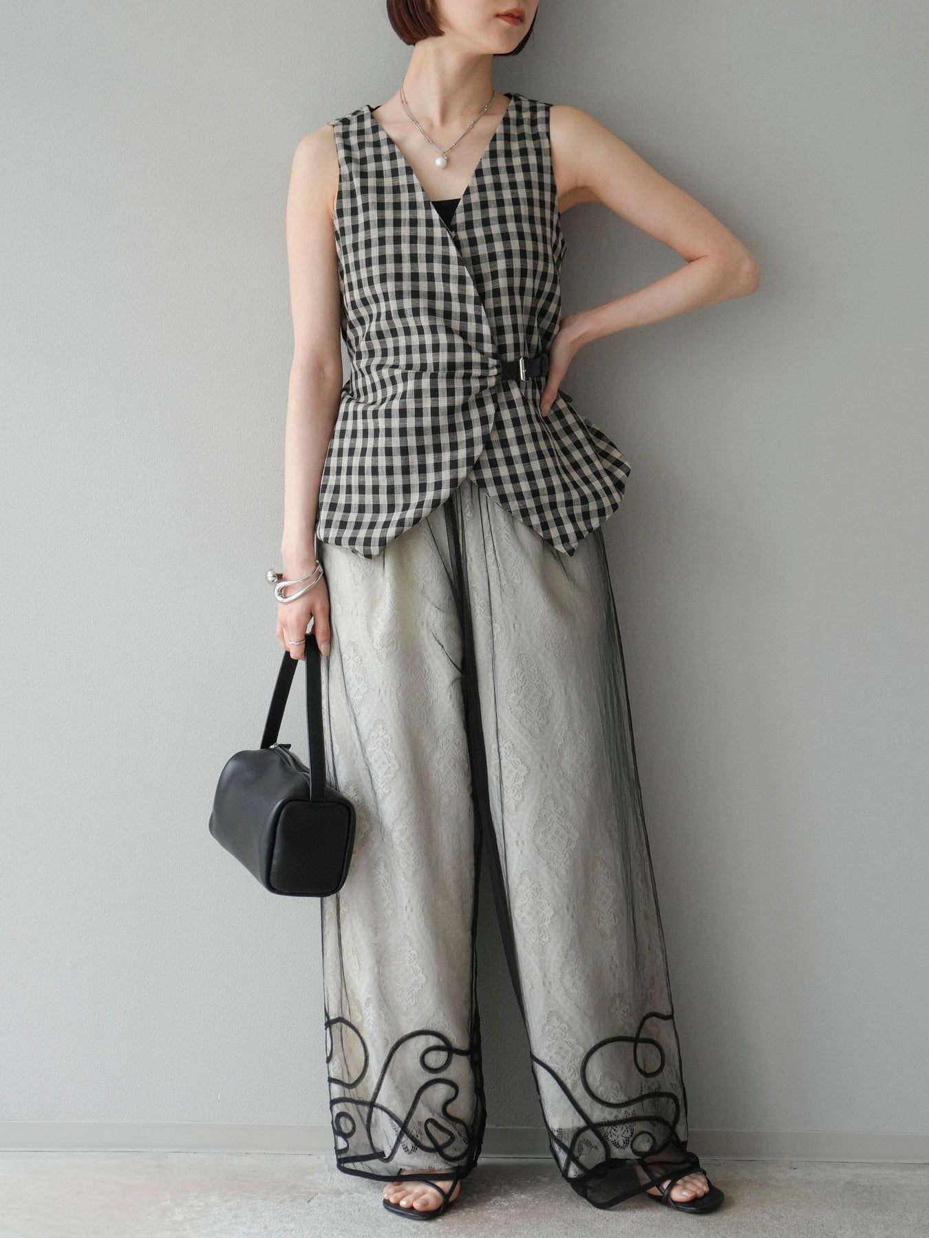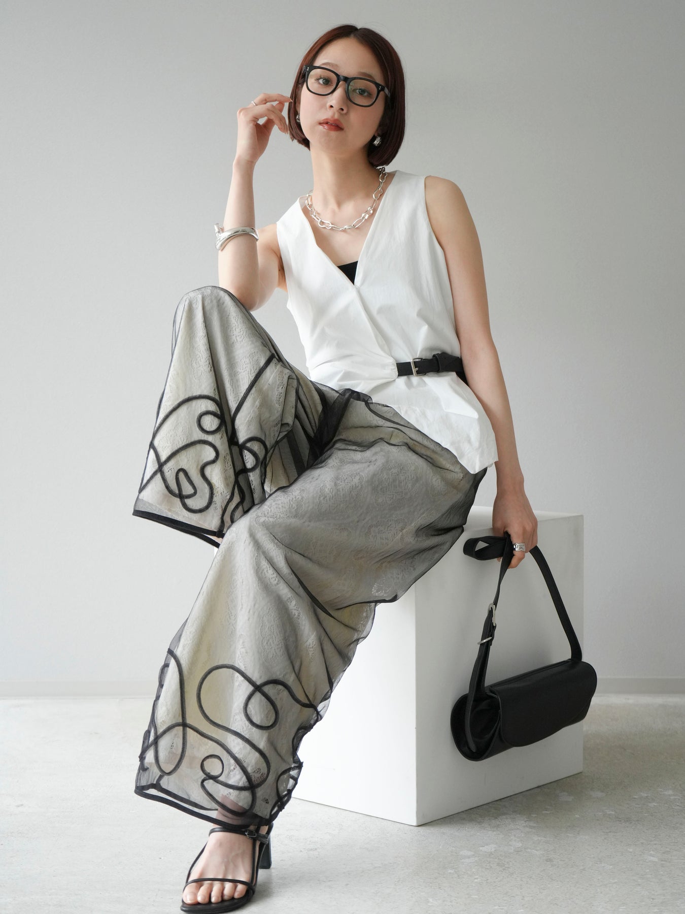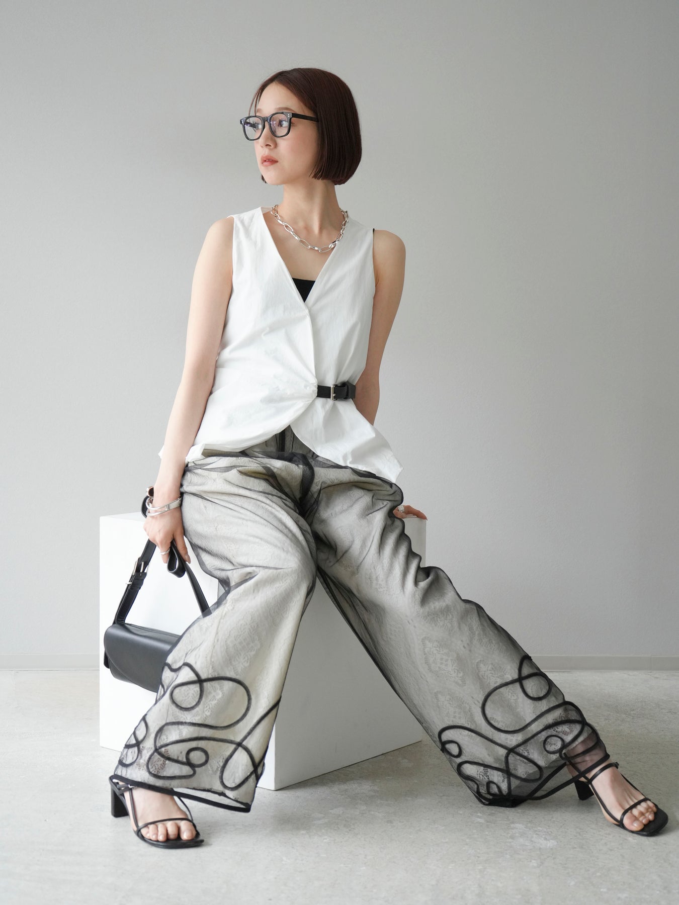 ◆ [予約]コード刺繍チュールレイヤードパンツ
