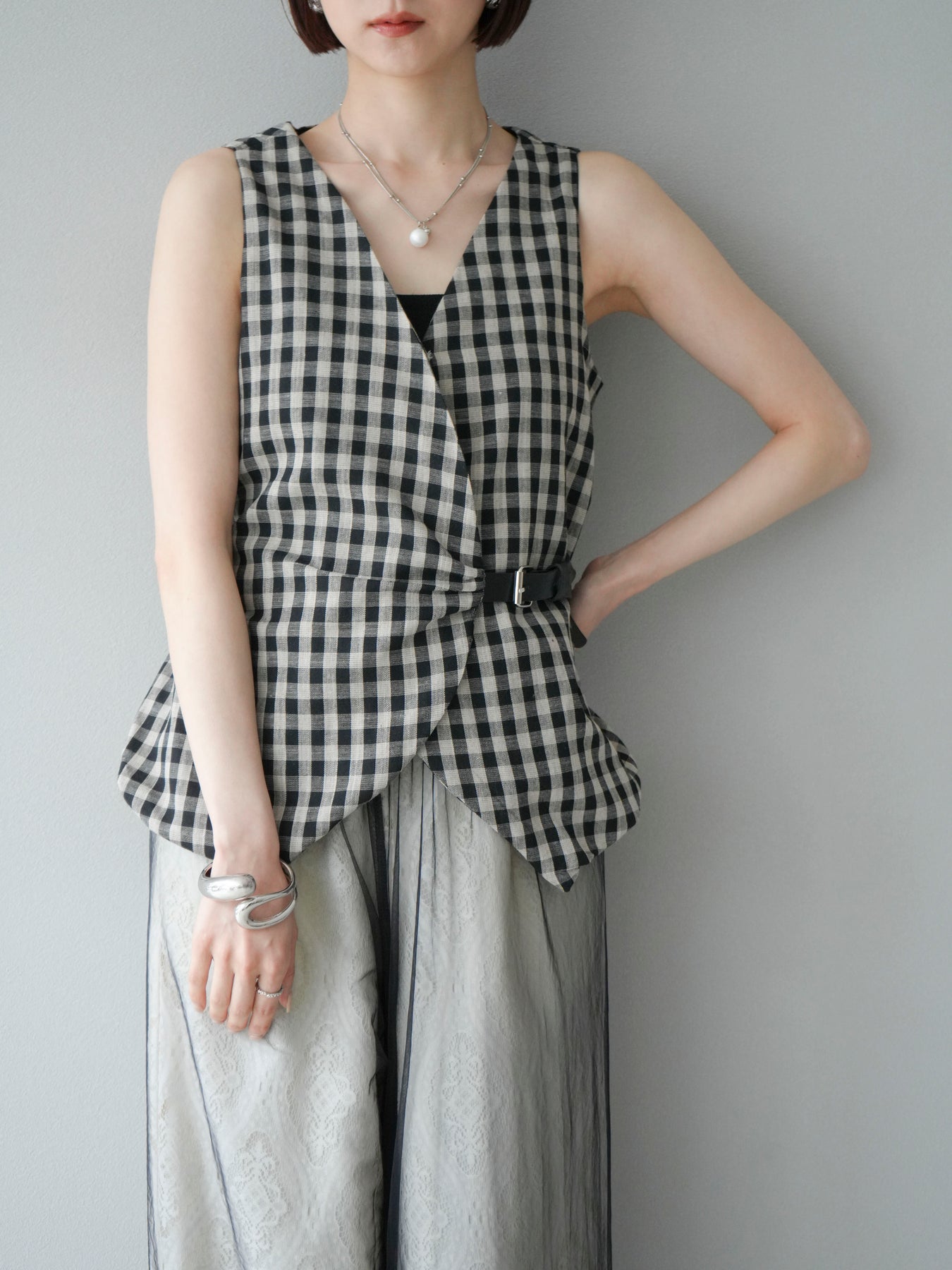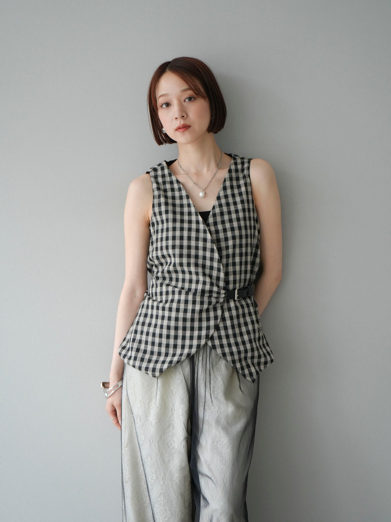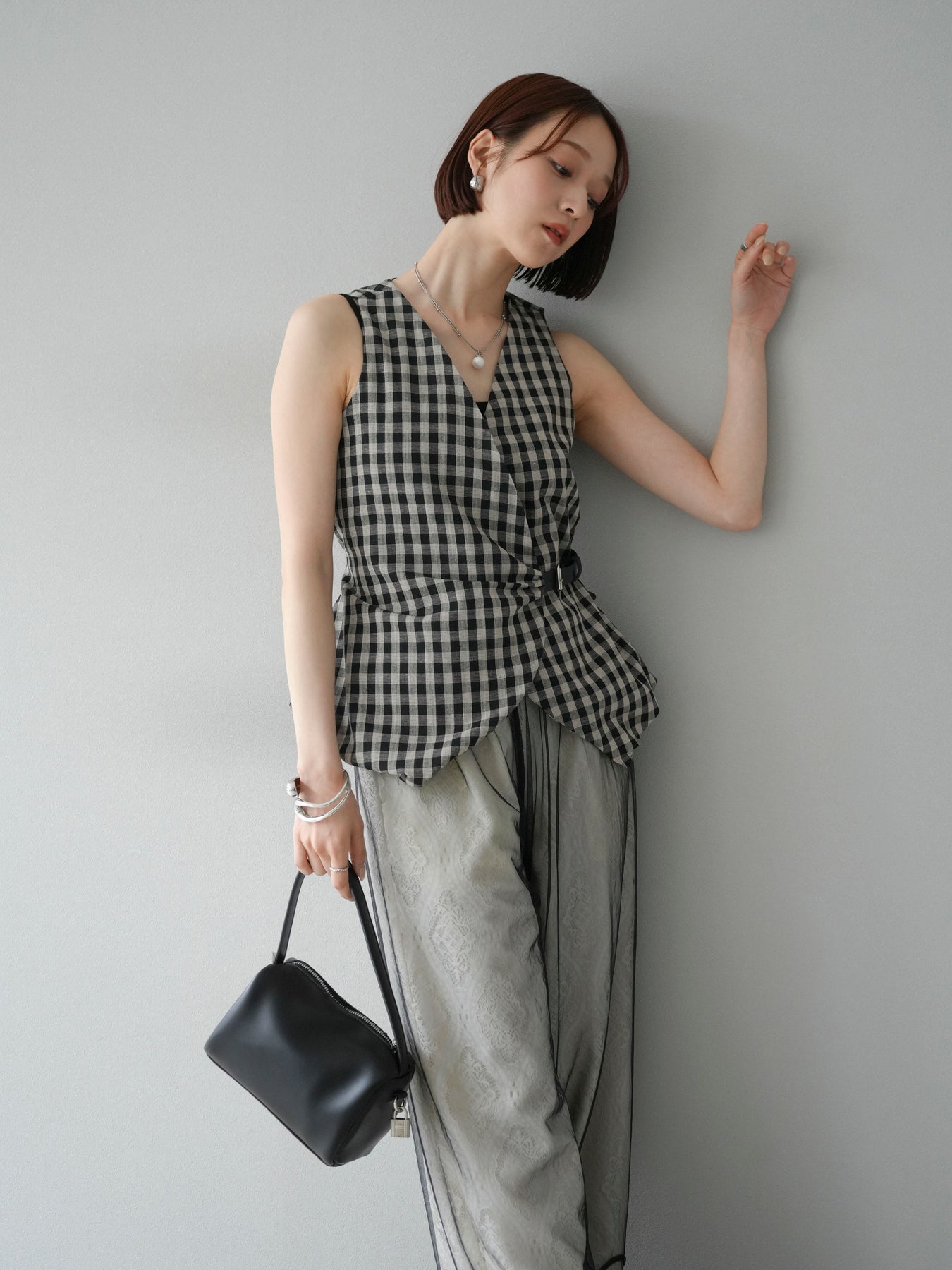 [SET]ベルトデザインバルーンブラウス+レースタックイージーパンツ+コード刺繍チュールレイヤードパンツ(3set)