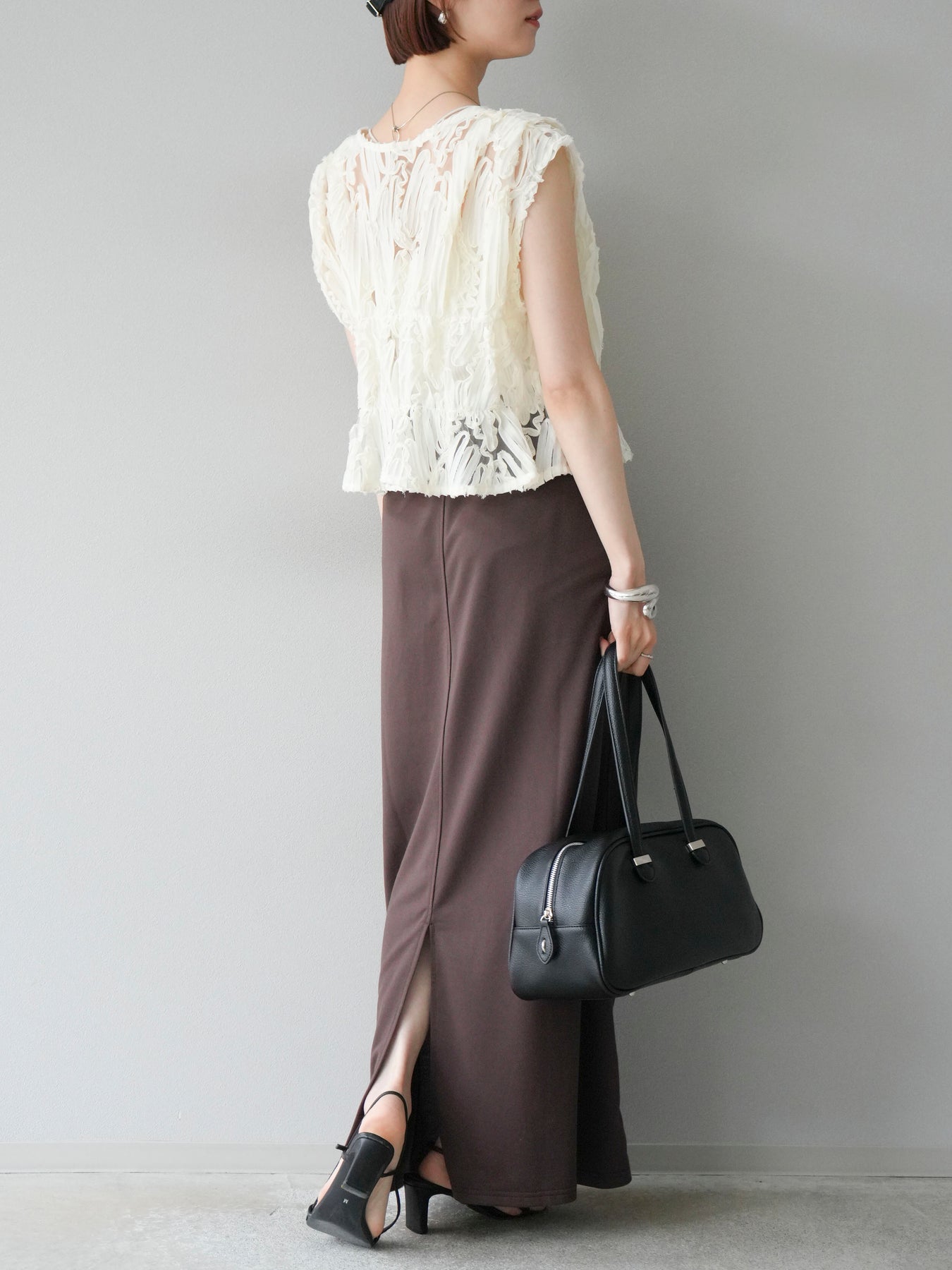 [SET]ジャガードレースリボントップス+スウェットロングスカート(2set)