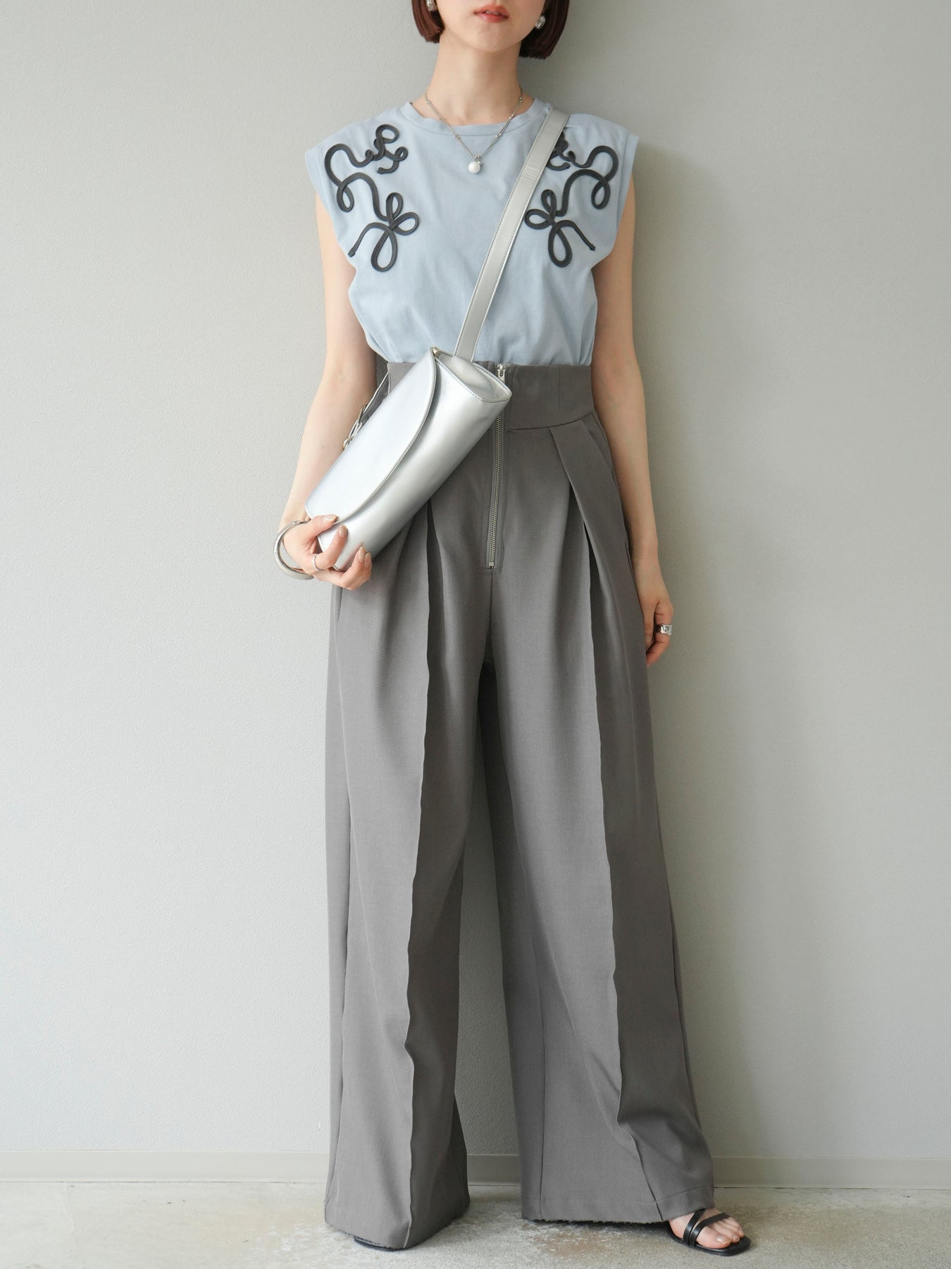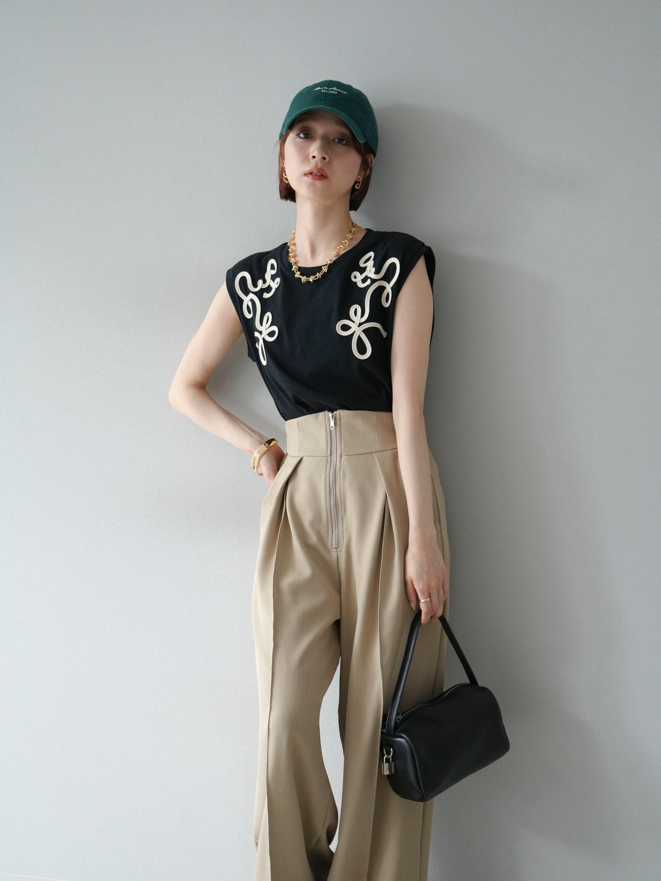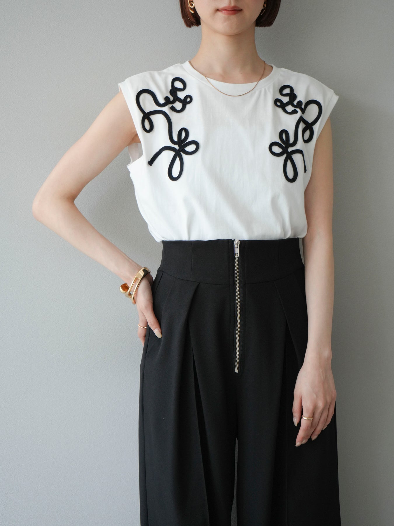 ◆ [予約]コード刺繍フレンチスリーブTシャツ