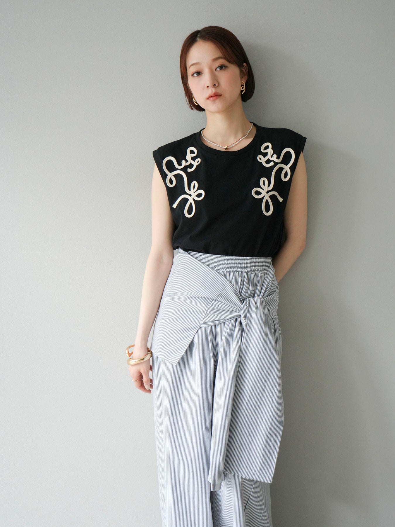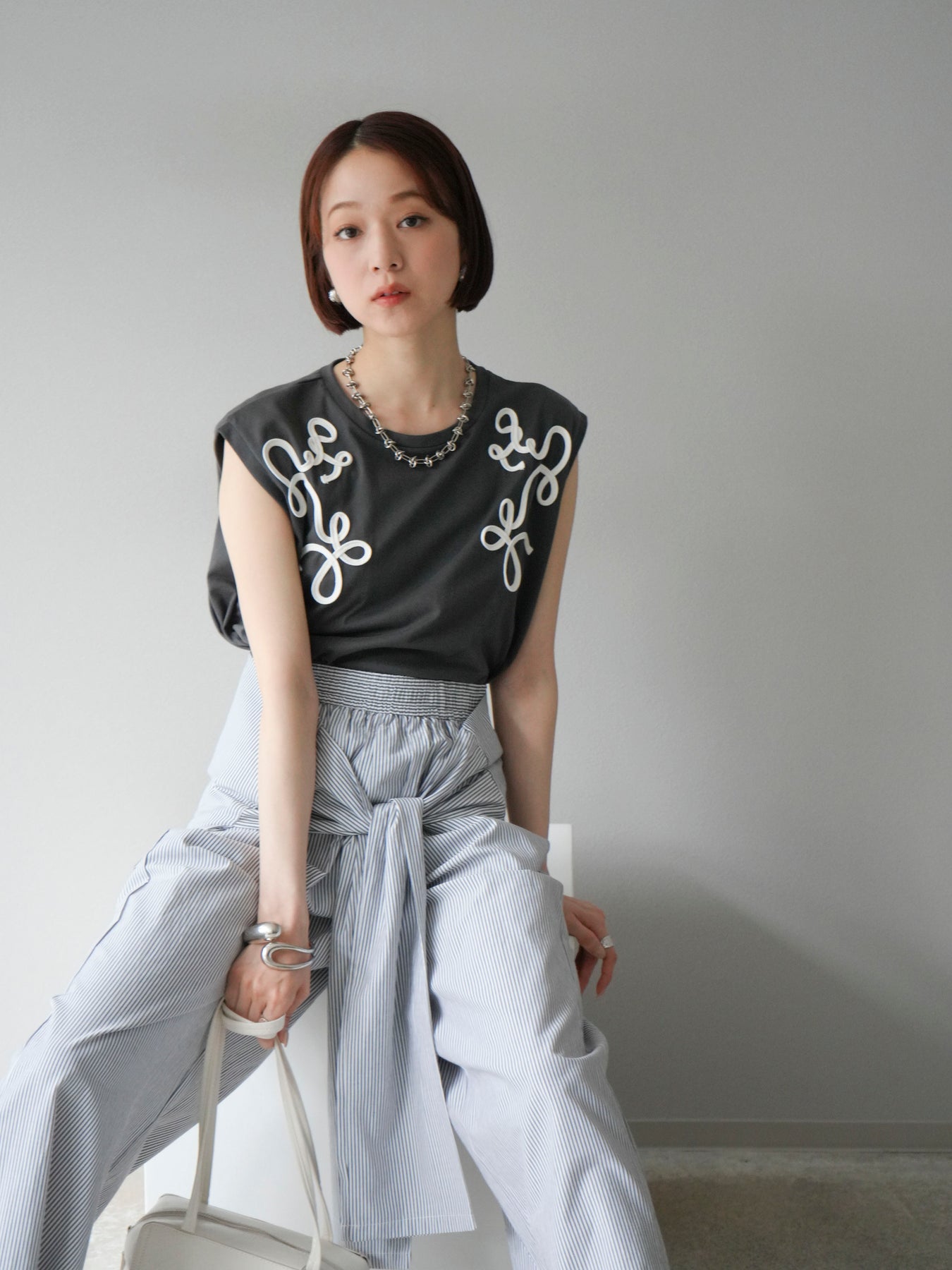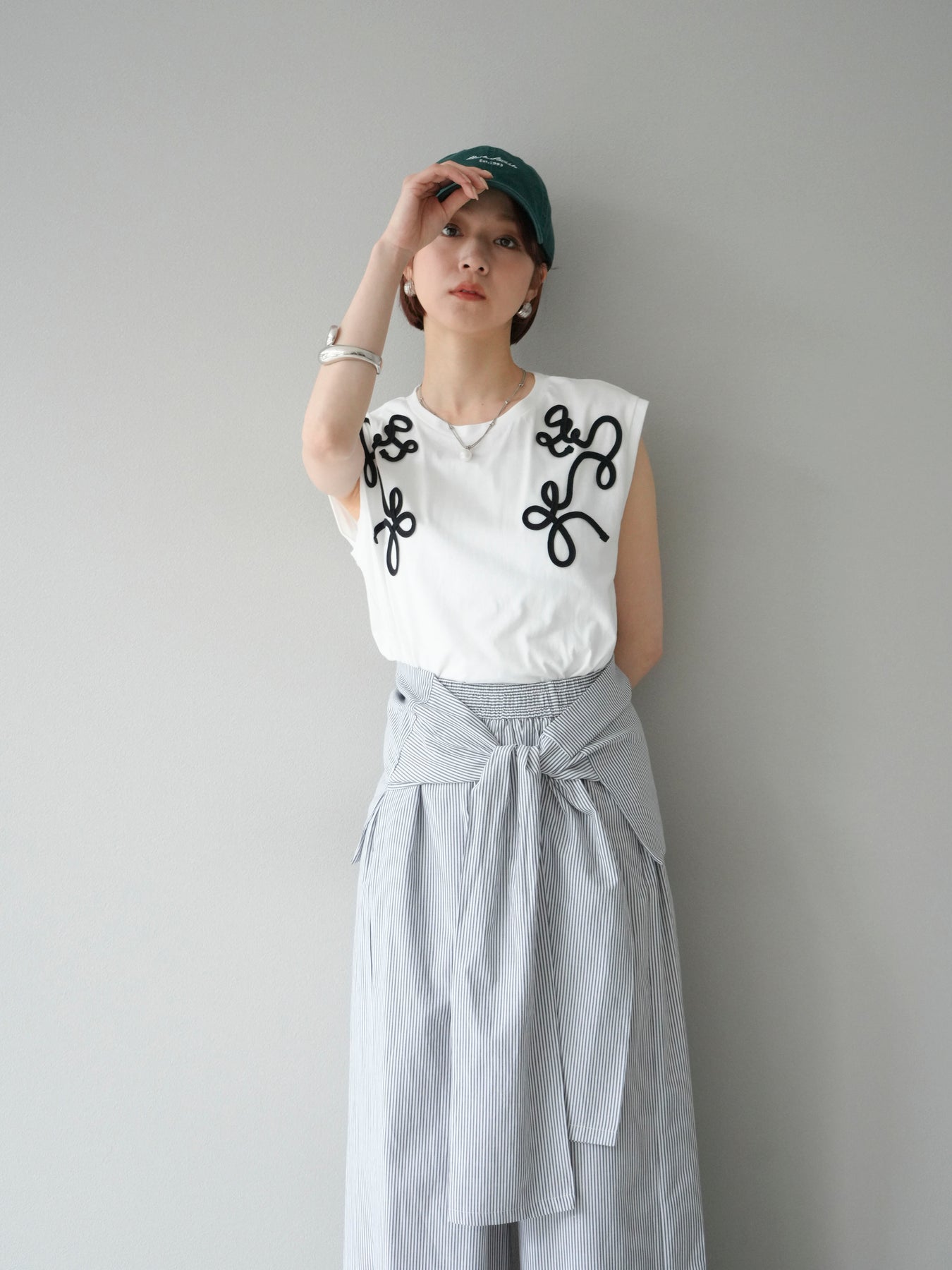 ◆ [予約]コード刺繍フレンチスリーブTシャツ