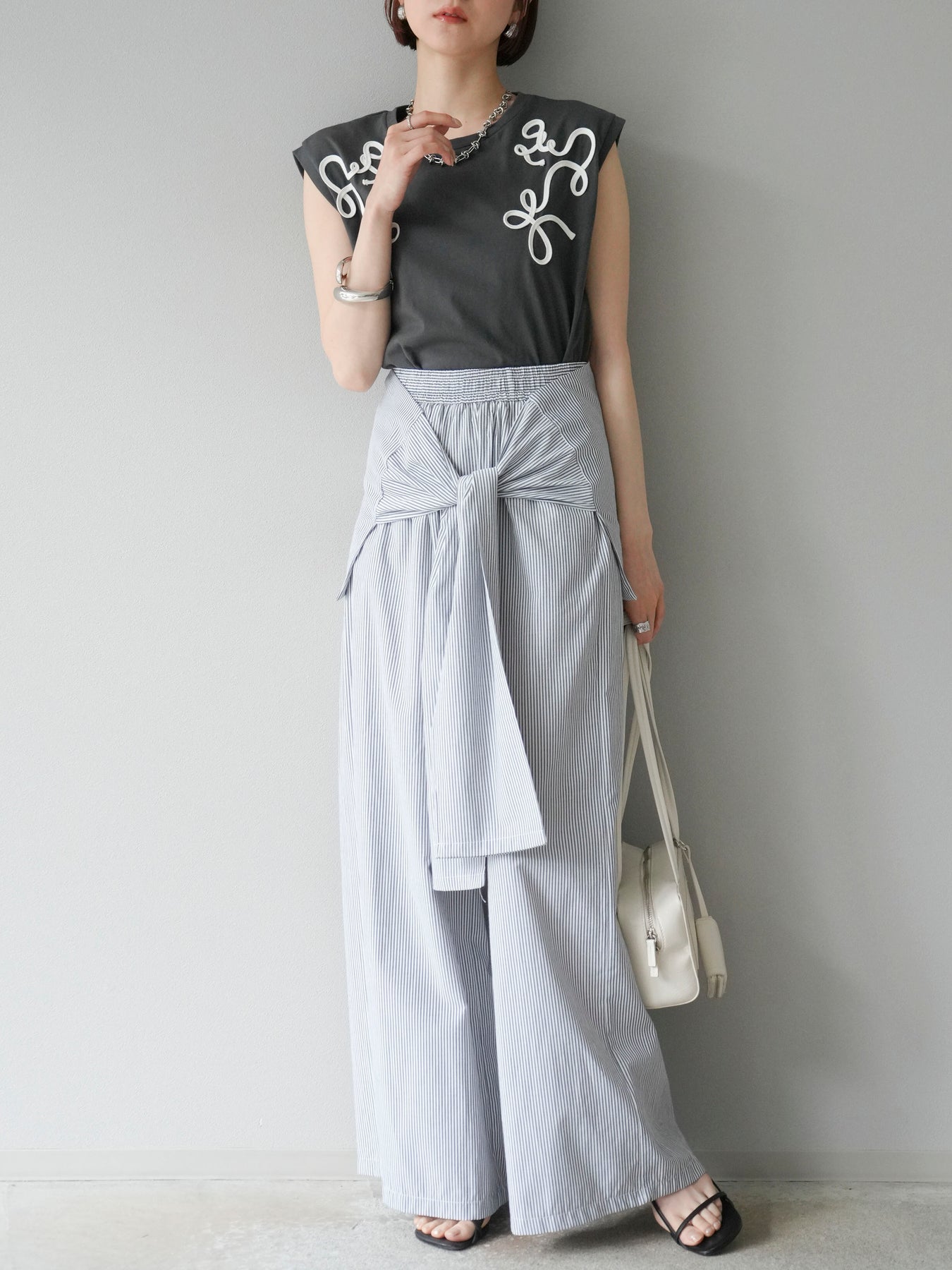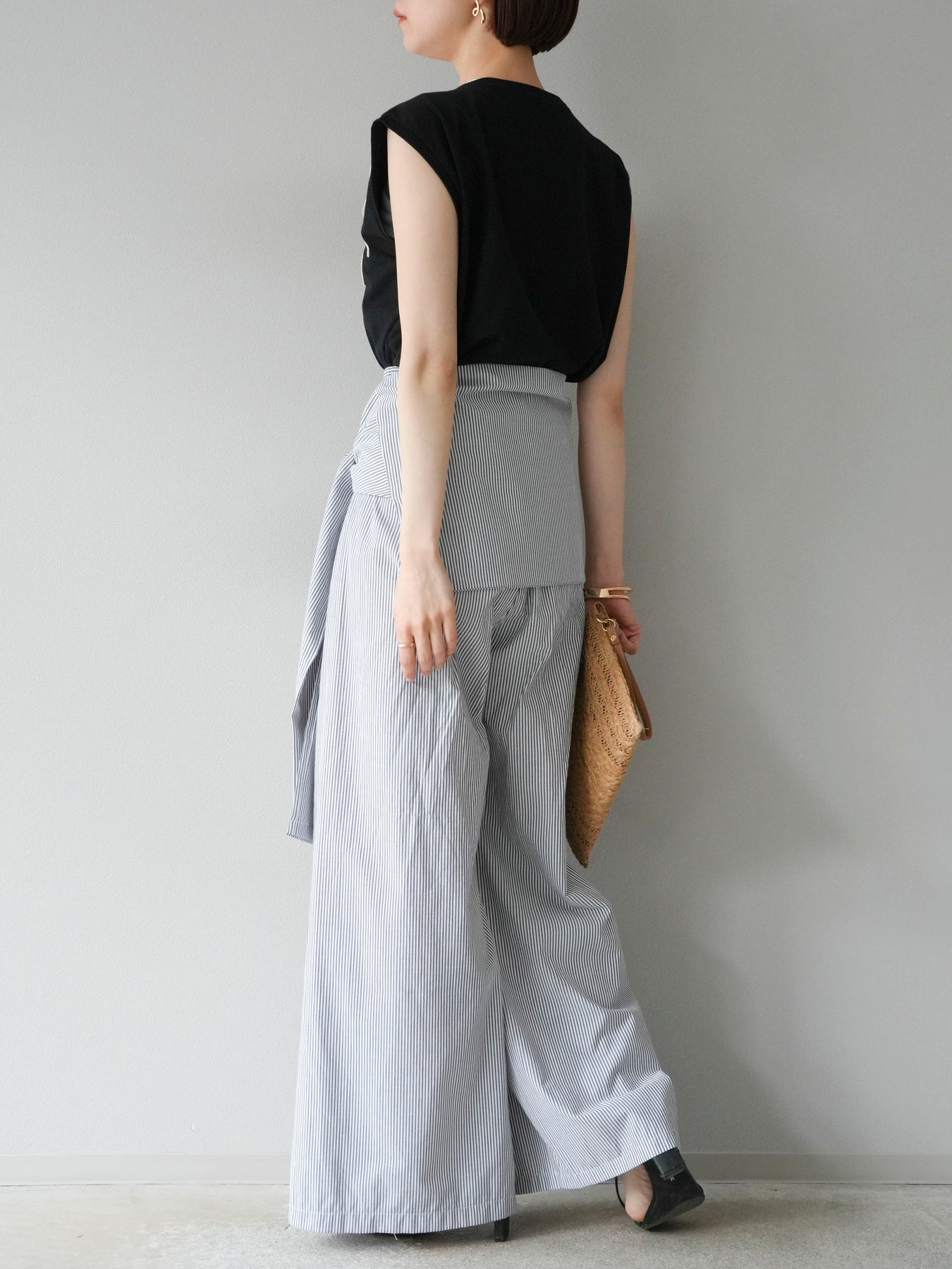 ◆ [予約]ウエスト巻きストライプイージーパンツ