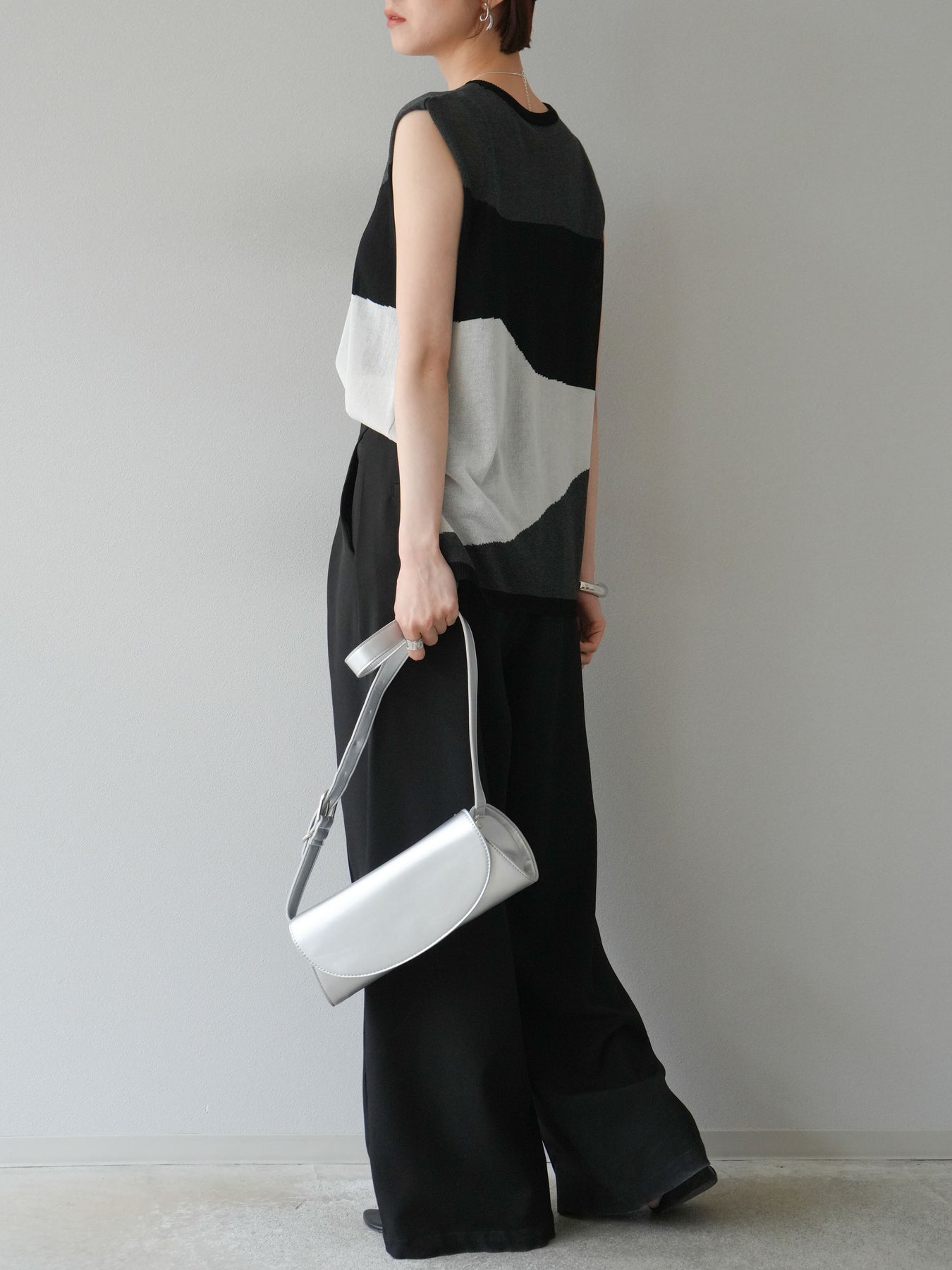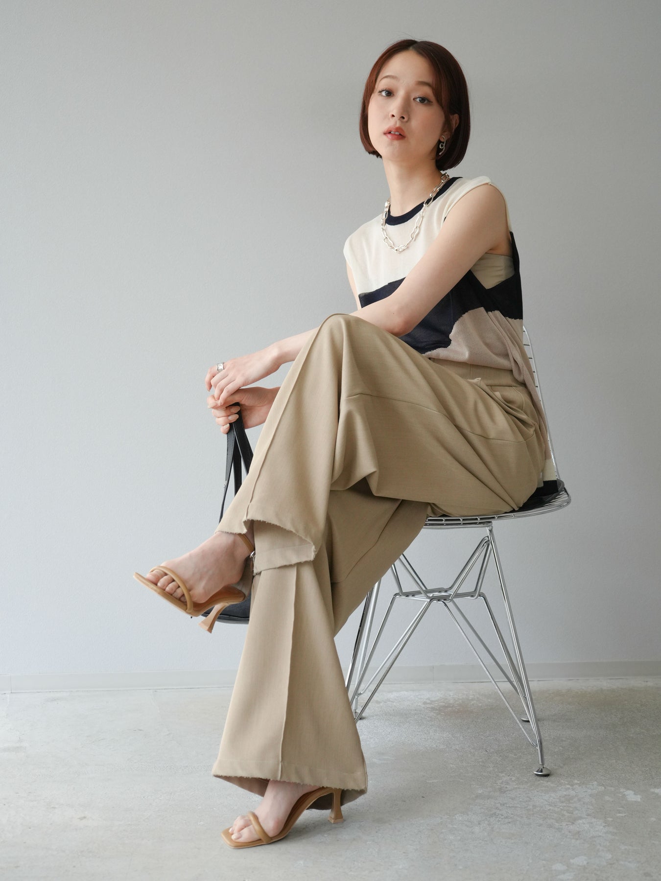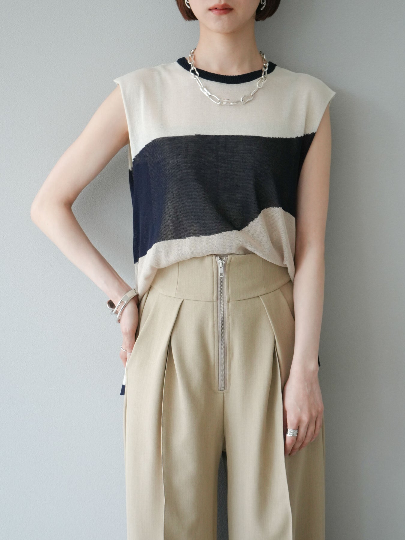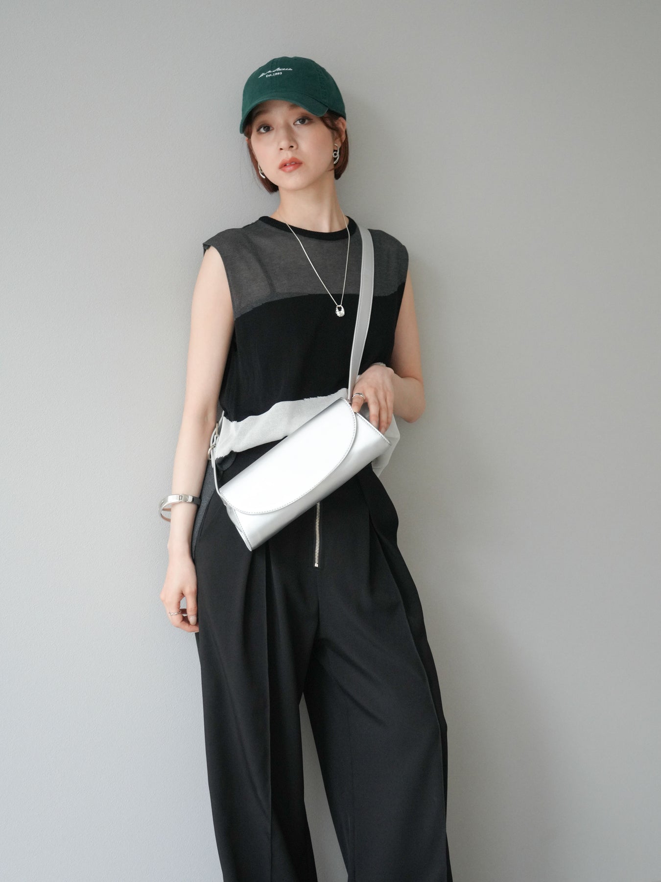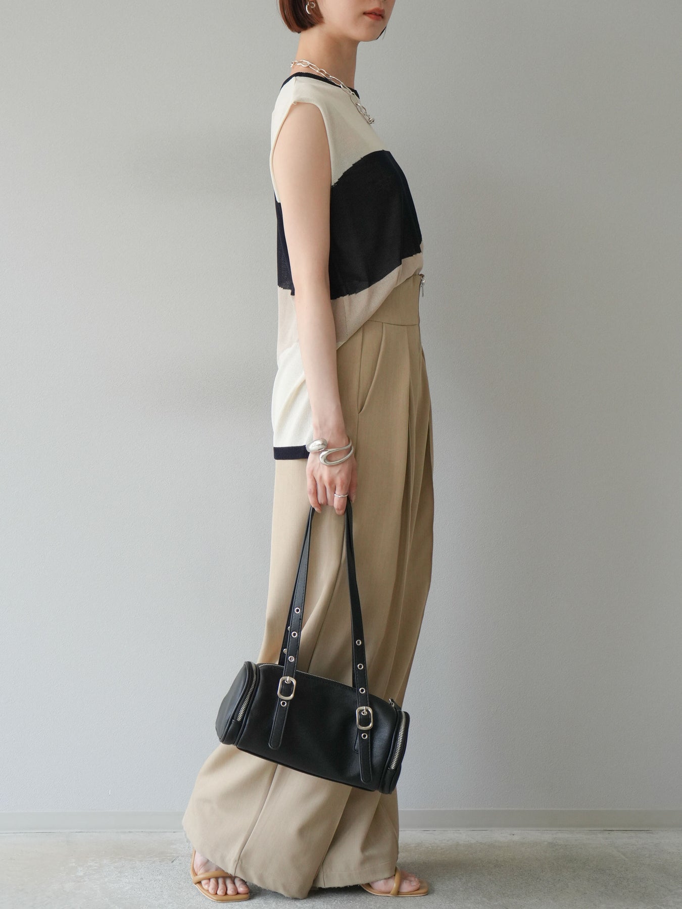 [SET]バイカラーシアーニットノースリーブ+ジップタックワイドパンツ(2set)