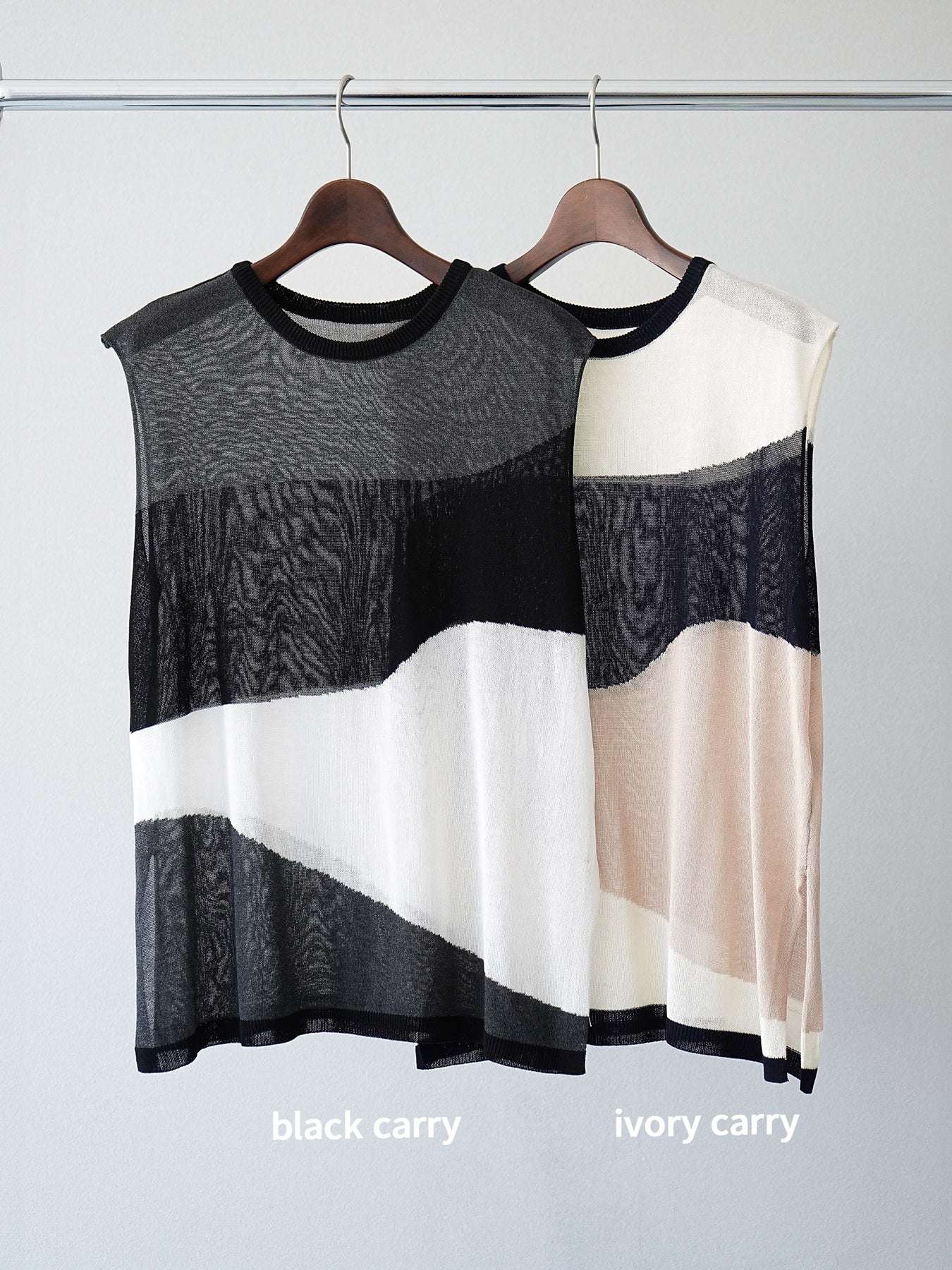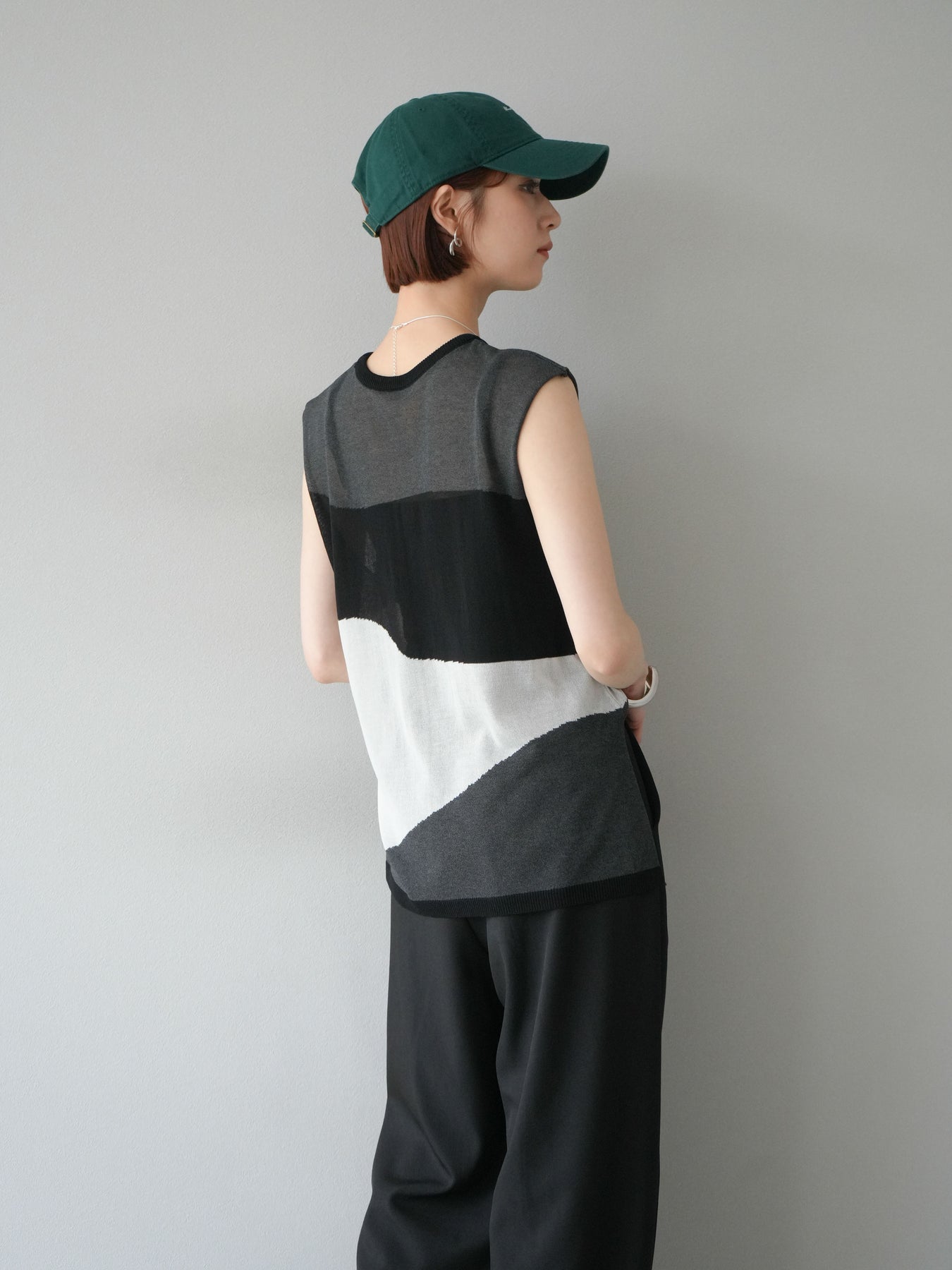 軽やかな素材のノースリーブトップスは絶妙な色のコントラストが特徴で、涼しげなデザインが夏のコーディネートにぴったり。ゆったりとしたシルエットでリラックス感があり、パンツやスカートなど様々なアイテムと相性抜群。シンプルながらも個性的なアイテムとして活躍します。