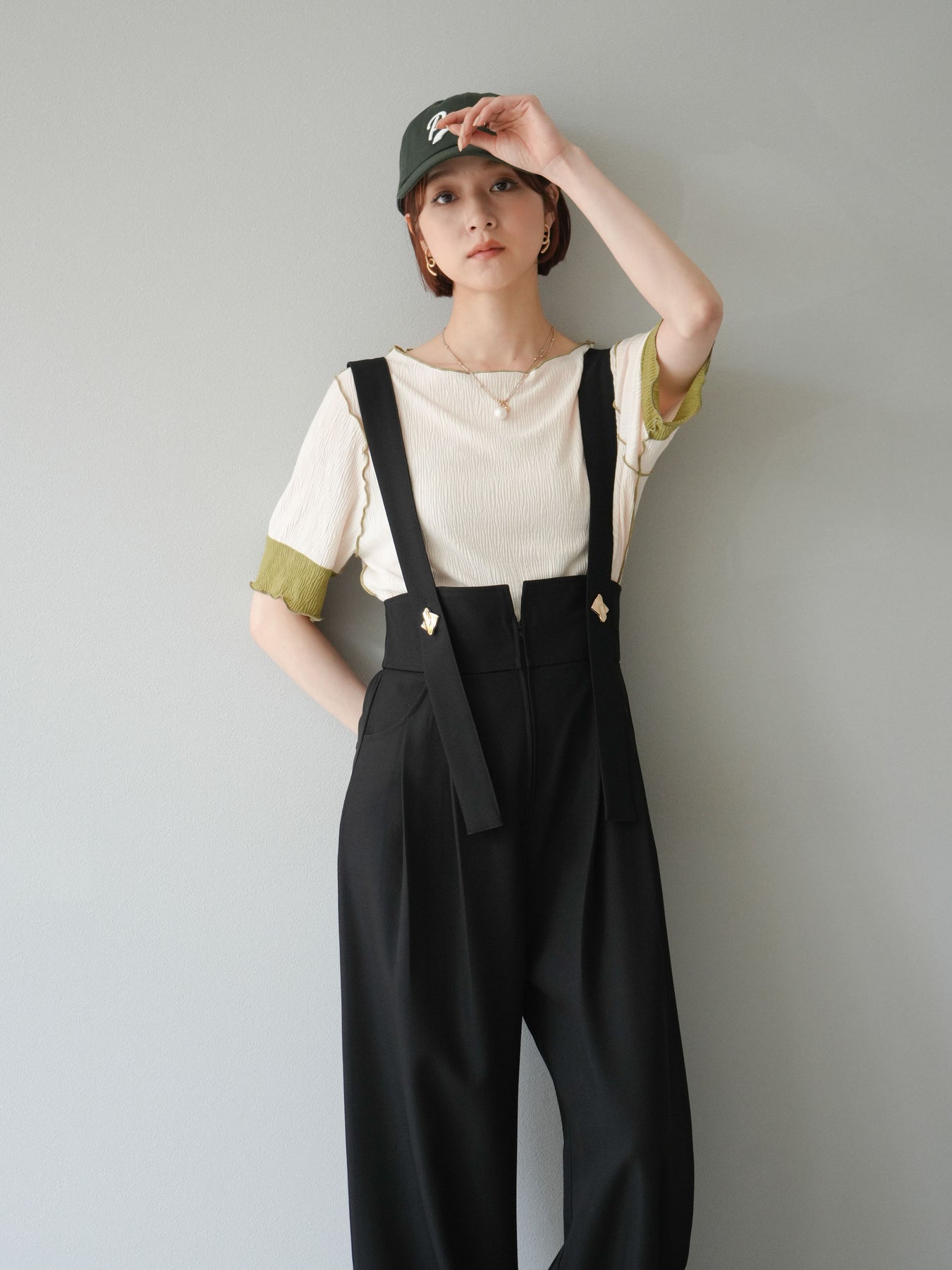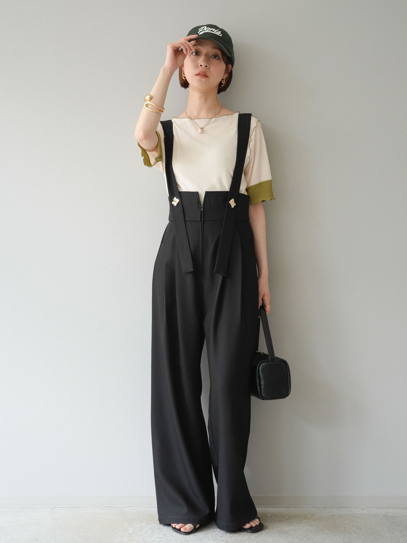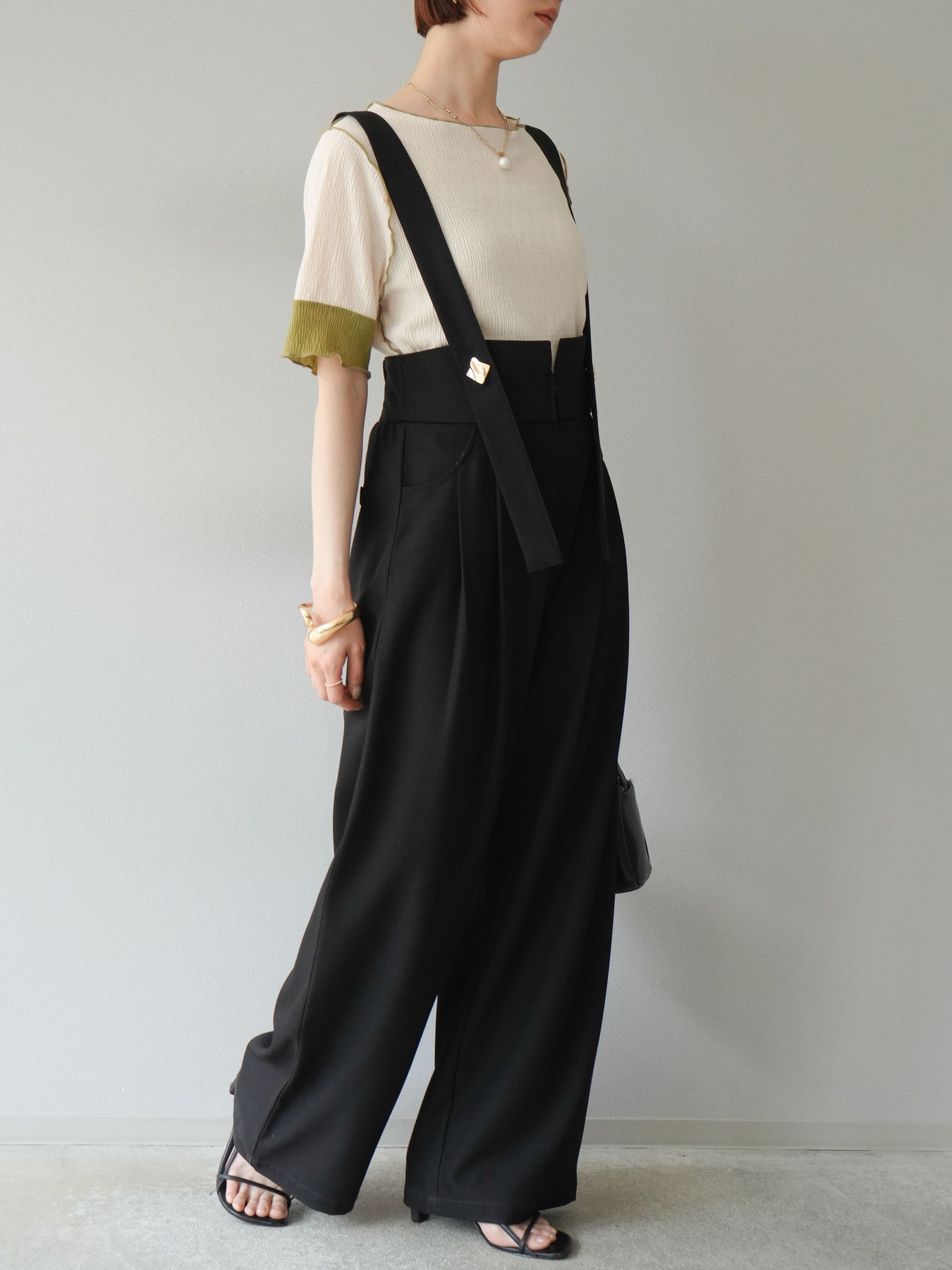[予約]ゴールドボタンサスペンダーワイドパンツ