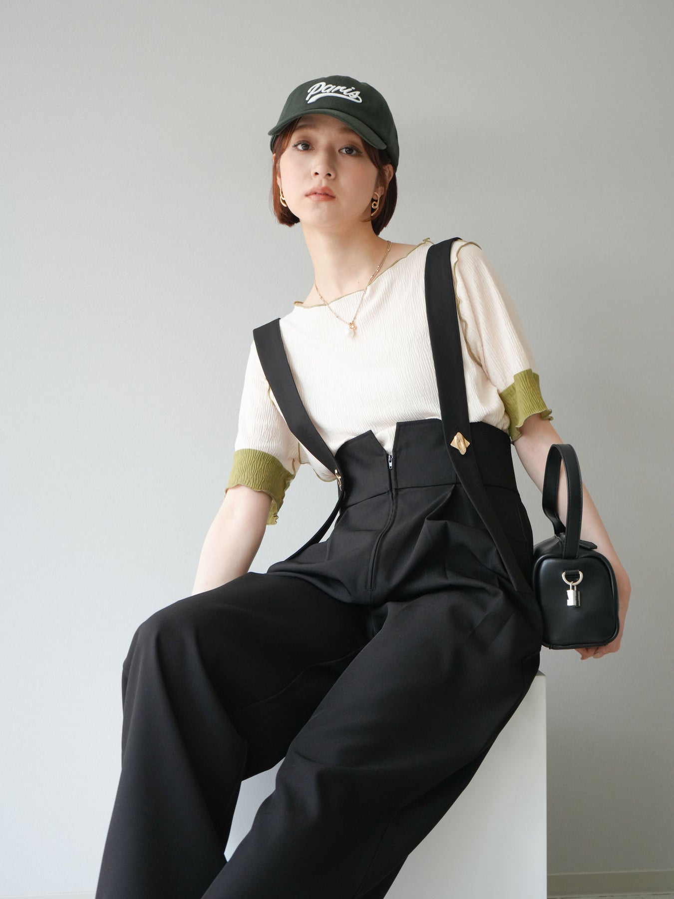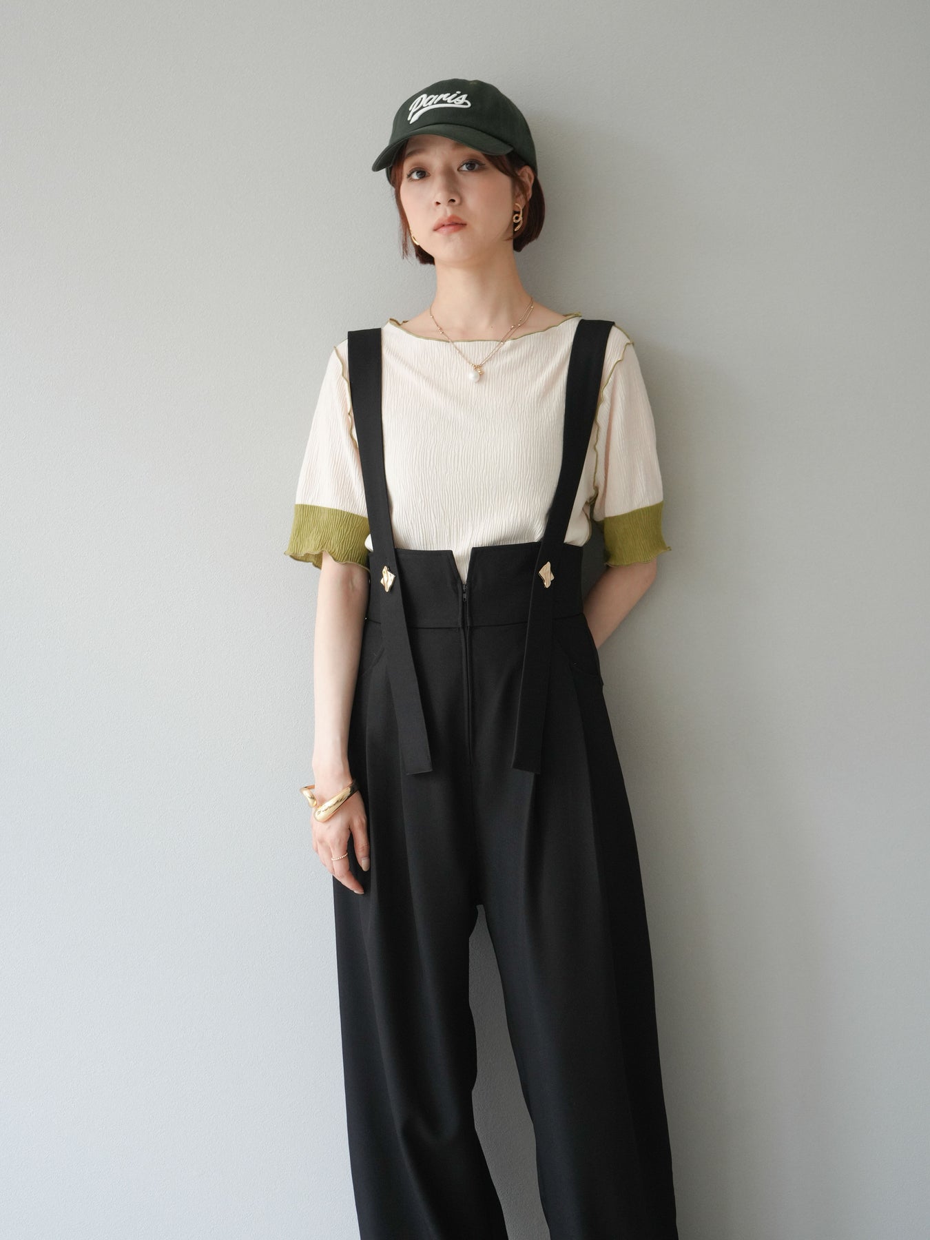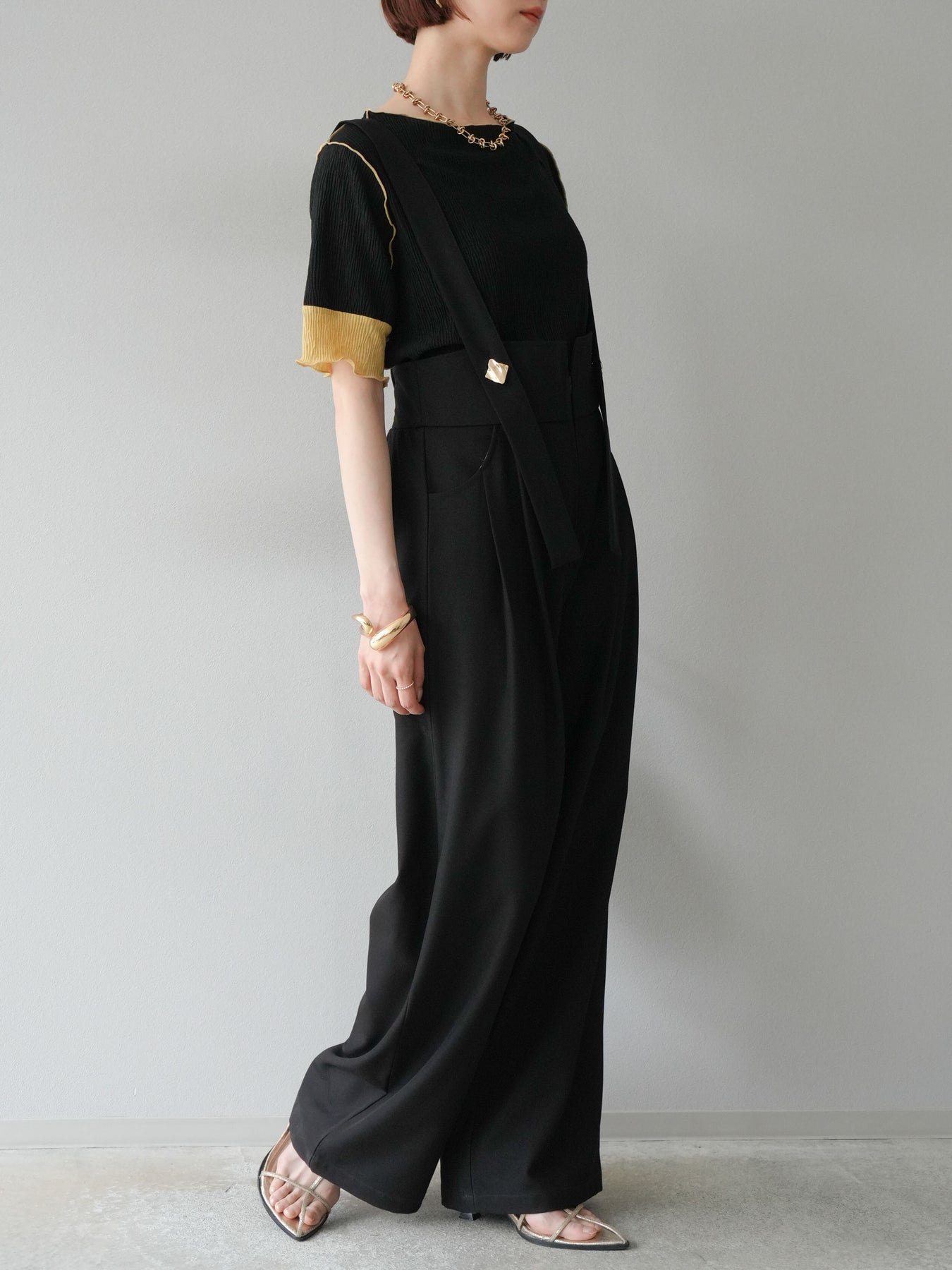 [予約]ゴールドボタンサスペンダーワイドパンツ