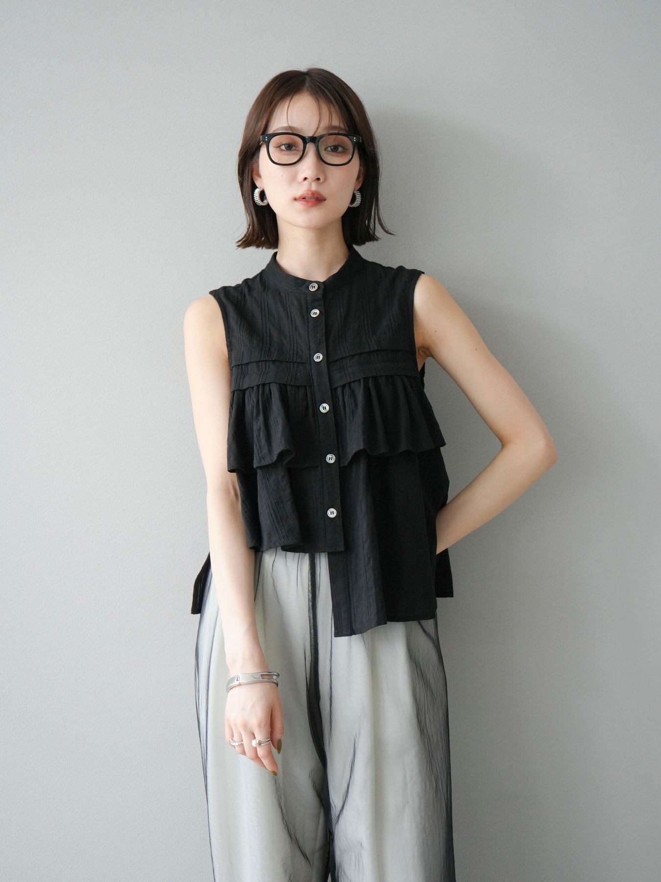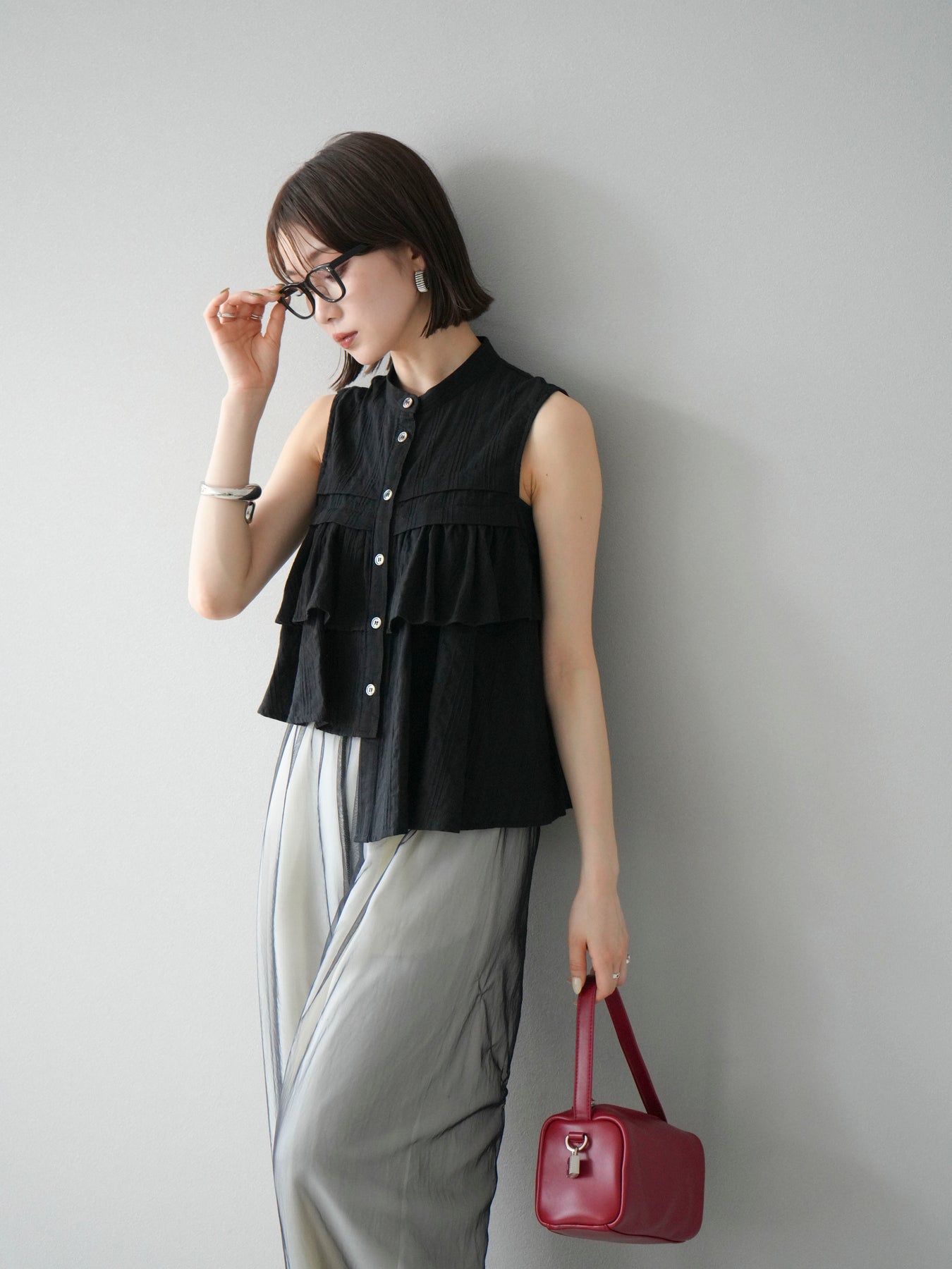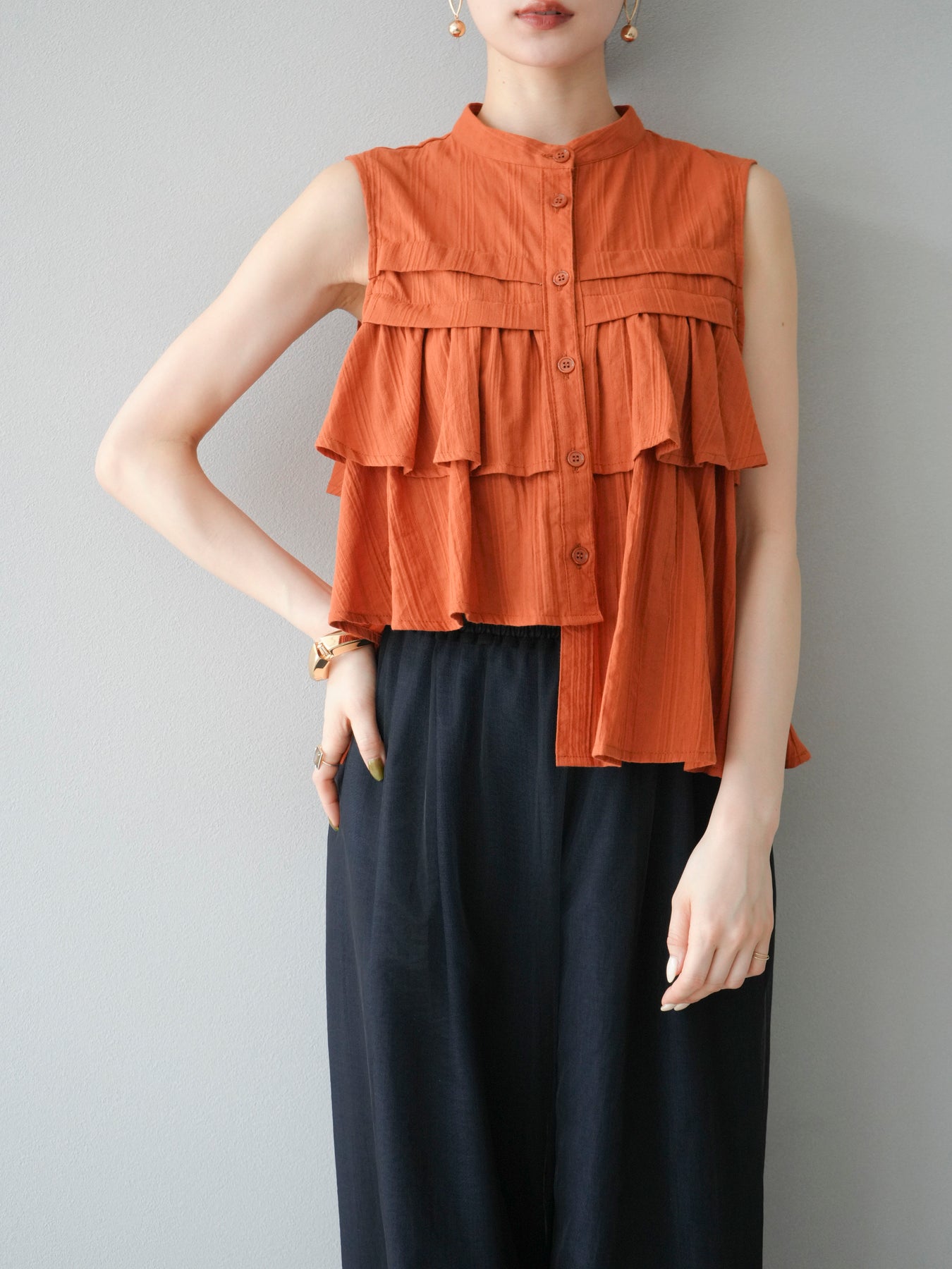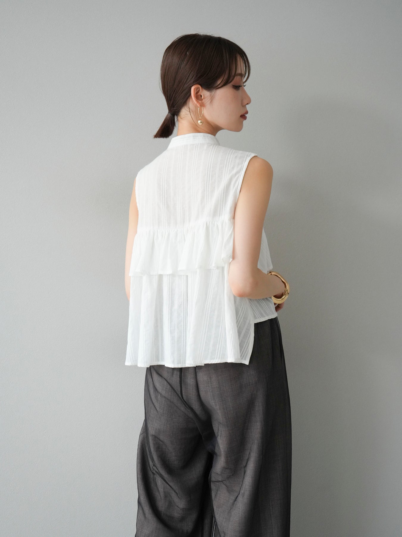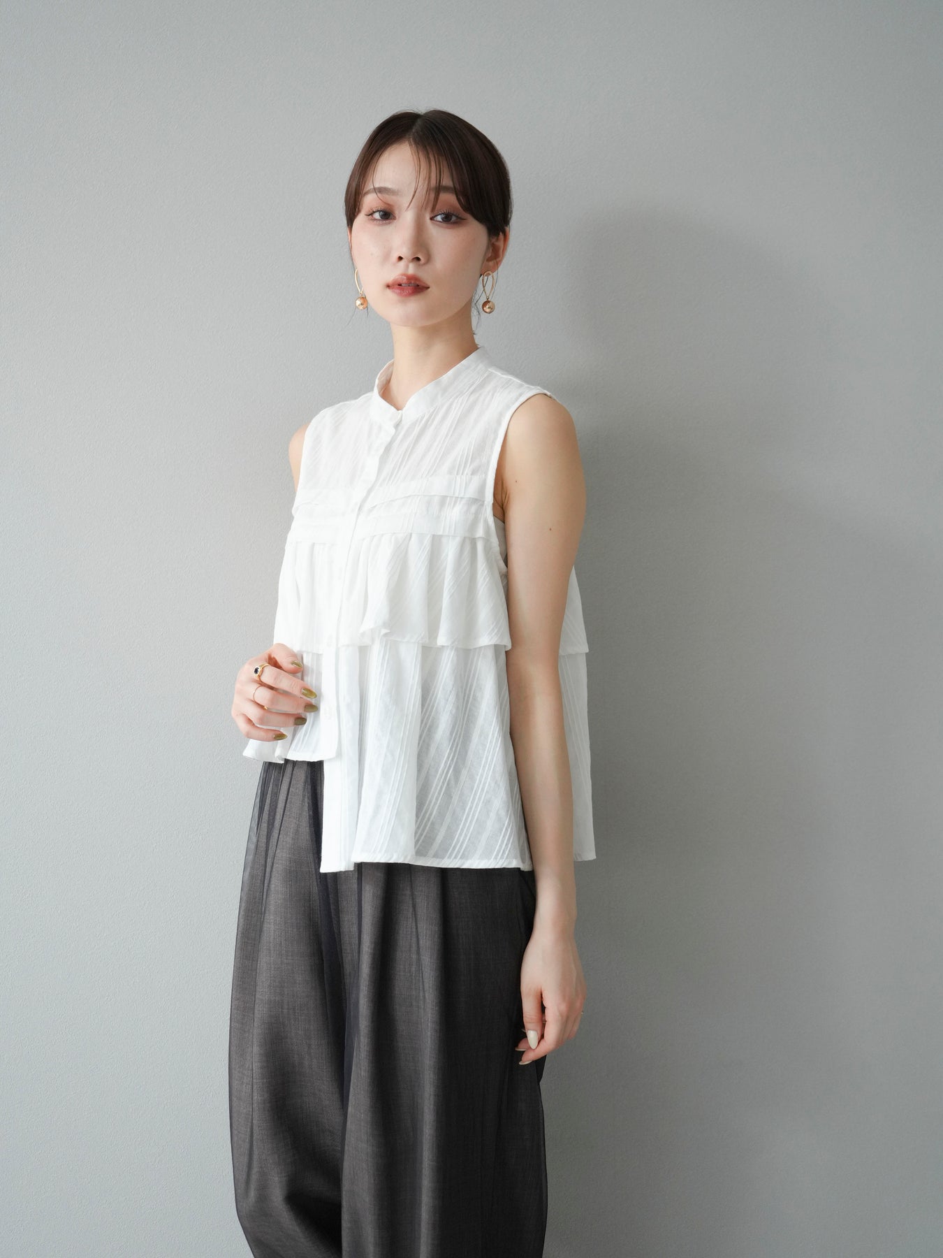 ◆ [予約]ドビーストライプアシンメトリーフリルノースリブラウス