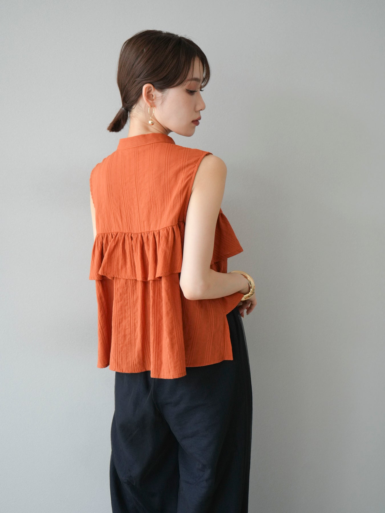 [予約]ドビーストライプアシンメトリーフリルノースリブラウス