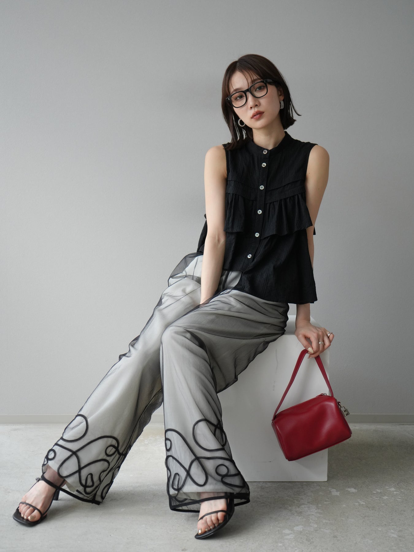 ◆ [予約]コード刺繍チュールレイヤードパンツ
