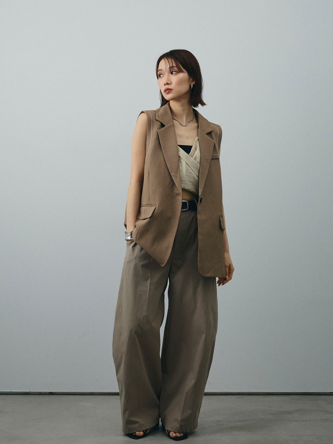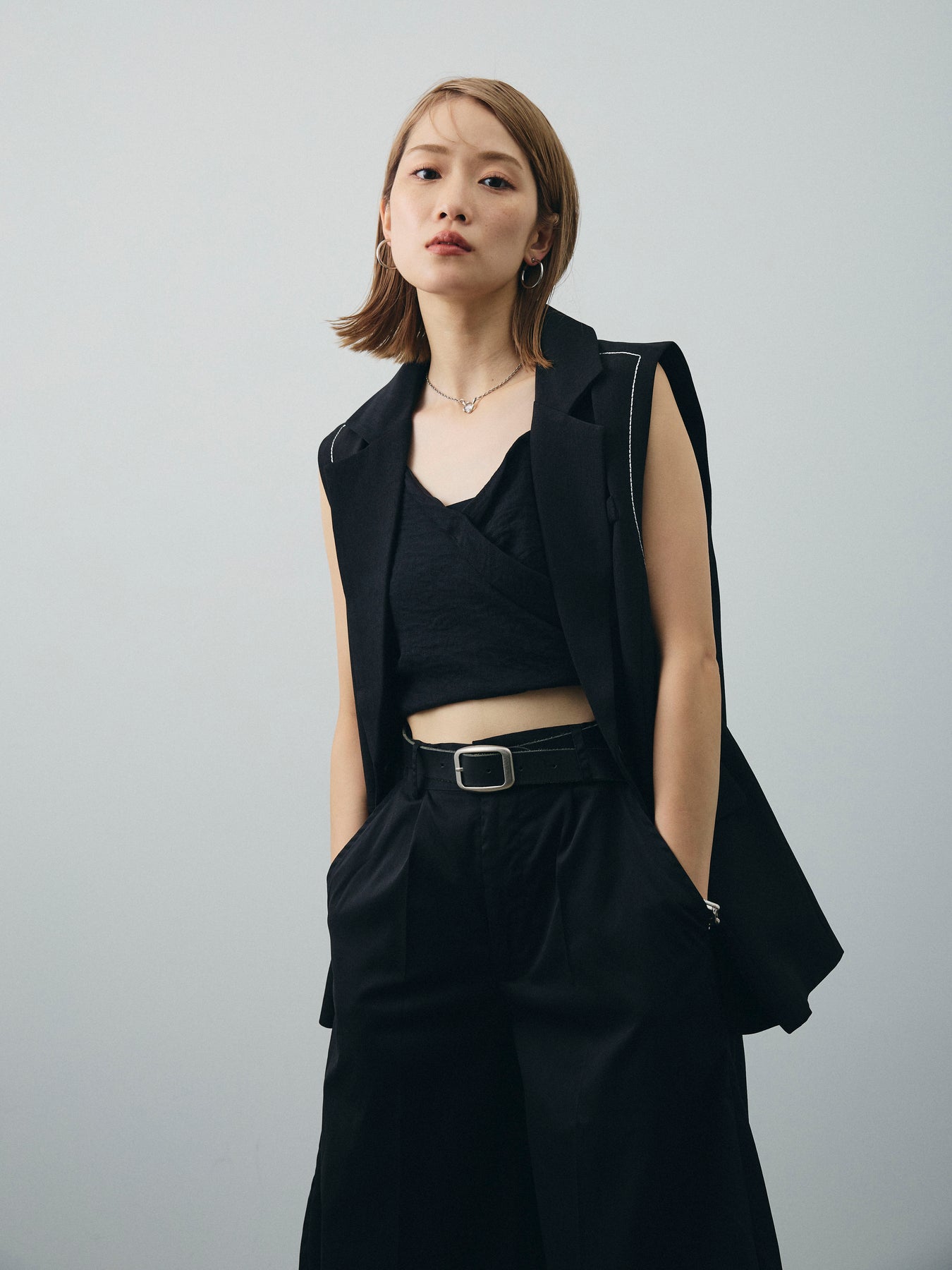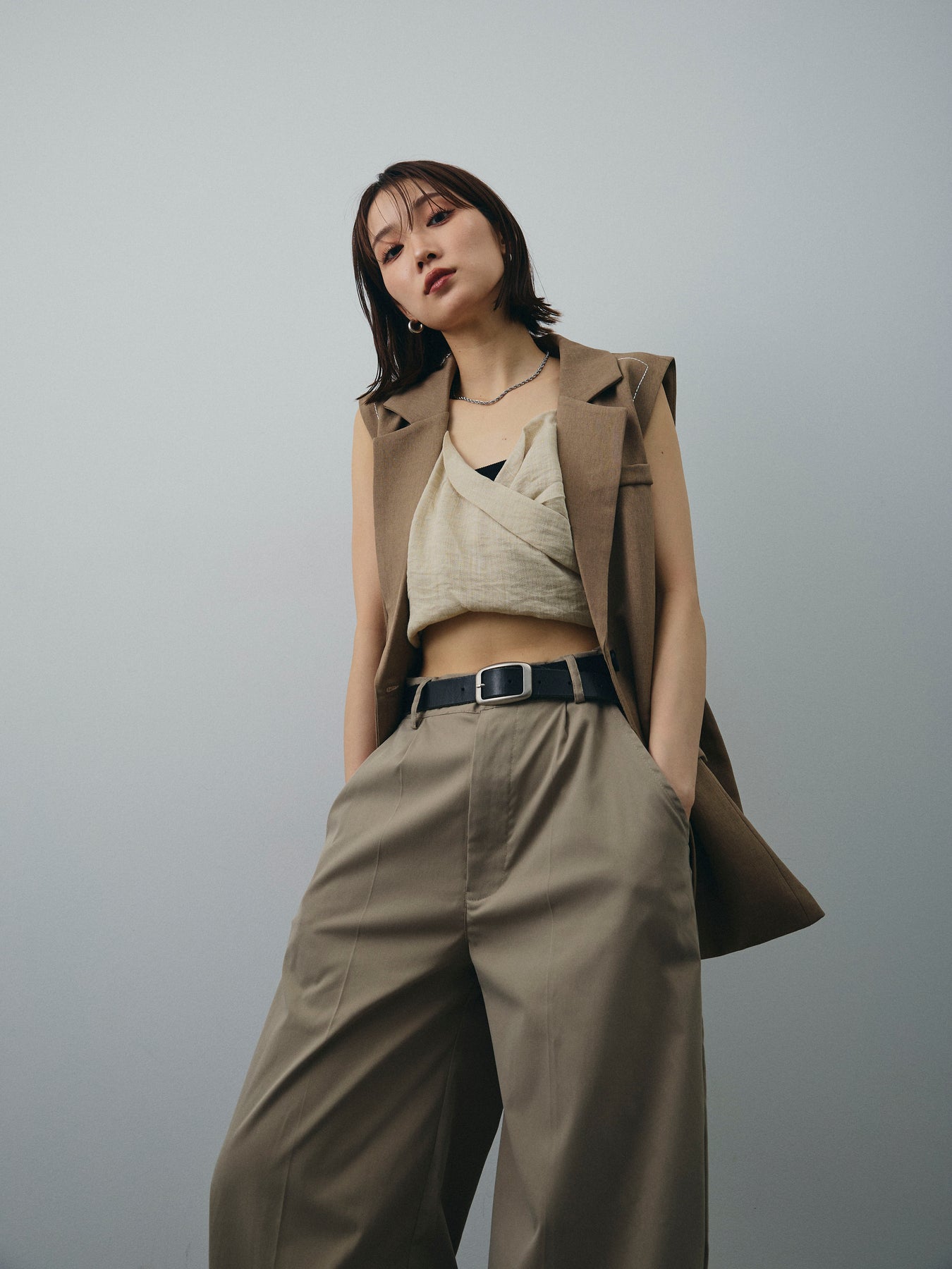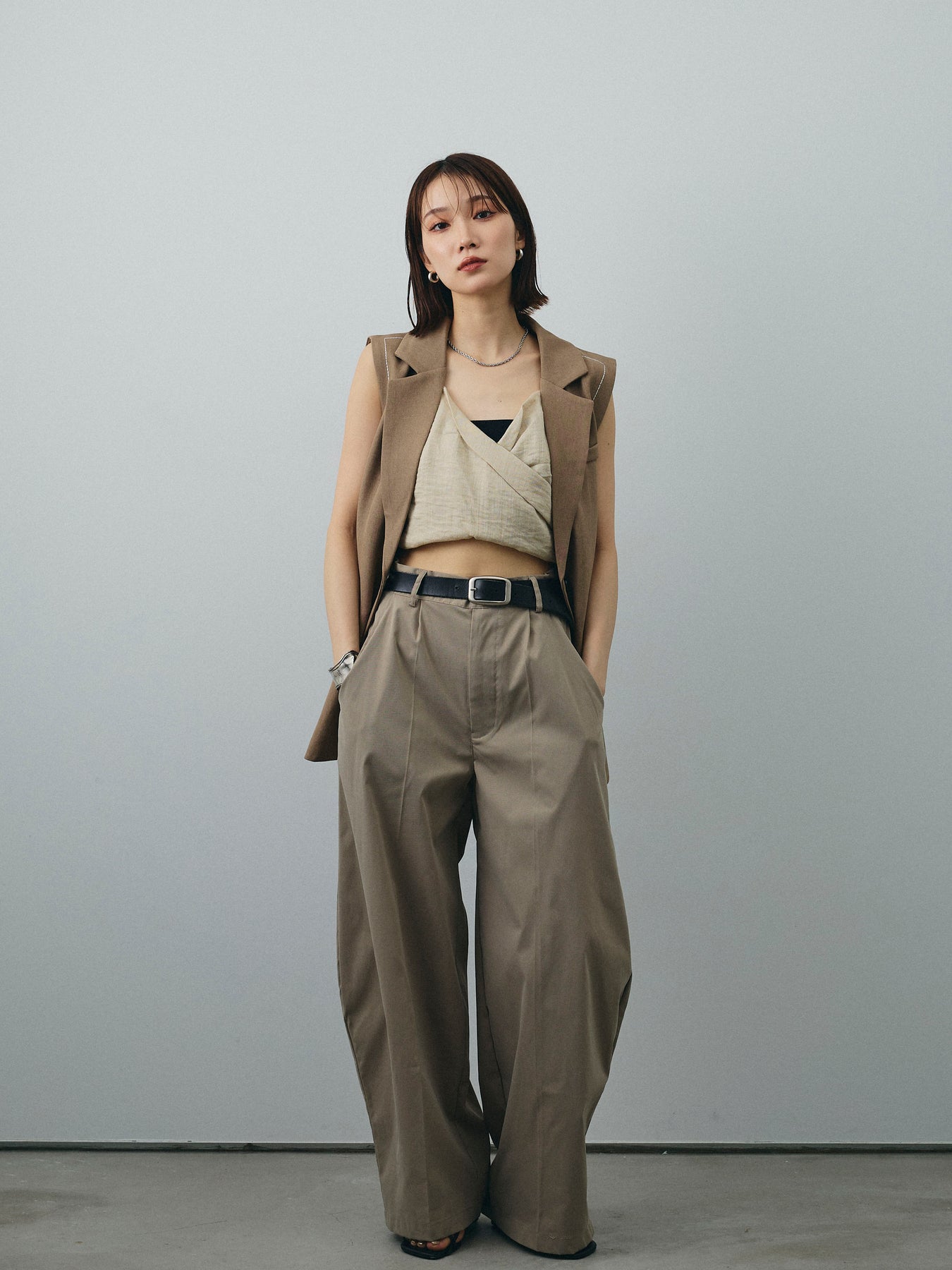 [SET]ステッチデザインベスト+リネンライクカシュクールデザインビスチェ+コクーンワイドチノパンツ(3set)