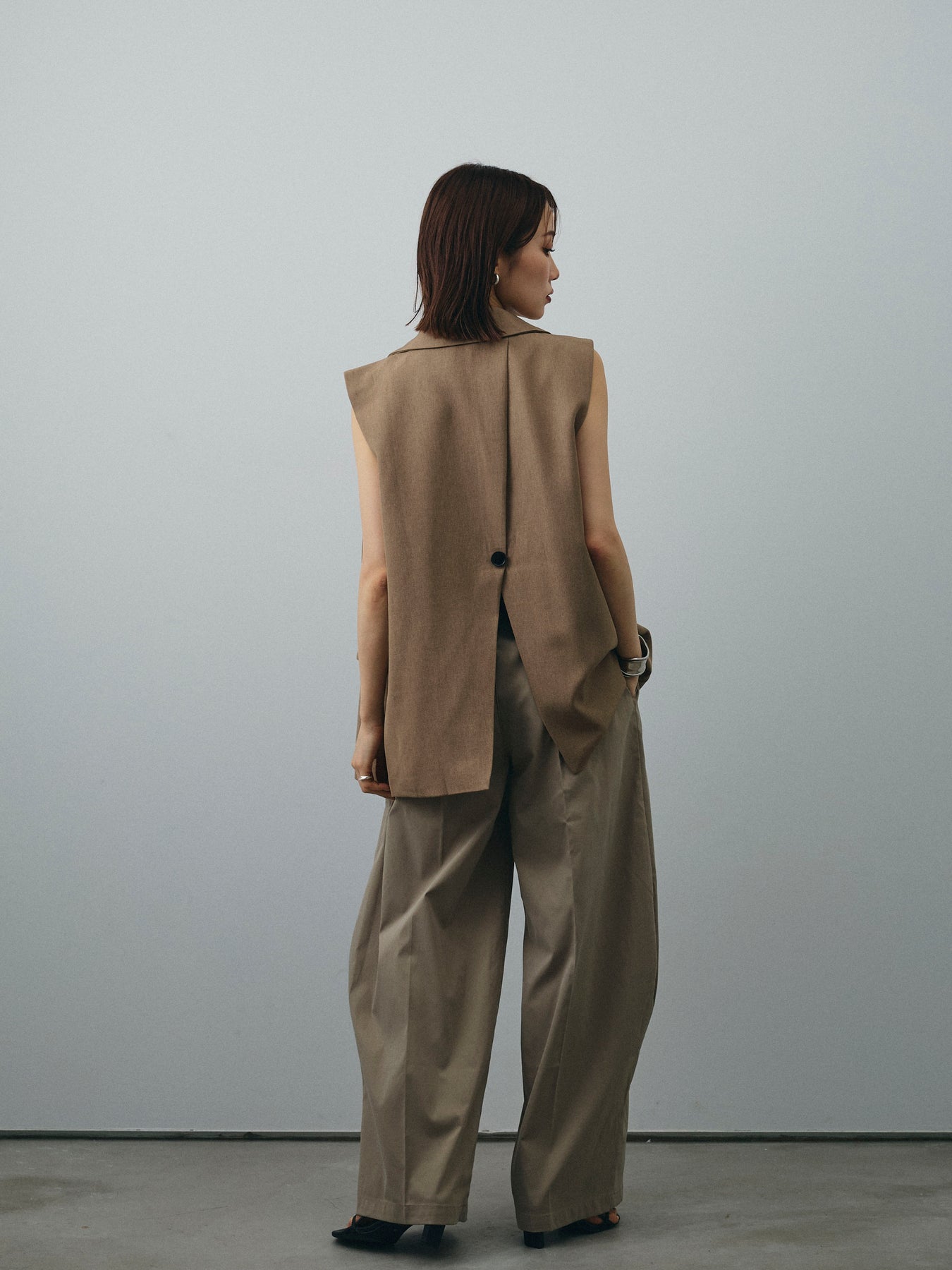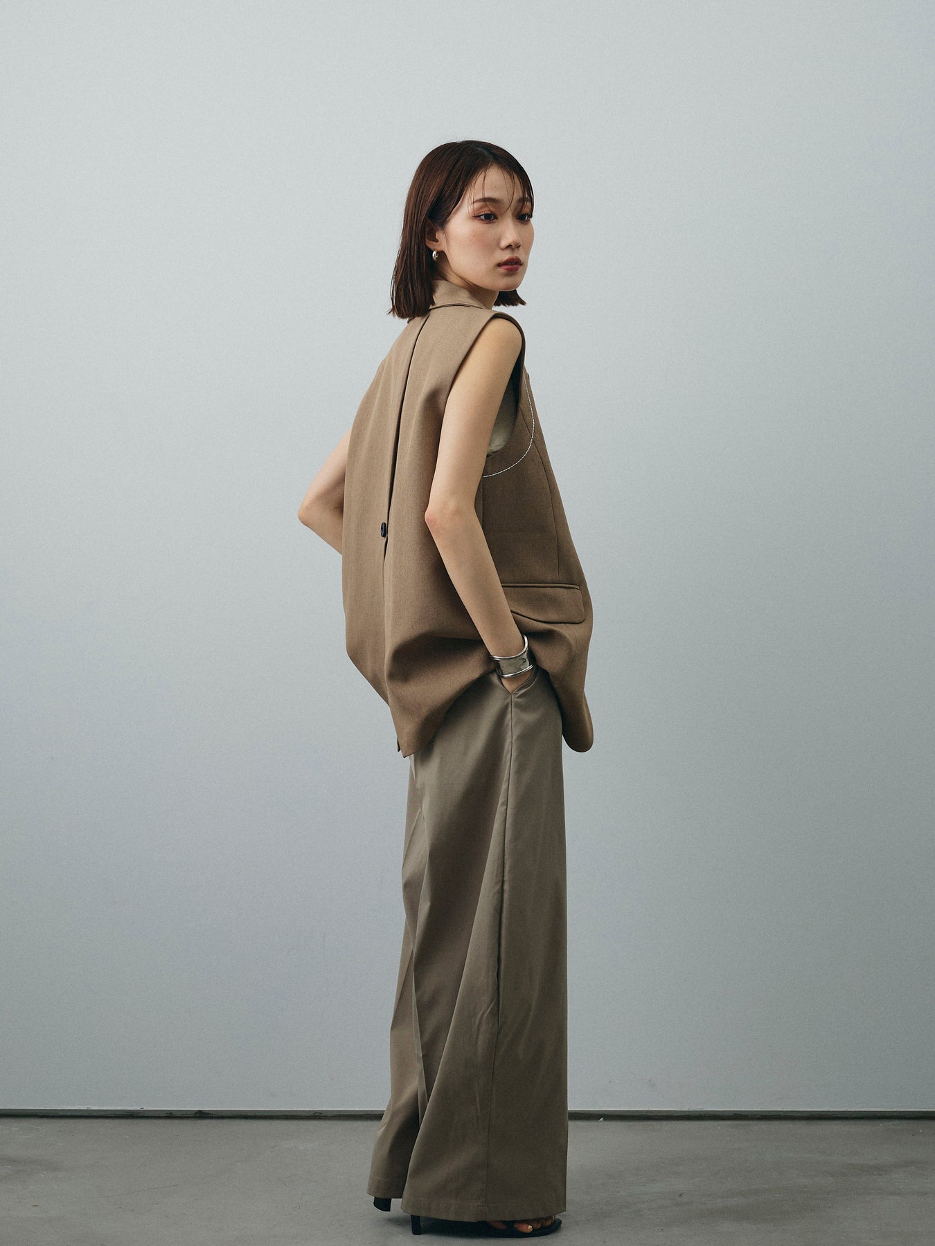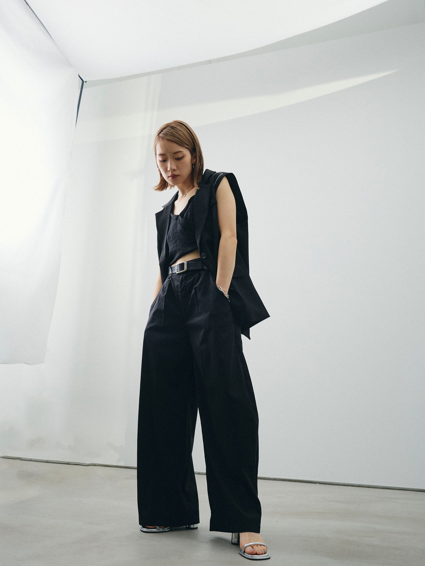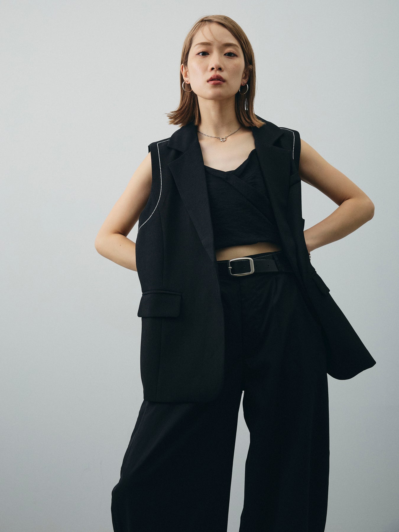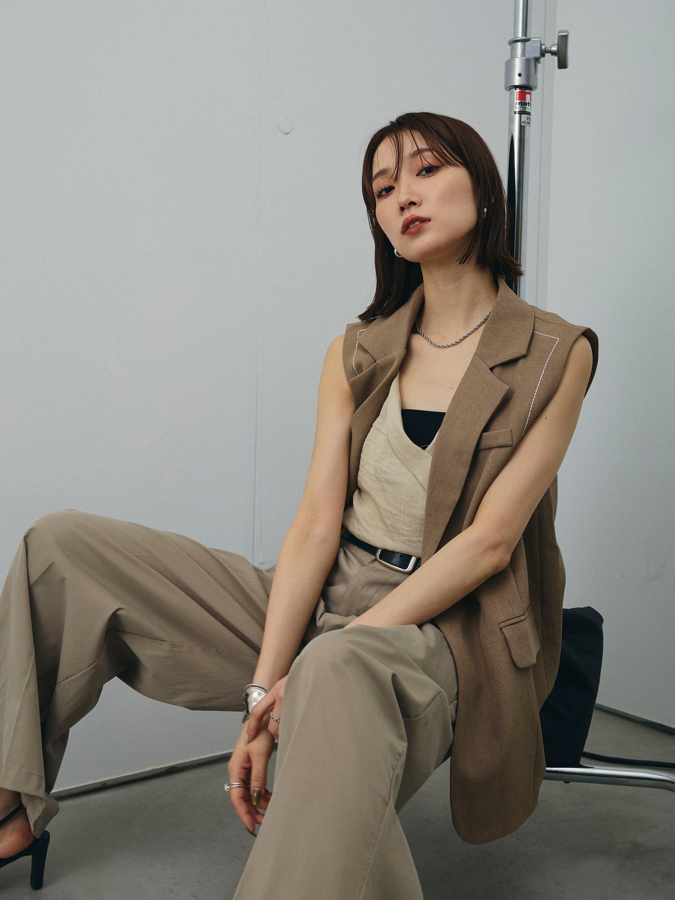 [SET]ステッチデザインベスト+リネンライクカシュクールデザインビスチェ+コクーンワイドチノパンツ(3set)