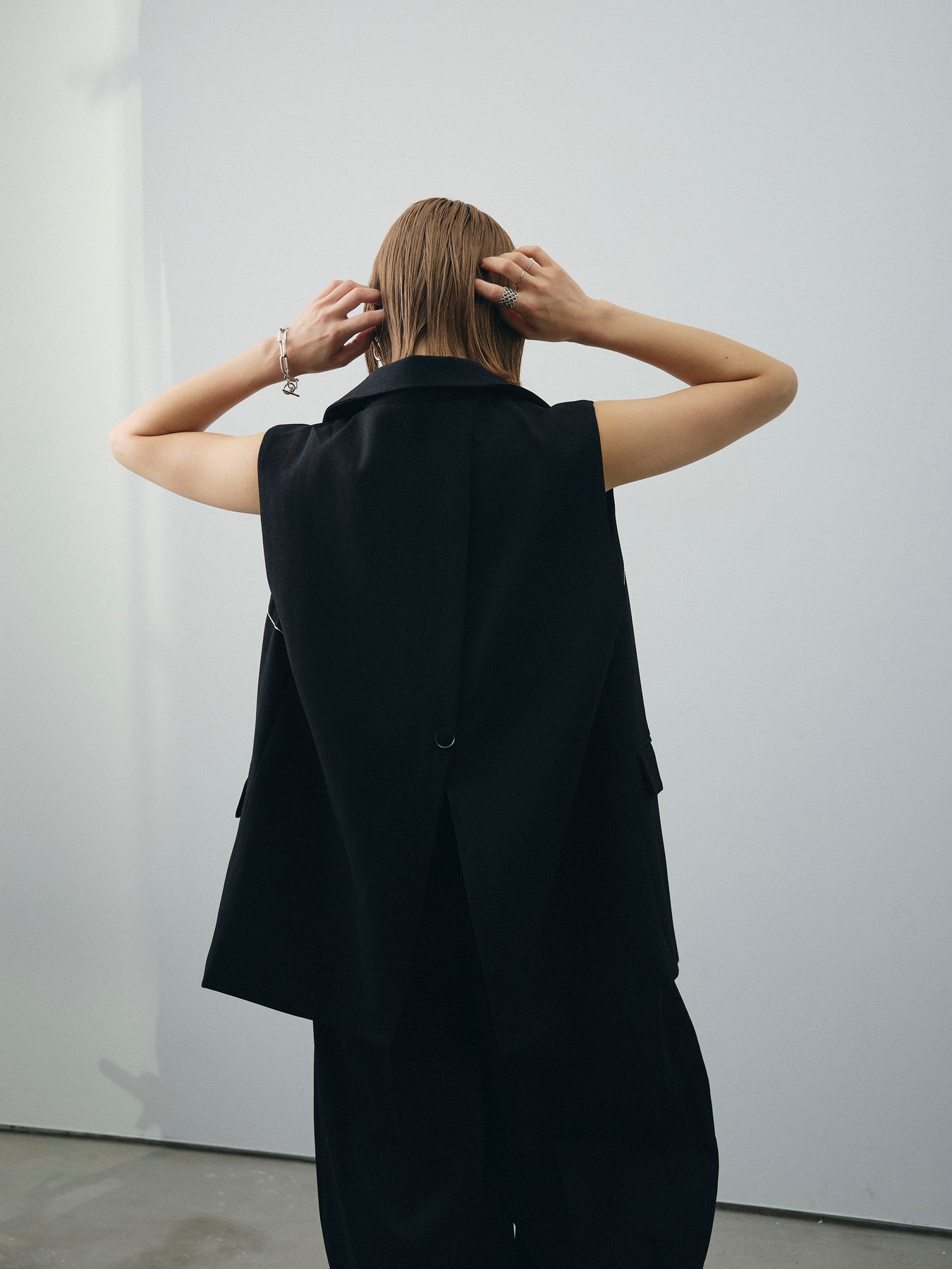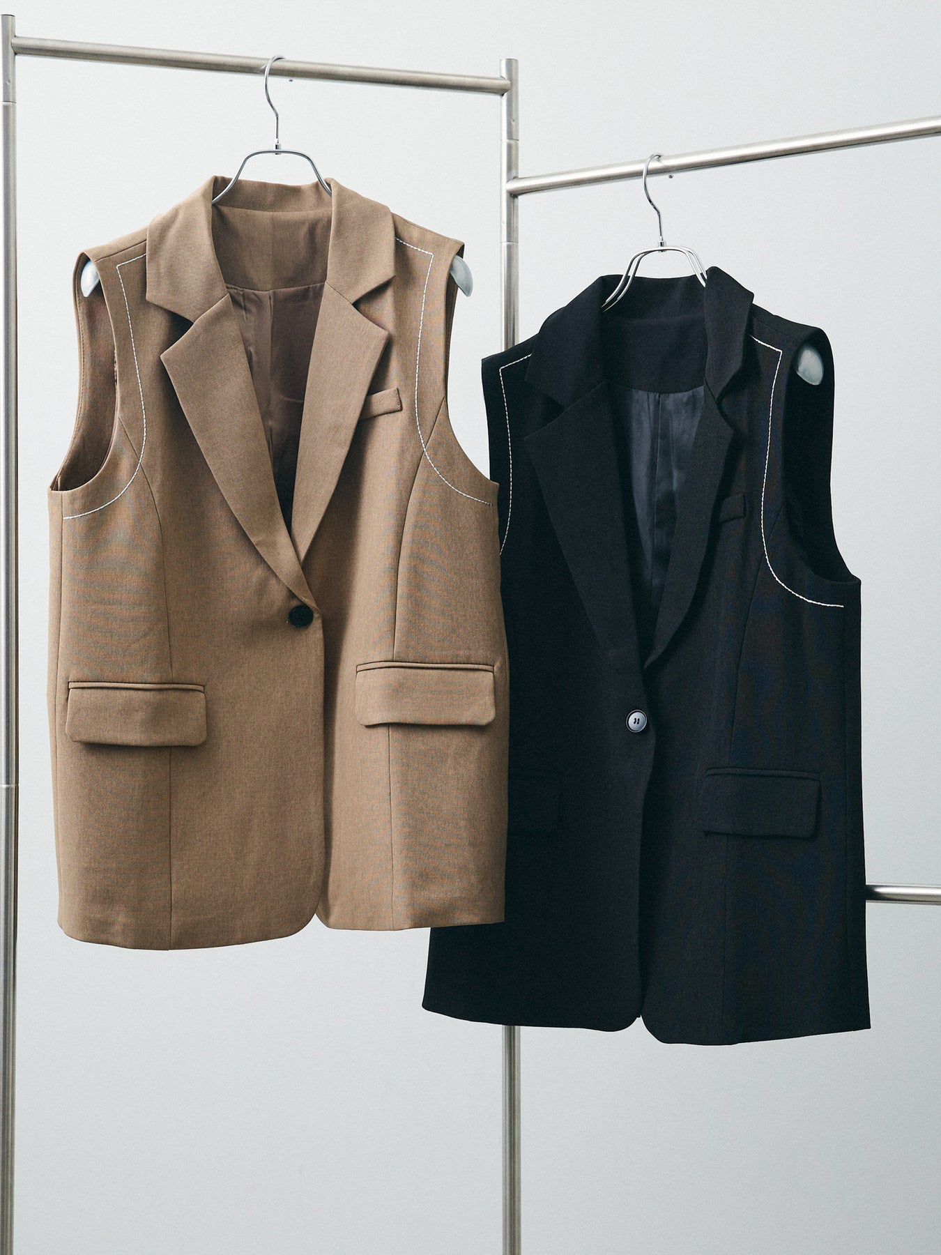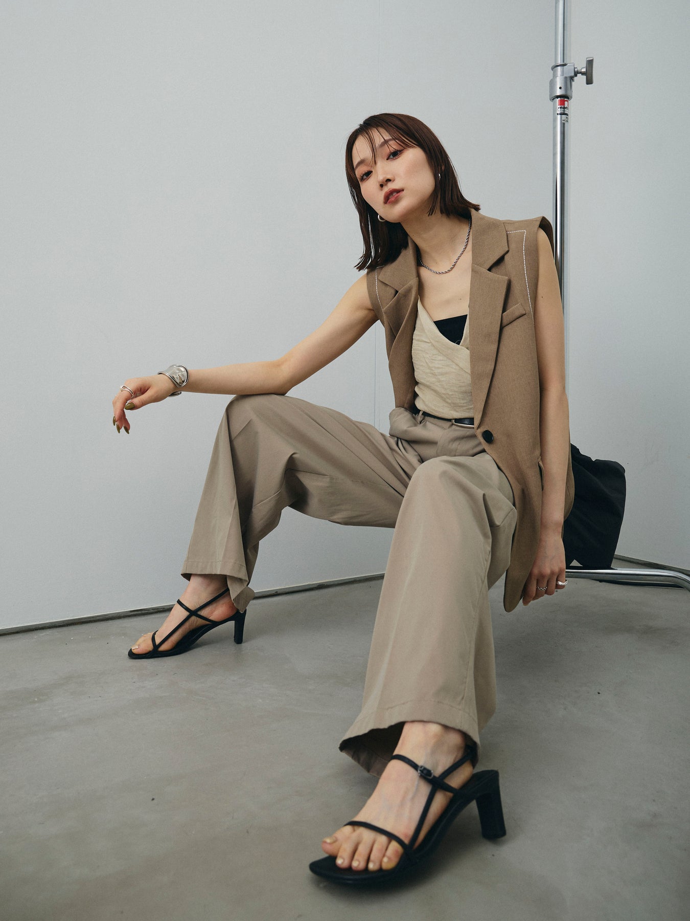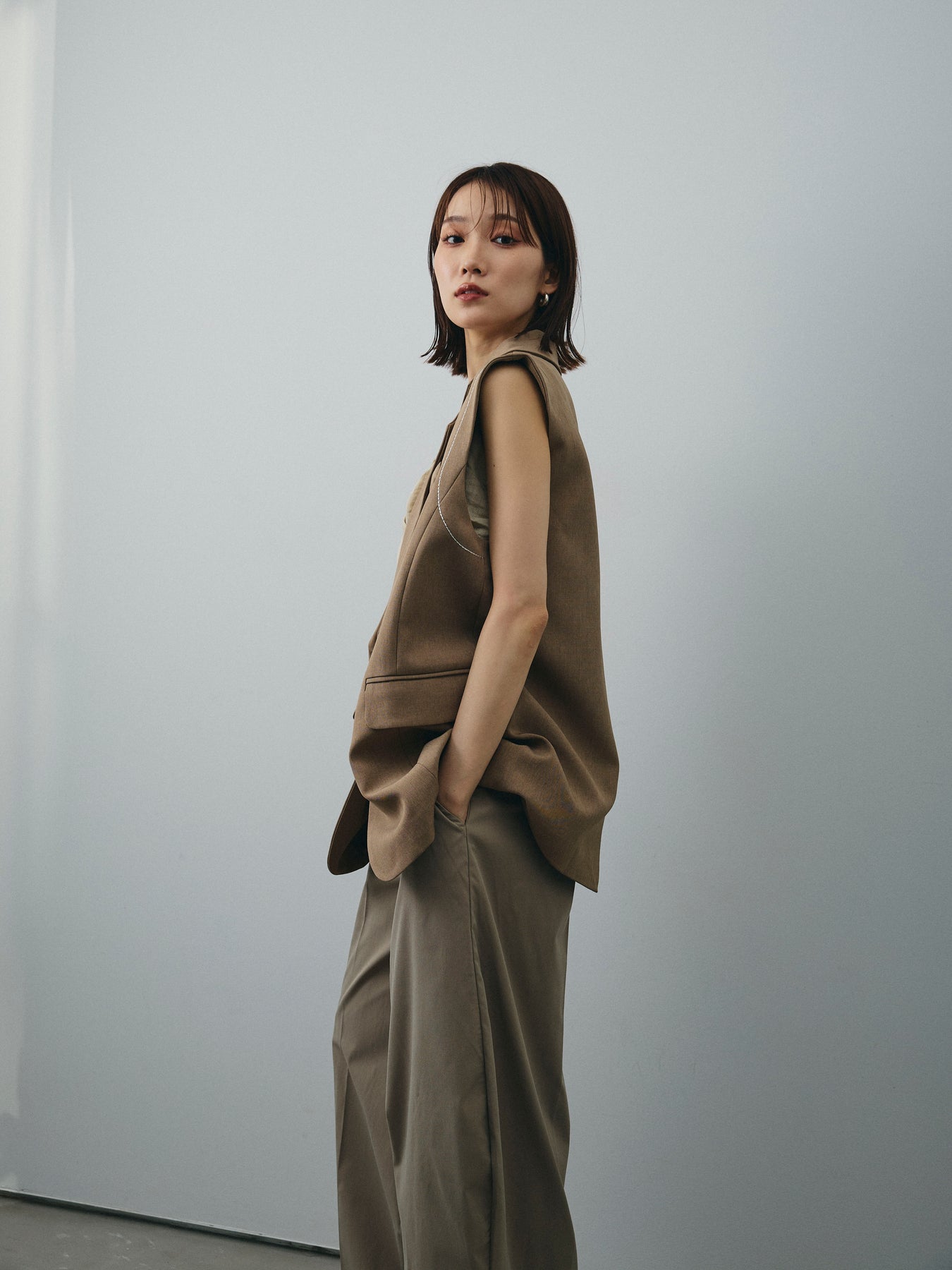 [SET]ステッチデザインベスト+リネンライクカシュクールデザインビスチェ+コクーンワイドチノパンツ(3set)