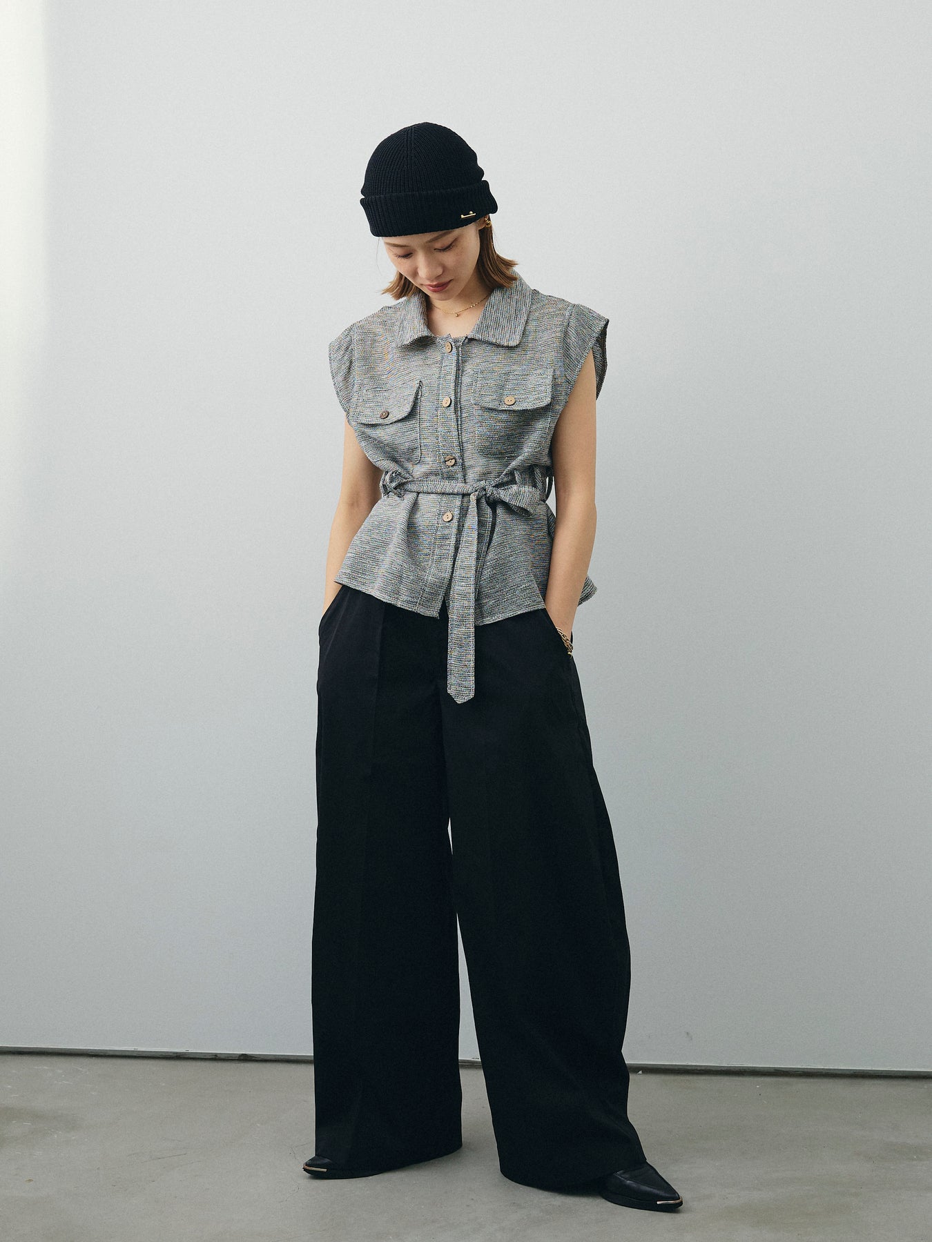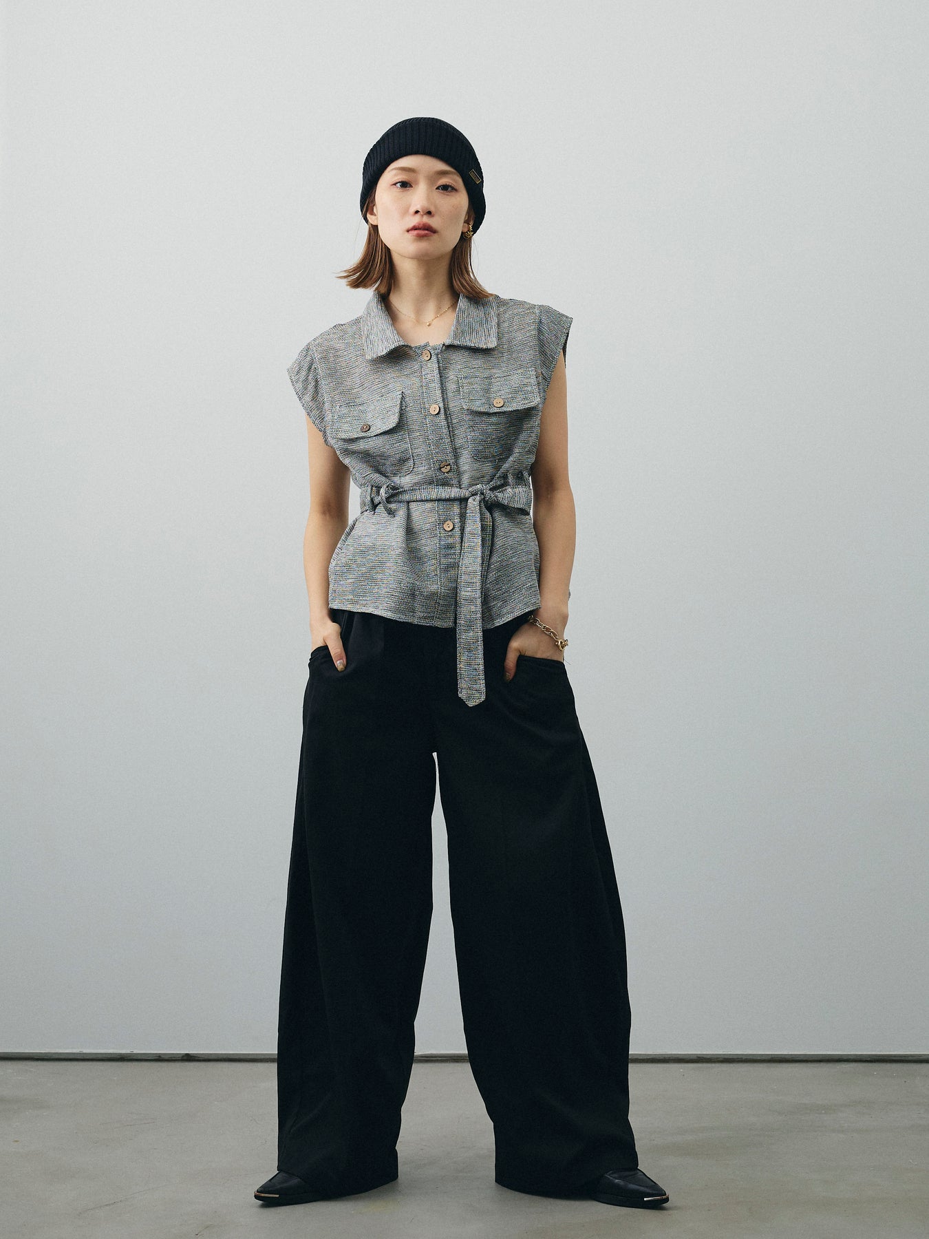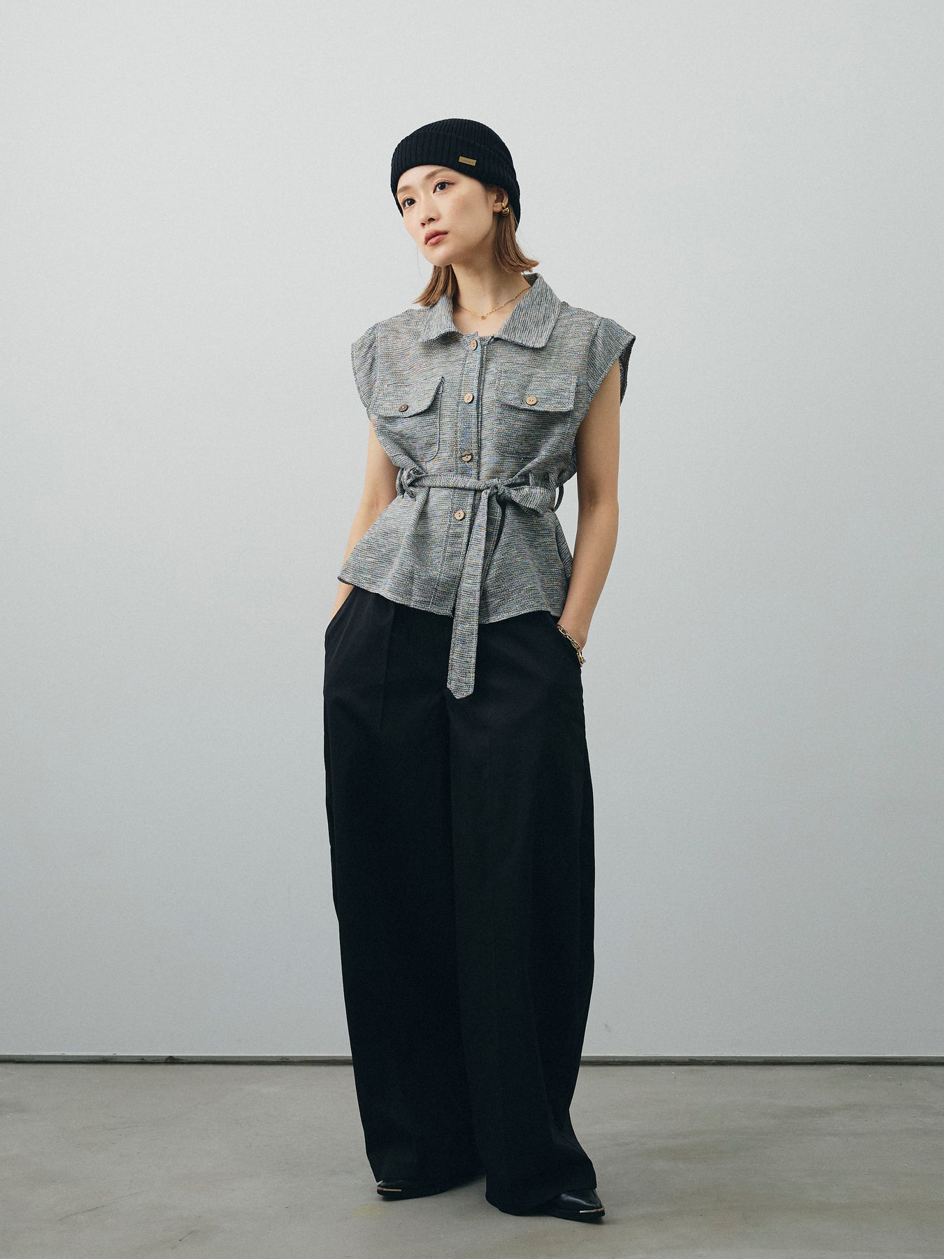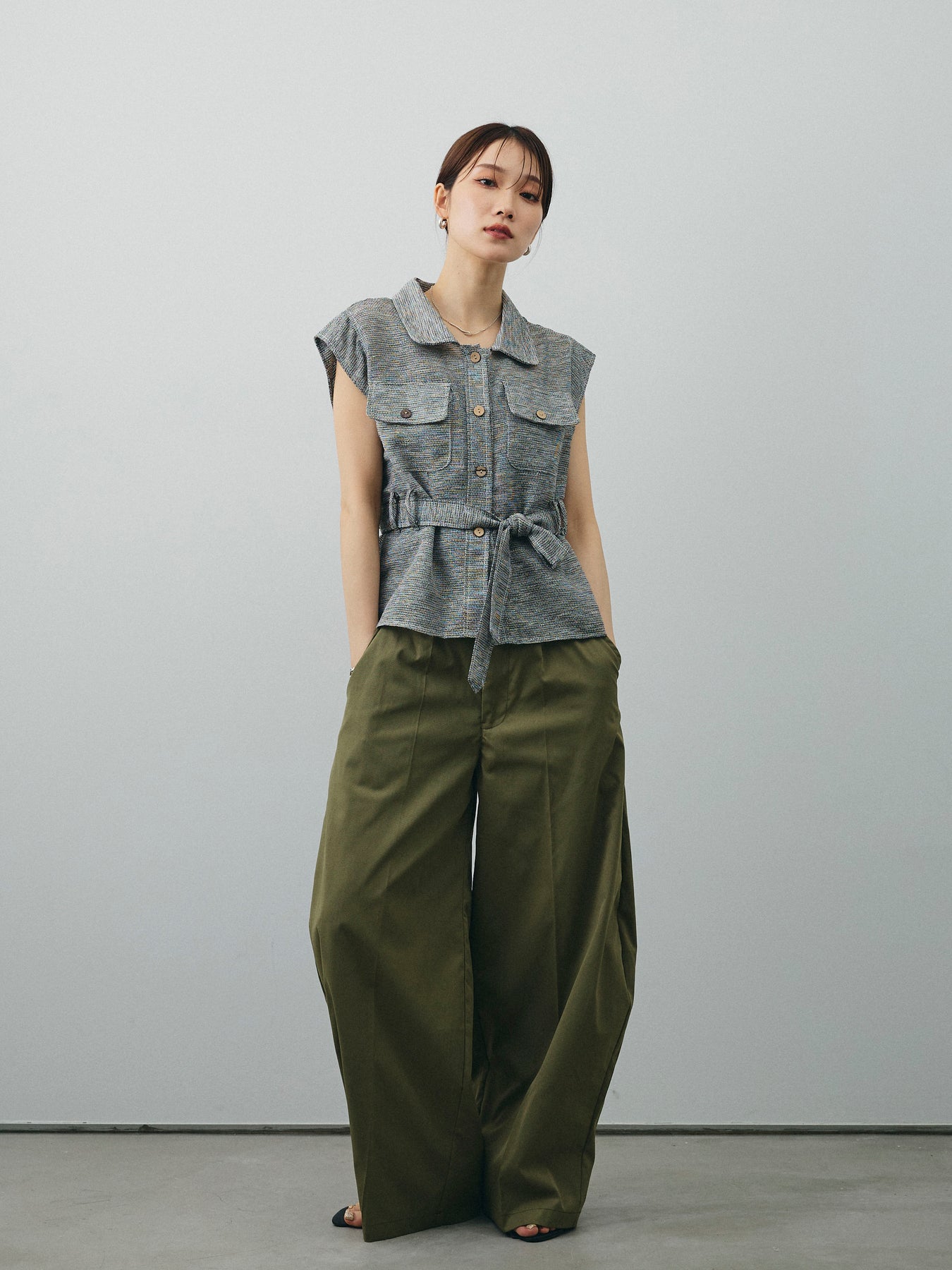 [SET]ミックスヤーンメッシュブラウス+コクーンワイドチノパンツ(2set)