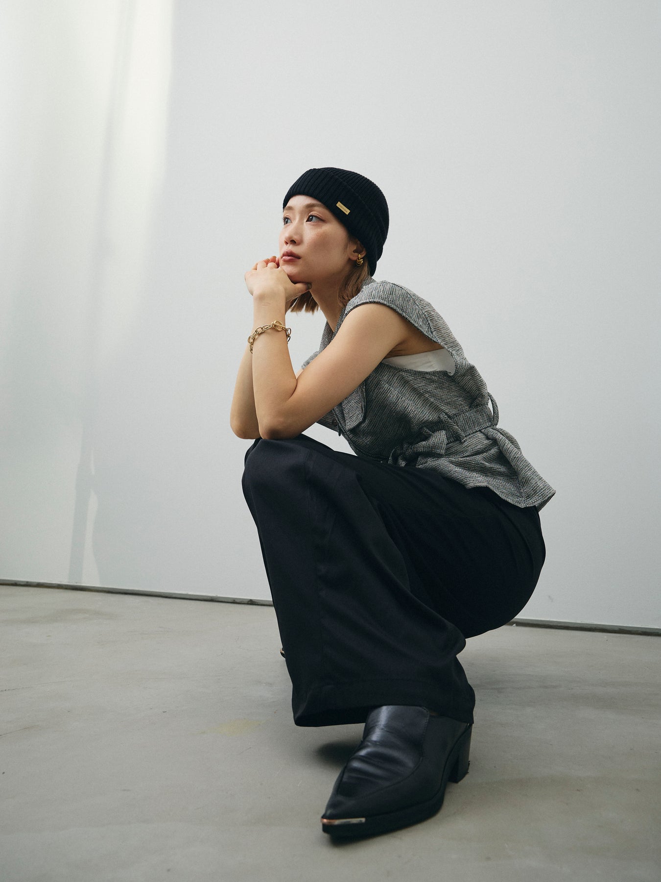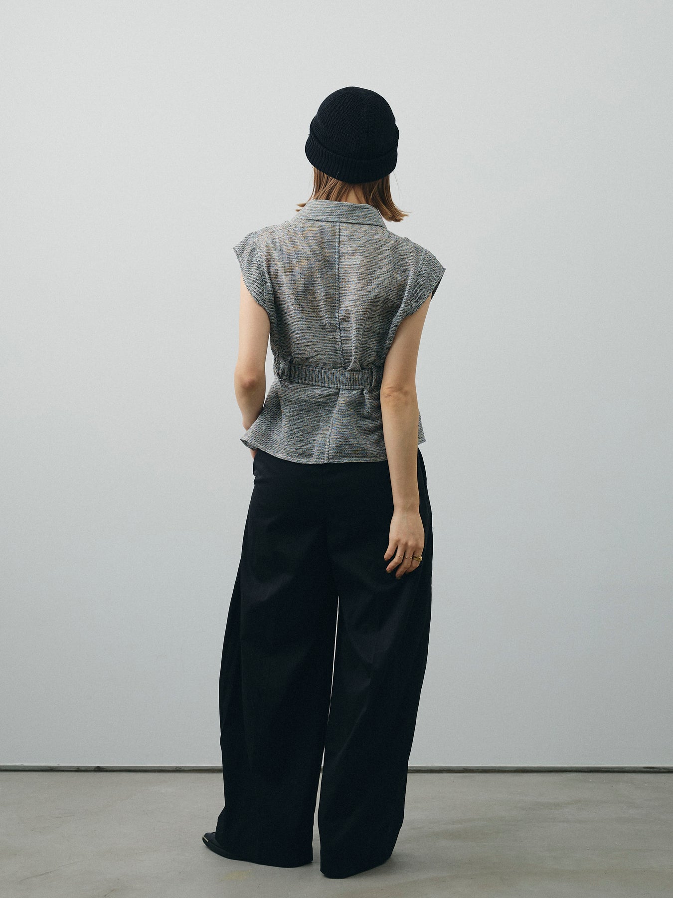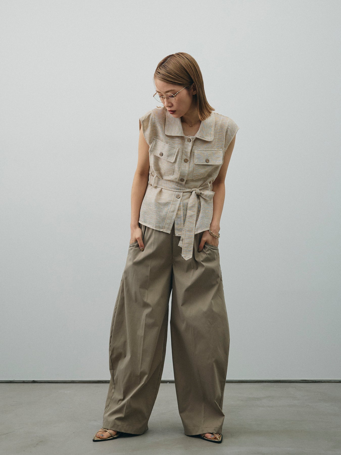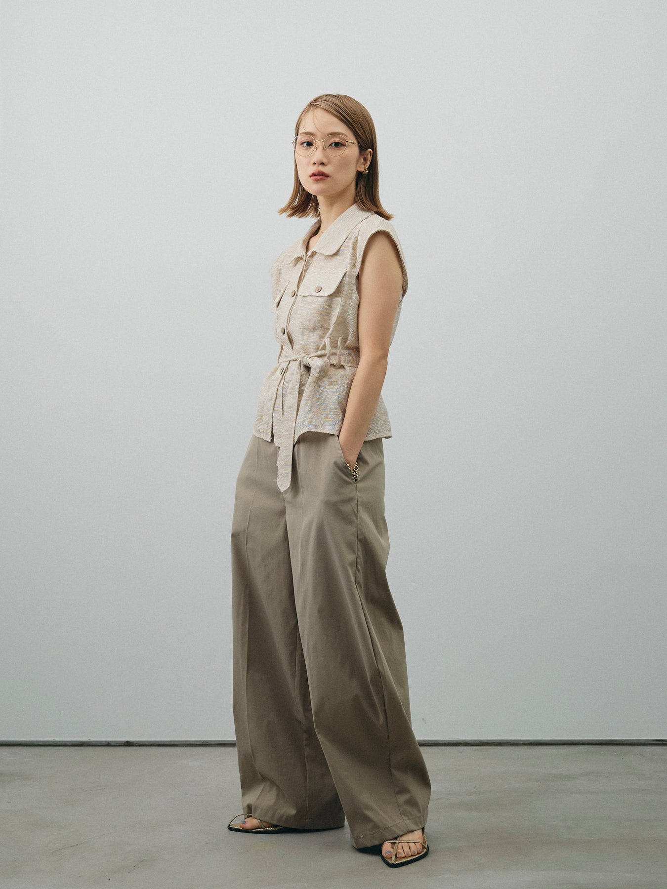 [SET]ミックスヤーンメッシュブラウス+コクーンワイドチノパンツ(2set)