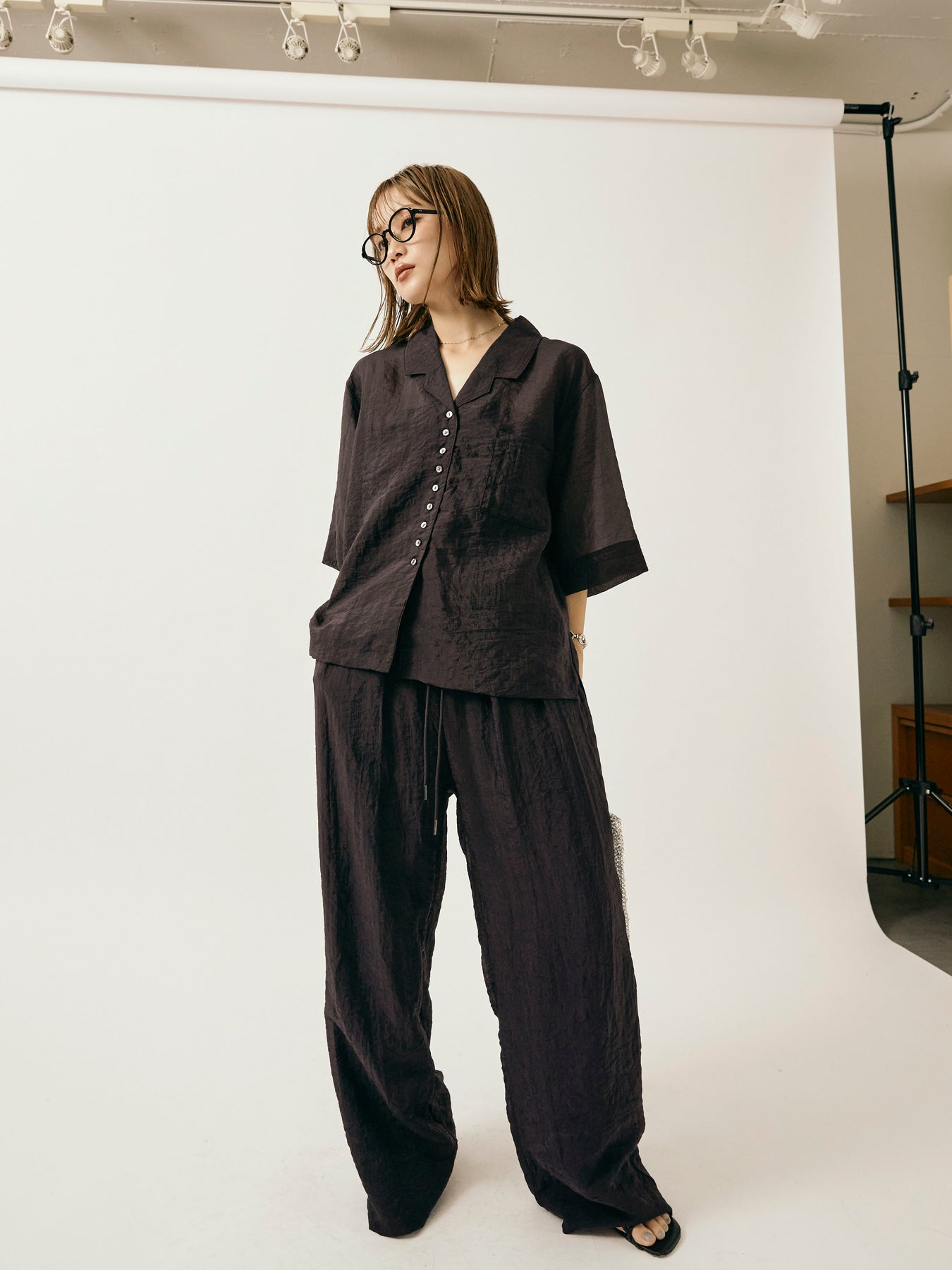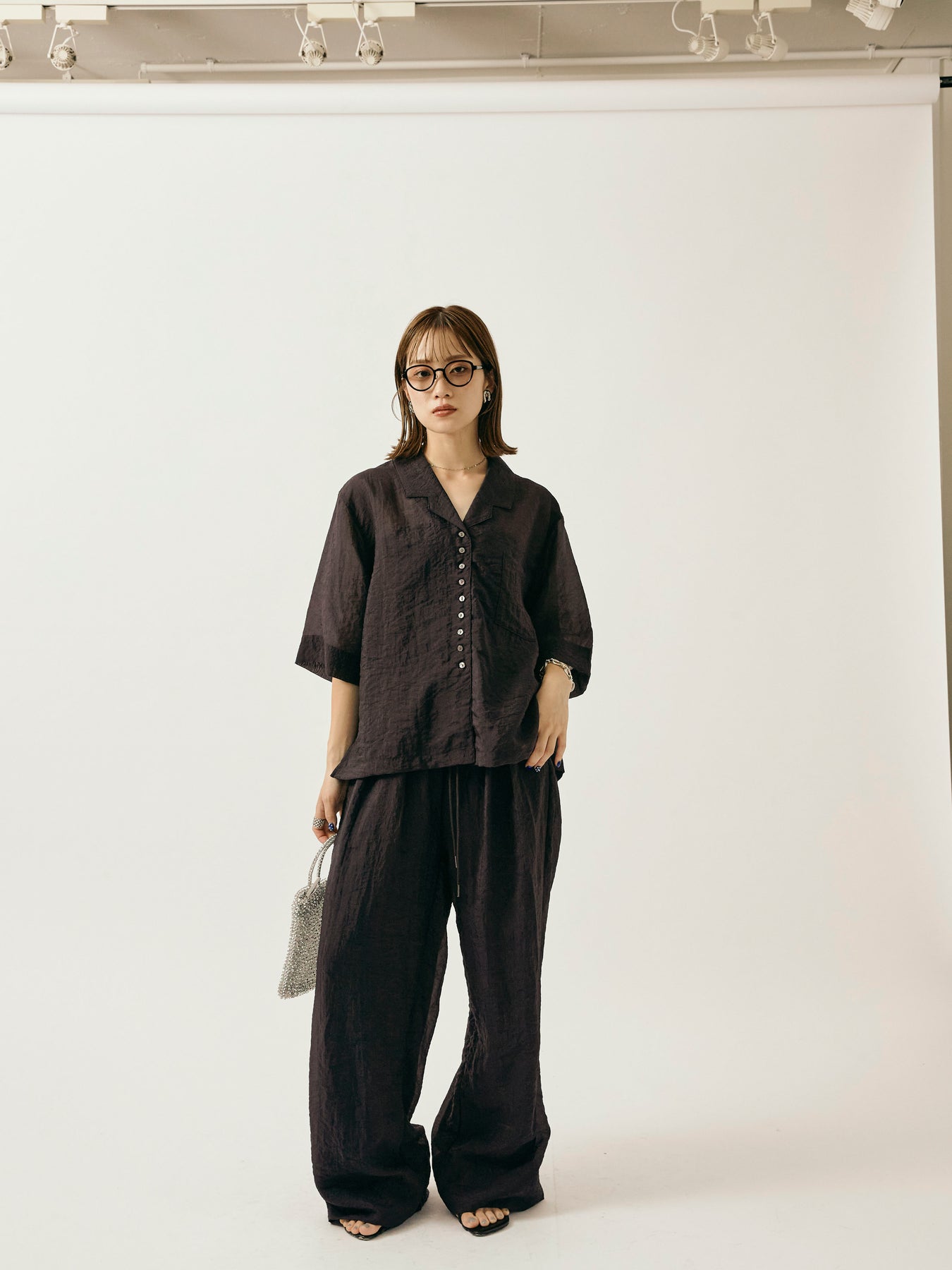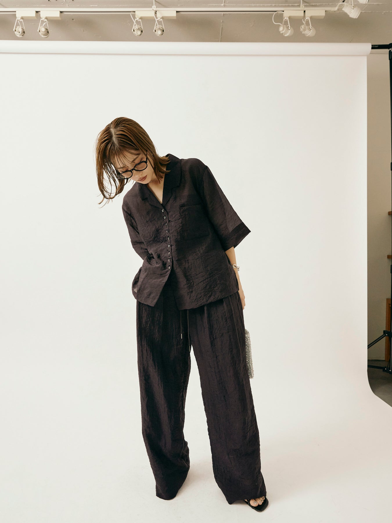 【Allure】[SET]シャイニースラブシアー開襟ハーフシャツ+シャイニースラブシアーワイドパンツ(2set)