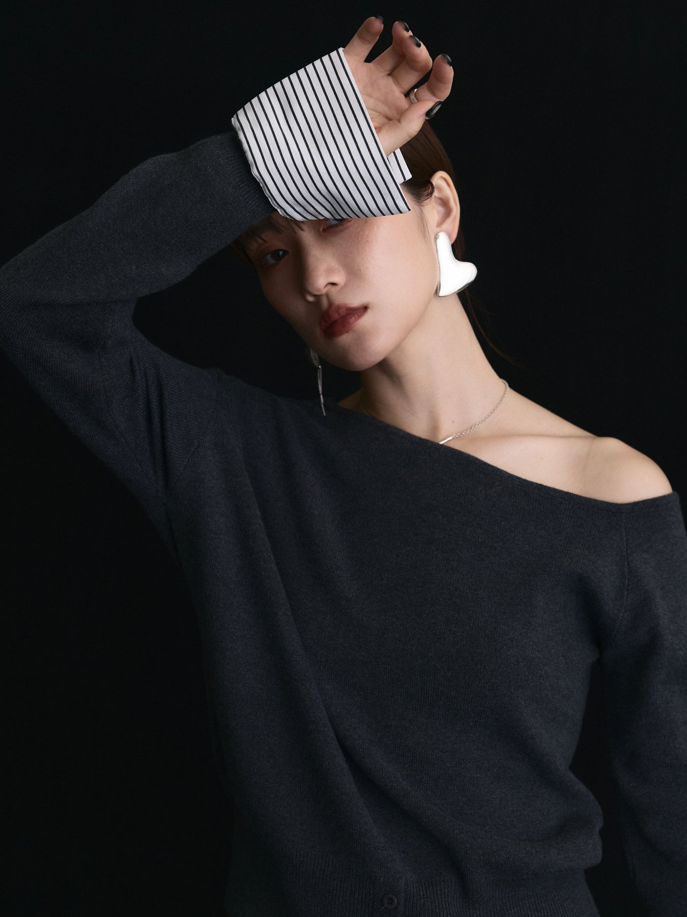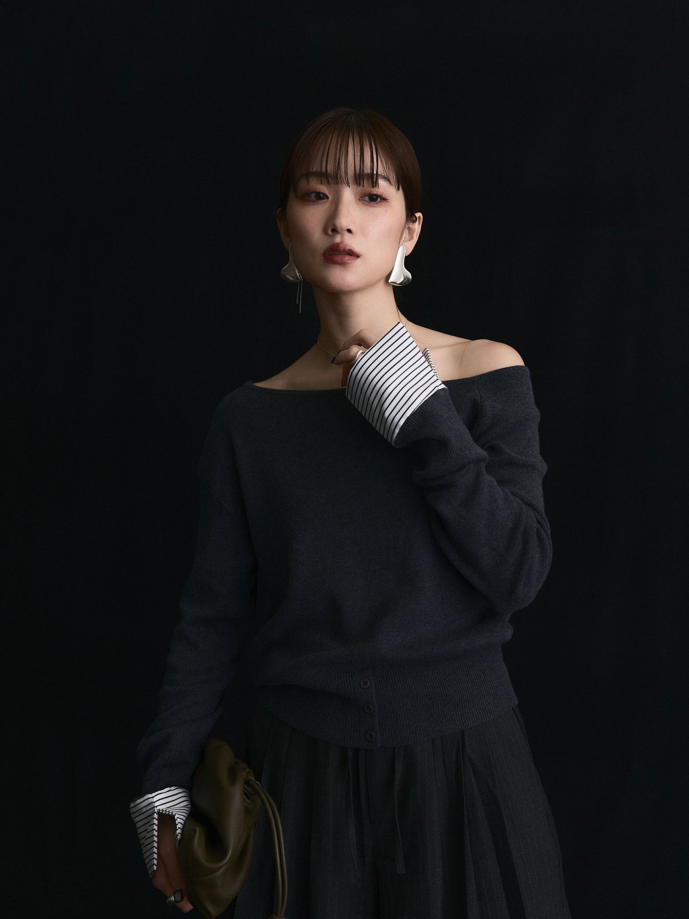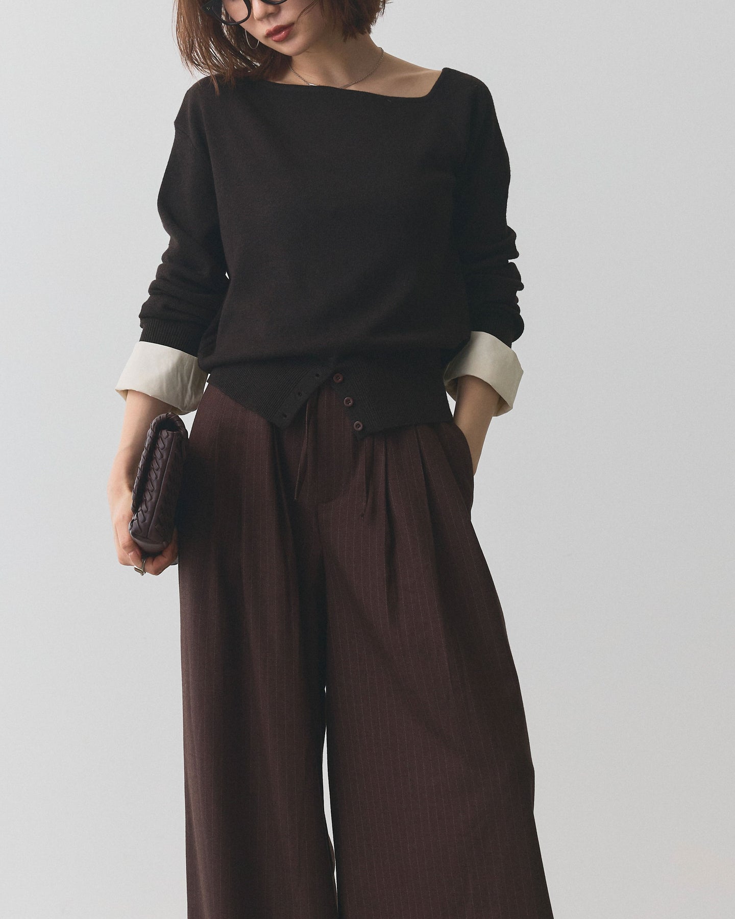【Allure】[SET]シャツカフスフロントスリットニットプルオーバー+シャツカフスフロントスリットニットプルオーバー(2set)