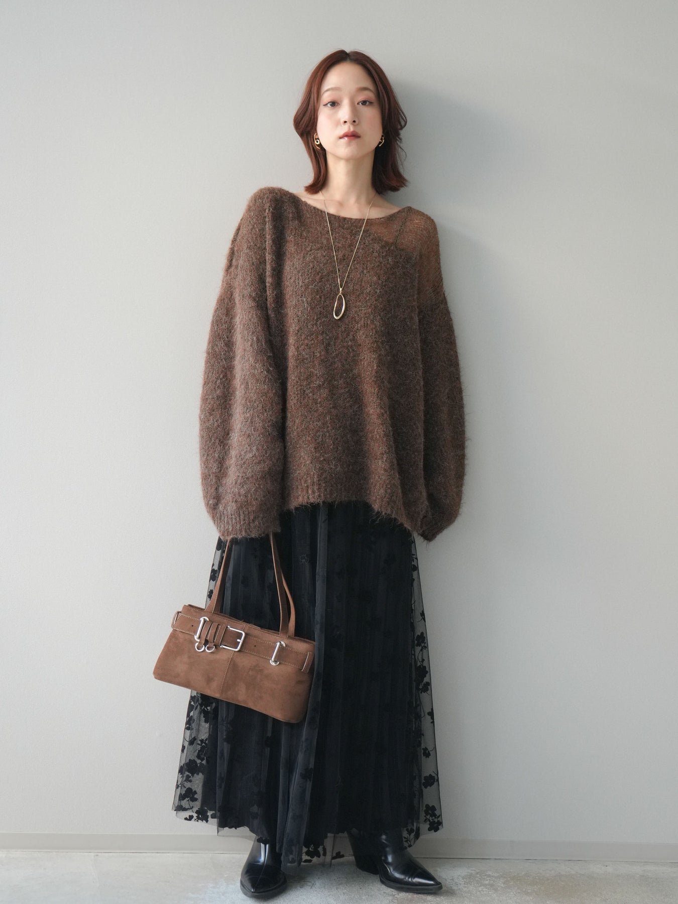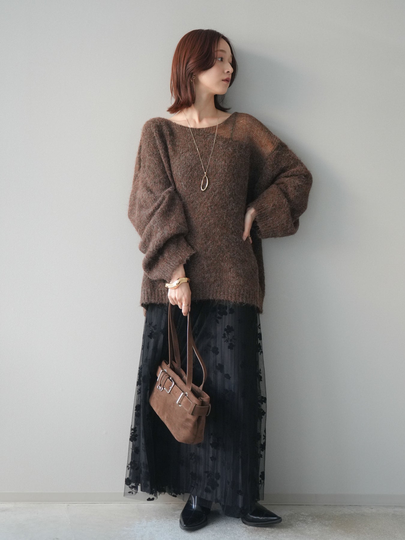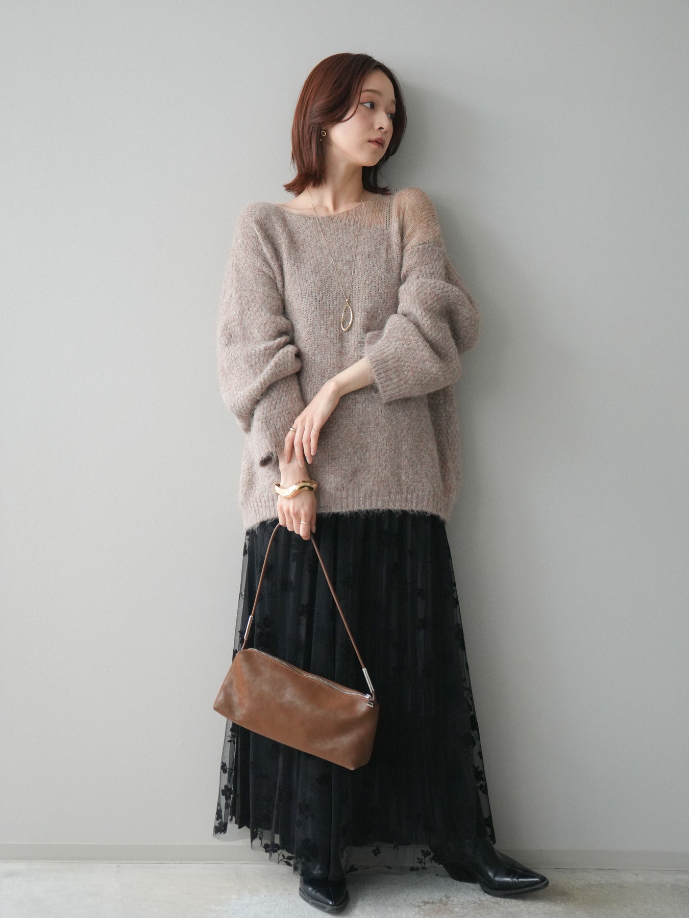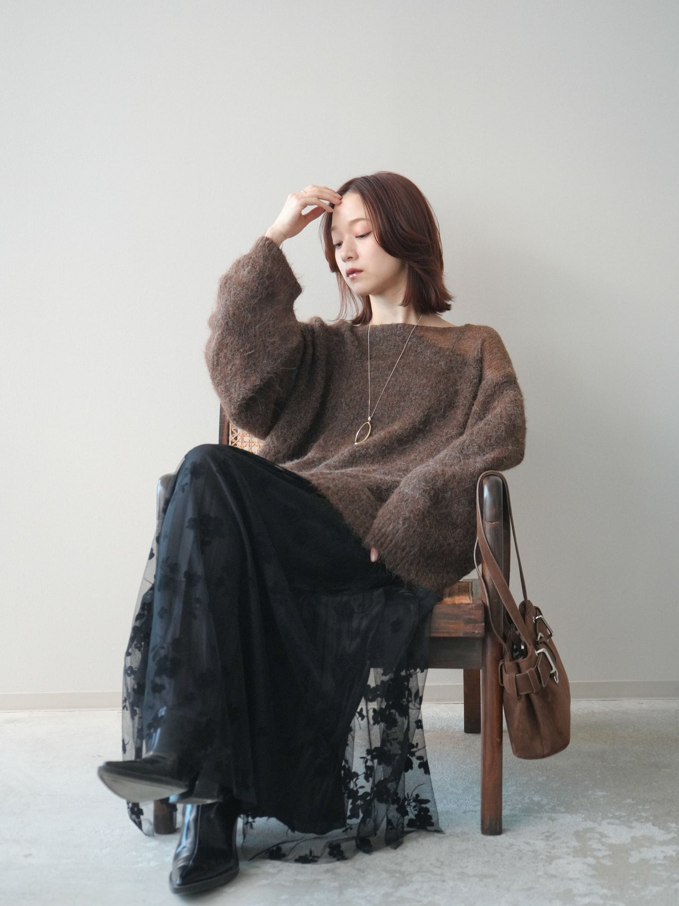 ふんわりとした柔らかなニットに透かし編みデザインをさりげなく組み合わせた、表情豊かなプルオーバー。ほんのりと見える編地の切り替えが抜け感を演出し、シンプルな中にも奥行きのある印象に仕上げています。ゆったりとしたシルエットがリラクシーな着心地を叶えつつ、女性らしいニュアンスをプラス。デニムにもスカートにも合わせやすく、デイリーに着回しやすい万能な一枚です。 ※ボトムス、キャミソール(インナー)以外の商品は一律でインナーは付属していません。