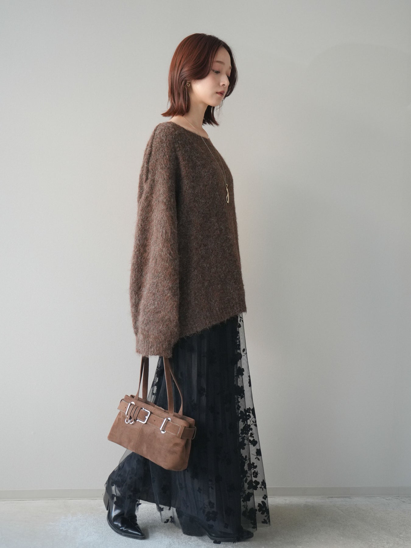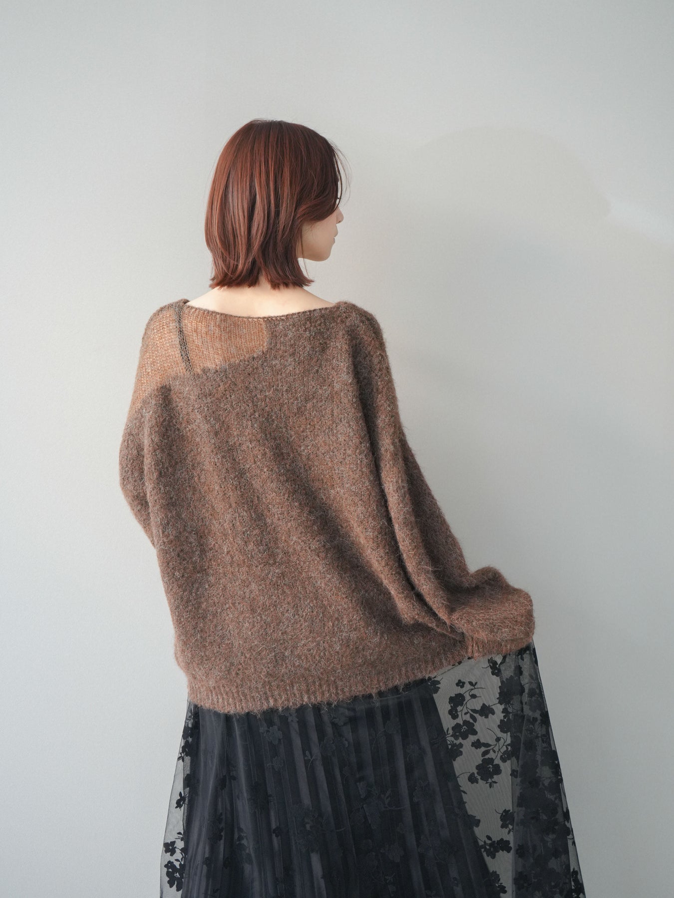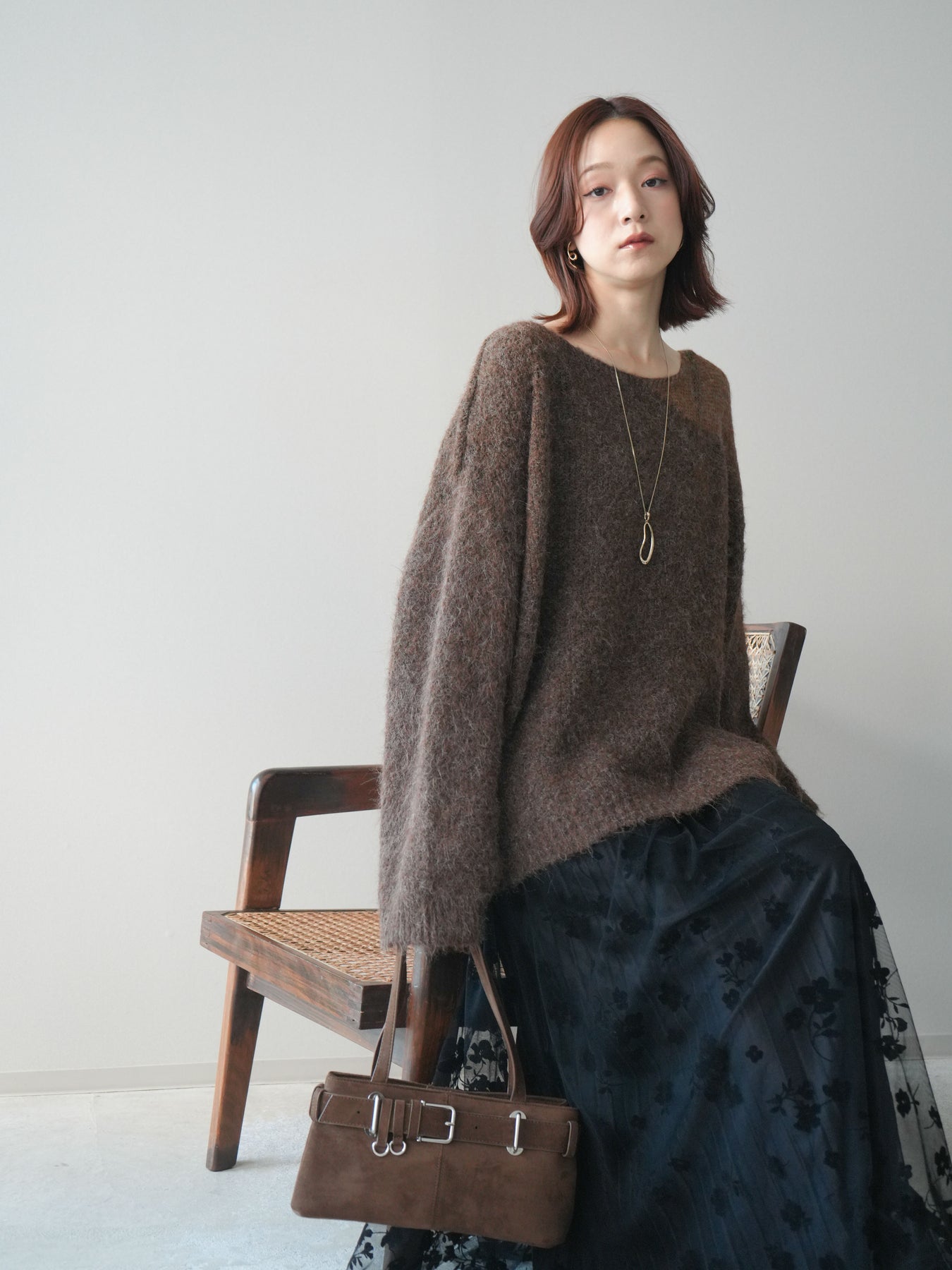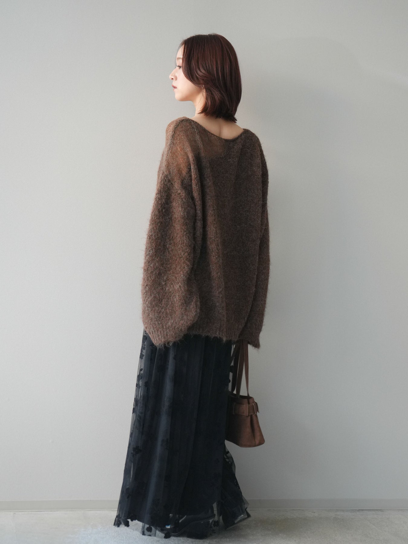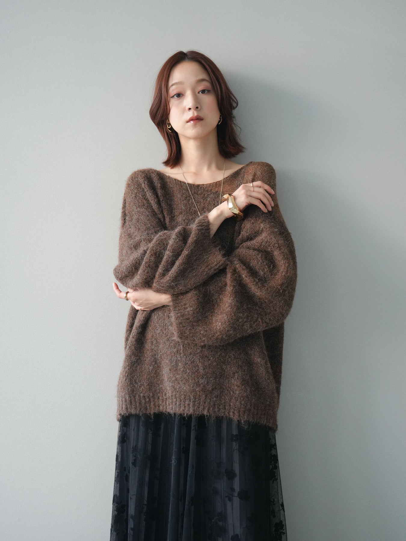 ふんわりとした柔らかなニットに透かし編みデザインをさりげなく組み合わせた、表情豊かなプルオーバー。ほんのりと見える編地の切り替えが抜け感を演出し、シンプルな中にも奥行きのある印象に仕上げています。ゆったりとしたシルエットがリラクシーな着心地を叶えつつ、女性らしいニュアンスをプラス。デニムにもスカートにも合わせやすく、デイリーに着回しやすい万能な一枚です。 ※ボトムス、キャミソール(インナー)以外の商品は一律でインナーは付属していません。