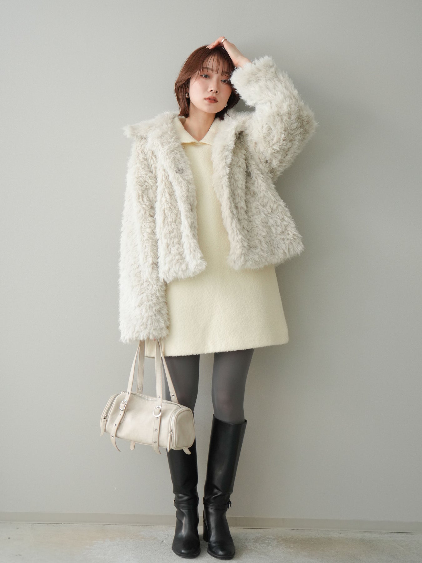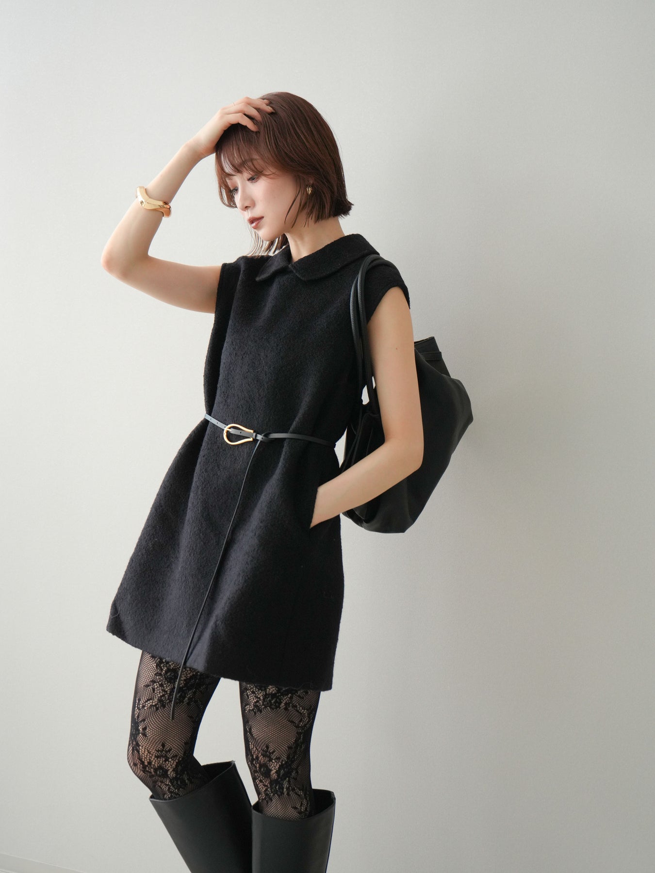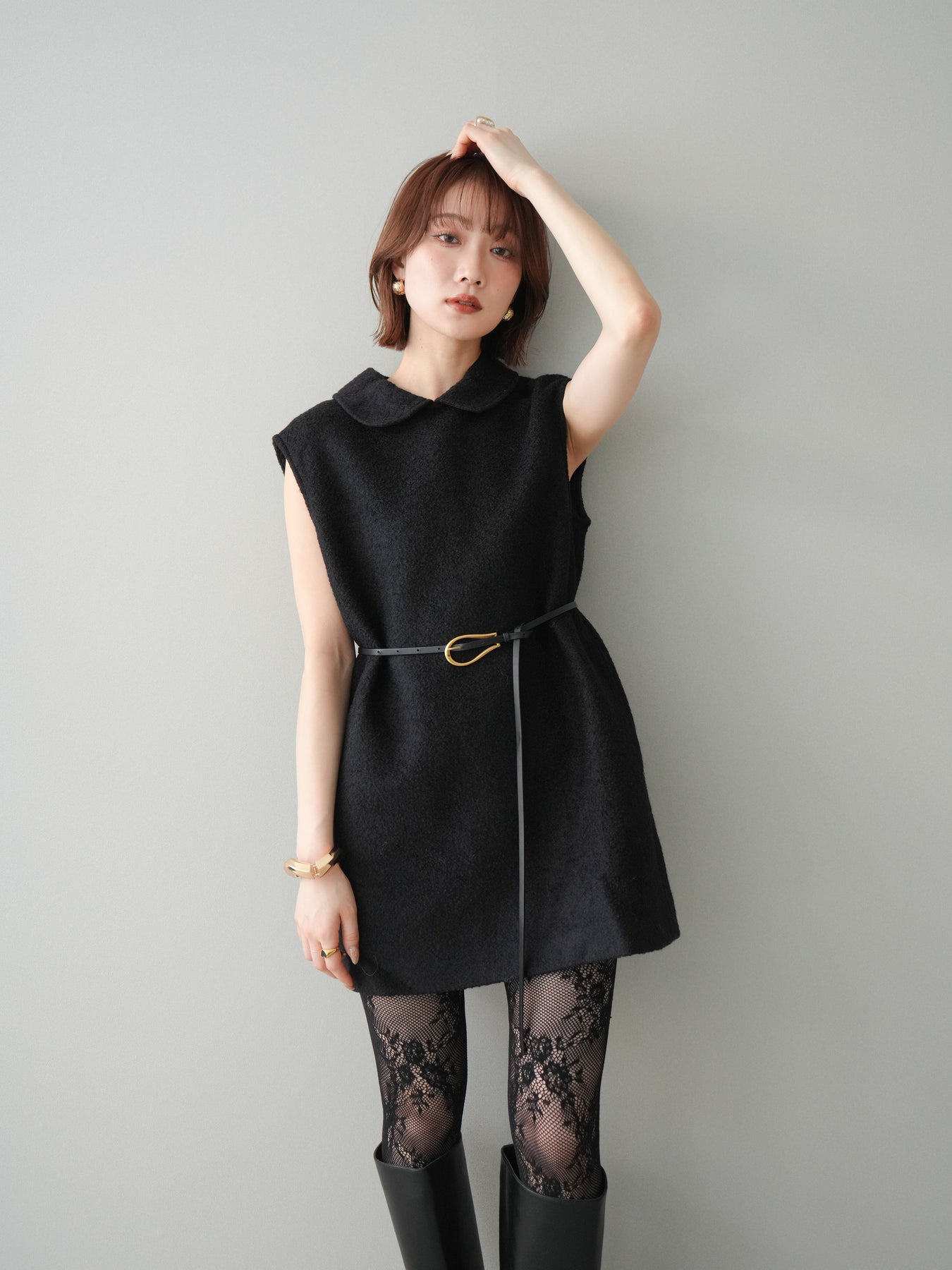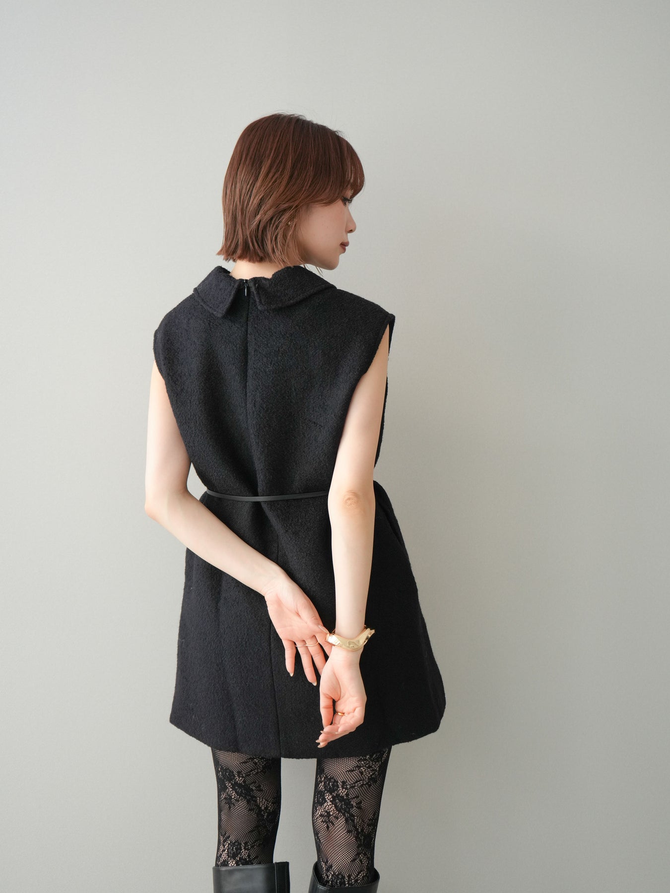 表情のあるブークレ素材が上品な印象を与える、襟付きデザインのミニワンピース。 柔らかな凹凸感のある生地が立体感を生み、シンプルながらも存在感のある一着に仕上がっています。 コンパクトな襟がきちんと感をプラスし、レイヤード次第で幅広いスタイリングが楽しめるデザイン。 程よくゆとりのあるシルエットで、体のラインを拾いすぎず、バランス良く着こなせます。 一枚ではもちろん、ボトムと合わせたレイヤードスタイルもおすすめのアイテムです。 ※ボトムス、キャミソール(インナー)以外の商品は一律でインナーは付属していません。