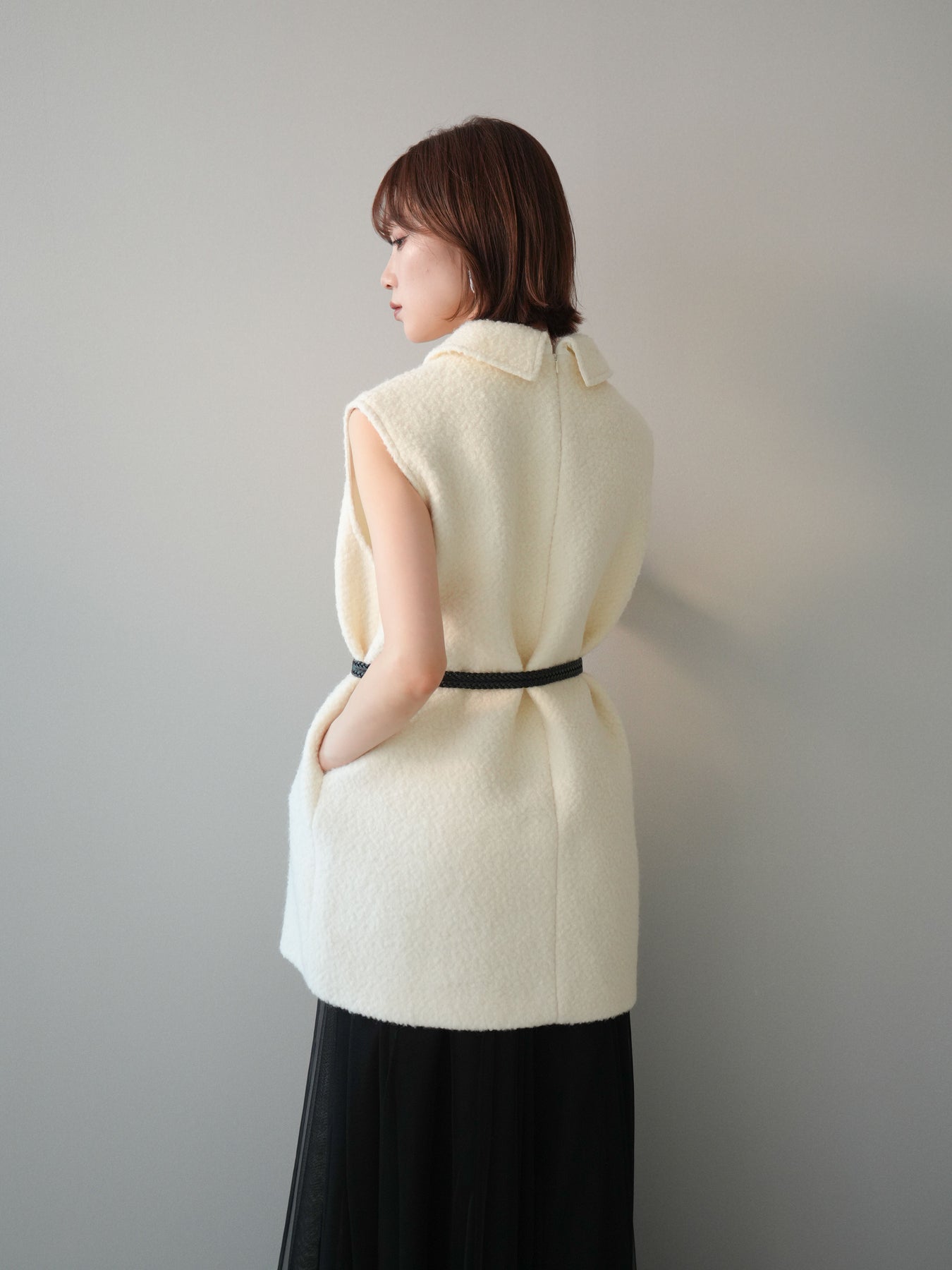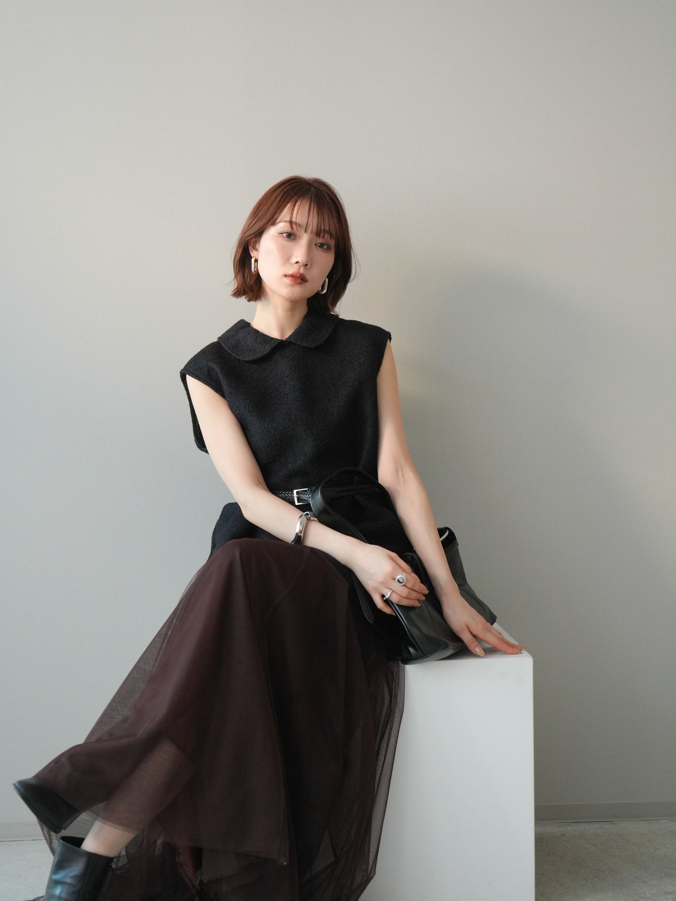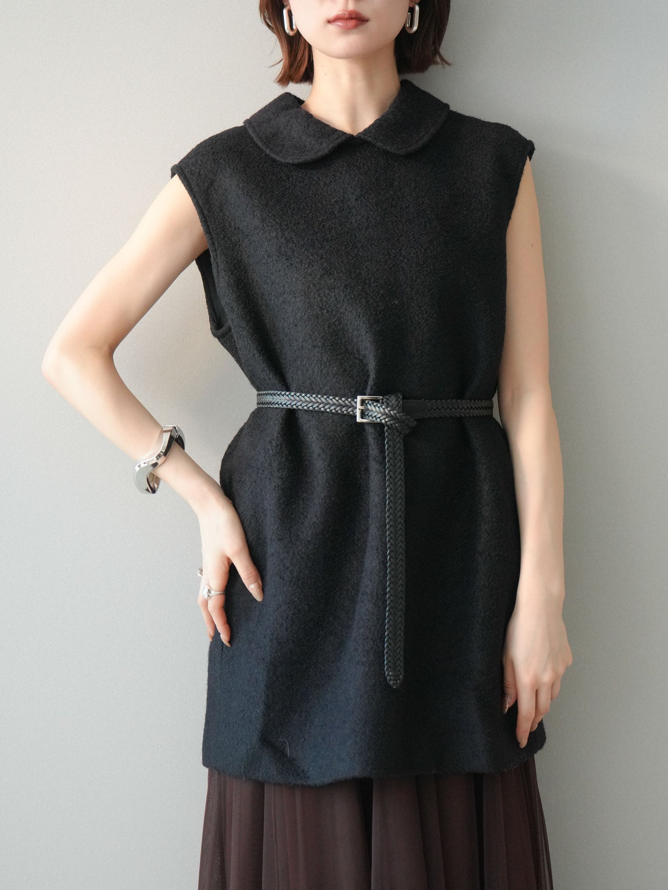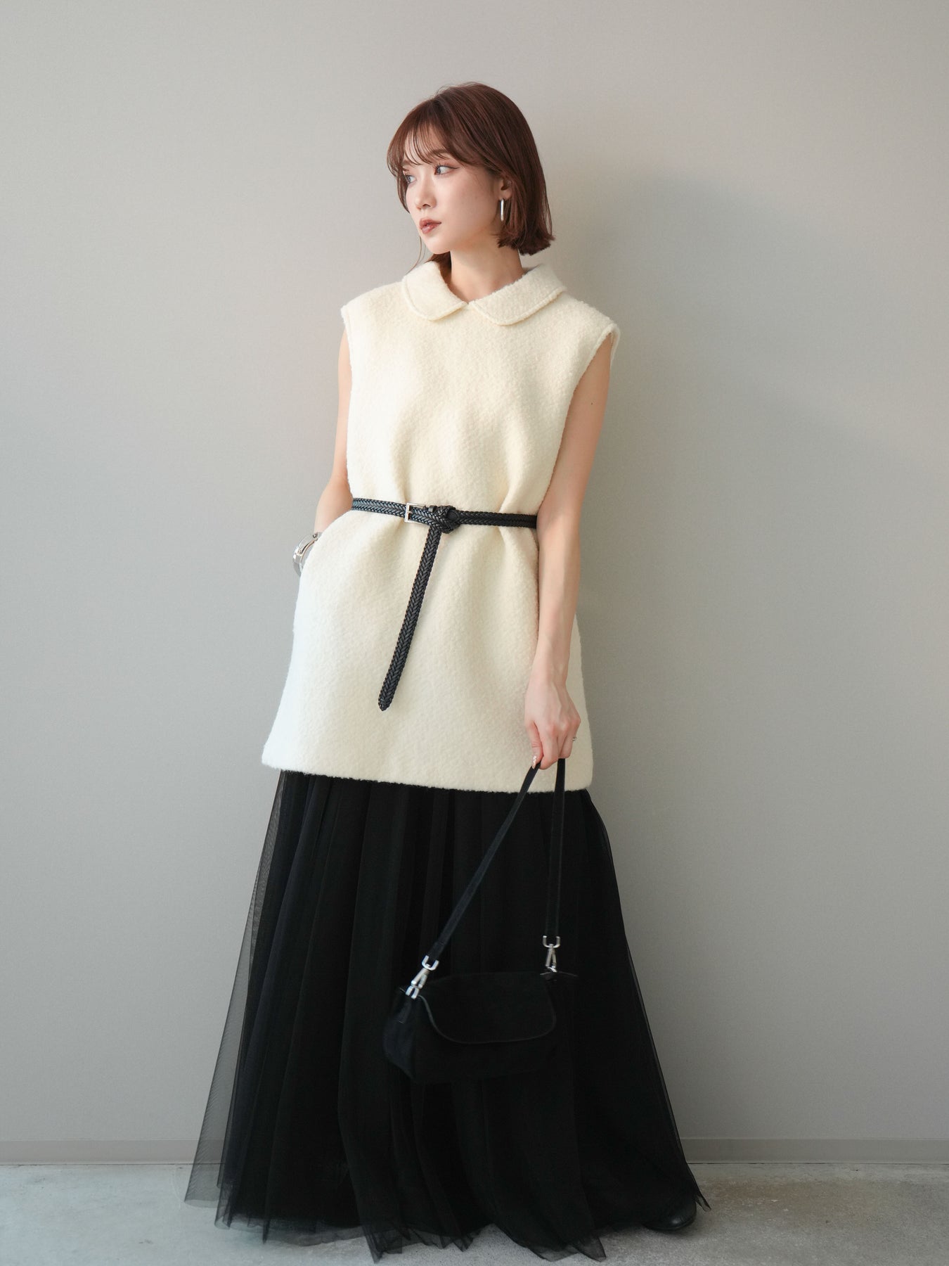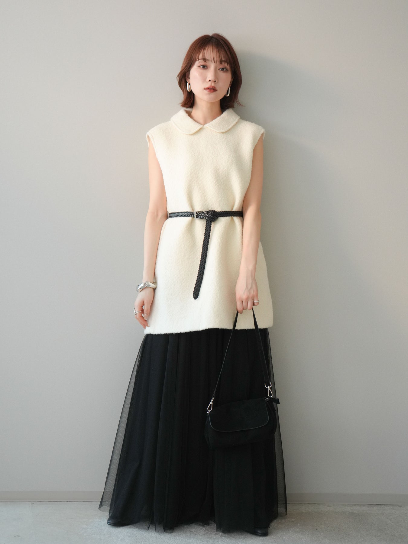表情のあるブークレ素材が上品な印象を与える、襟付きデザインのミニワンピース。 柔らかな凹凸感のある生地が立体感を生み、シンプルながらも存在感のある一着に仕上がっています。 コンパクトな襟がきちんと感をプラスし、レイヤード次第で幅広いスタイリングが楽しめるデザイン。 程よくゆとりのあるシルエットで、体のラインを拾いすぎず、バランス良く着こなせます。 一枚ではもちろん、ボトムと合わせたレイヤードスタイルもおすすめのアイテムです。 ※ボトムス、キャミソール(インナー)以外の商品は一律でインナーは付属していません。