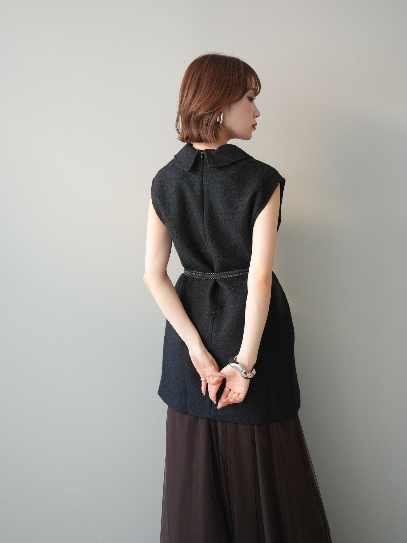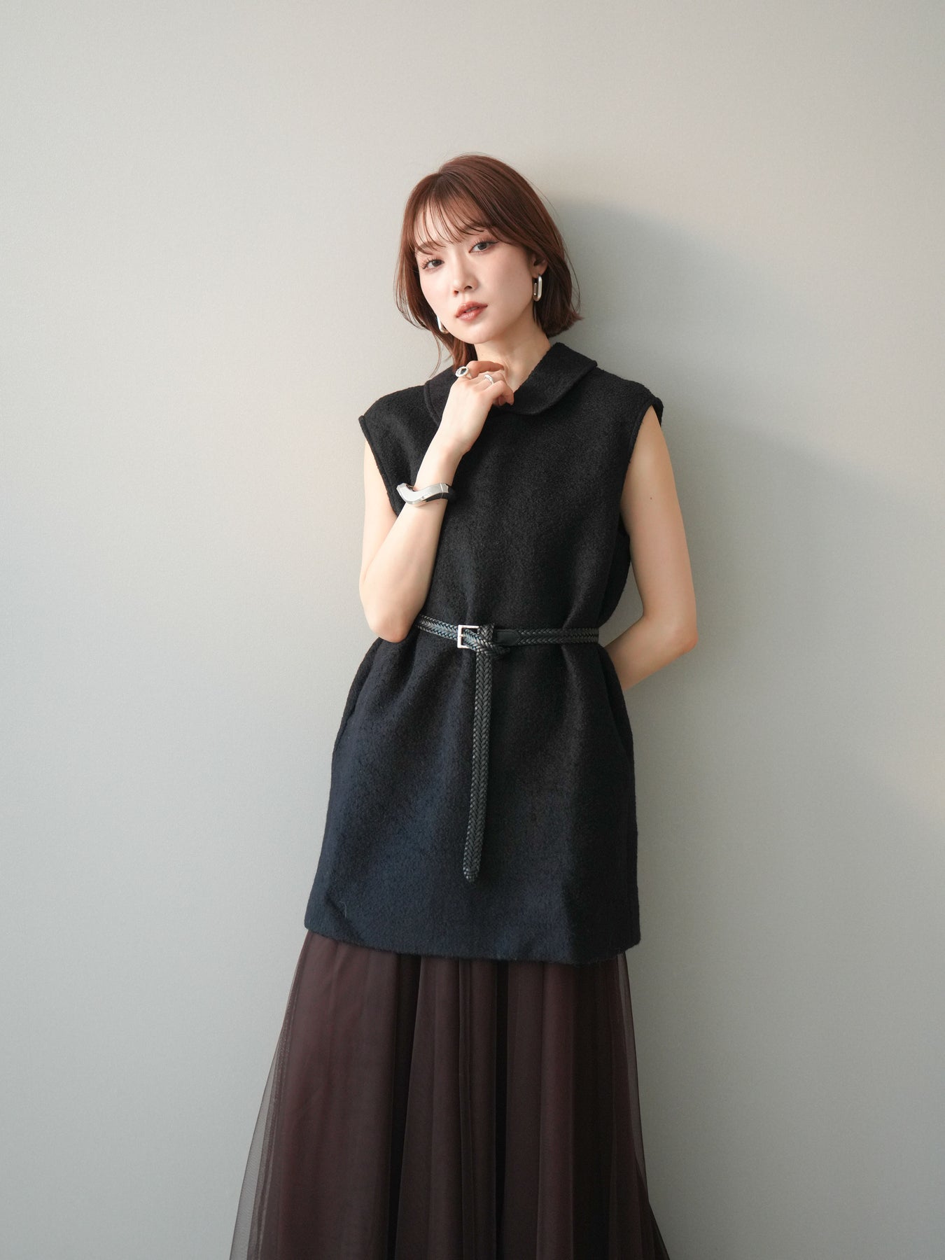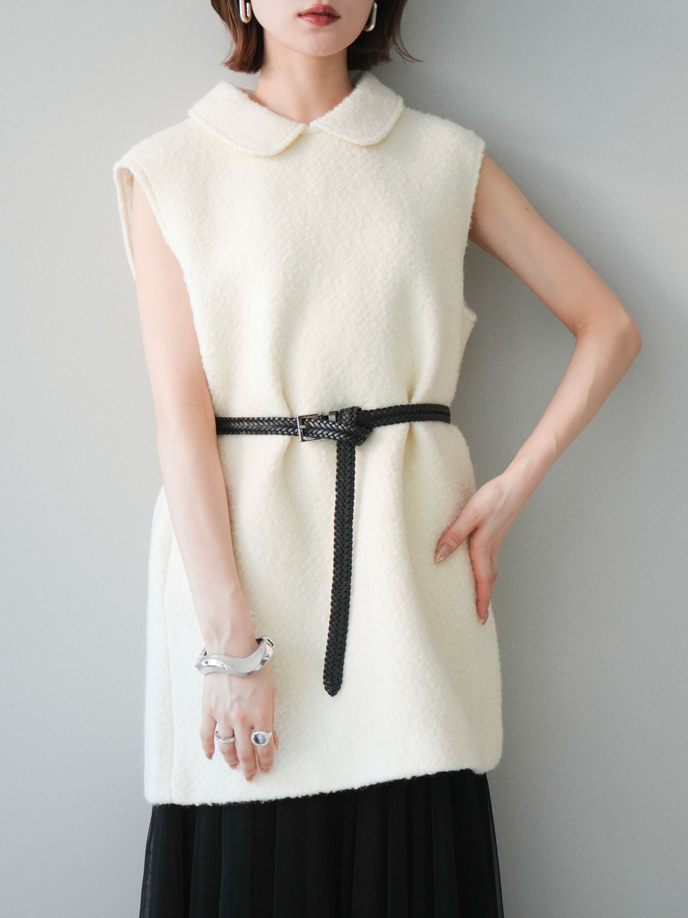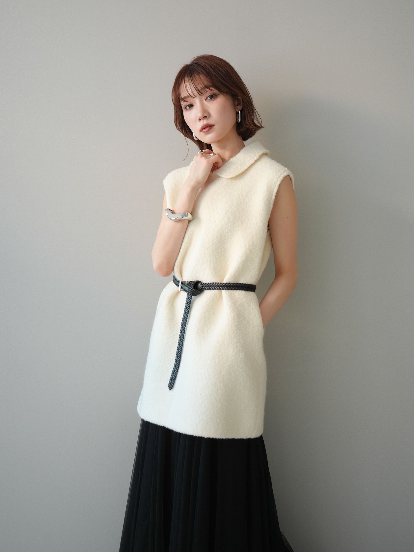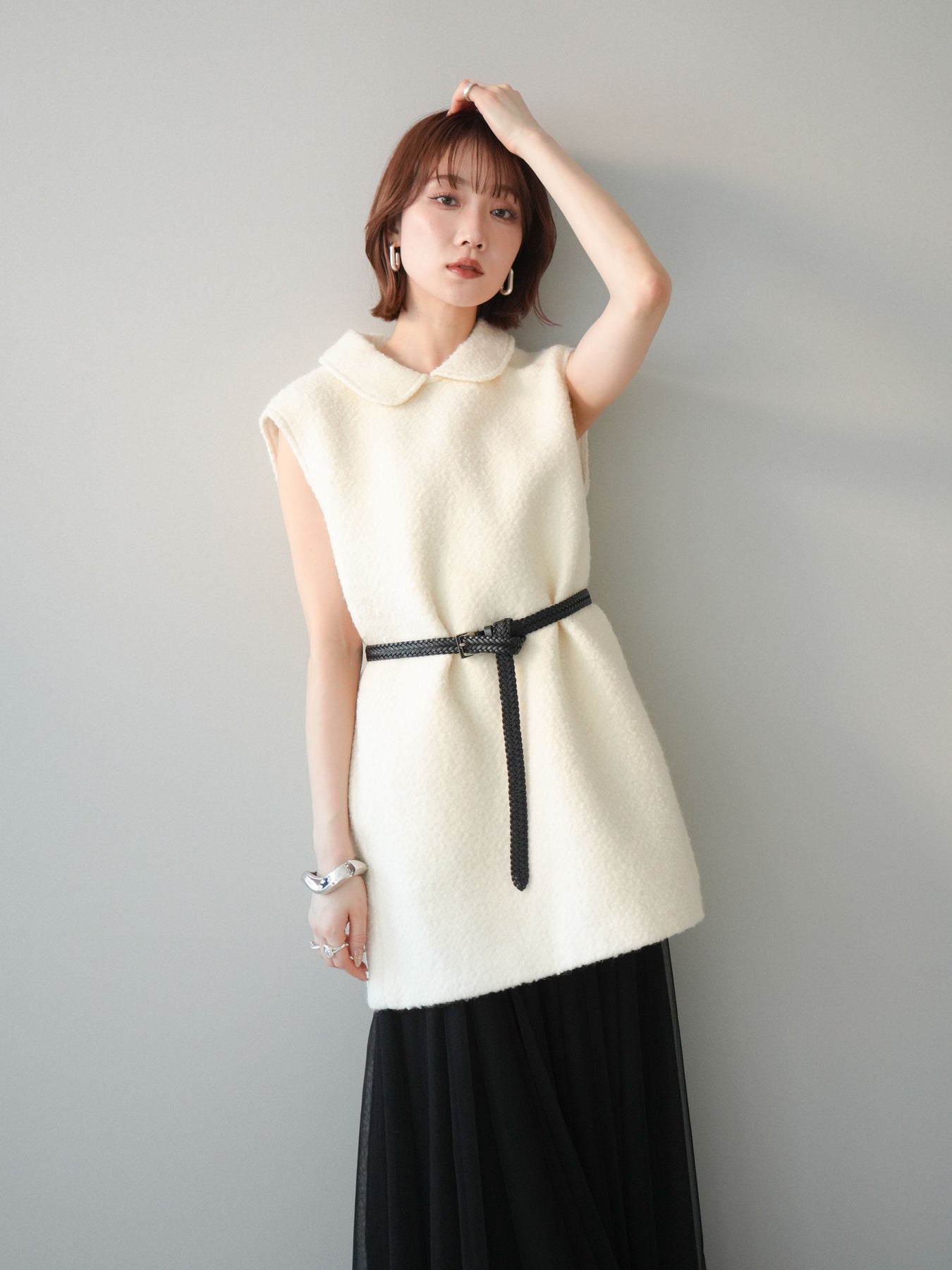 表情のあるブークレ素材が上品な印象を与える、襟付きデザインのミニワンピース。 柔らかな凹凸感のある生地が立体感を生み、シンプルながらも存在感のある一着に仕上がっています。 コンパクトな襟がきちんと感をプラスし、レイヤード次第で幅広いスタイリングが楽しめるデザイン。 程よくゆとりのあるシルエットで、体のラインを拾いすぎず、バランス良く着こなせます。 一枚ではもちろん、ボトムと合わせたレイヤードスタイルもおすすめのアイテムです。 ※ボトムス、キャミソール(インナー)以外の商品は一律でインナーは付属していません。