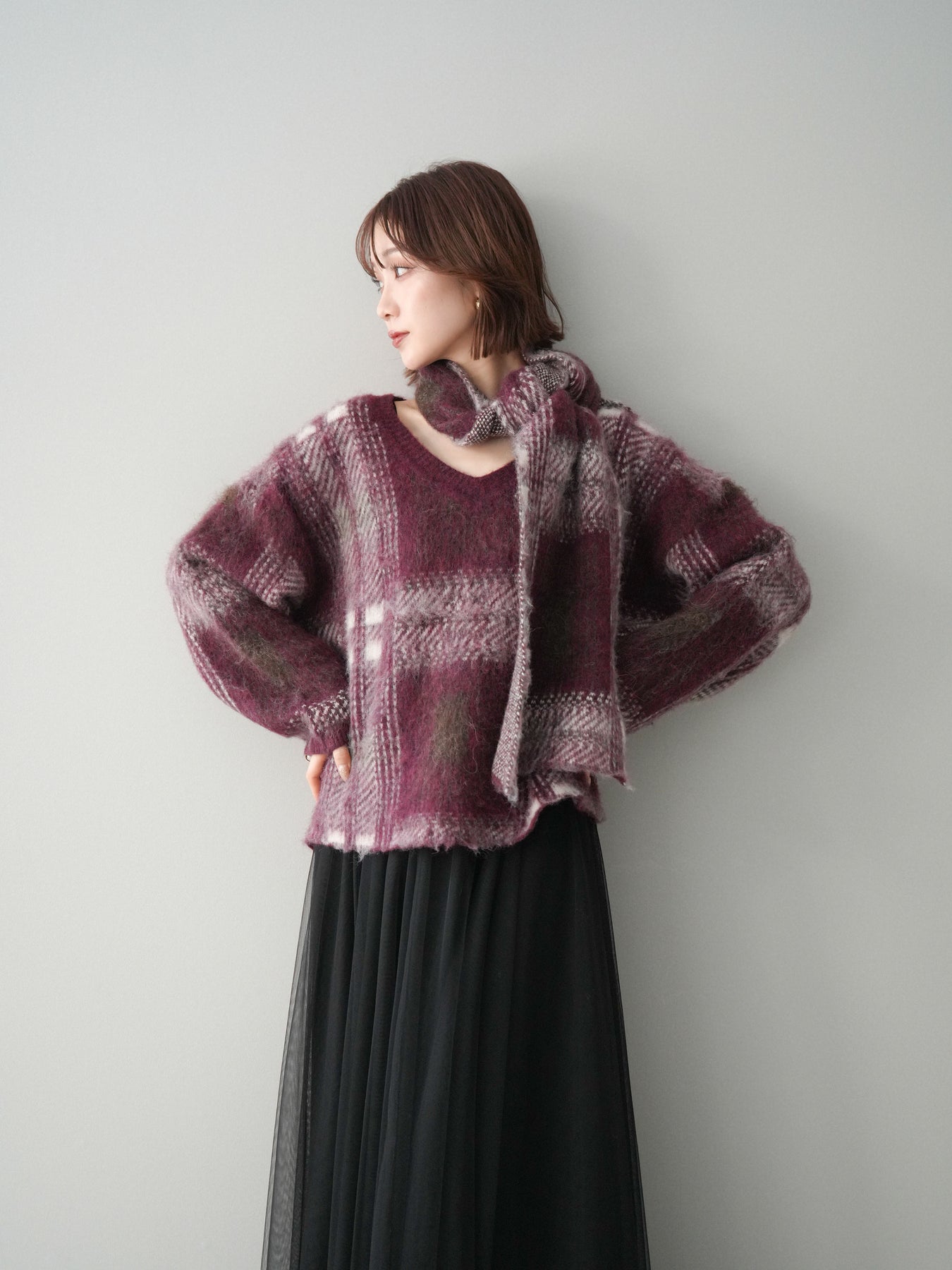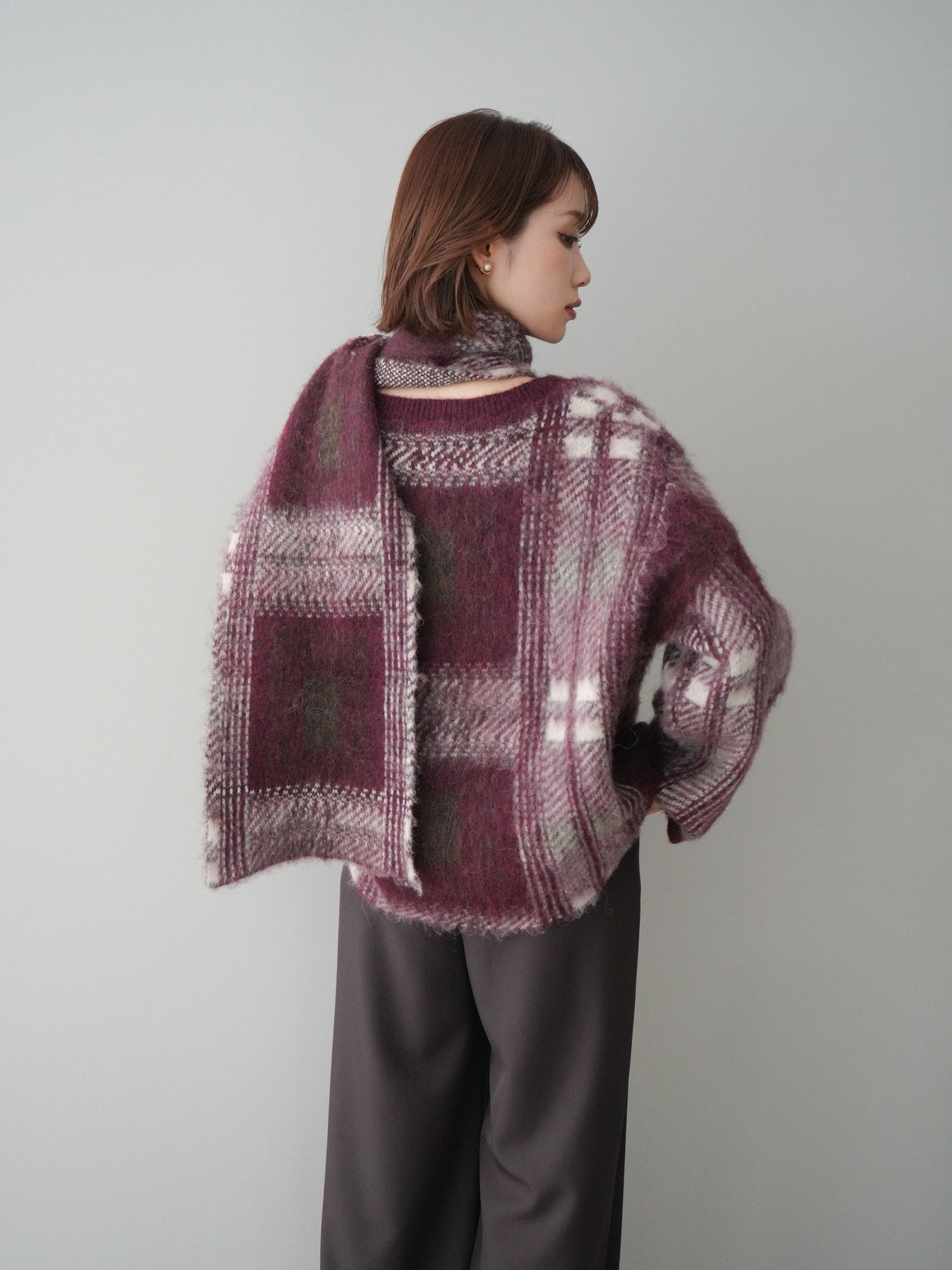 [予約]ストール付シャギーチェックニットプルオーバー + [予約]ストール付シャギーチェックニットプルオーバー