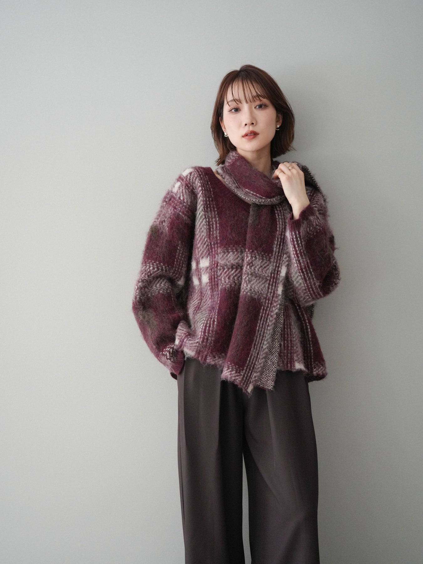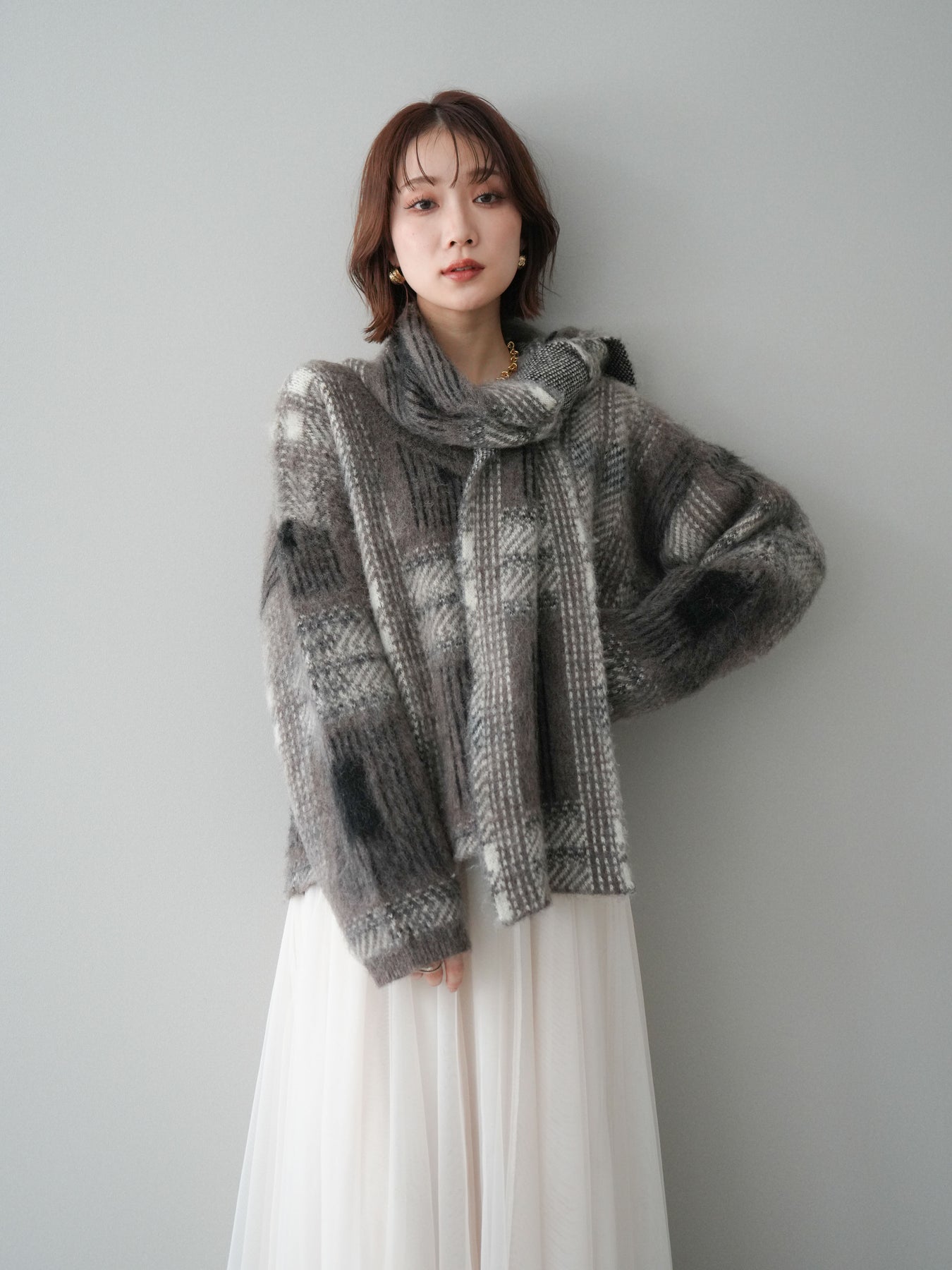 ◆ [予約]ストール付シャギーチェックニットプルオーバー