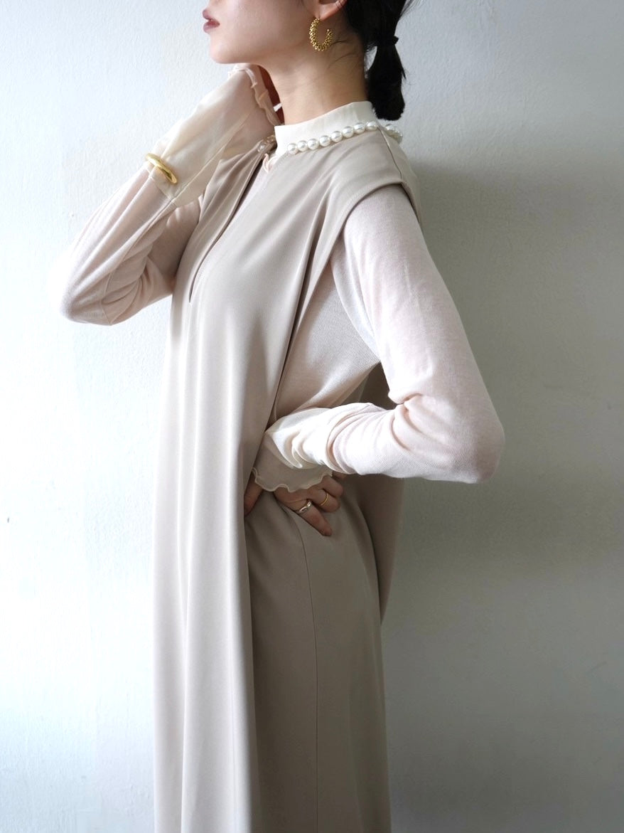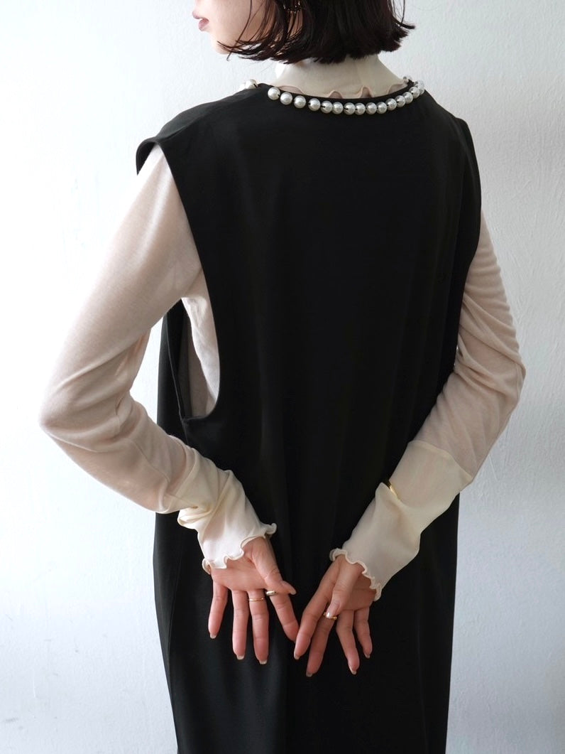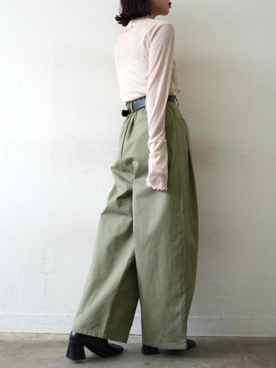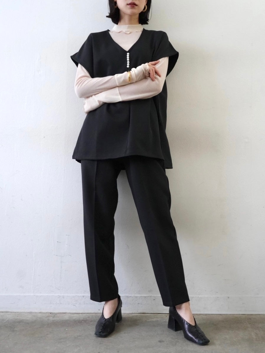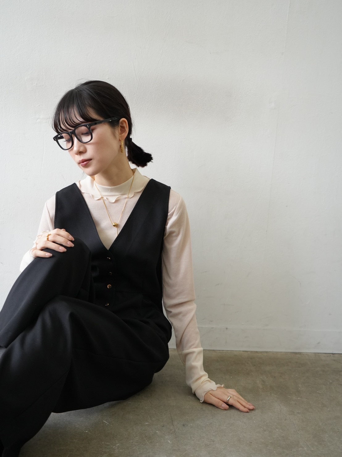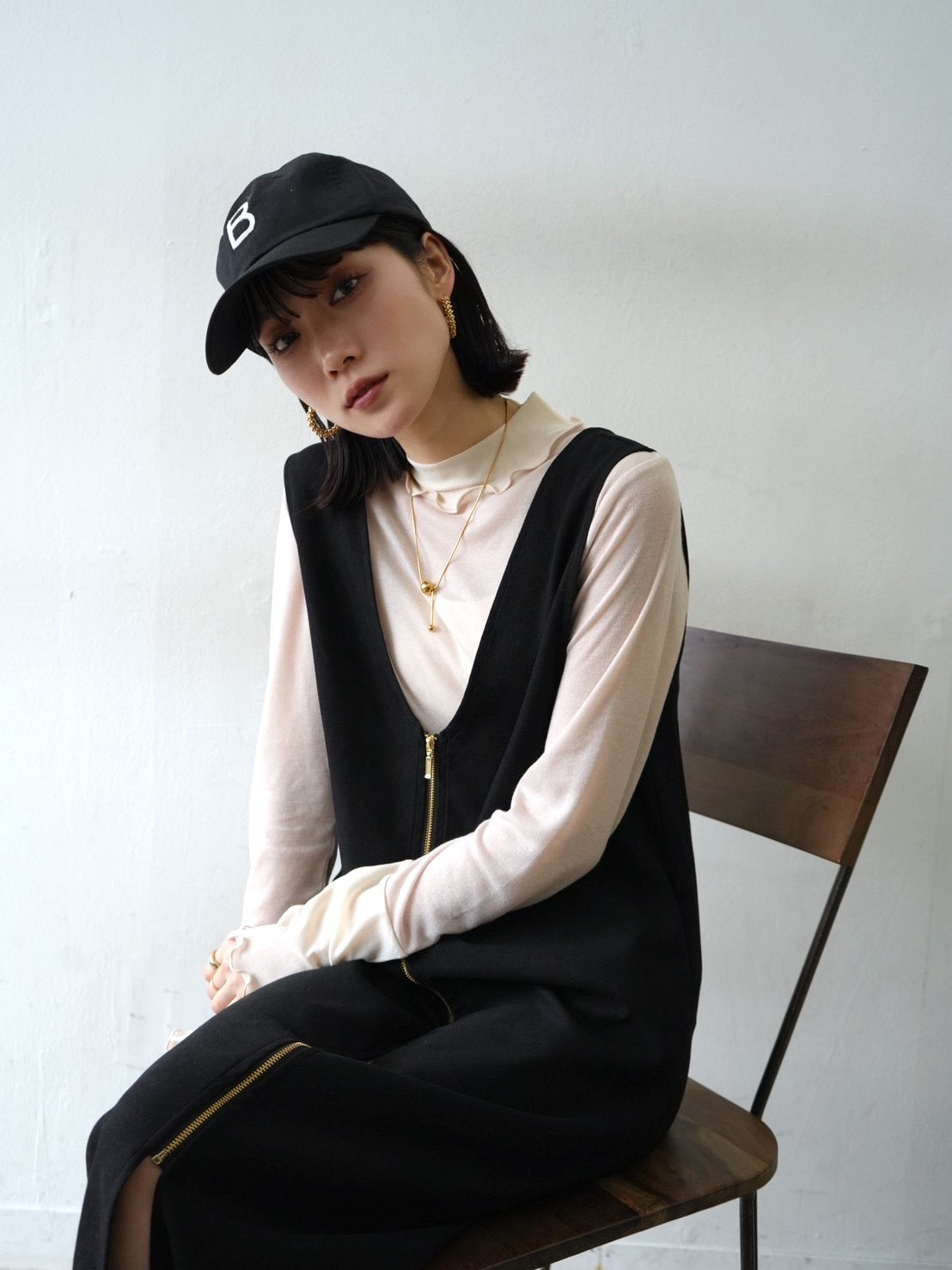 異素材切り替えのコットンガーゼトップスは、メローを施したフェミニンな一着です。柔らかな素材感で肌心地が良く、薄手なのでインナーとしても重宝します。長めの袖はクシュっと弛ませたり、重ねたニットの袖口から覗かせたりと、手元を印象的に見せることができ、着るだけおしゃれ見えするコーデが叶います。