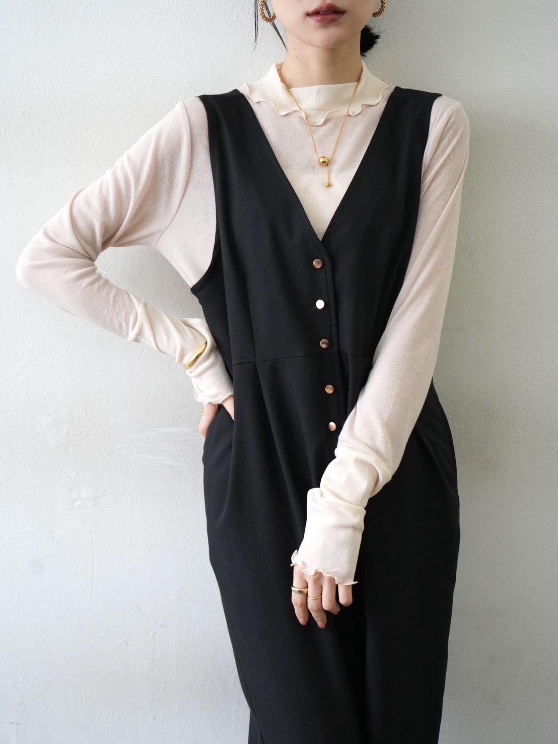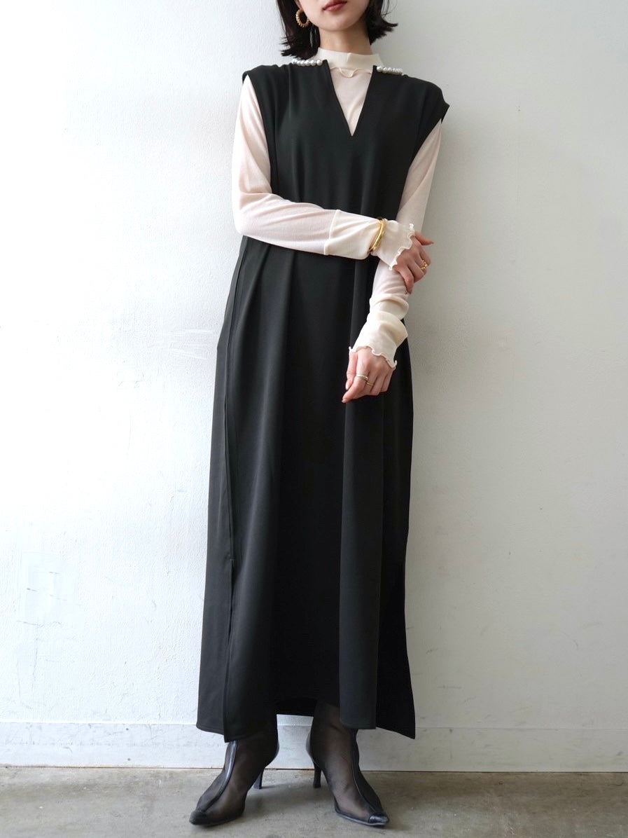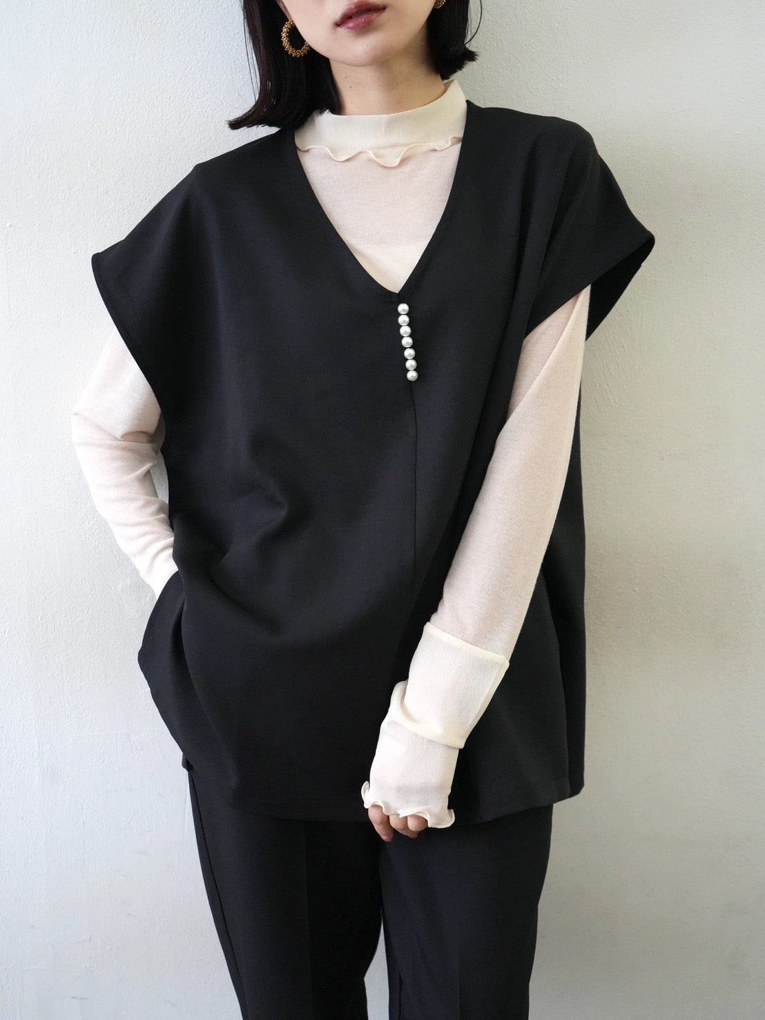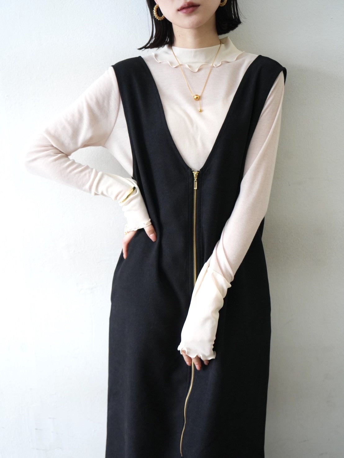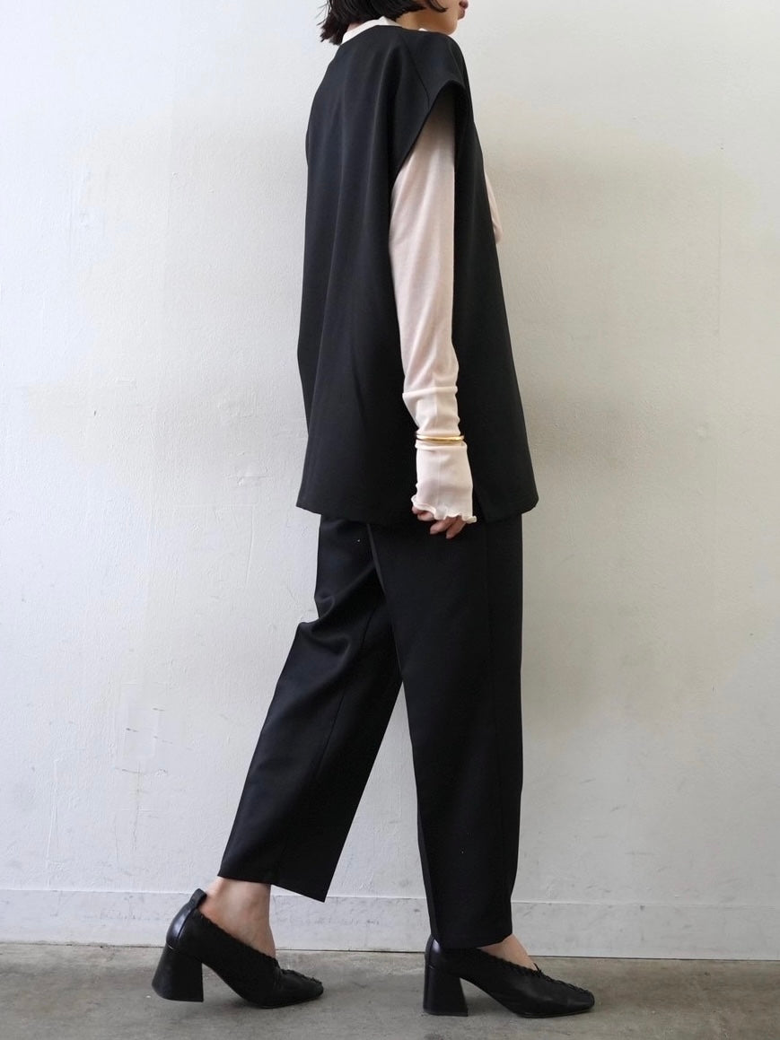異素材切り替えのコットンガーゼトップスは、メローを施したフェミニンな一着です。柔らかな素材感で肌心地が良く、薄手なのでインナーとしても重宝します。長めの袖はクシュっと弛ませたり、重ねたニットの袖口から覗かせたりと、手元を印象的に見せることができ、着るだけおしゃれ見えするコーデが叶います。