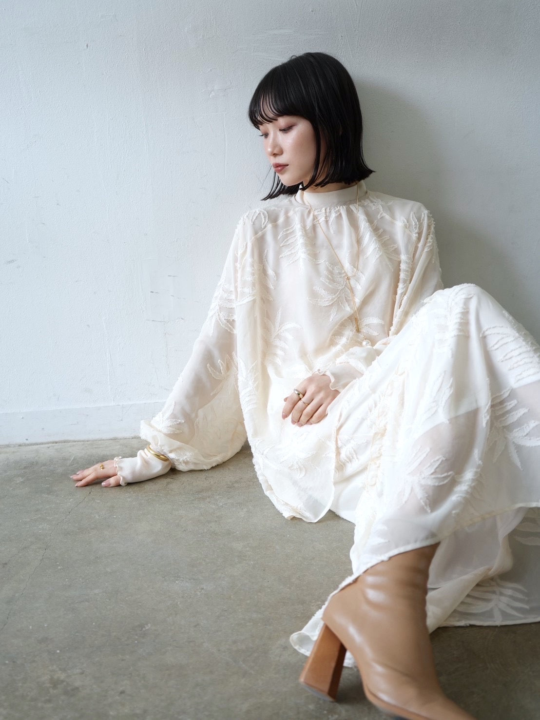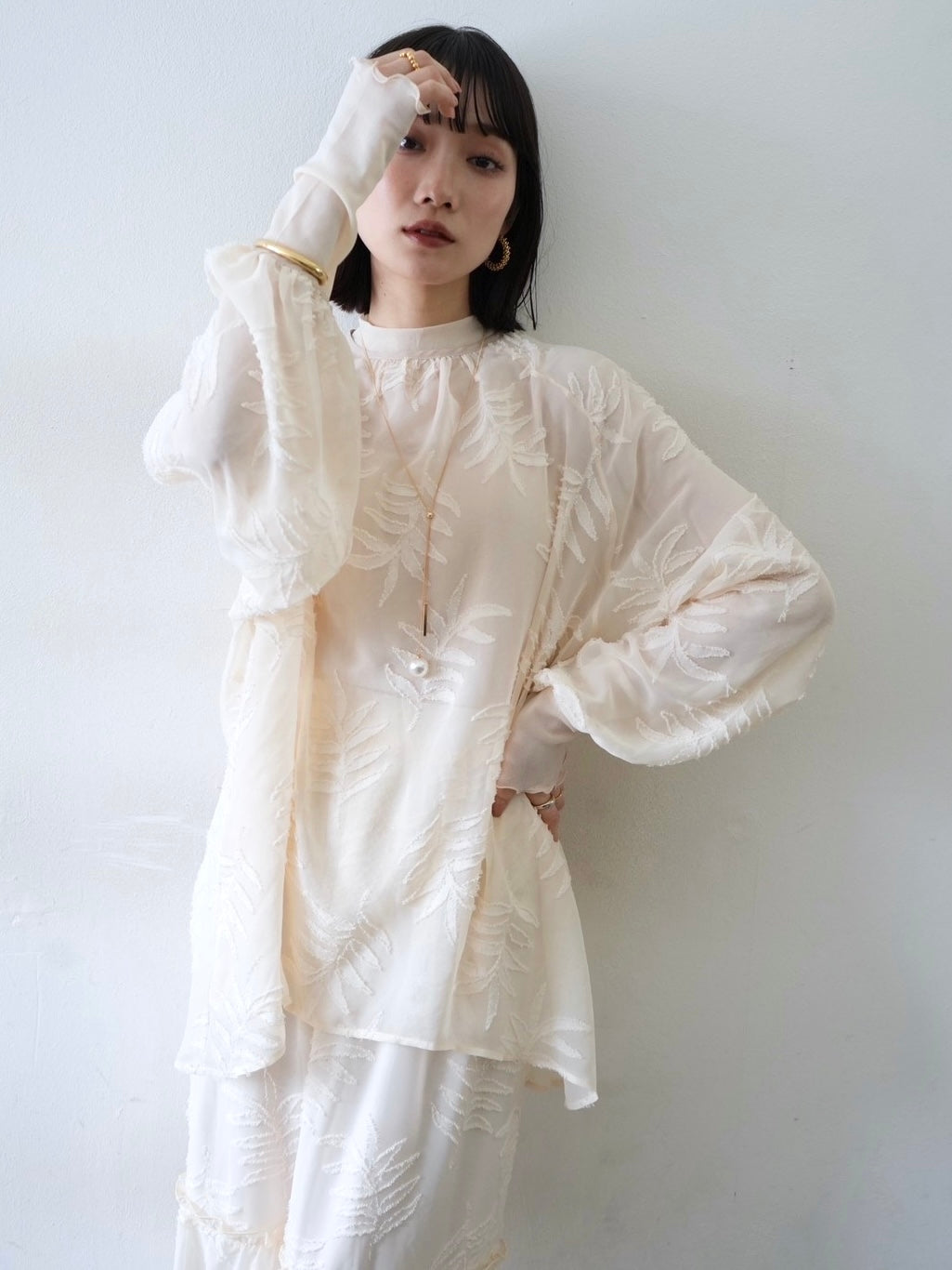 [予約]コットンガーゼシアー切替メロートップス/アイボリー
