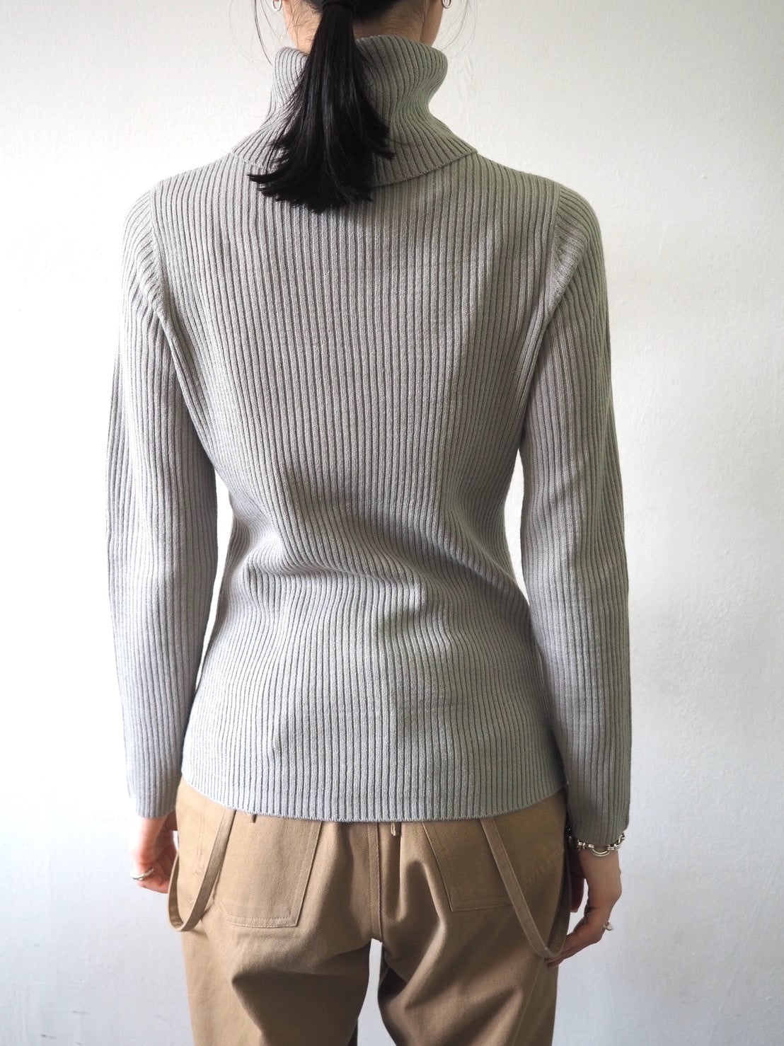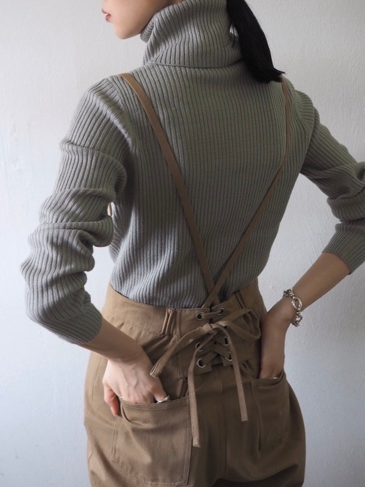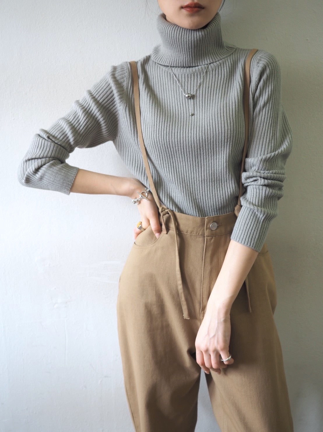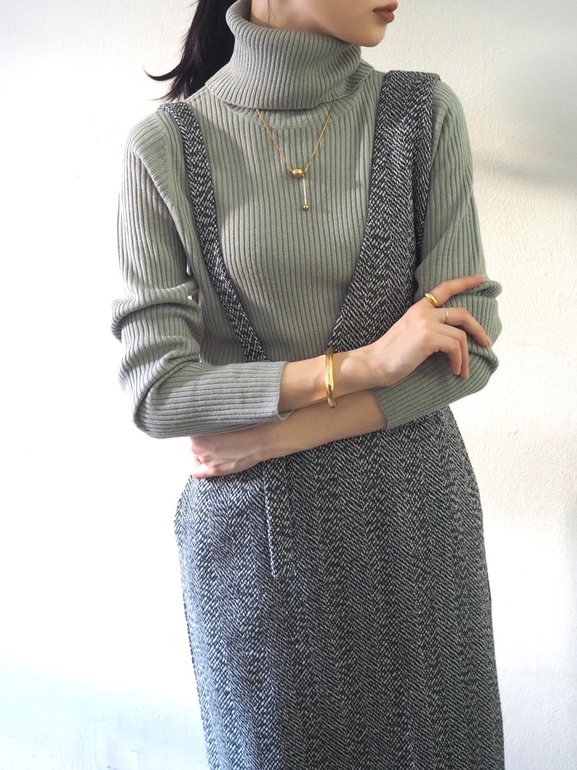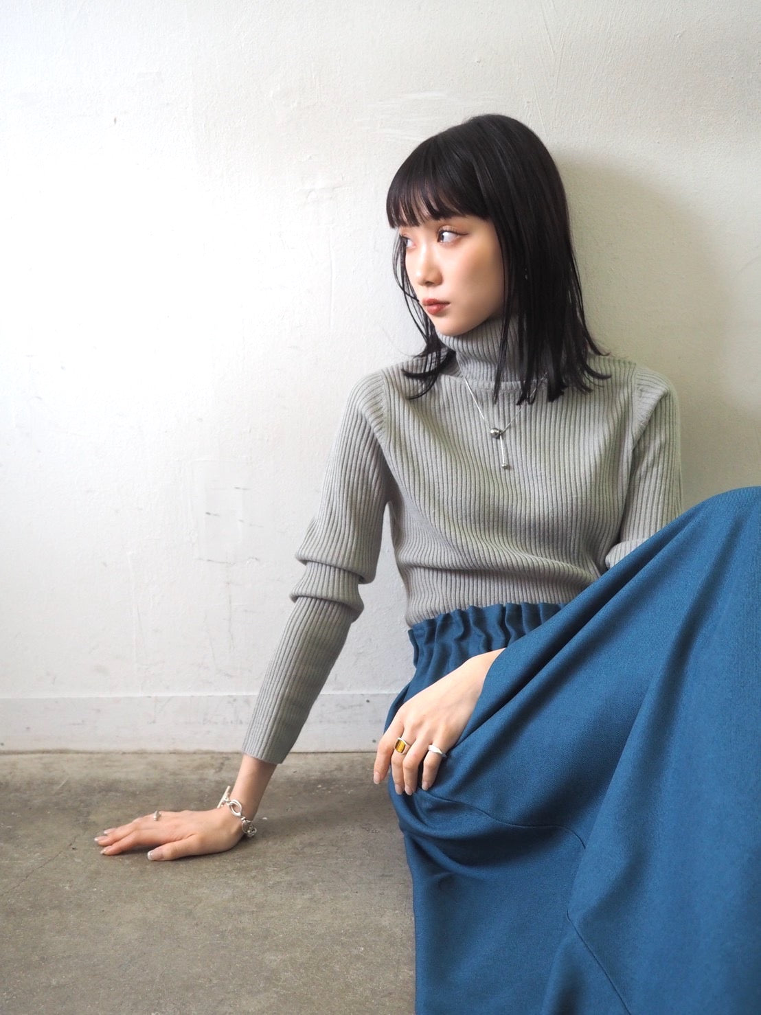 秋冬のスタイリングに欠かせないリブタートルネックニットは、スタンダードなデザインで着回し力に優れた一着です。ネック部分は折り返しを大きくしたボリュームが出る仕様で、クシュクシュと弛ませるなど、印象変えができます。そのままではもちろん、ベストやカーディガン、ジャンスカのインナーとしても重宝し、シーンレスに取り入れていただけます。