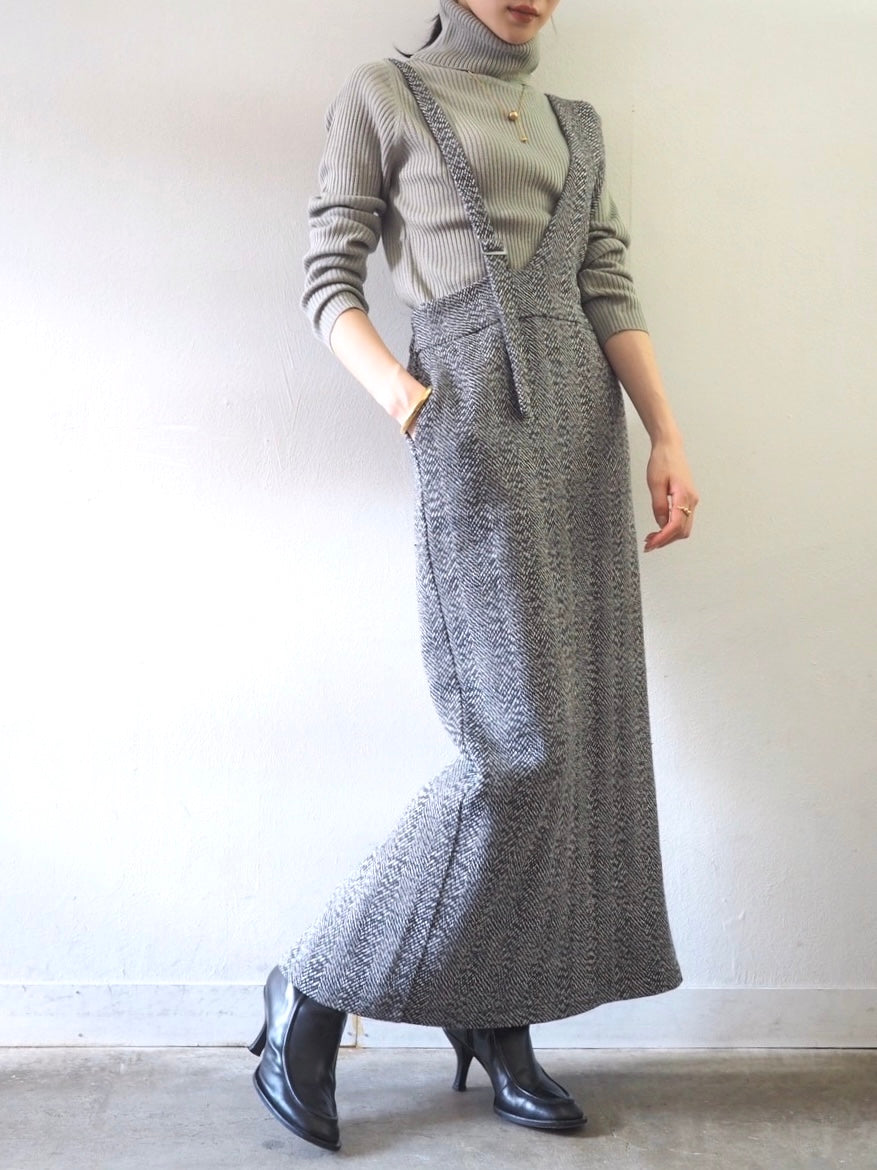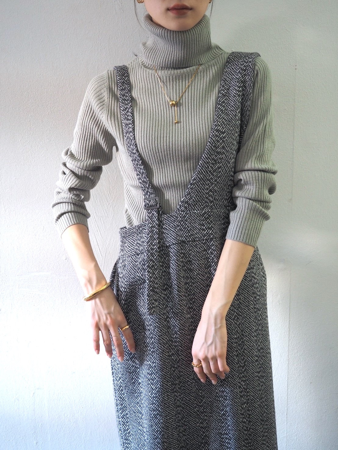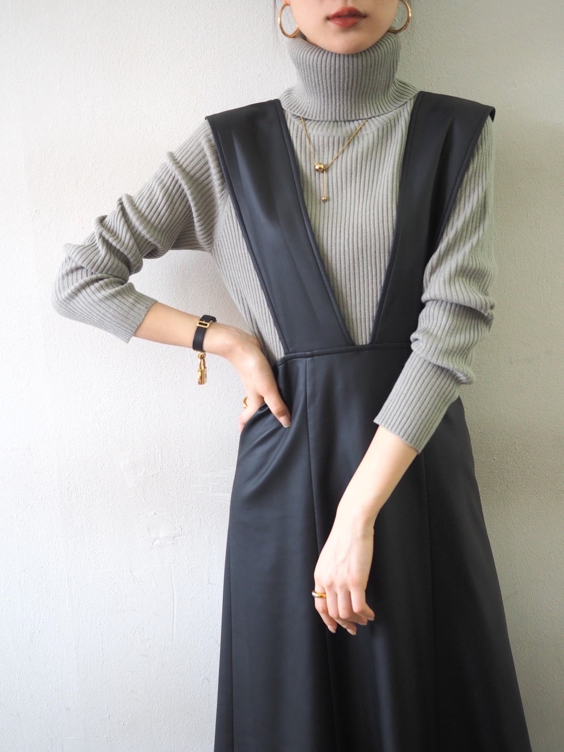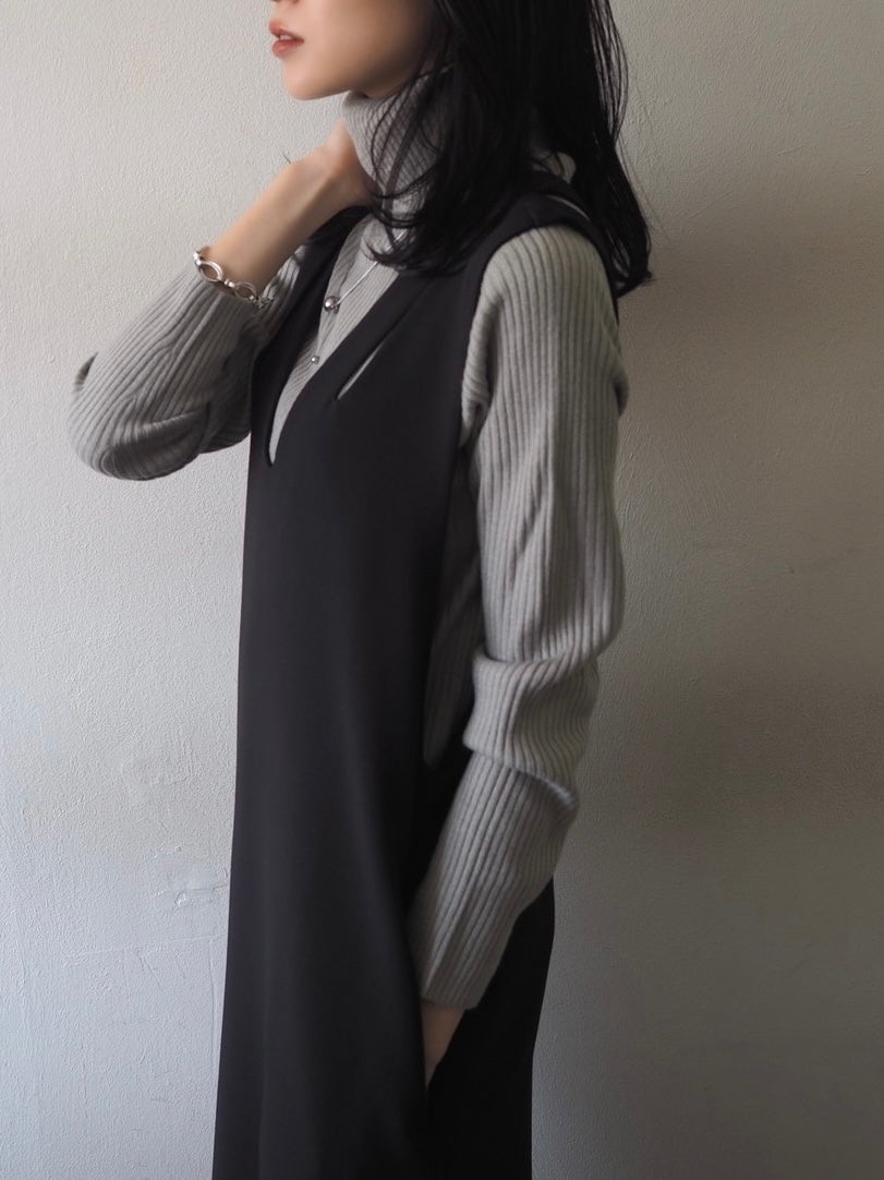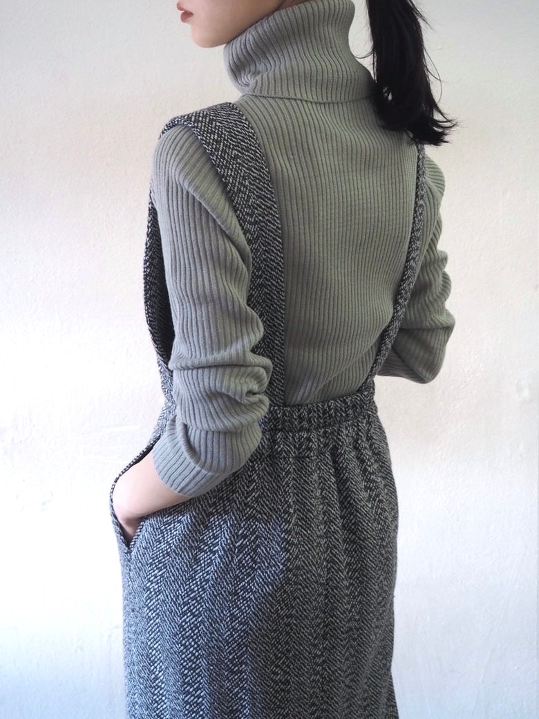 秋冬のスタイリングに欠かせないリブタートルネックニットは、スタンダードなデザインで着回し力に優れた一着です。ネック部分は折り返しを大きくしたボリュームが出る仕様で、クシュクシュと弛ませるなど、印象変えができます。そのままではもちろん、ベストやカーディガン、ジャンスカのインナーとしても重宝し、シーンレスに取り入れていただけます。