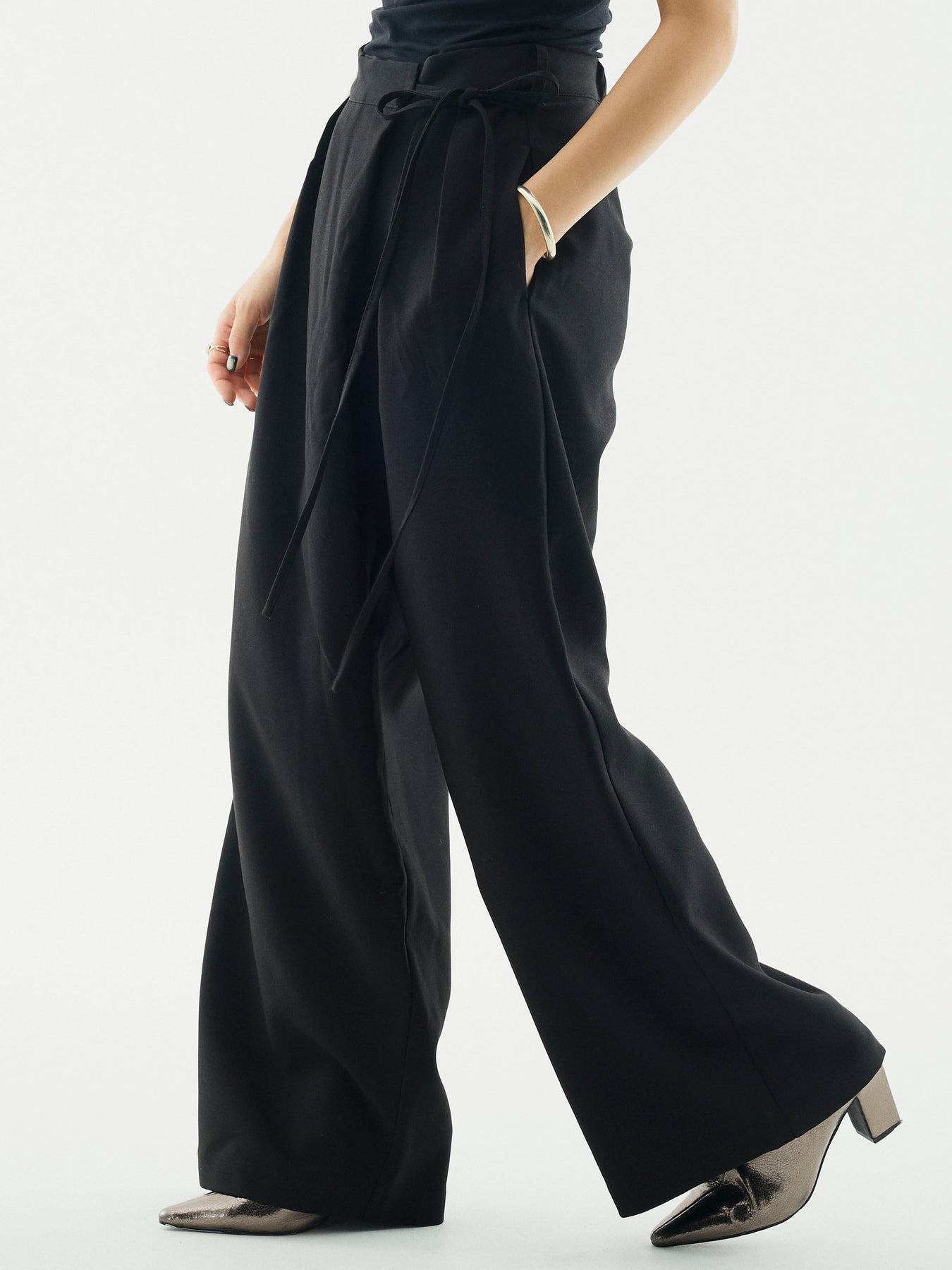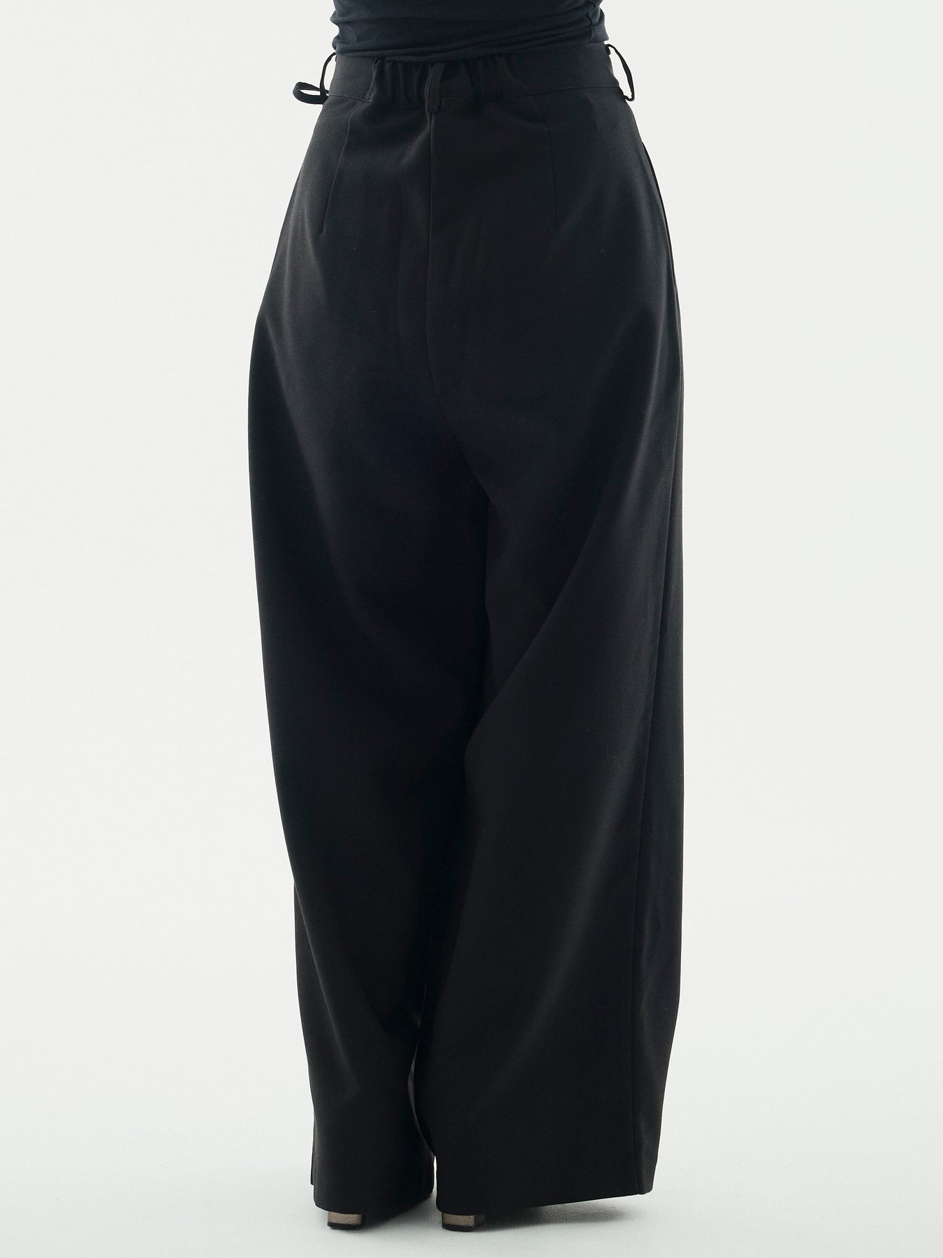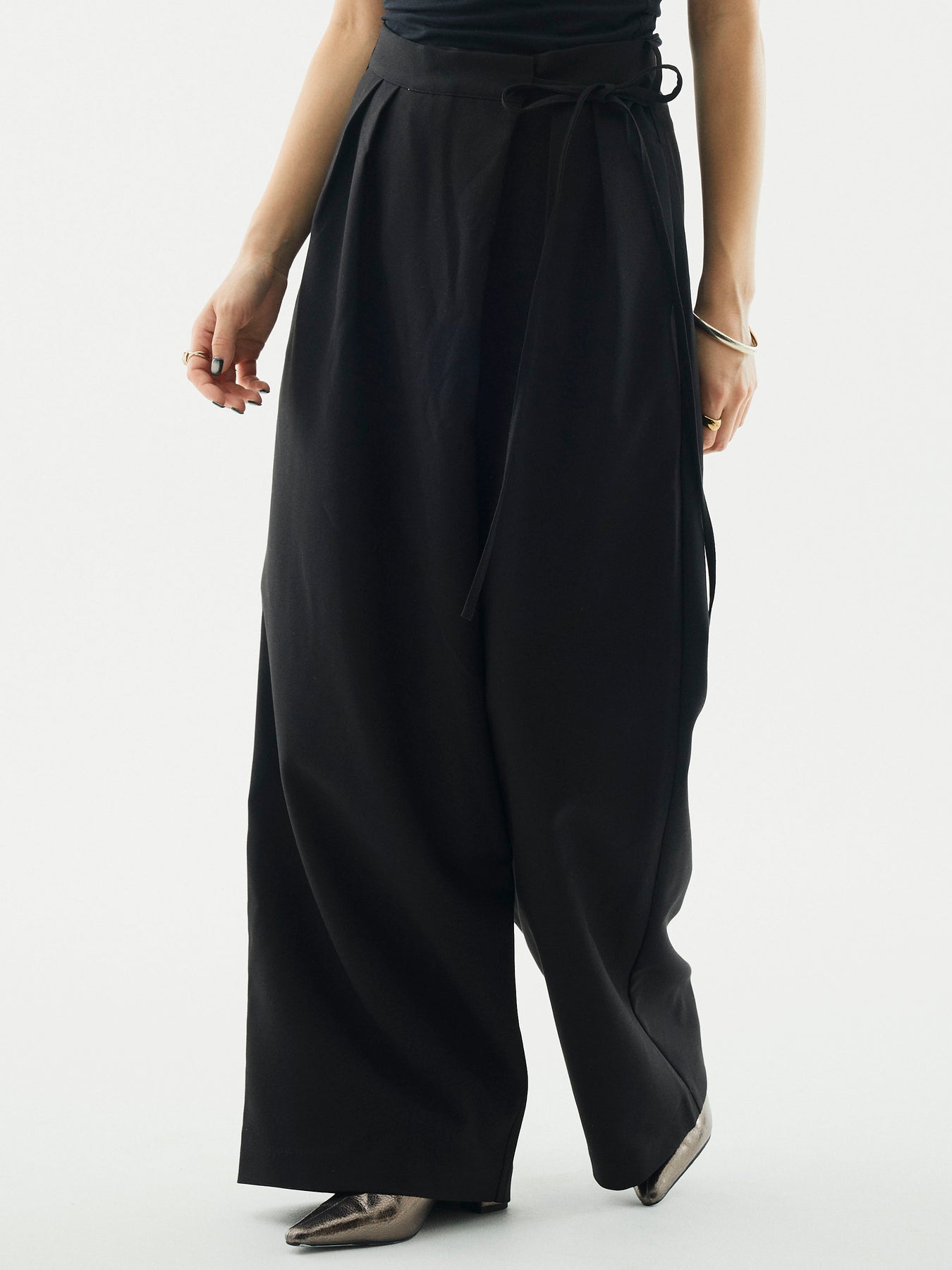 [予約]ラップデザインタックワイドパンツ/ブラック