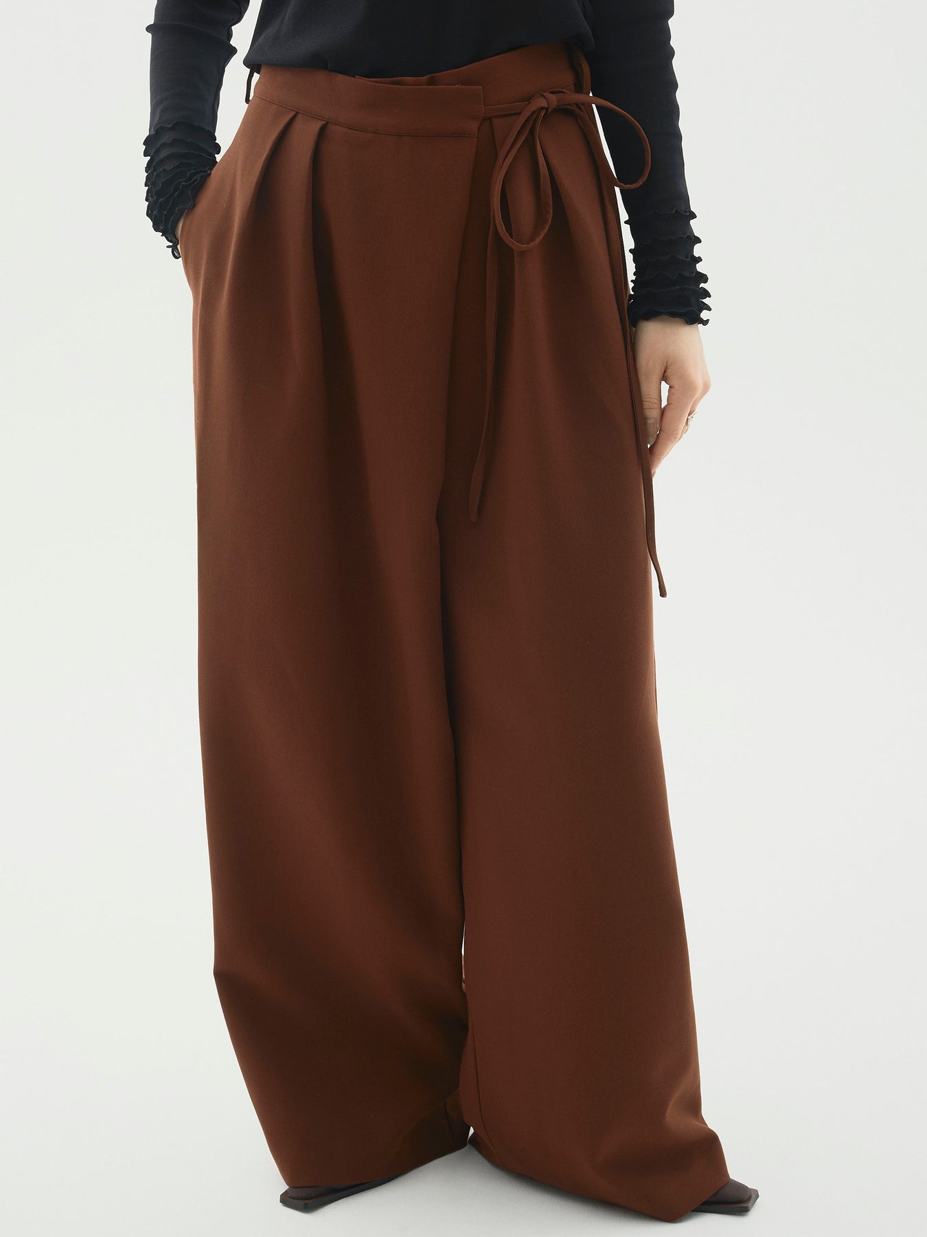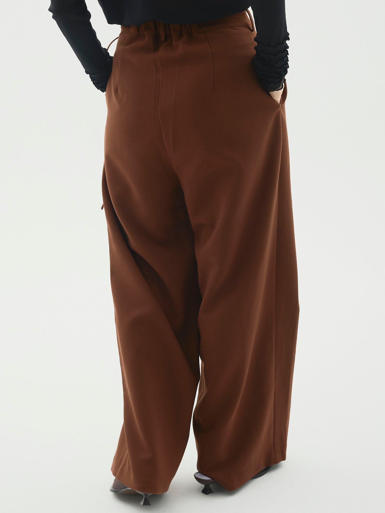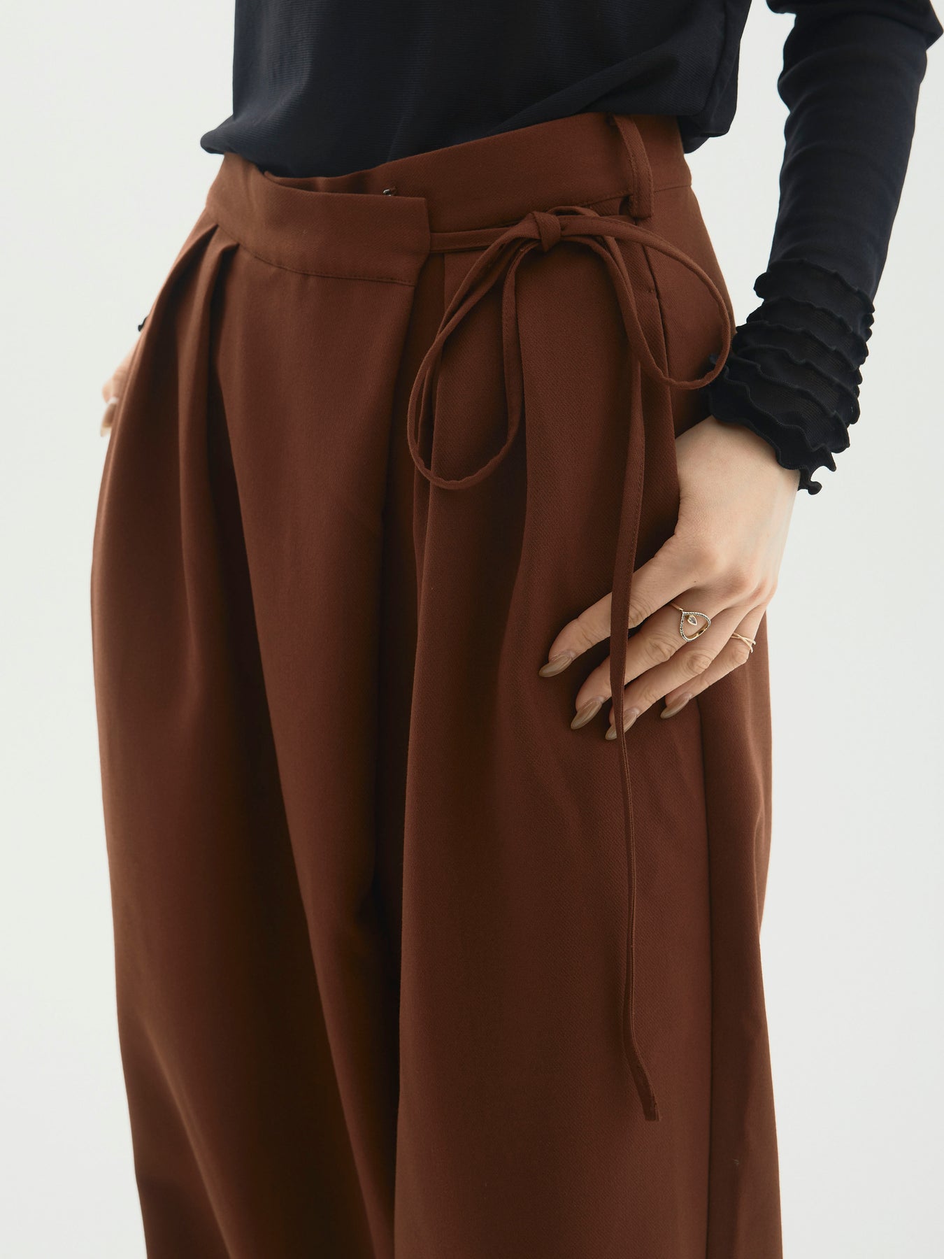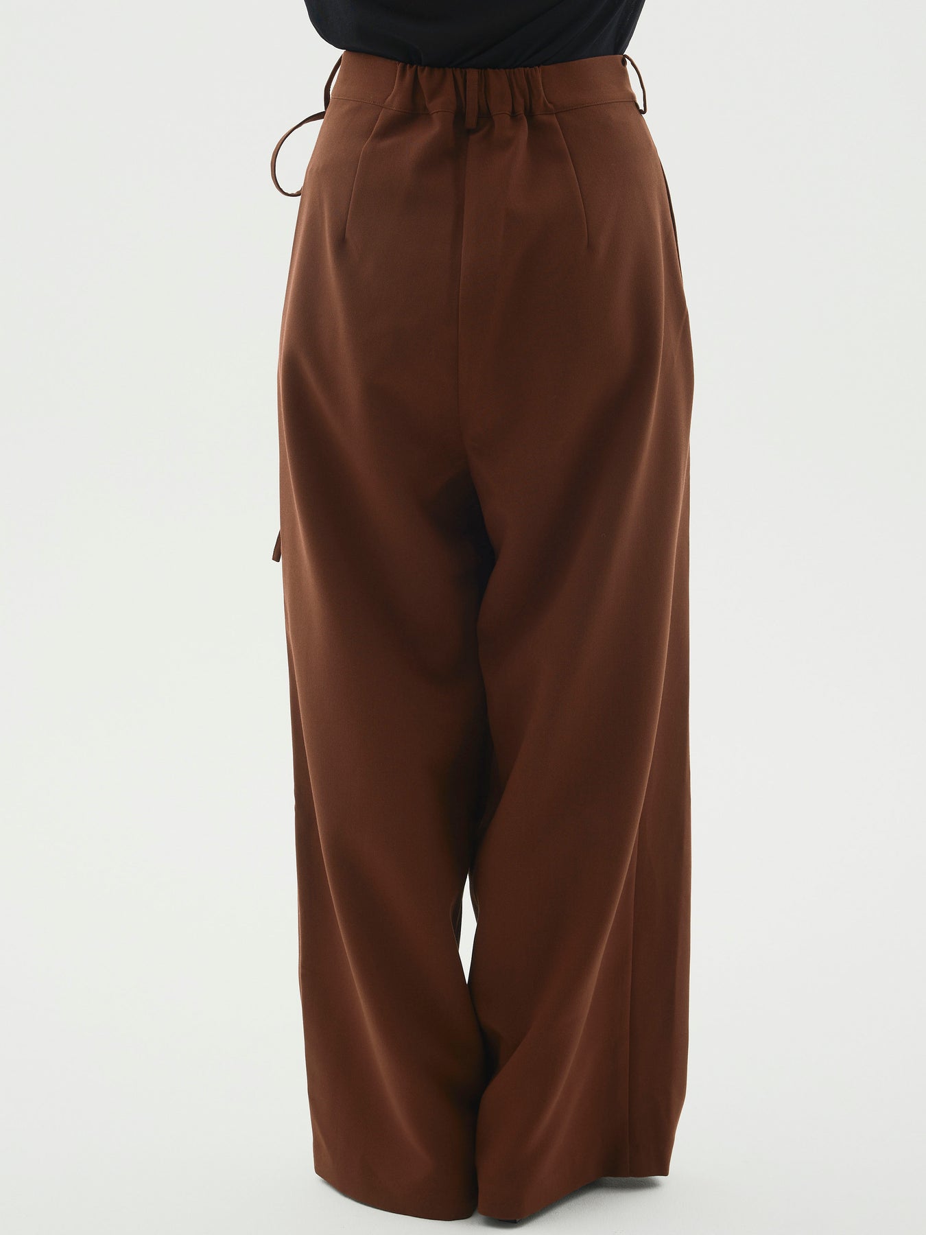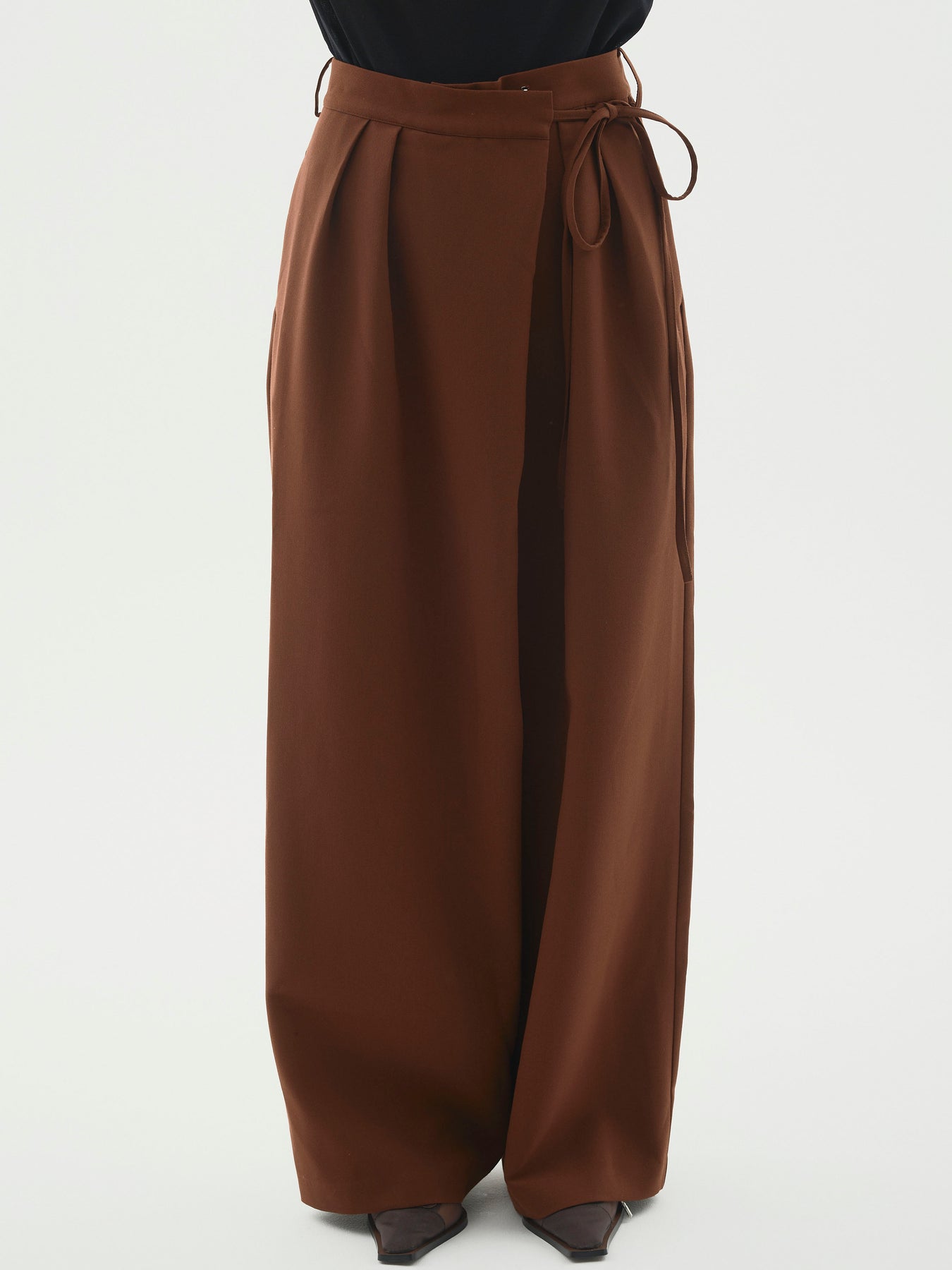 [予約]ラップデザインタックワイドパンツ/ブラウン