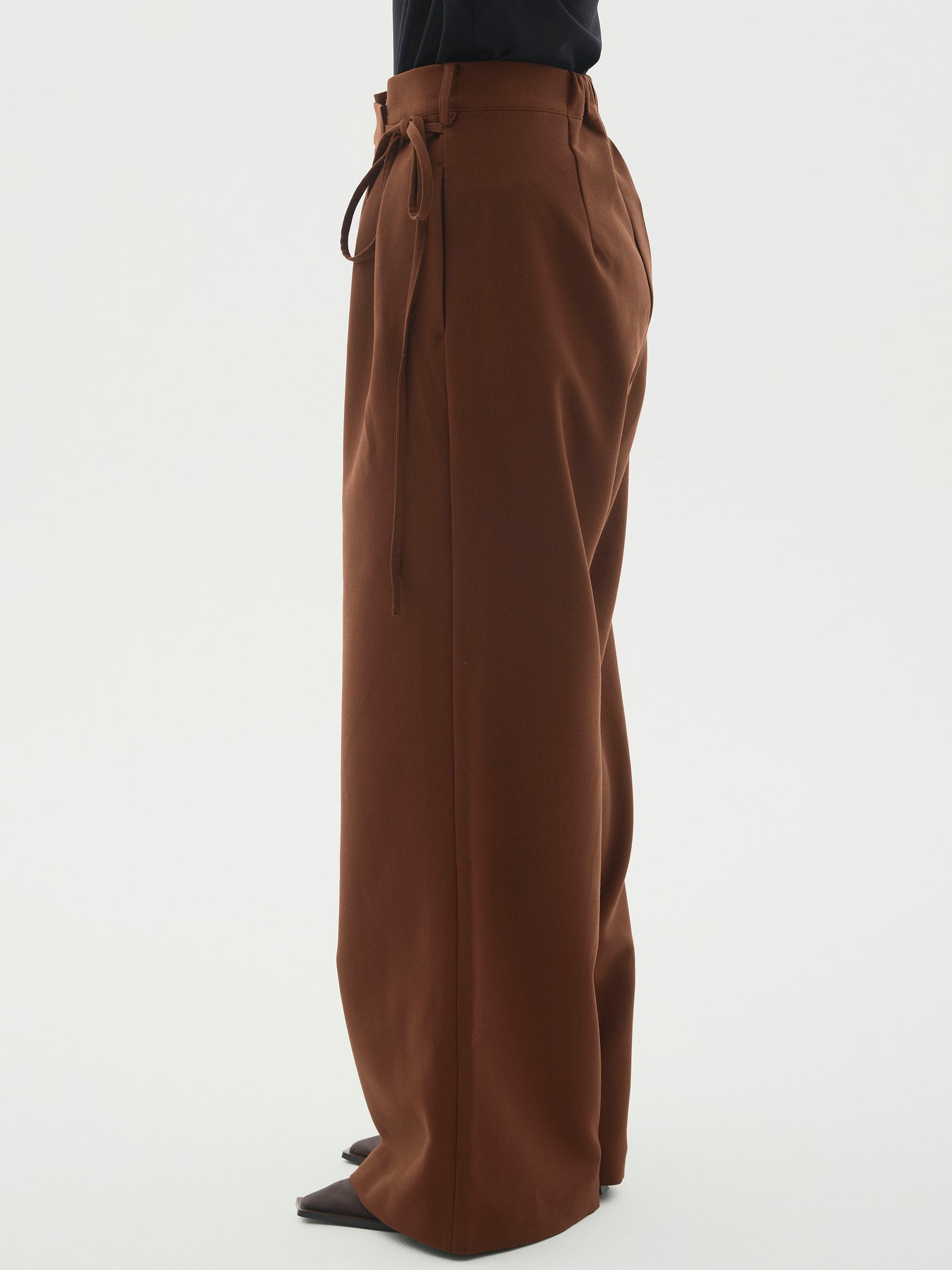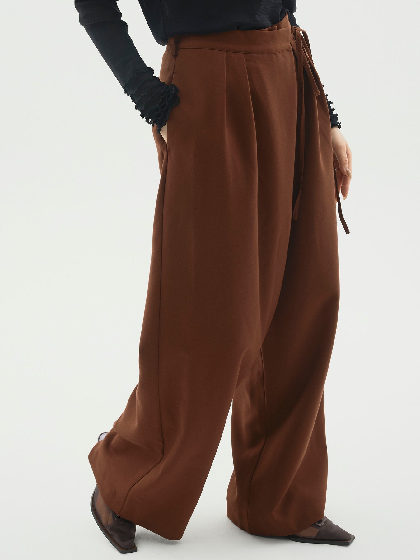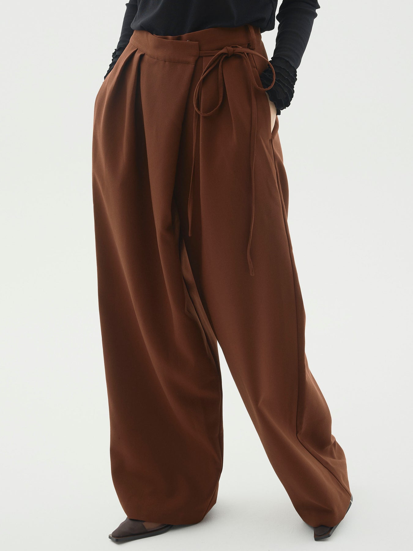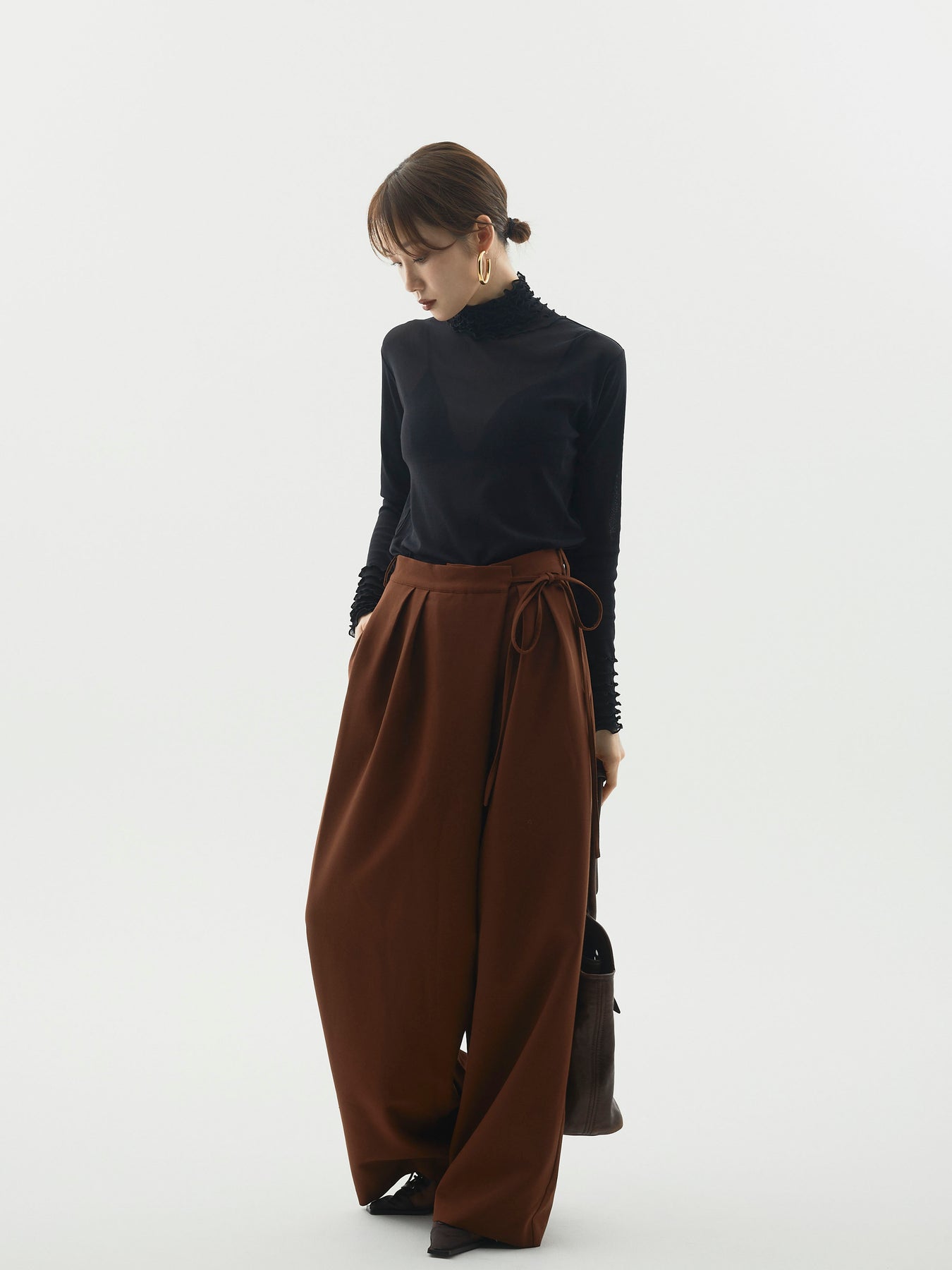 [予約]ラップデザインタックワイドパンツ/ブラウン