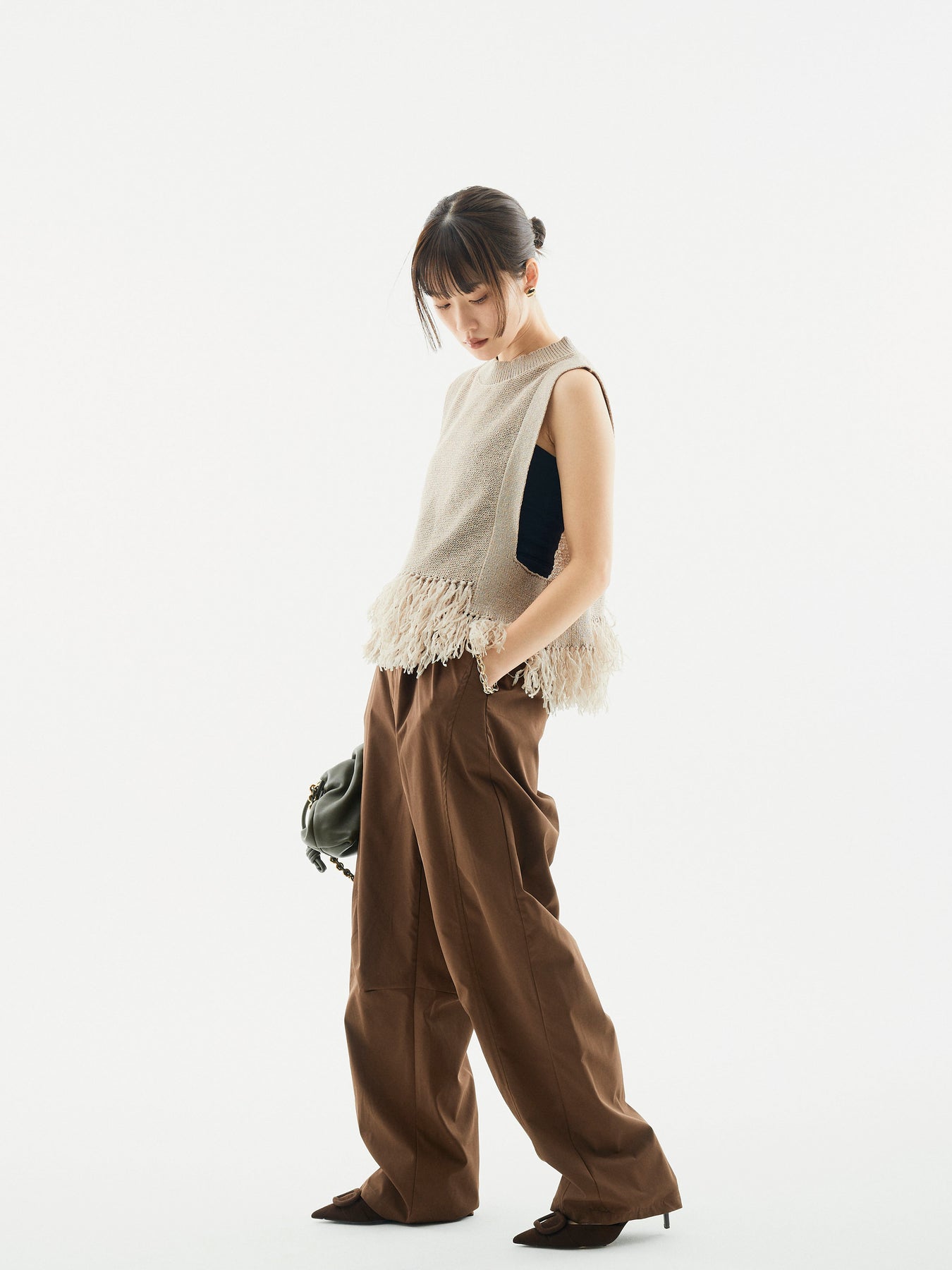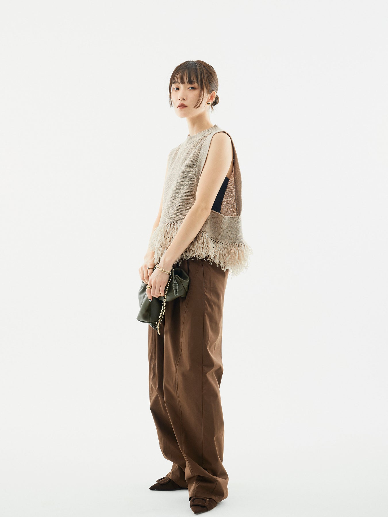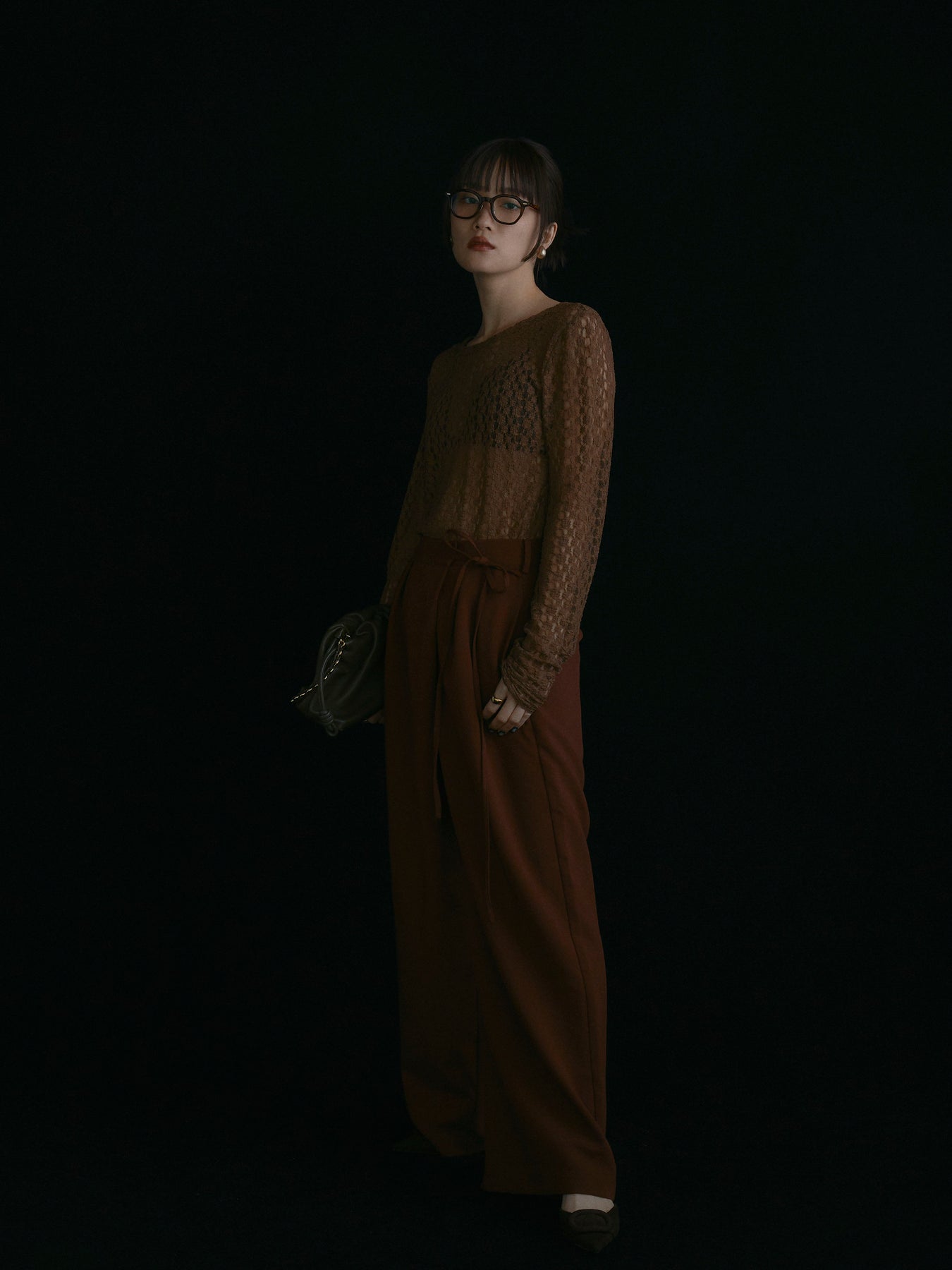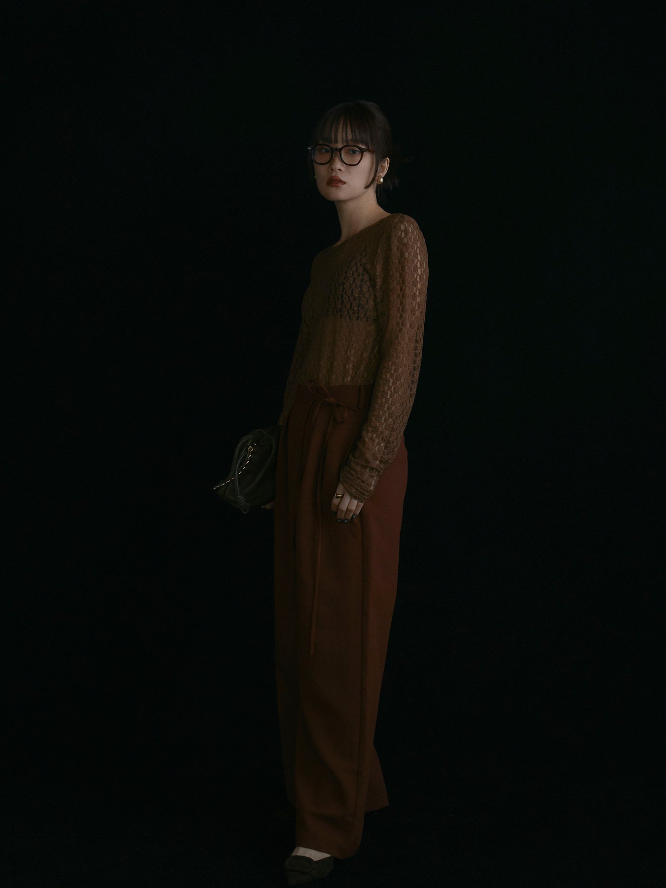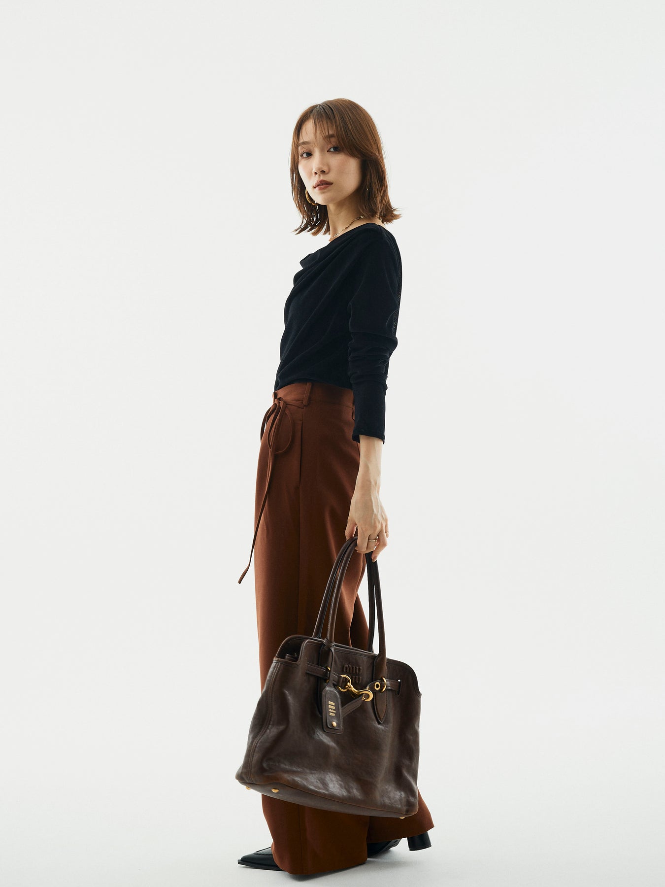 [予約]ラップデザインタックワイドパンツ/ブラウン