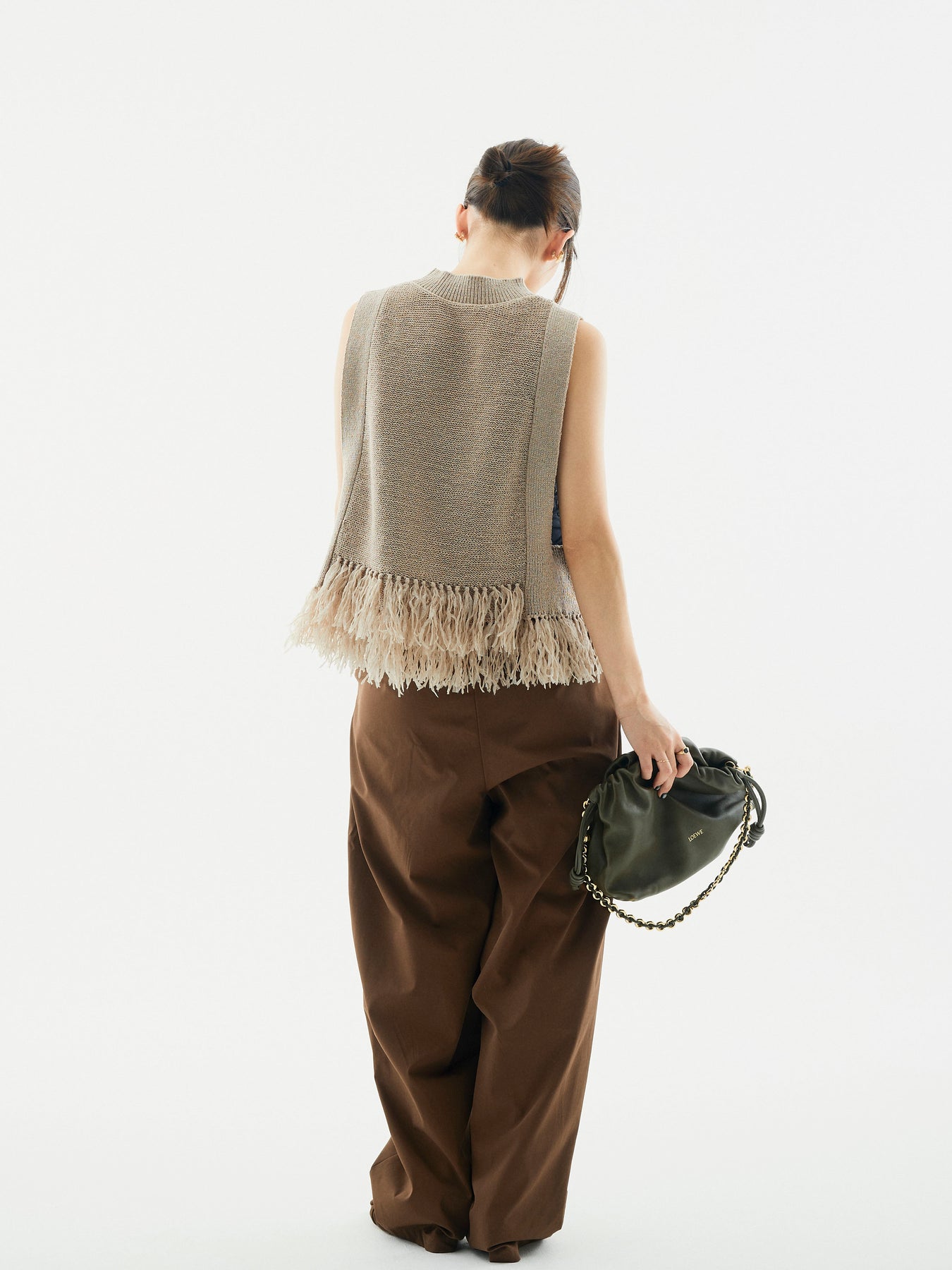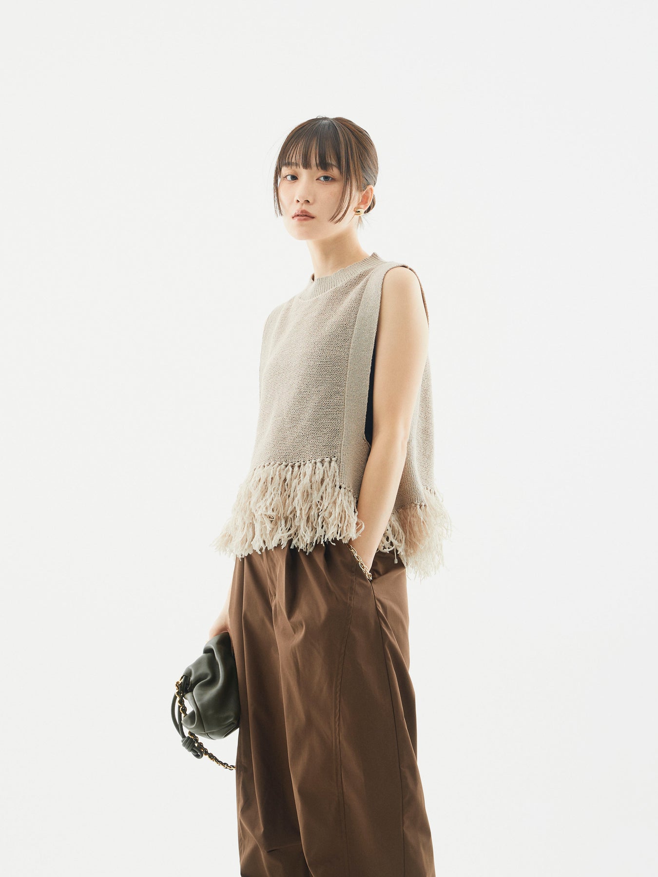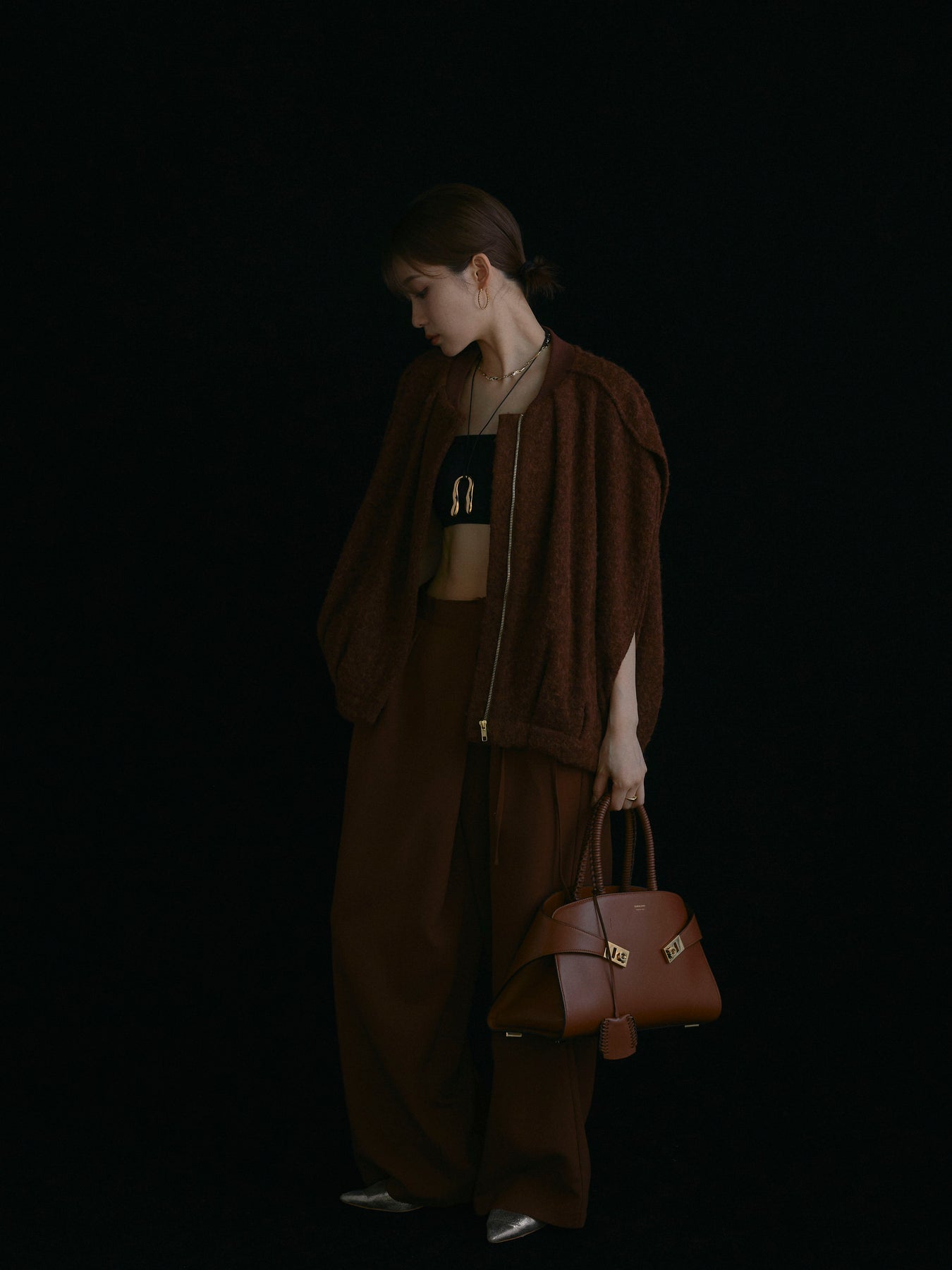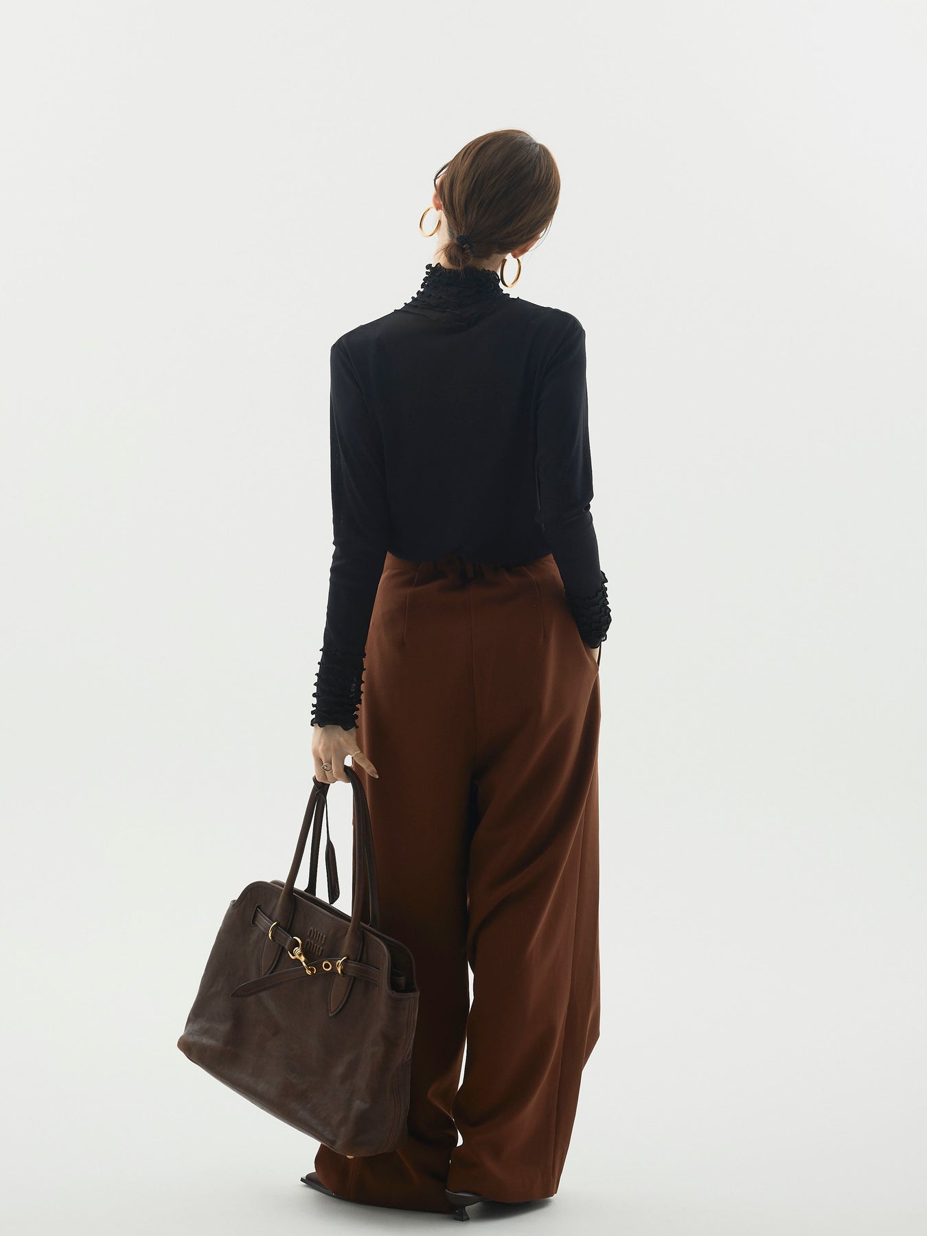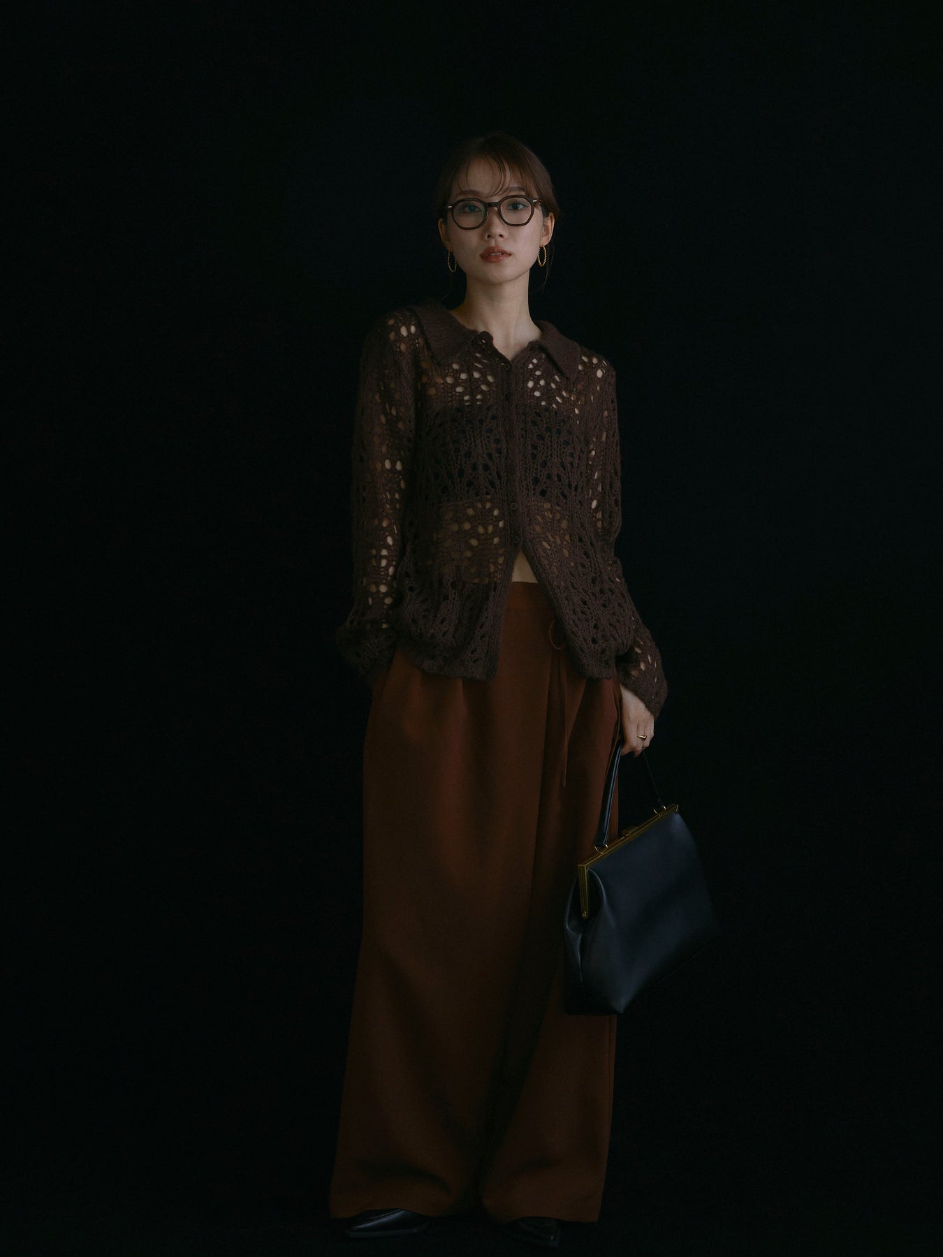 [予約]ラップデザインタックワイドパンツ/ブラウン