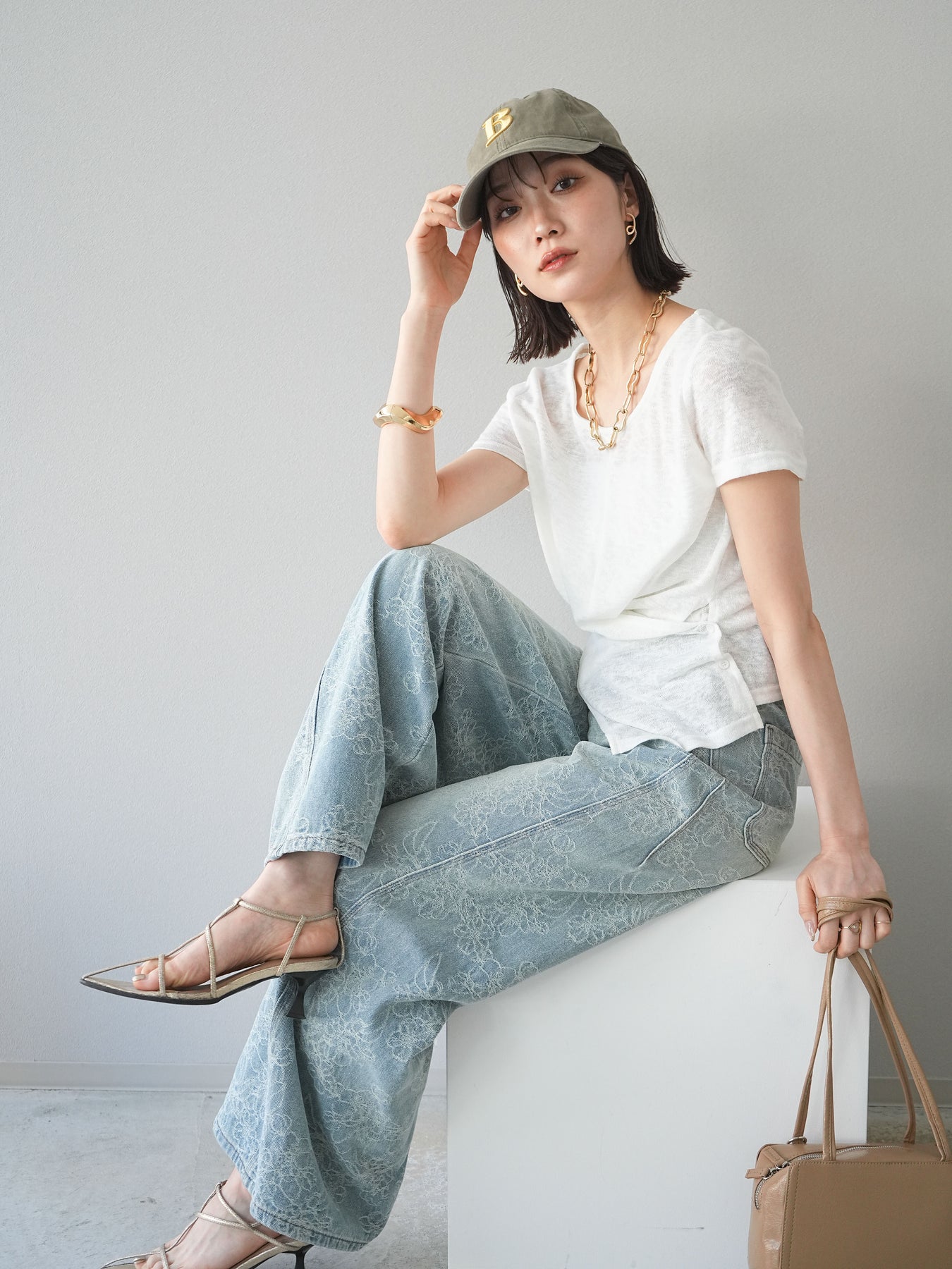 ・お手入れ方法:水温30℃以下手洗いでのお洗濯をお薦めします。素材の特性上、洗濯の際に色落ち・縮みが生じる恐れがありますので単独で・短時間でのお洗濯をお薦めします。裏返してネットに入れ手洗いコースで洗濯、洗濯後は形を整えてから干してください。※タンブラー乾燥は控えてください。 濡れたままの状態で擦れると、色落ち色移りすることがあります。つけ置き洗いや雨や汗で濡れたまま放置は避け、速やかに処理してください。着用中の摩擦や汗、水濡れ、濃淡差があるものとの重ね着にご注意ください。 また、素材の特性上伸びやすい為ハンガーの使用はお控えいただき畳んで保管ください。