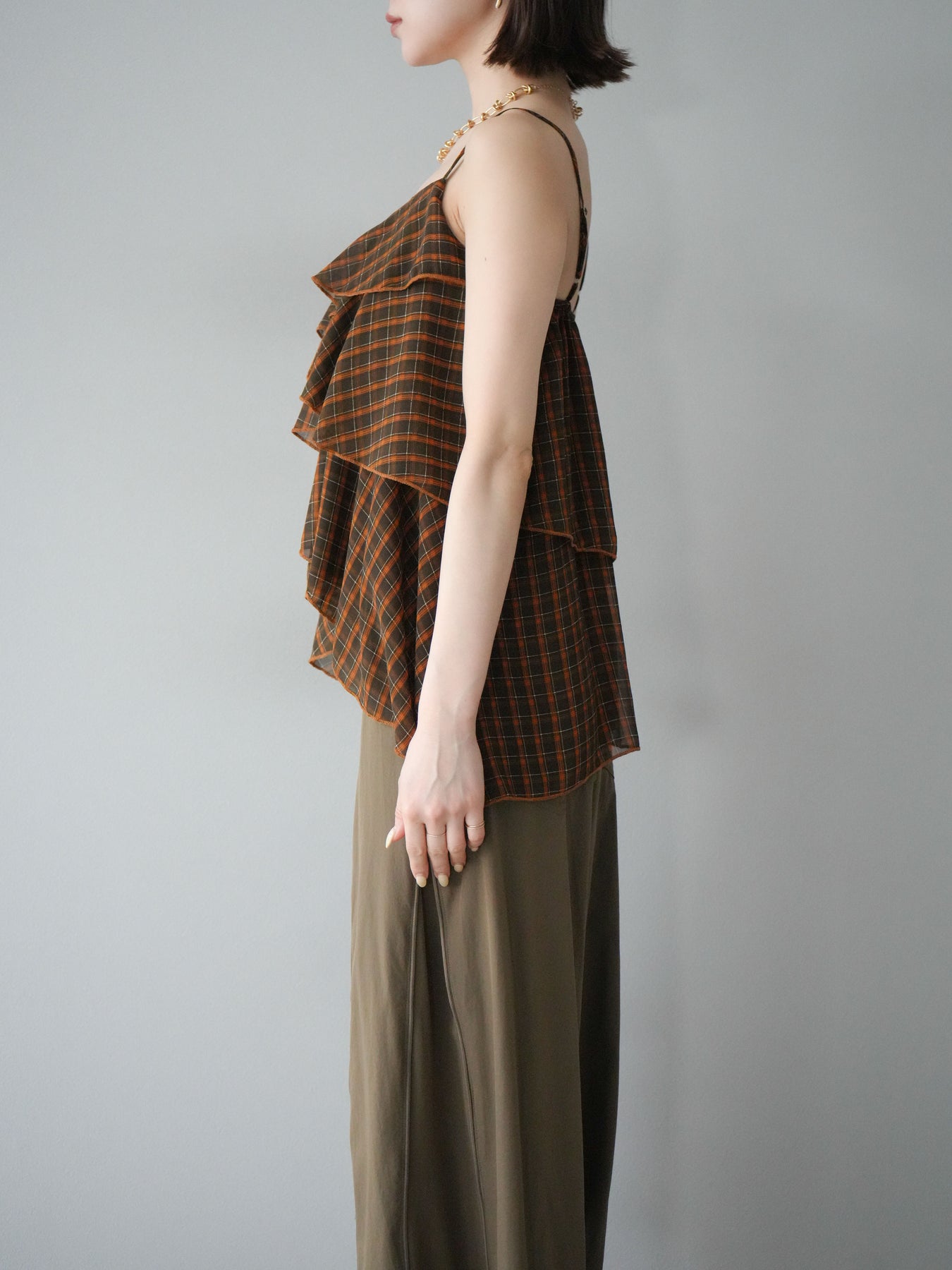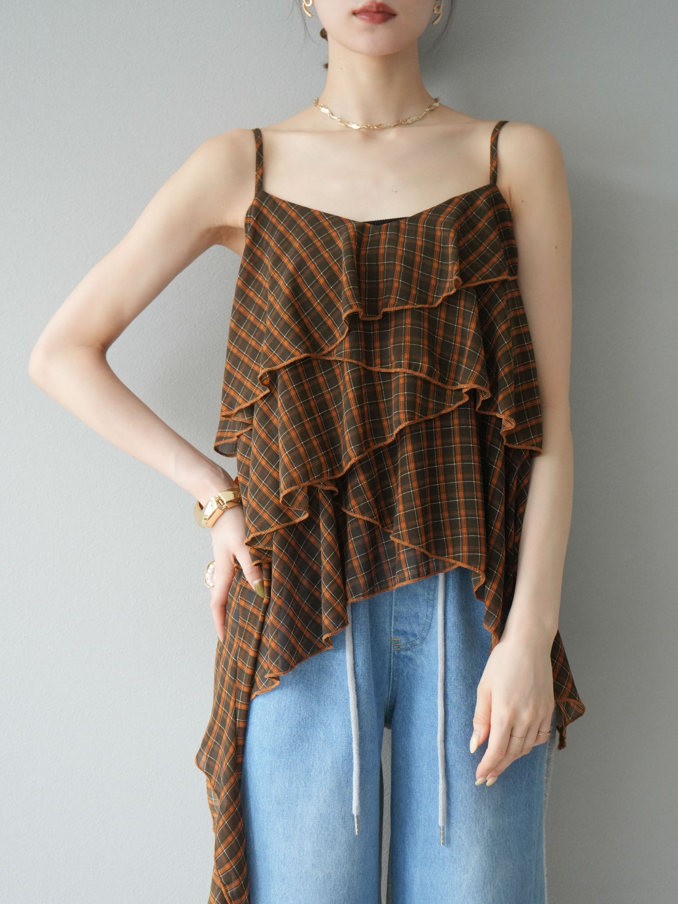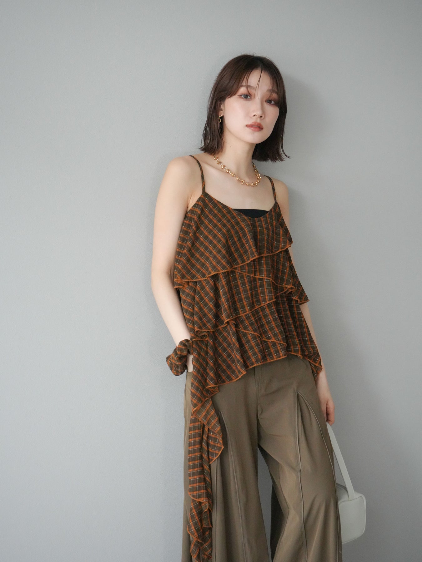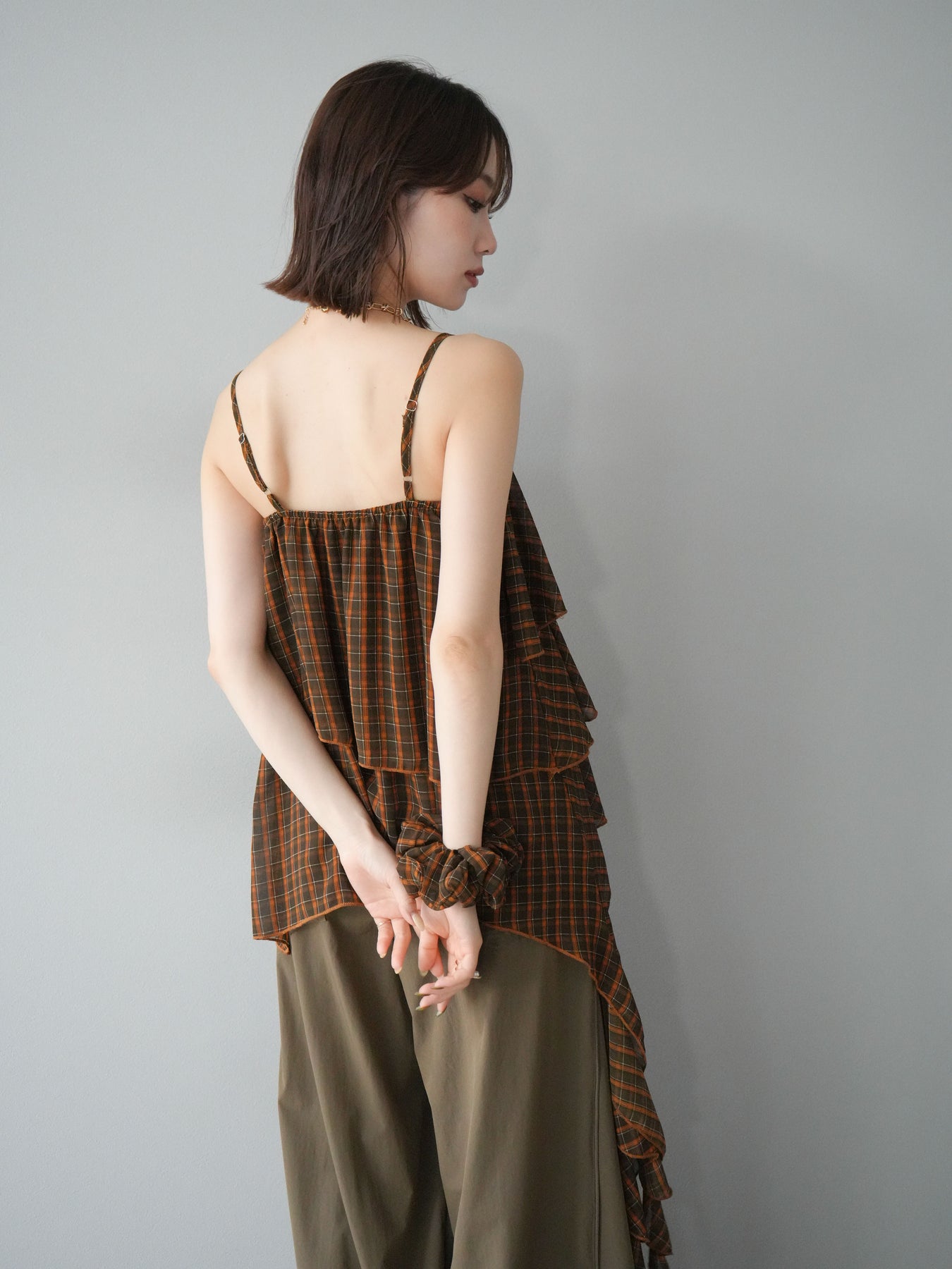 [予約]チェック柄ラッフルキャミソール/ブラウン