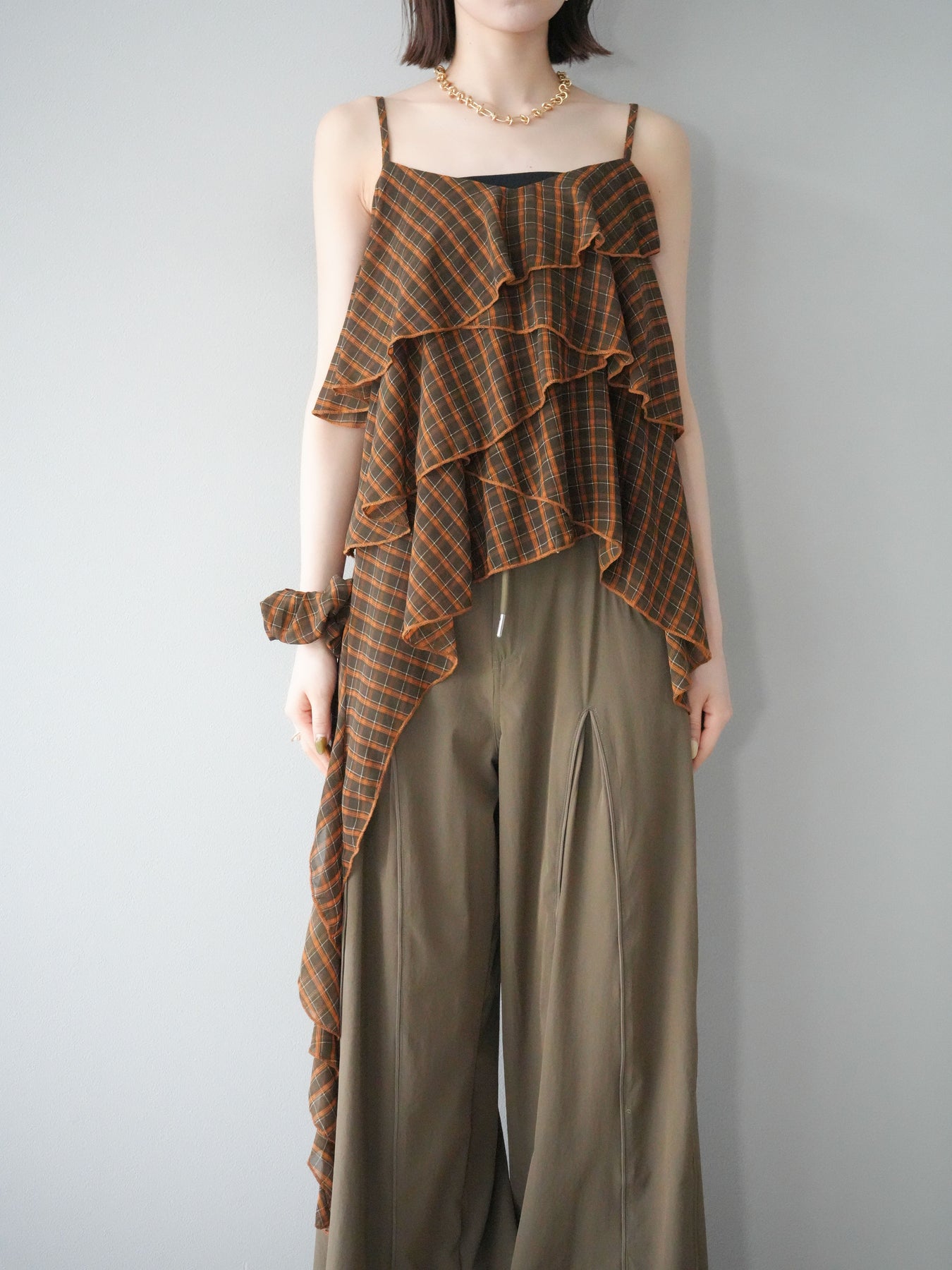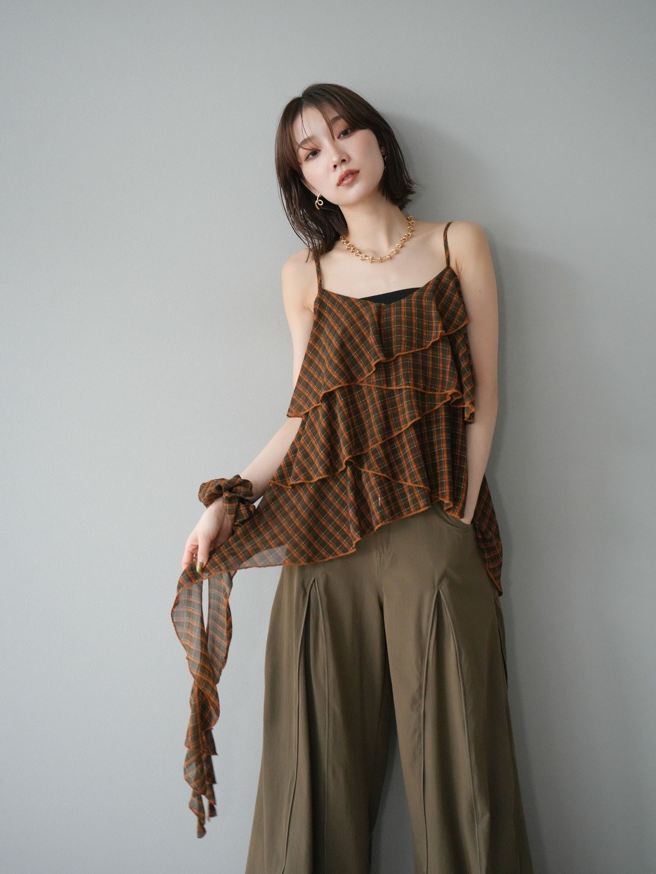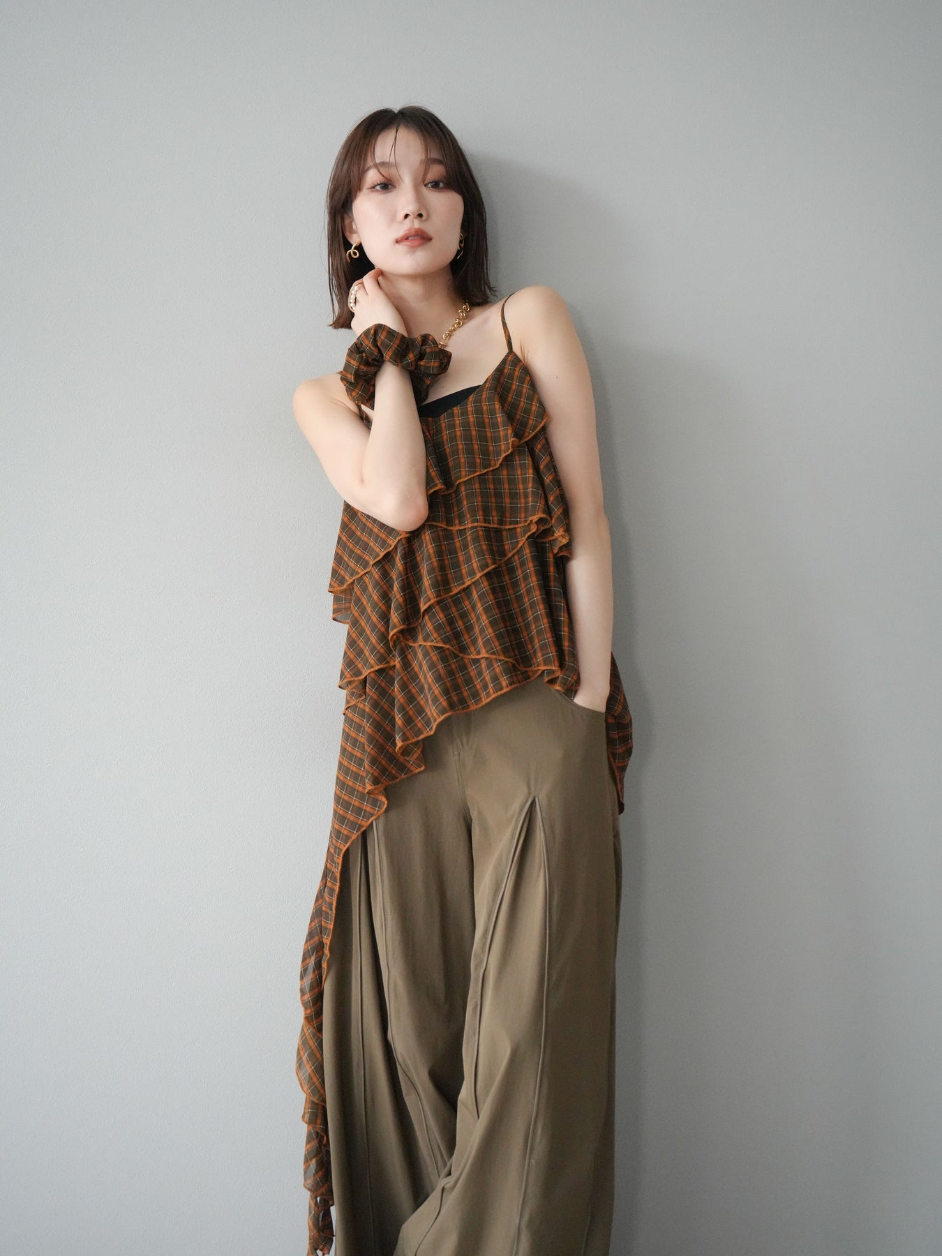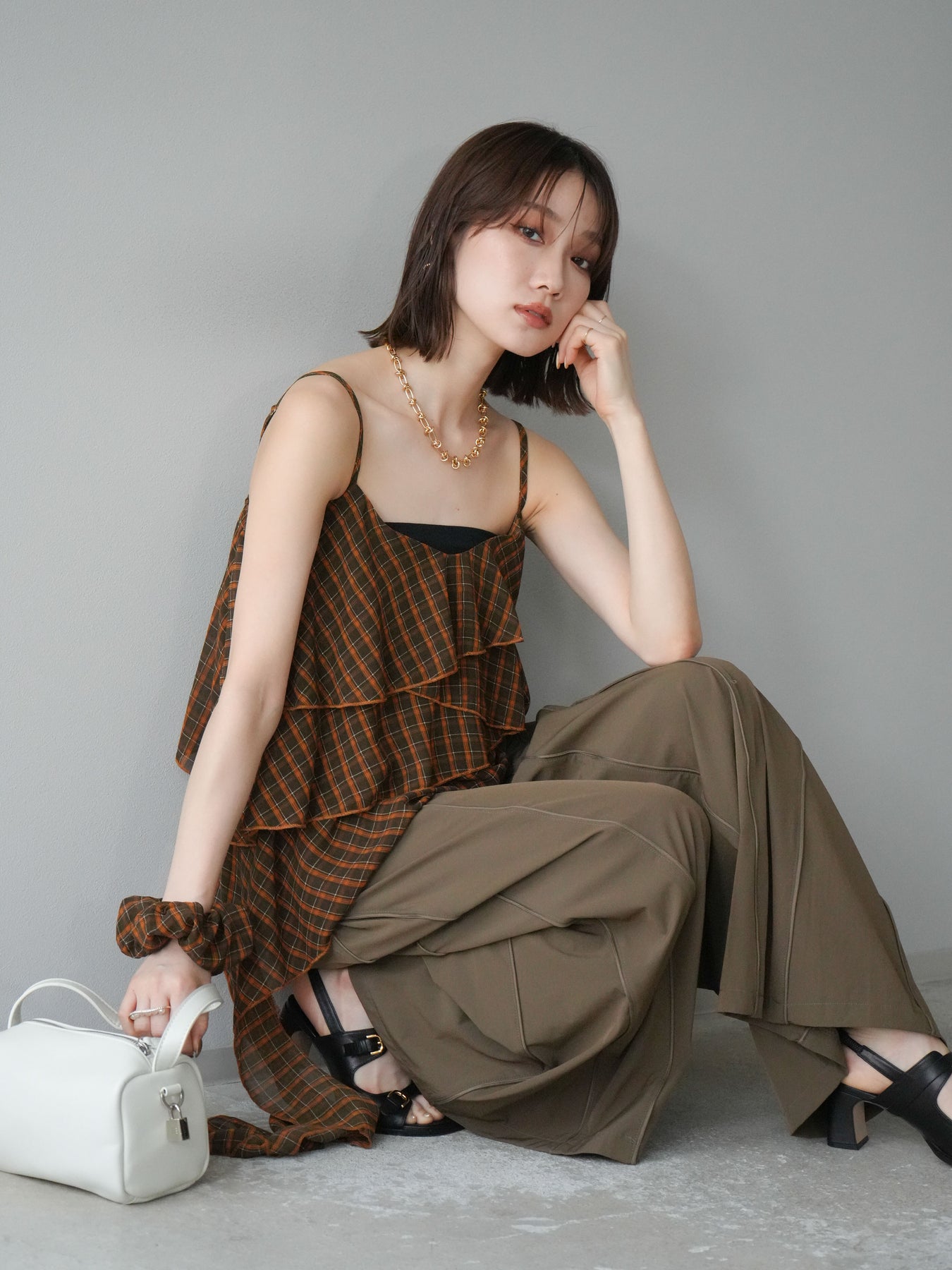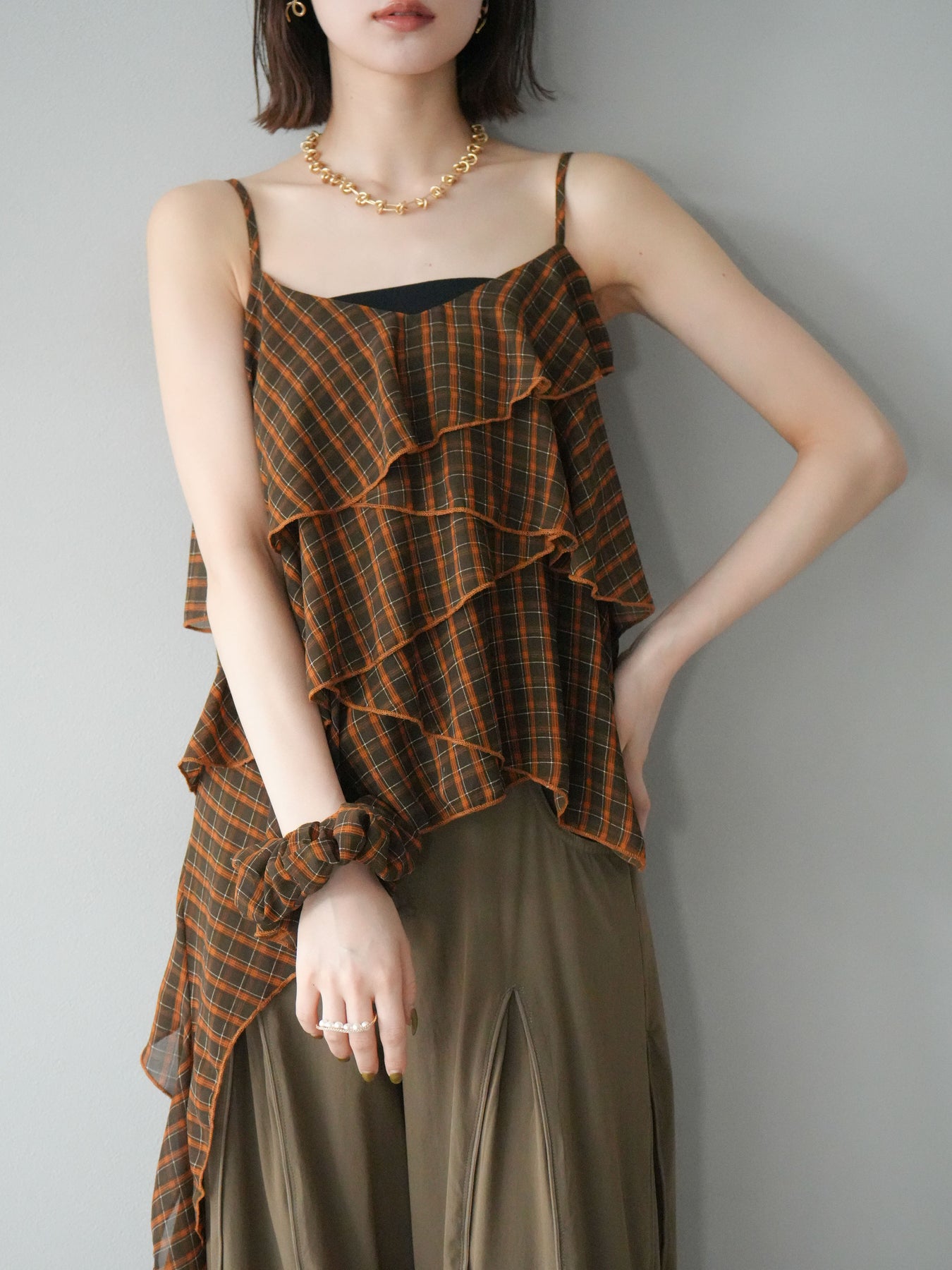 [予約]チェック柄ラッフルキャミソール/ブラウン