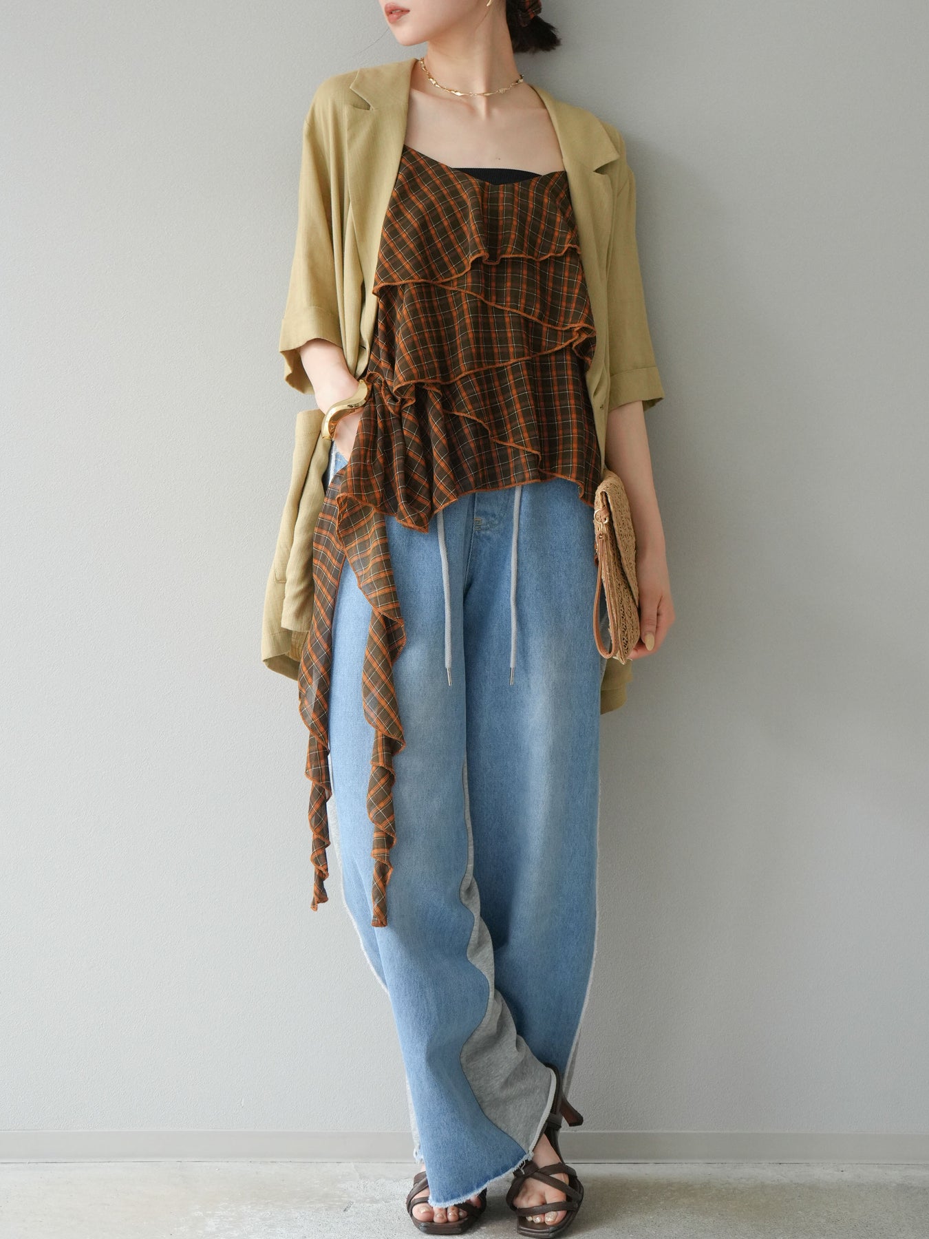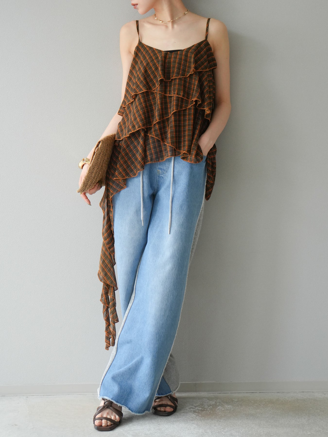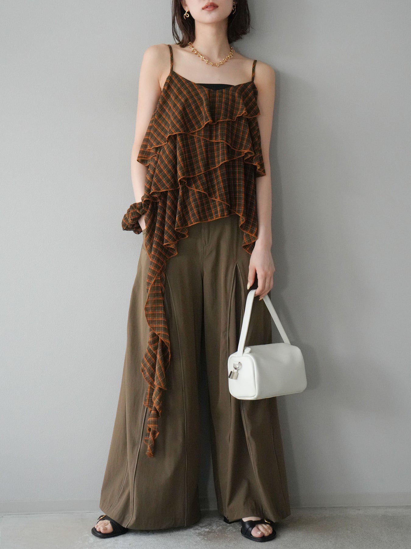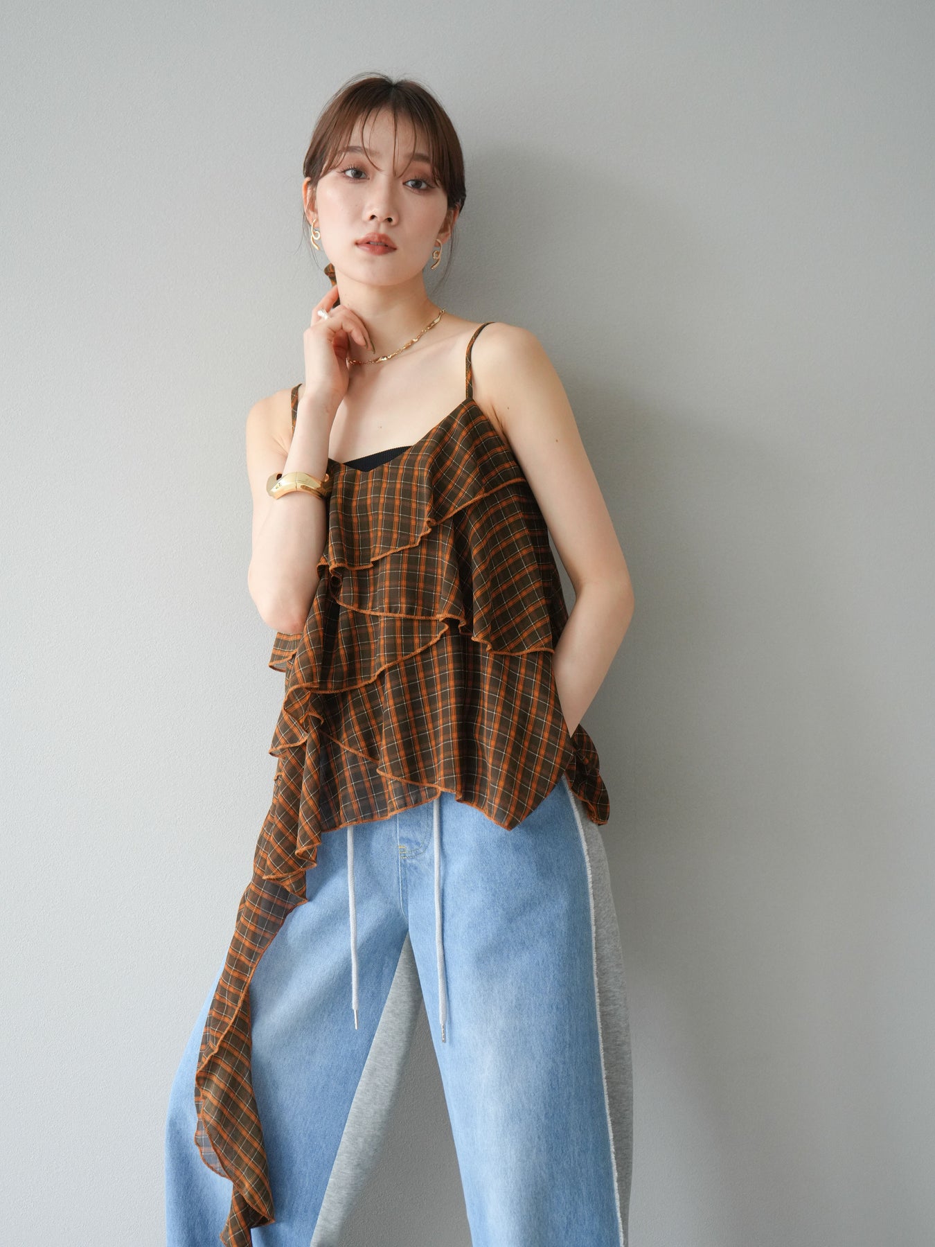 [予約]チェック柄ラッフルキャミソール/ブラウン