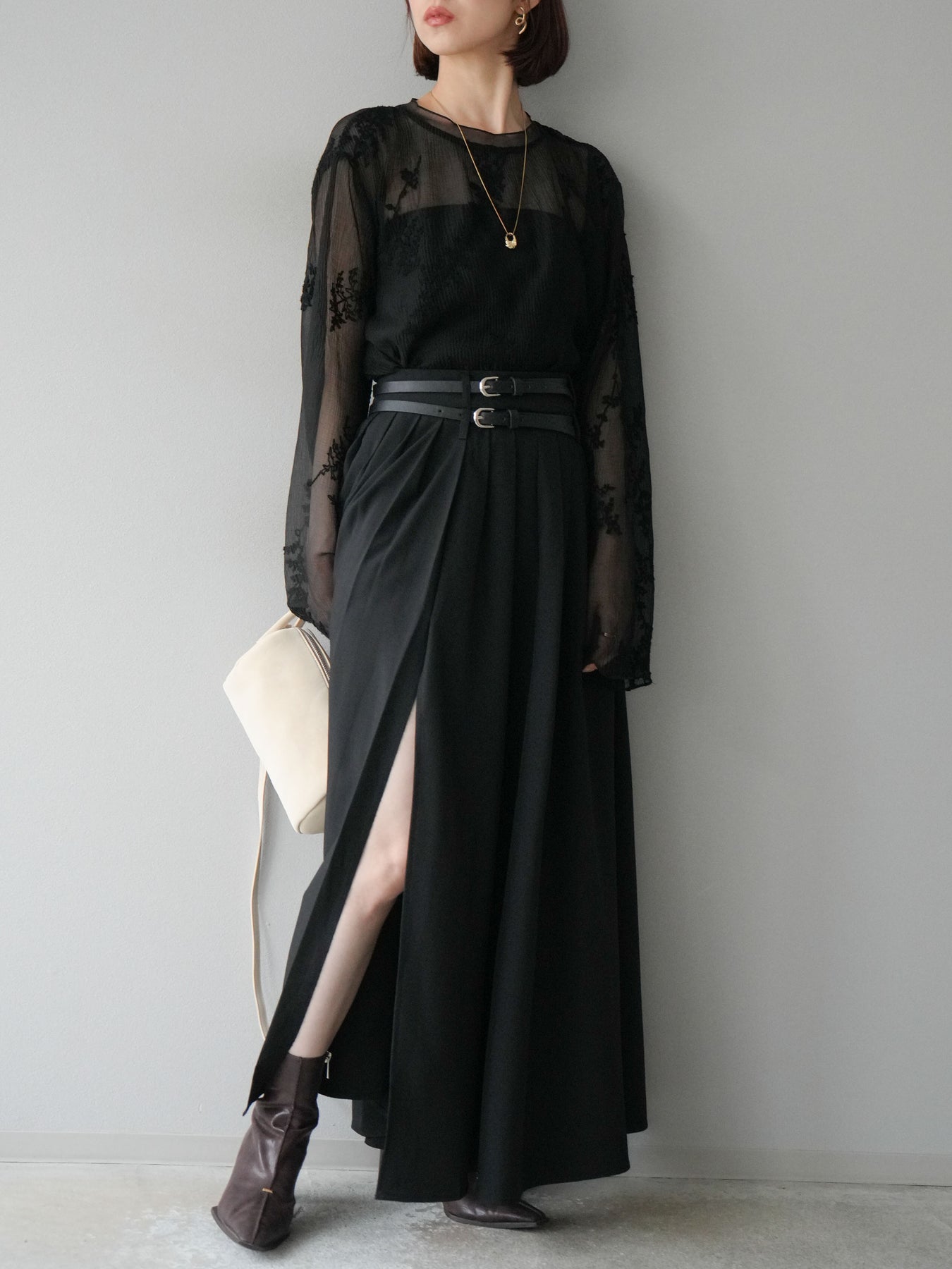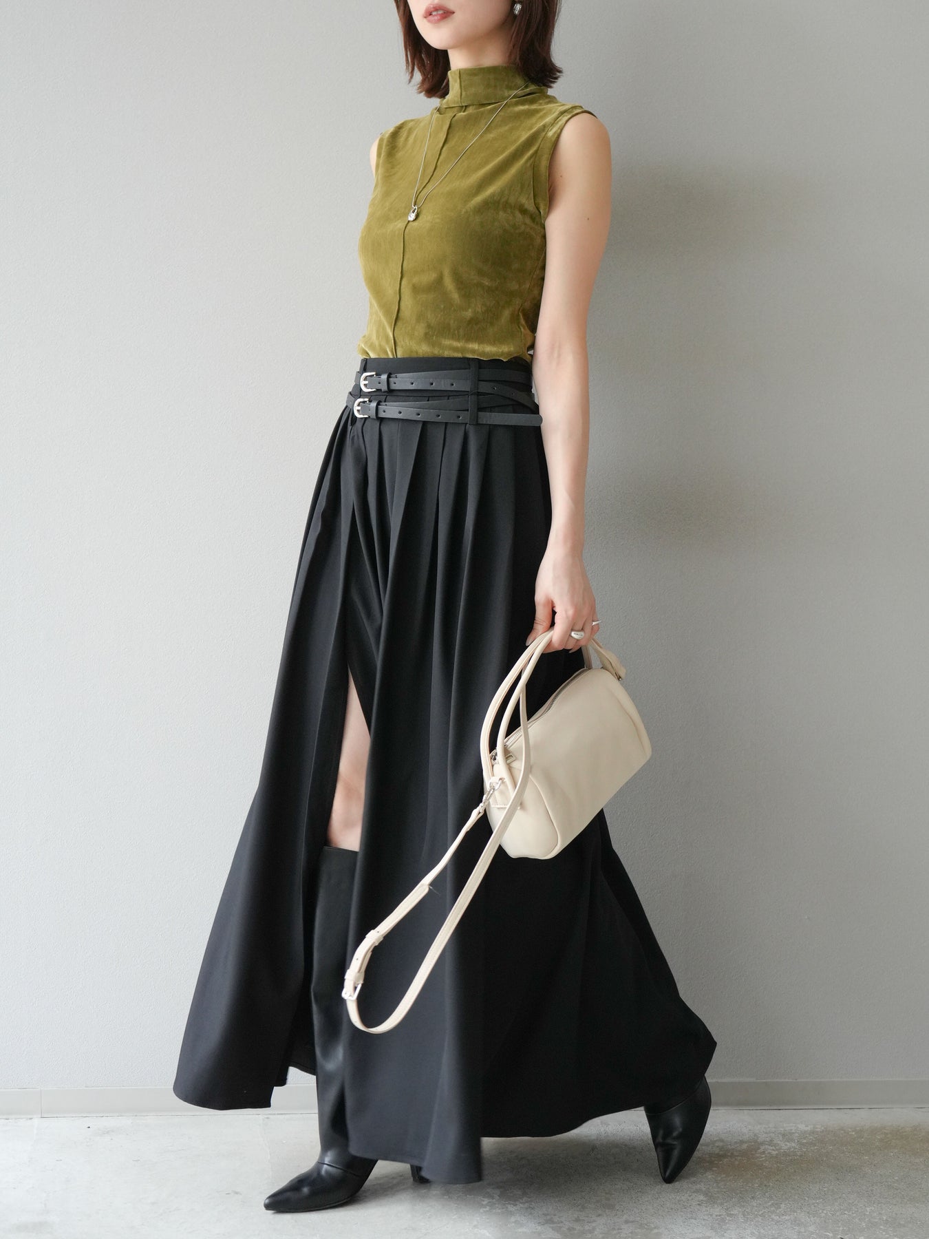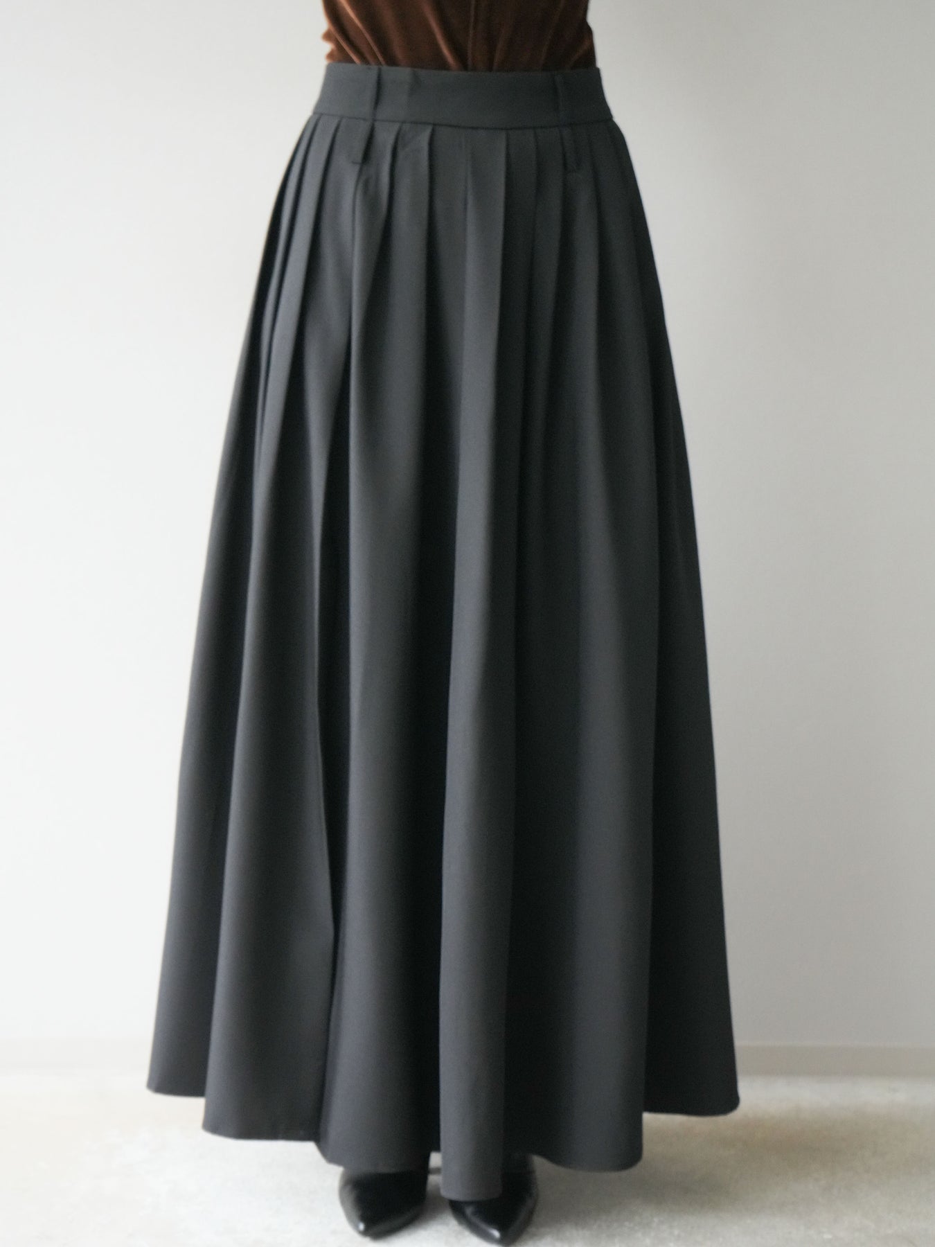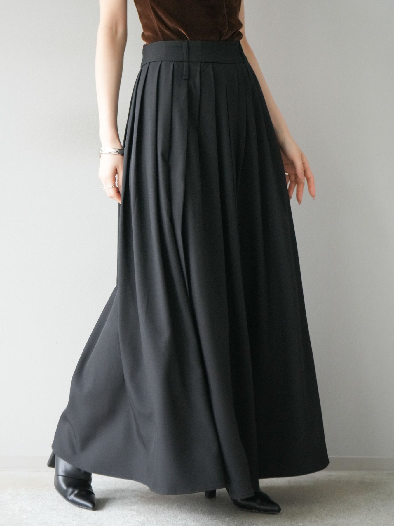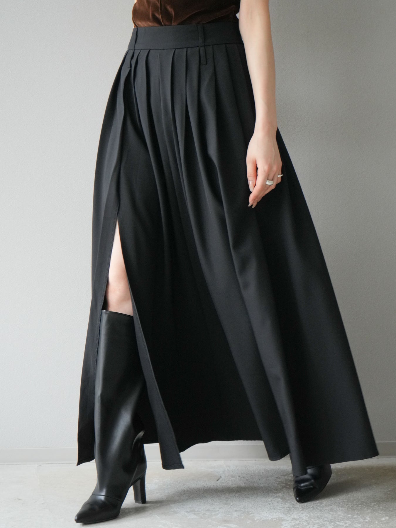 [予約]エステルプリーツスリットスカート/ブラック