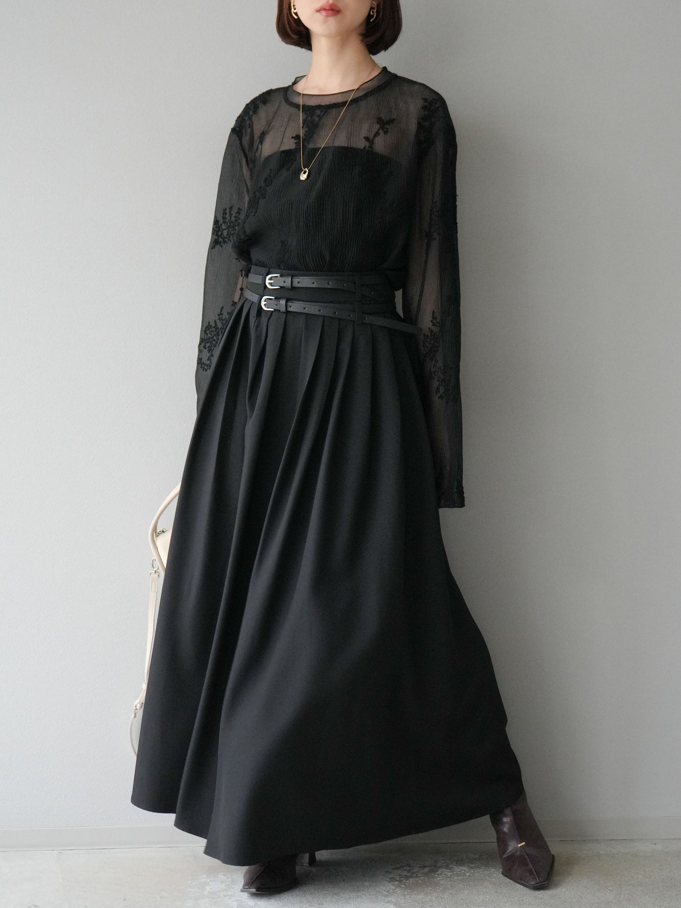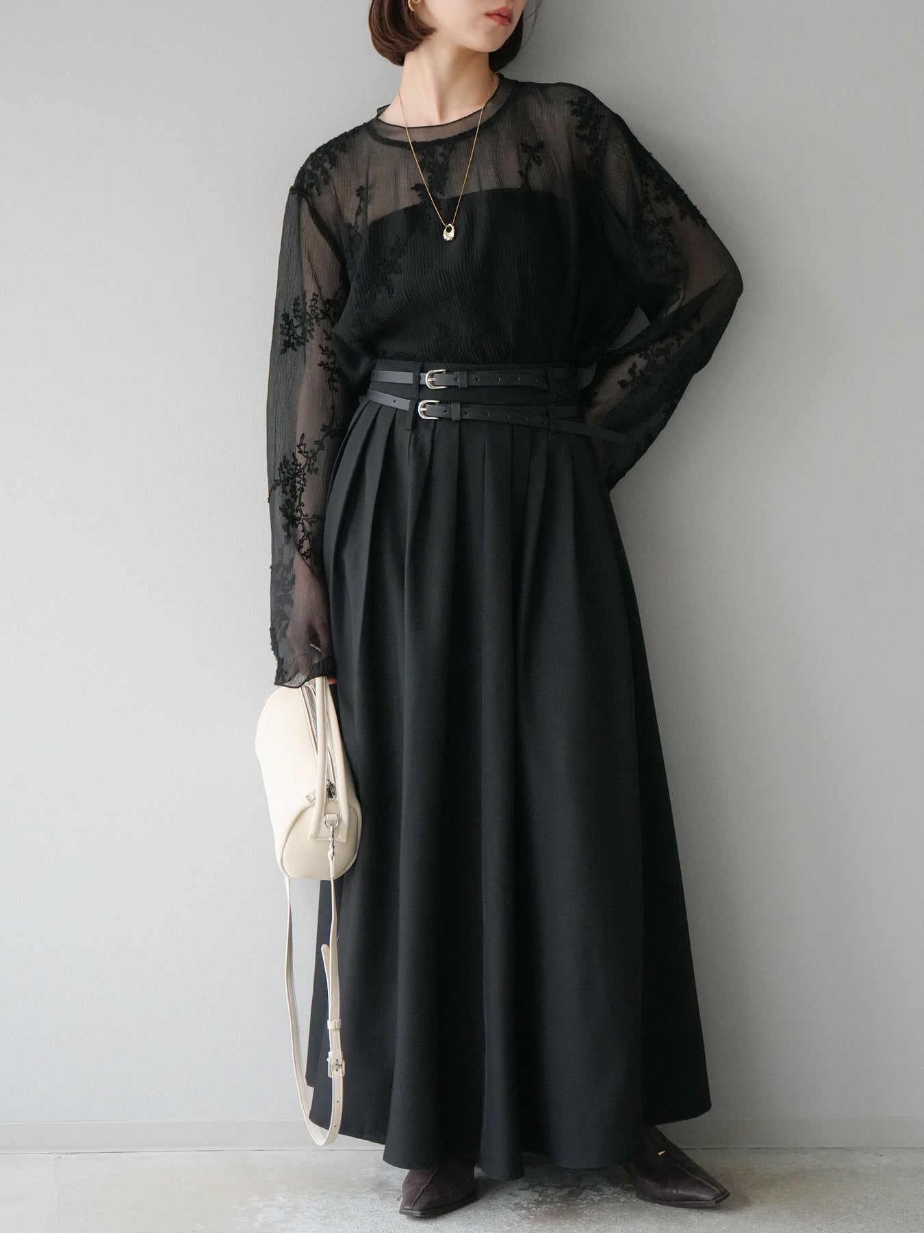 【S】ウエスト62cm(ウエストジップあり) ヒップ170cm 着丈95cm 透け感なし 伸縮性なし 裏地なし ポケットなし ※ベルトは付属しません 【M】ウエスト68cm(ウエストジップあり) ヒップ174cm 着丈96cm 透け感なし 伸縮性なし 裏地なし ポケットなし ※ベルトは付属しません 【L】ウエスト72cm(ウエストジップあり) ヒップ178cm 着丈97cm 透け感なし 伸縮性なし 裏地なし ポケットなし ※ベルトは付属しません
