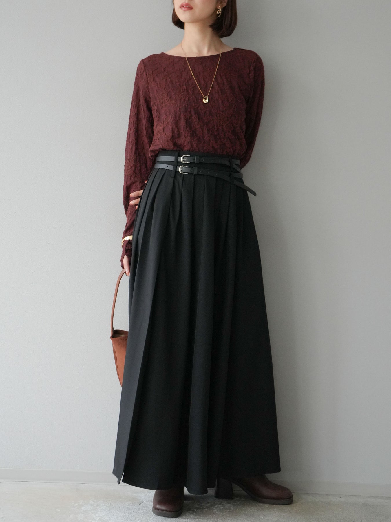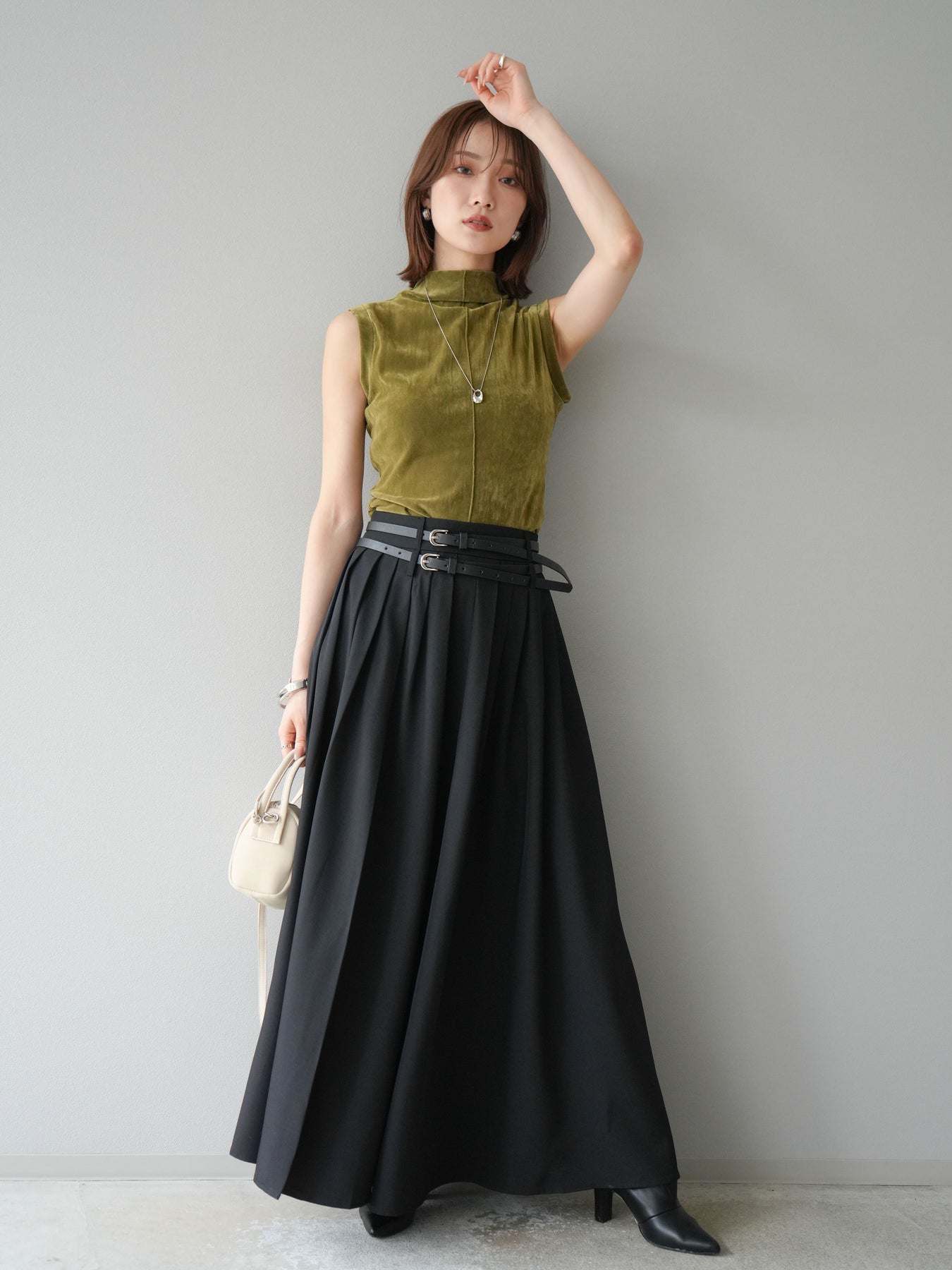 [予約]エステルプリーツスリットスカートに関連する商品を探す↓