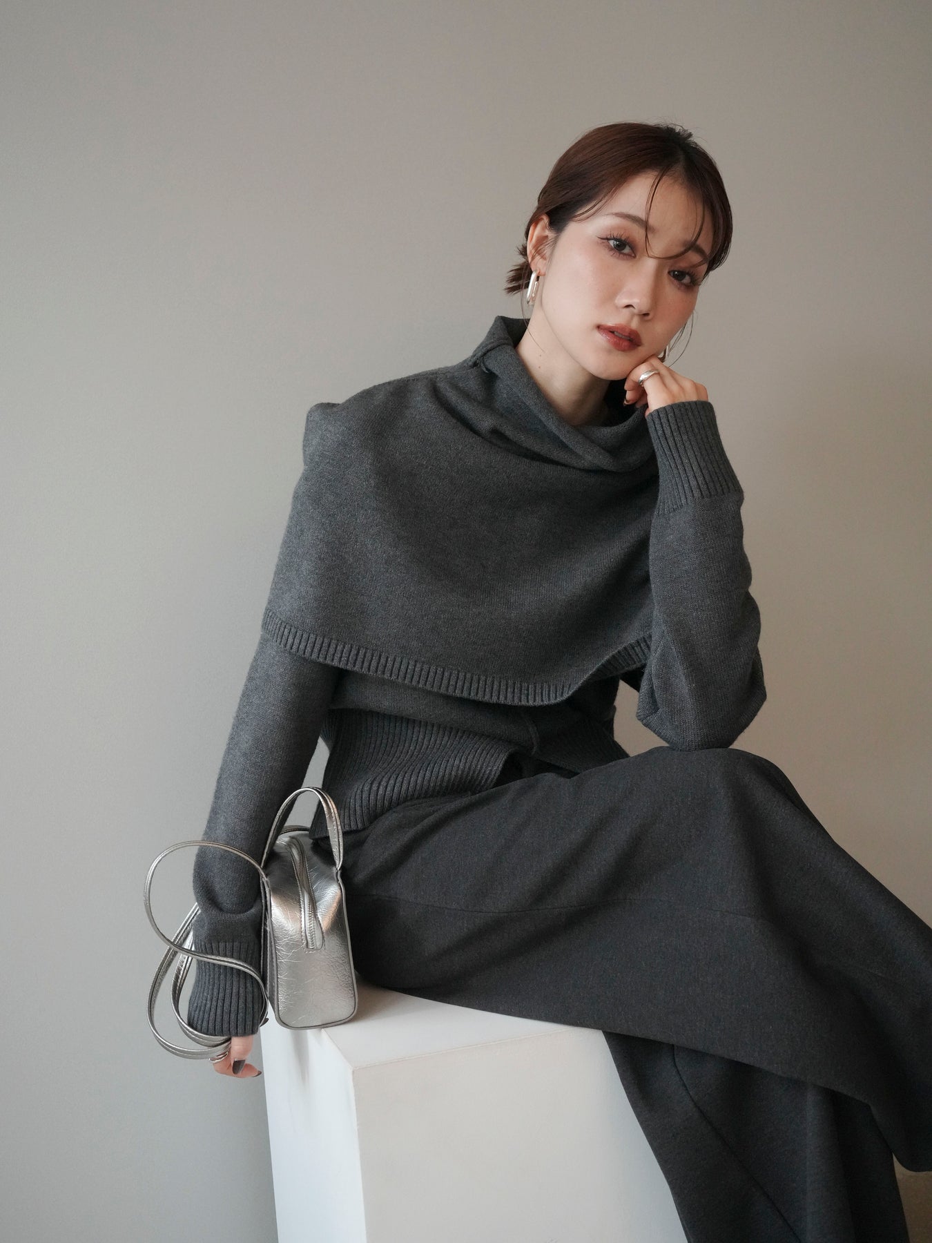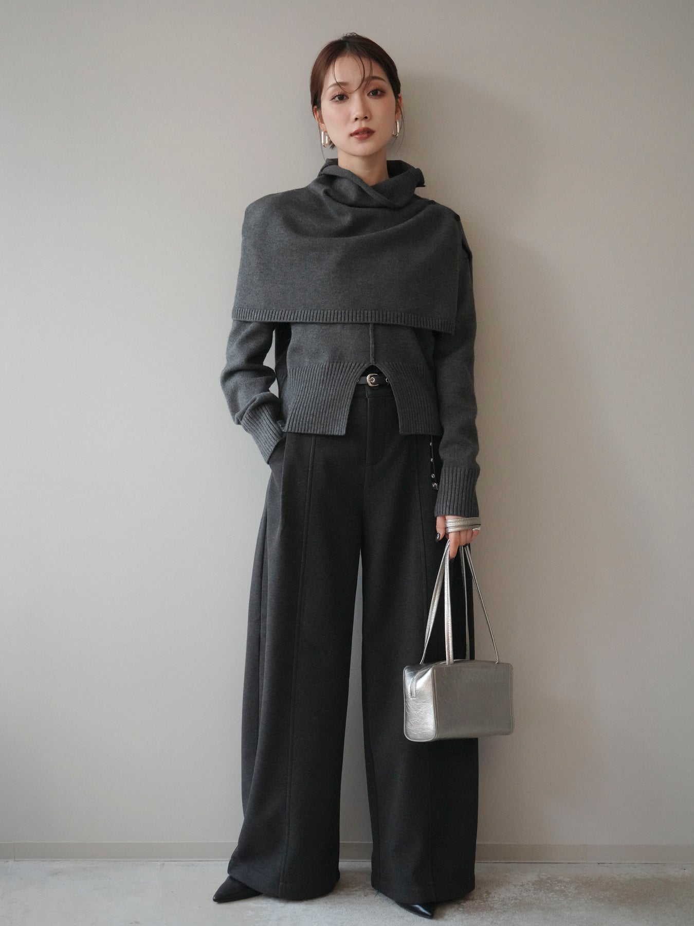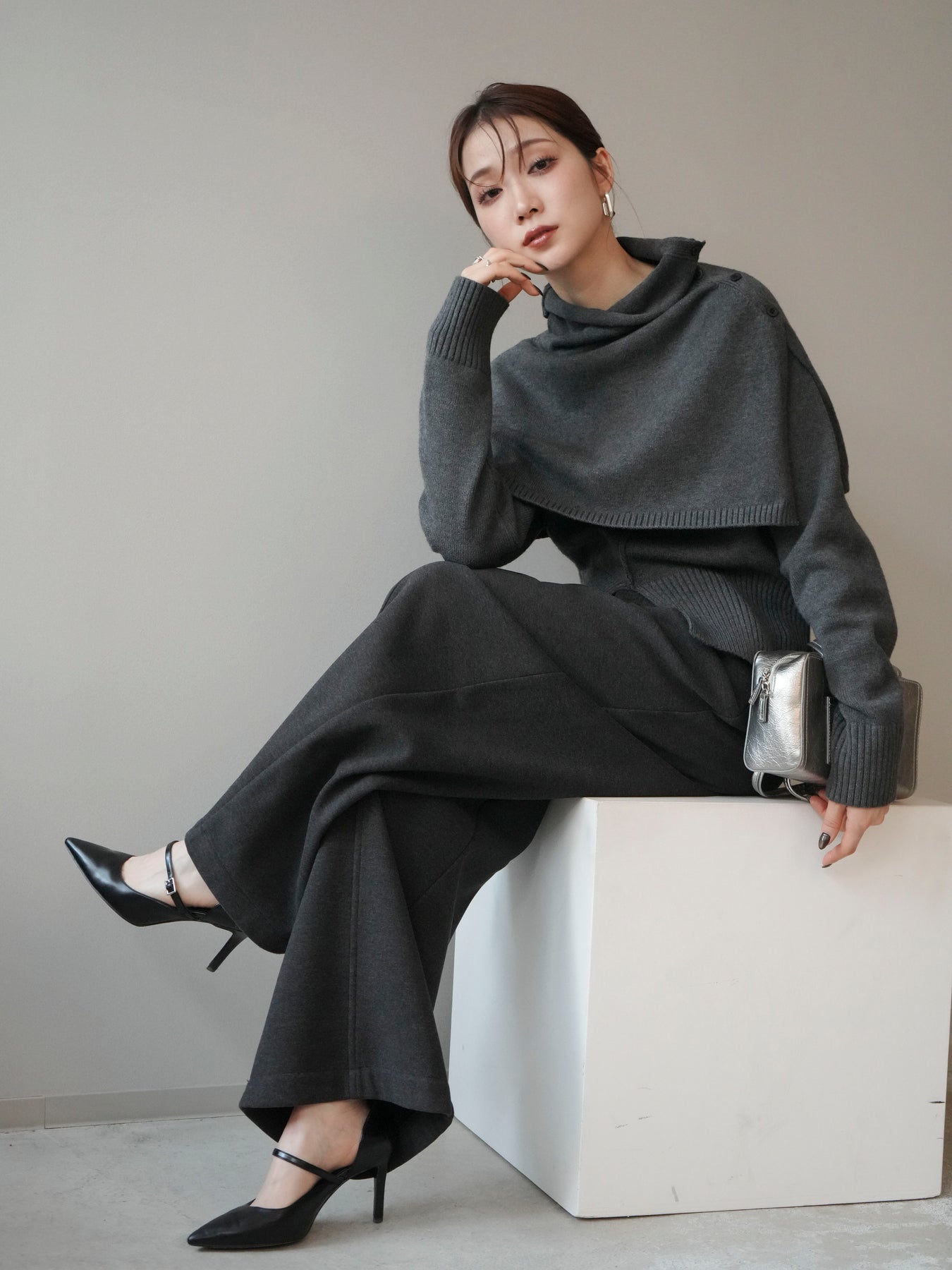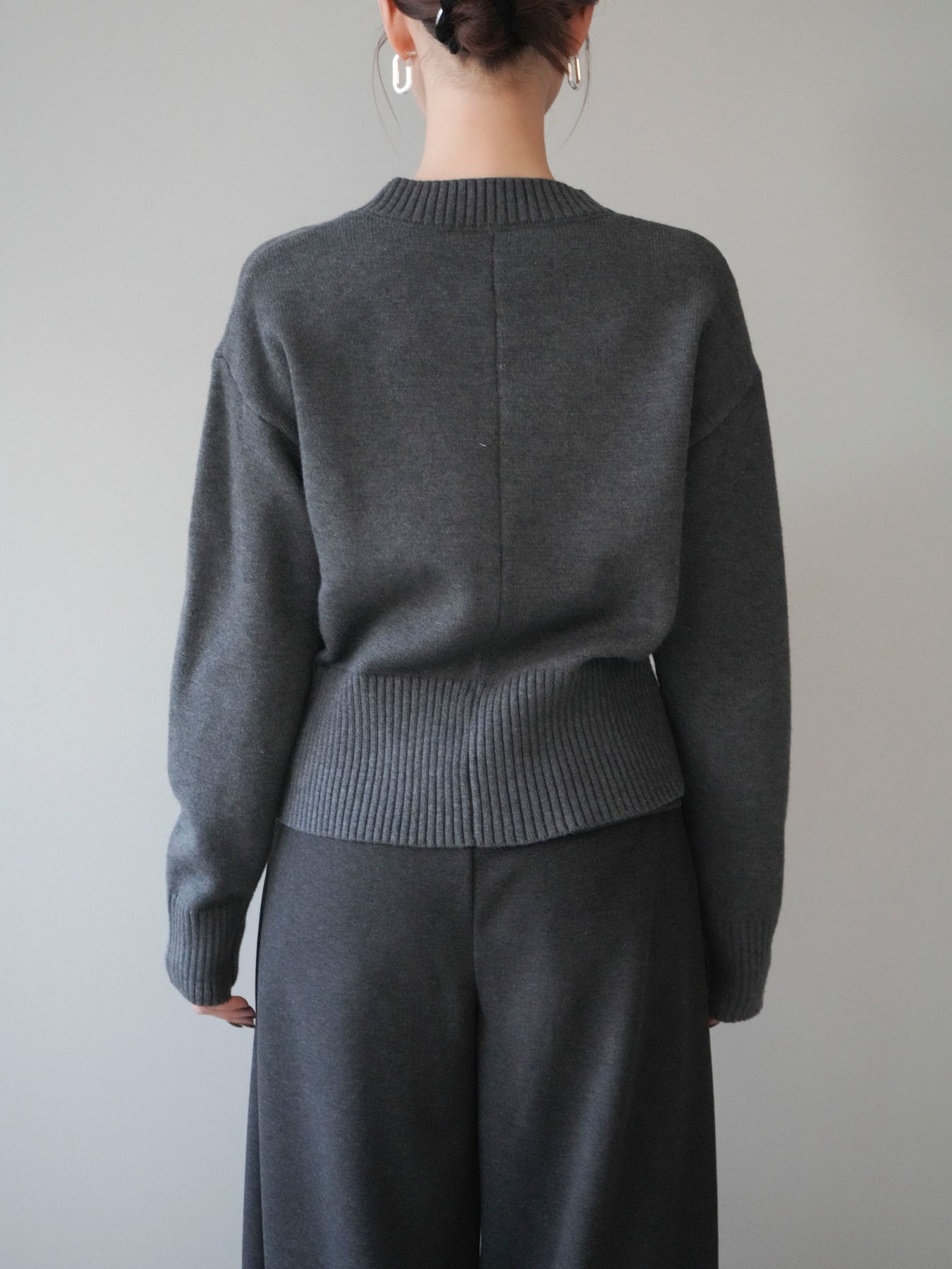 [予約]フロントスリットネックアンサンブルニット/charcoal