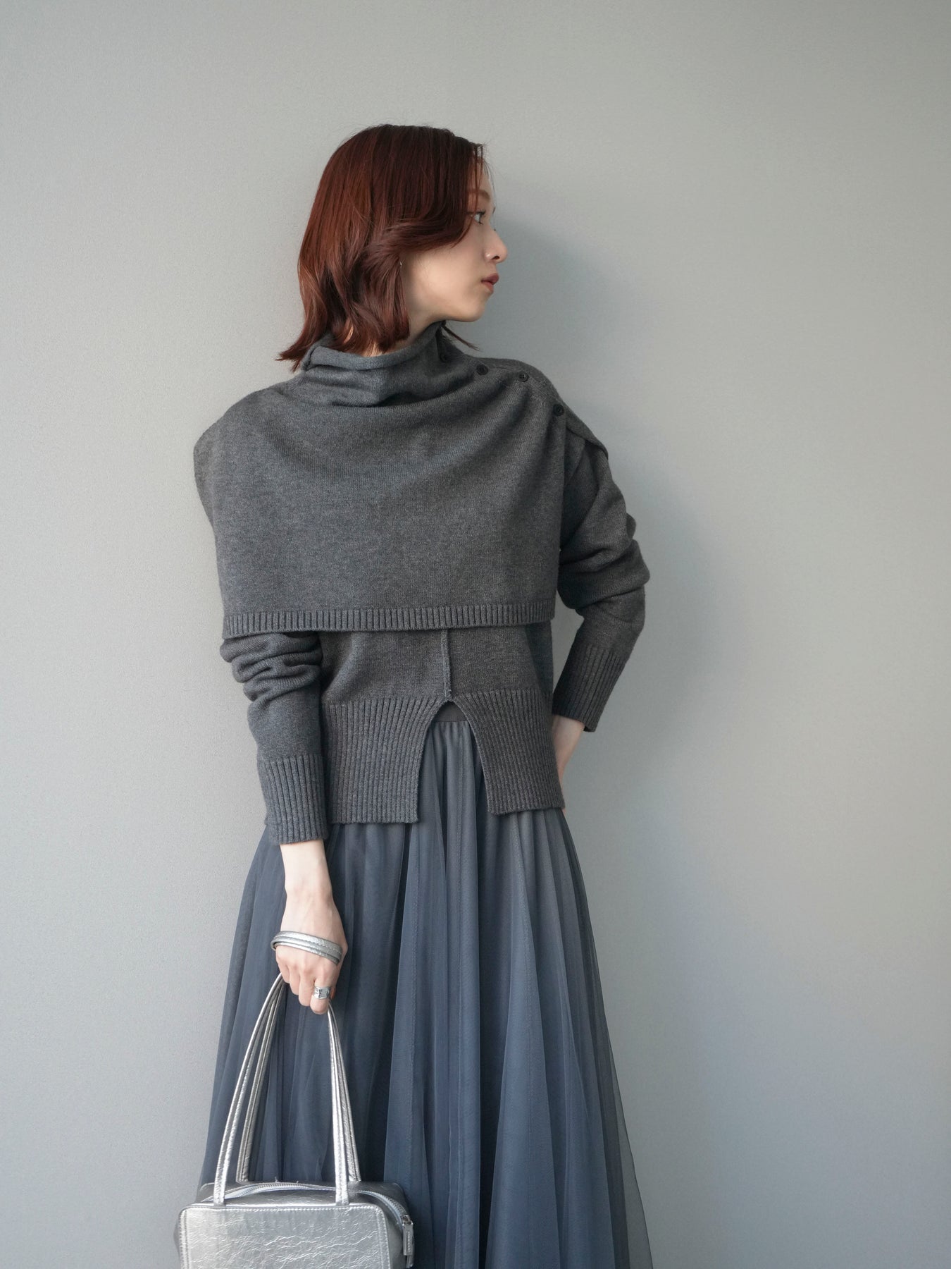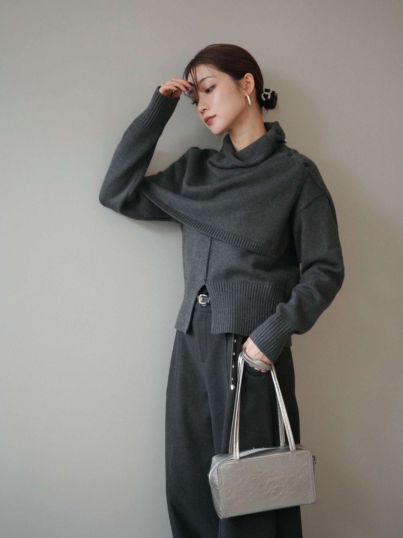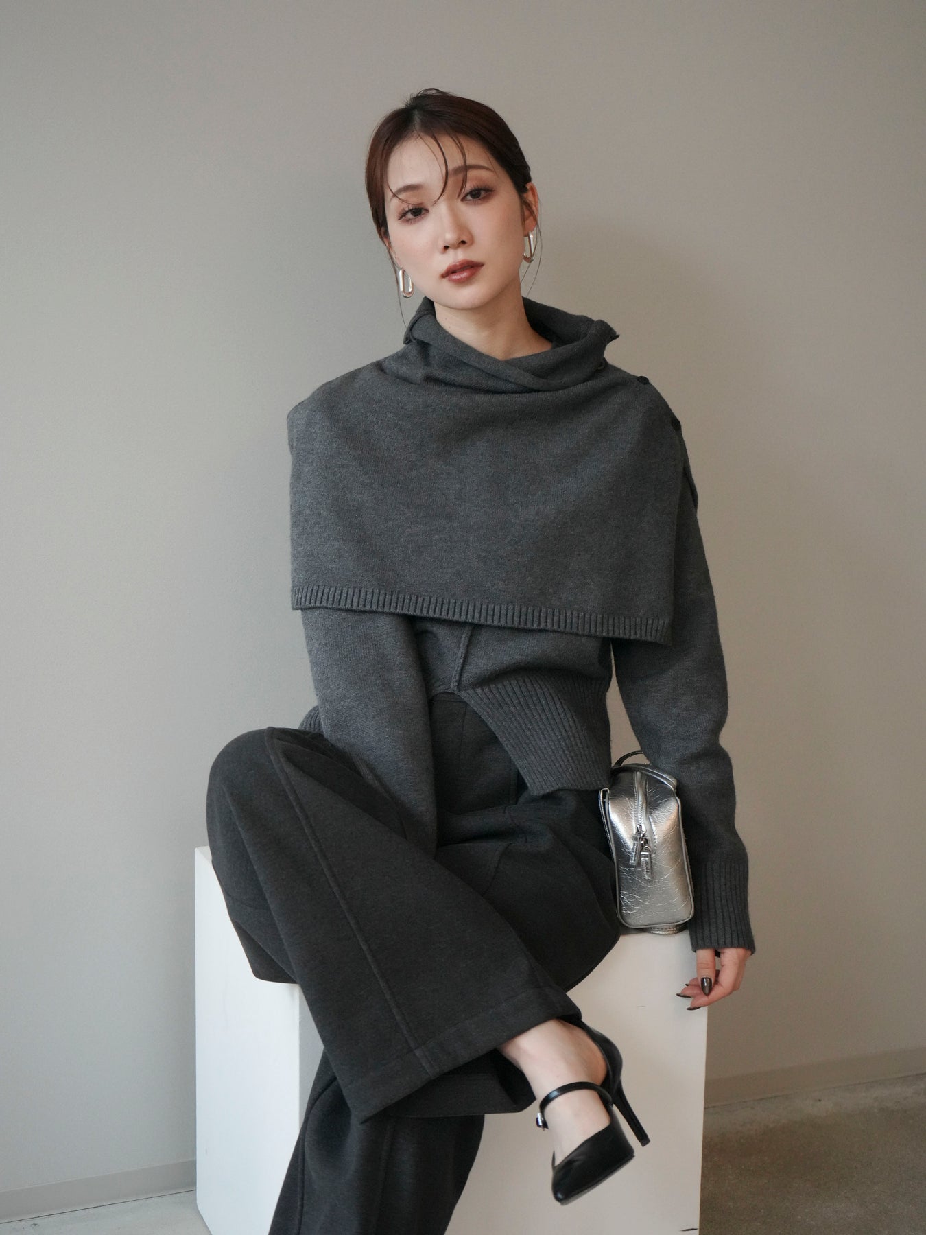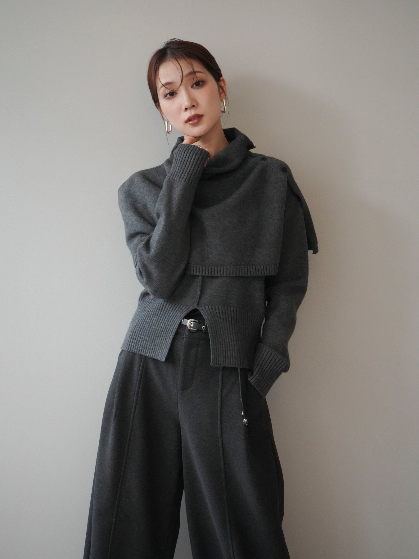 [予約]フロントスリットネックアンサンブルニット/charcoal