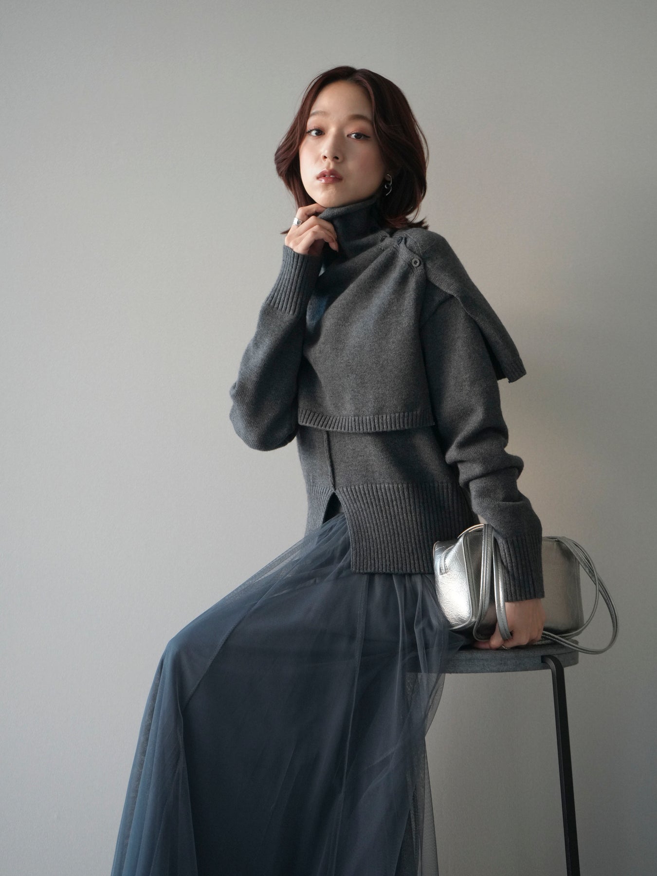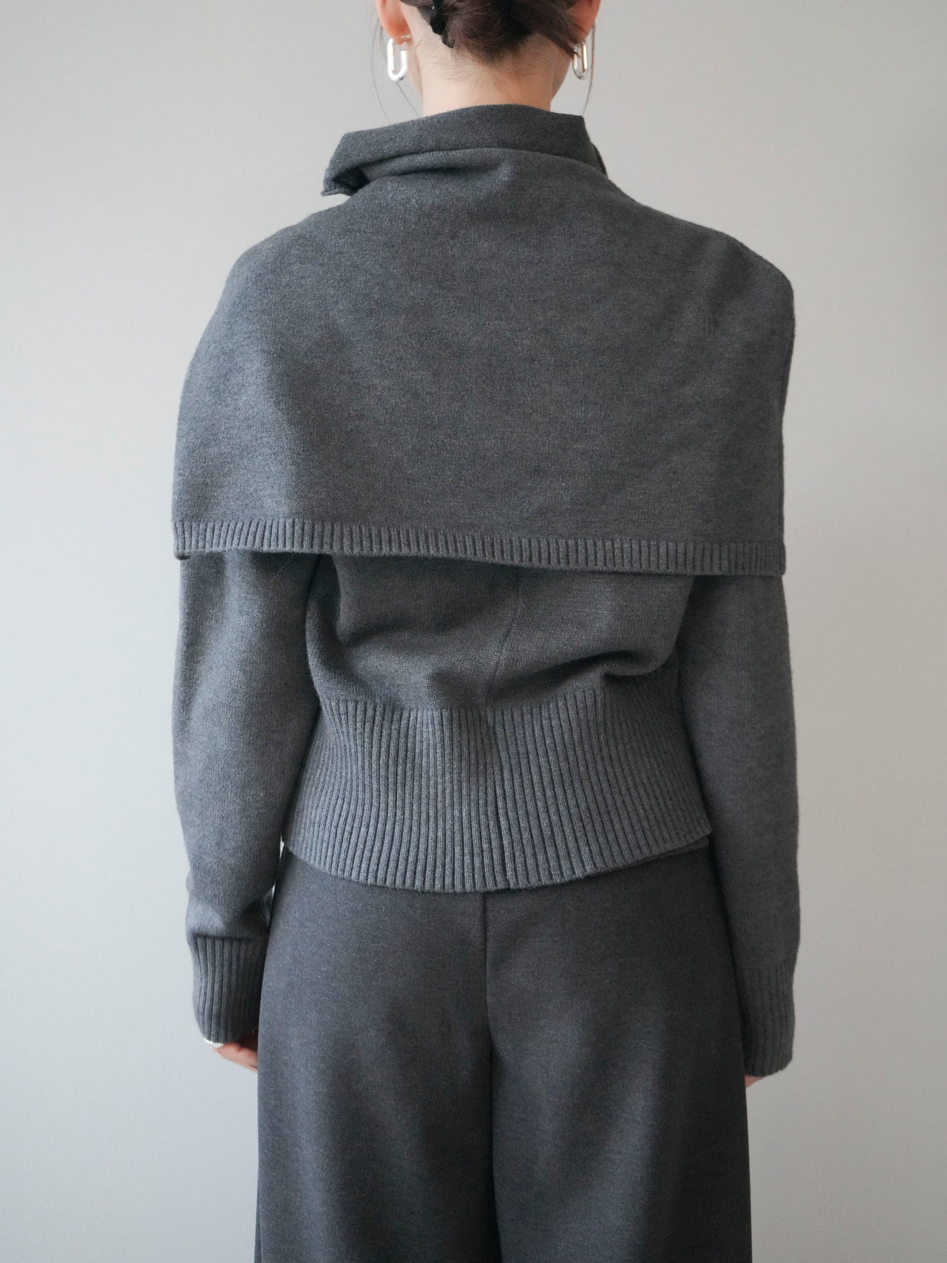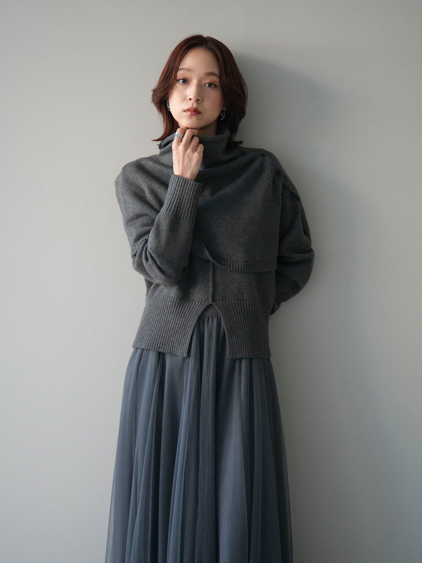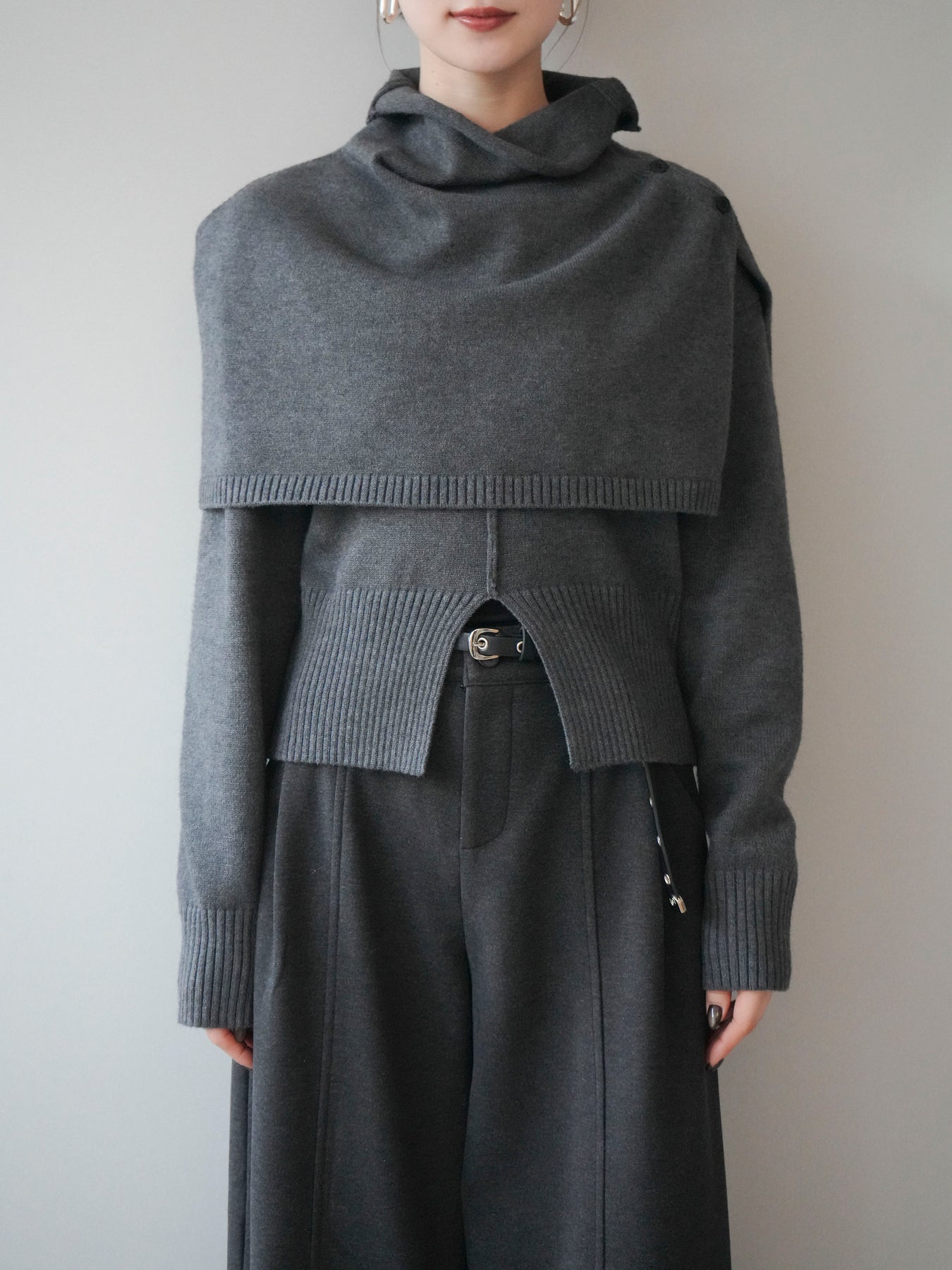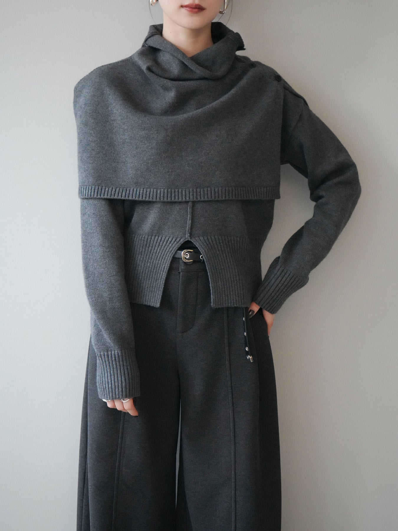 [予約]フロントスリットネックアンサンブルニット/charcoal