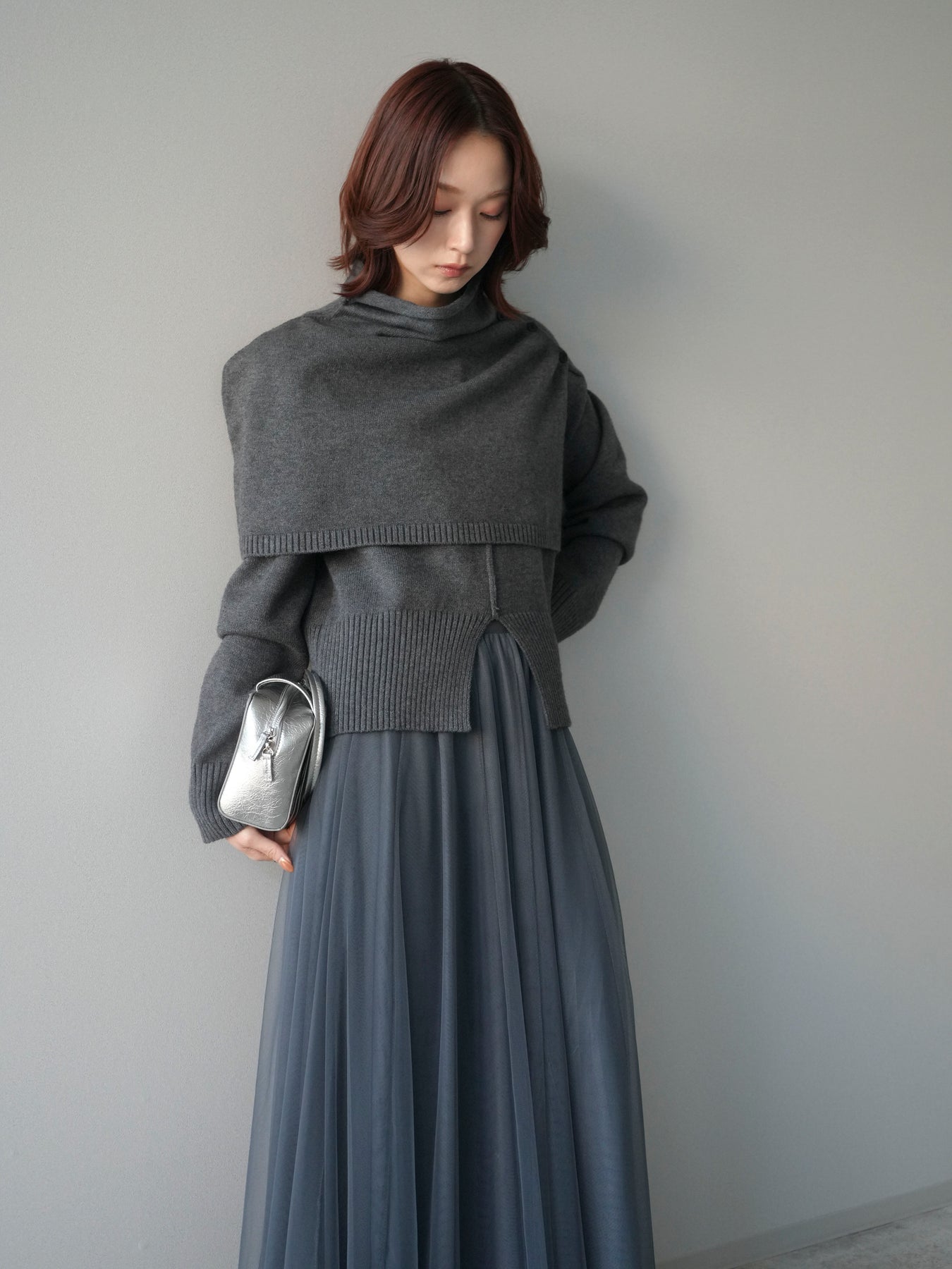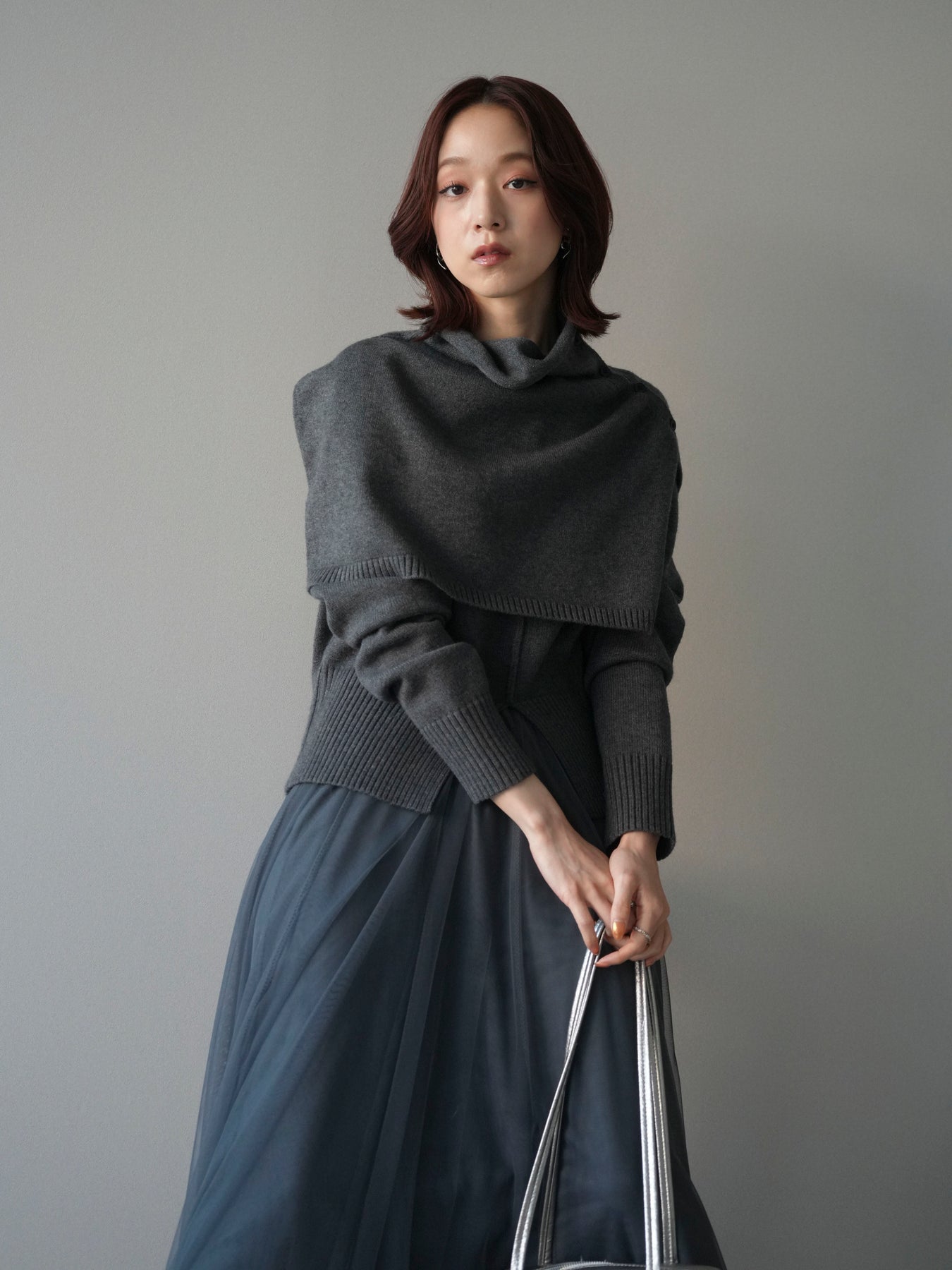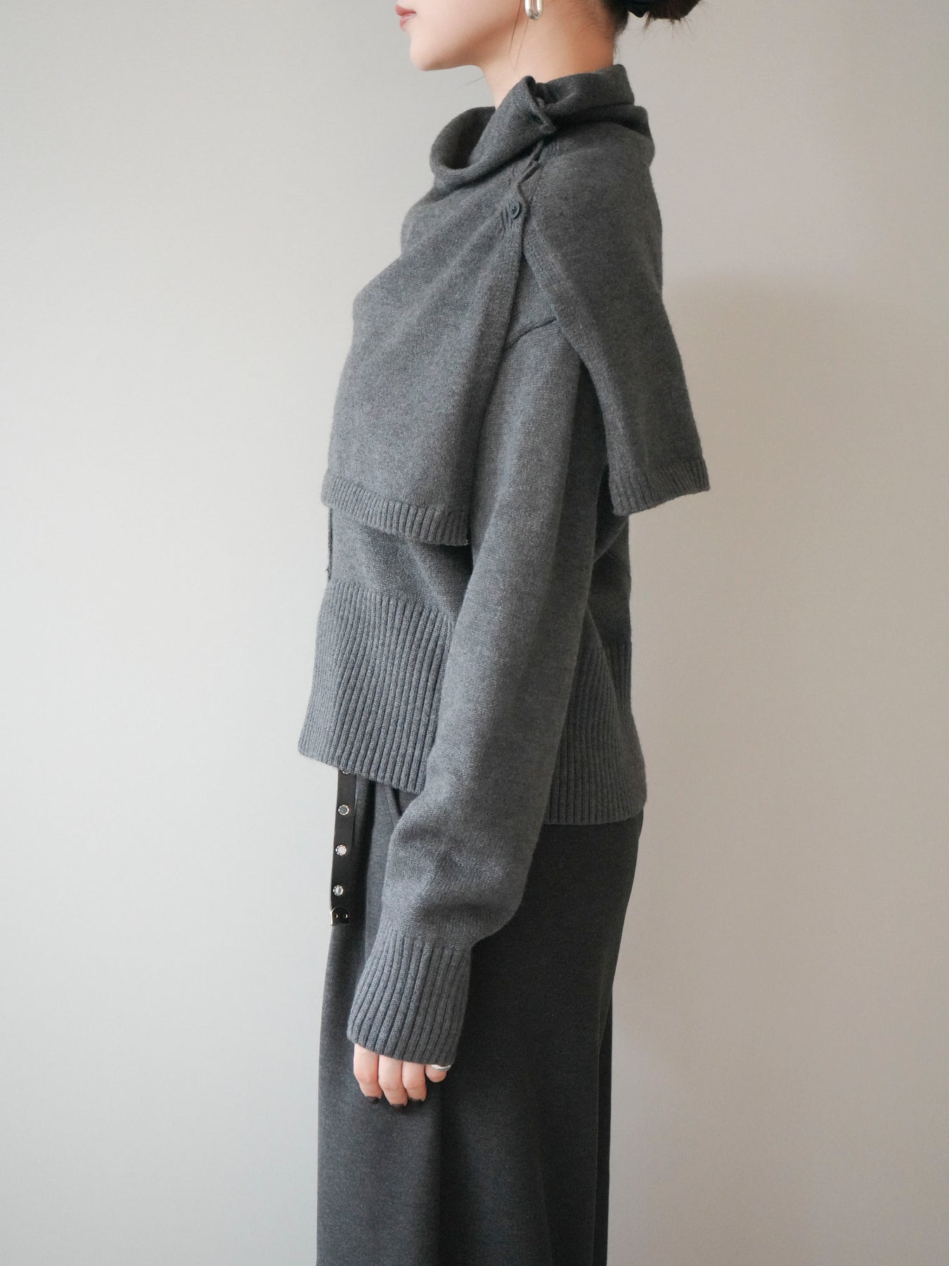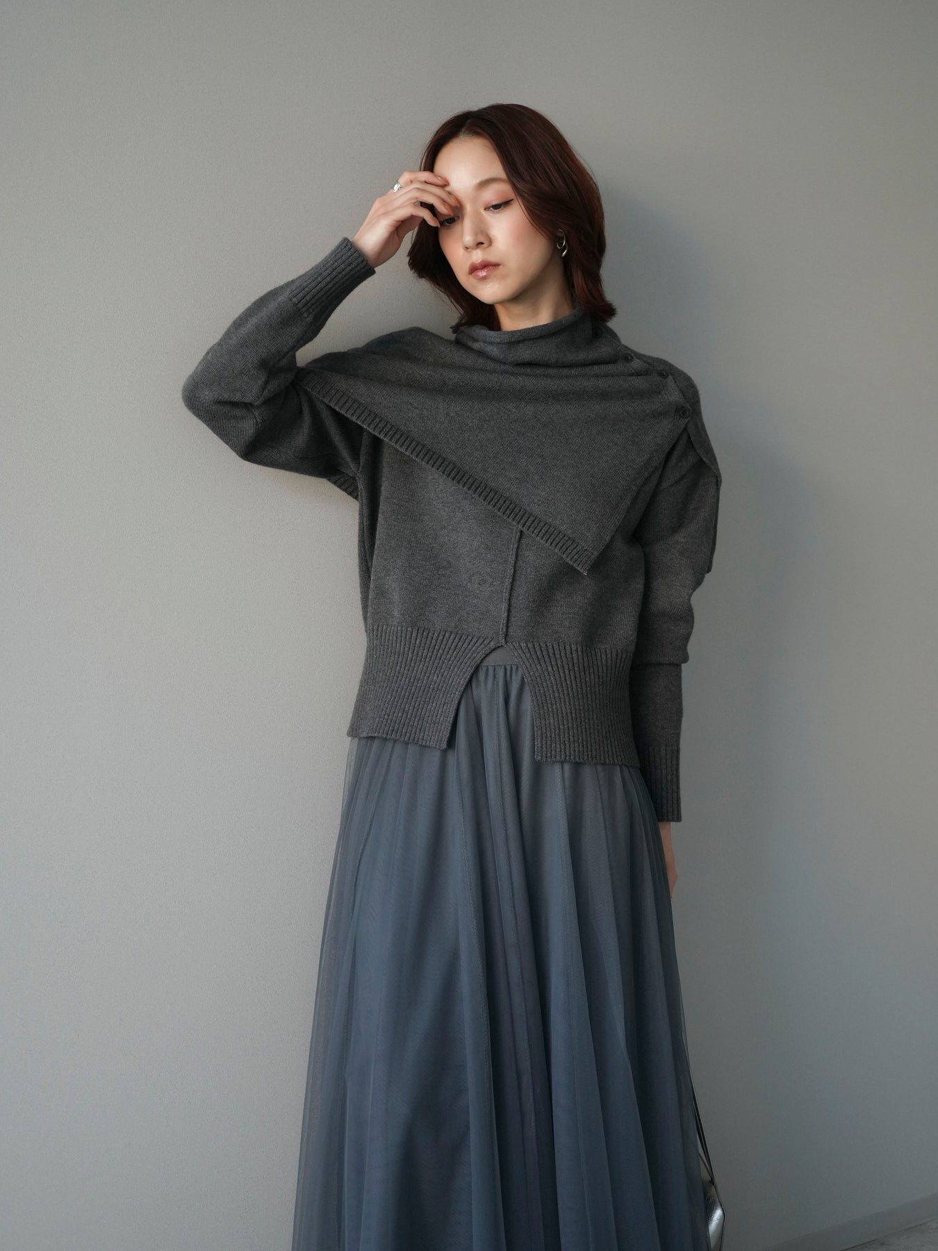 [予約]フロントスリットネックアンサンブルニット/charcoal