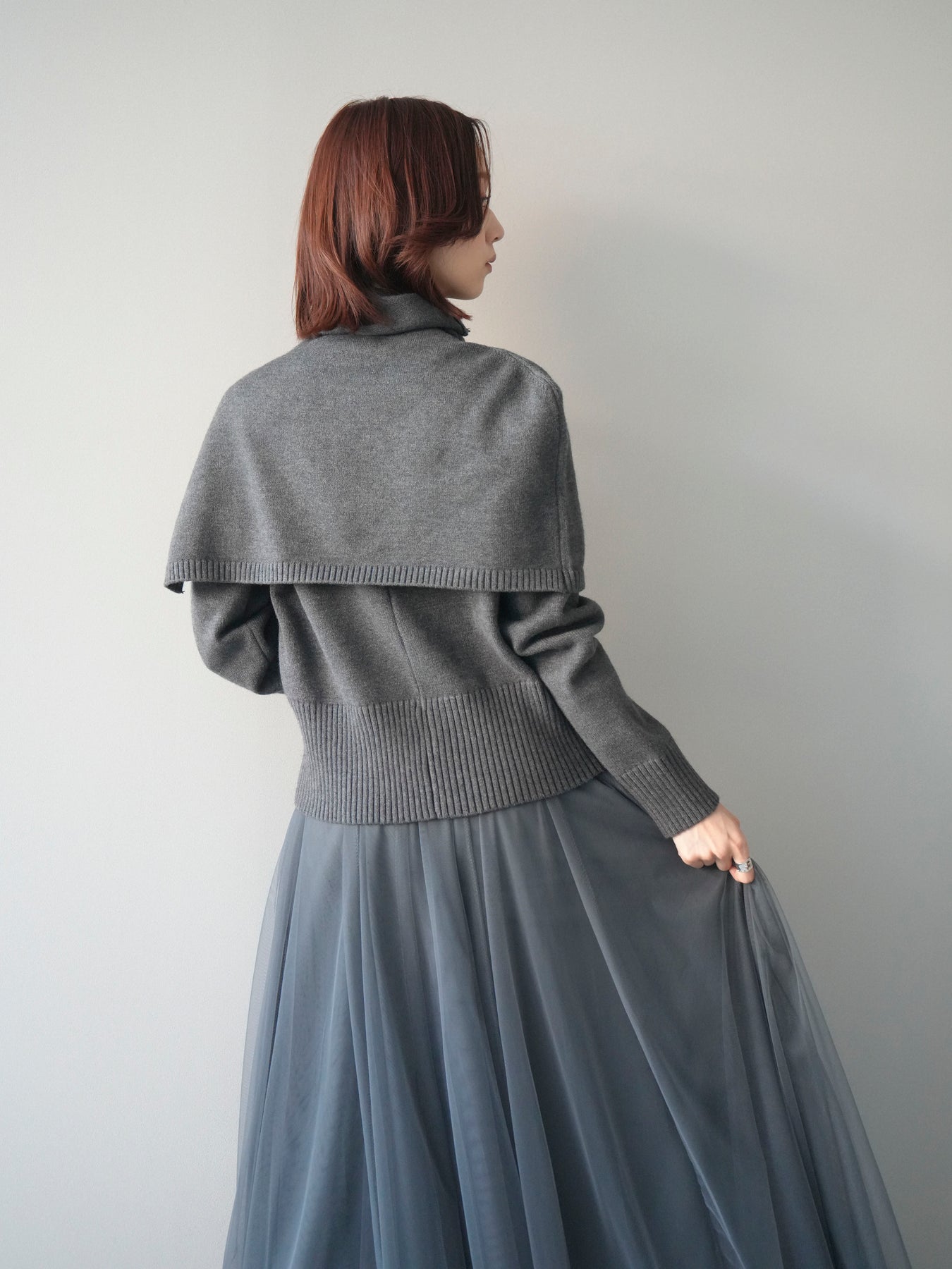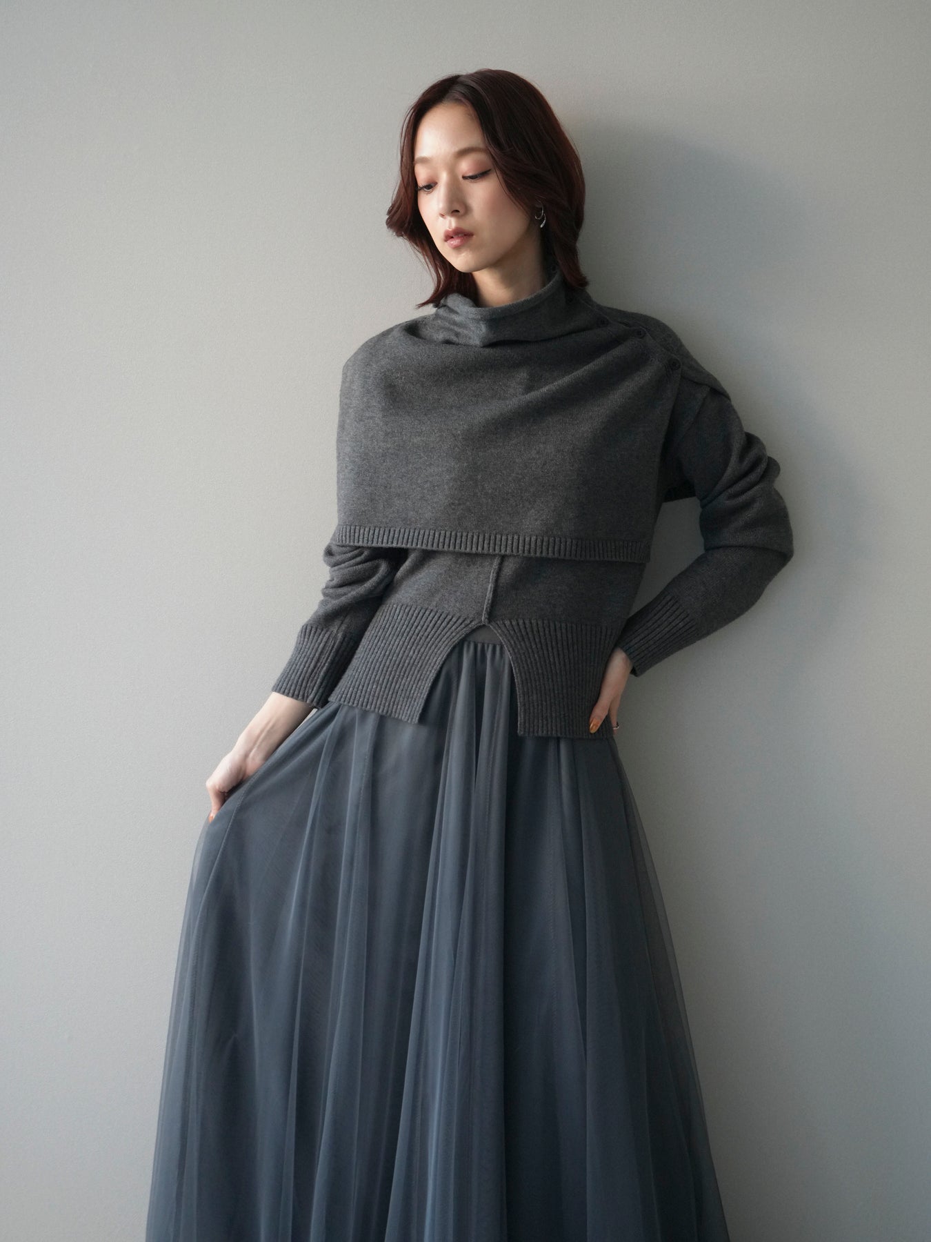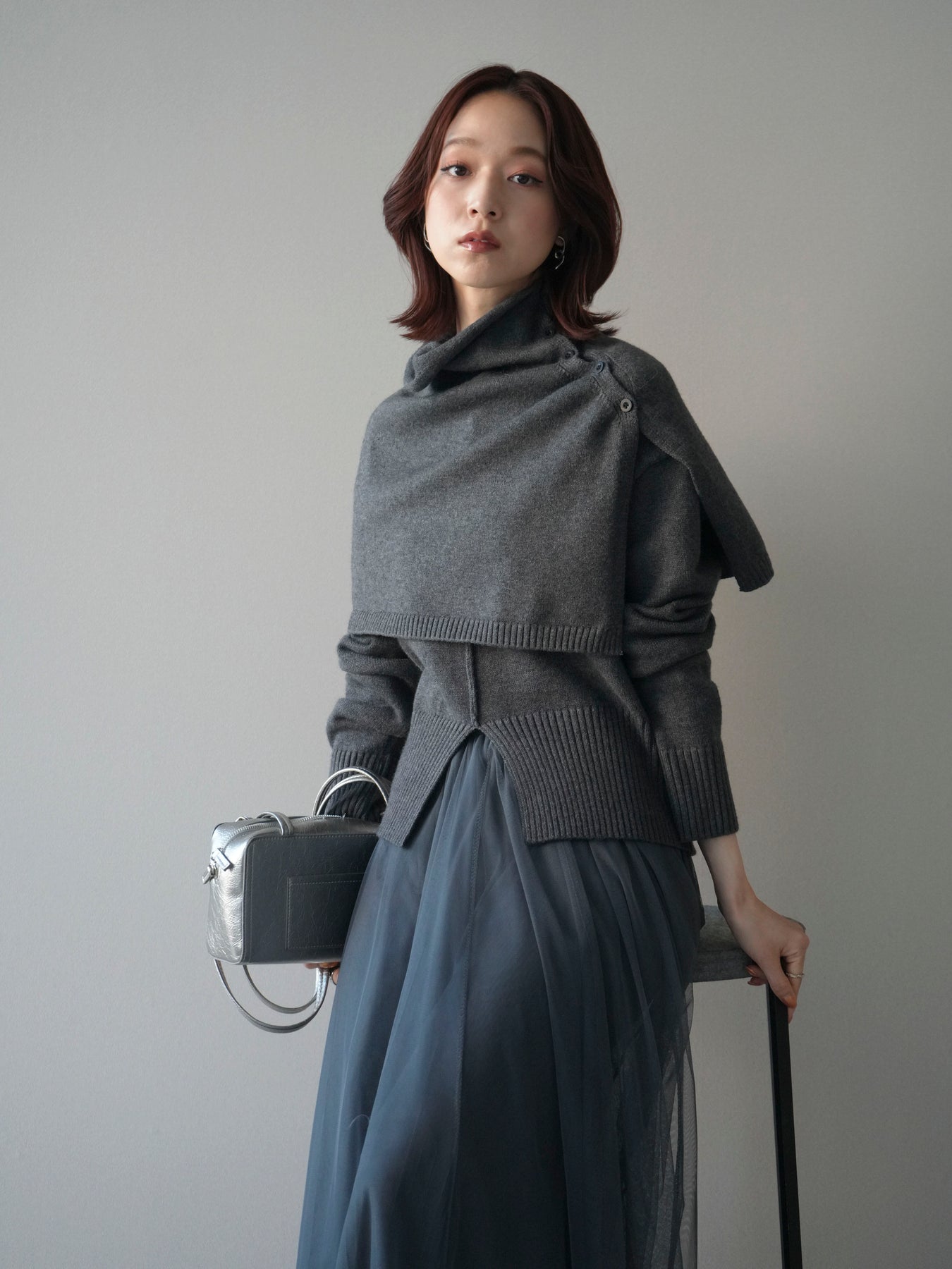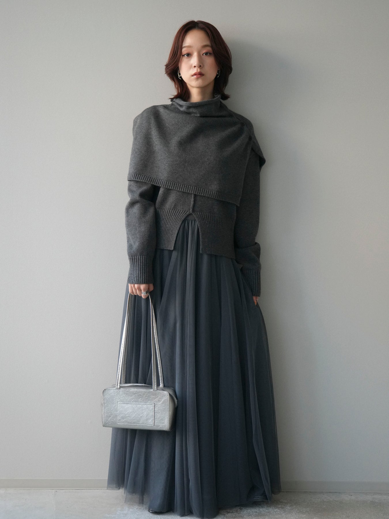 [予約]フロントスリットネックアンサンブルニット/charcoal
