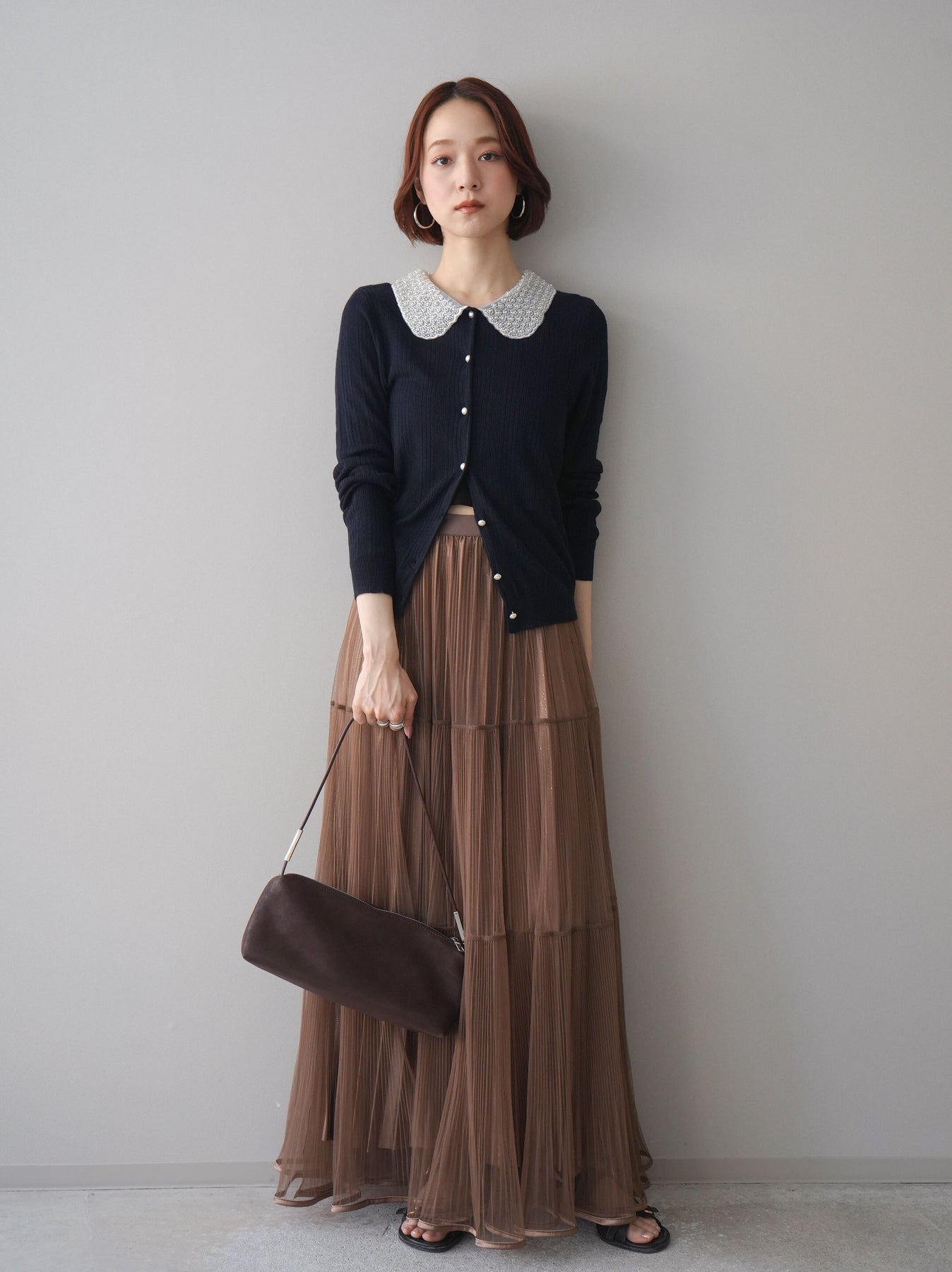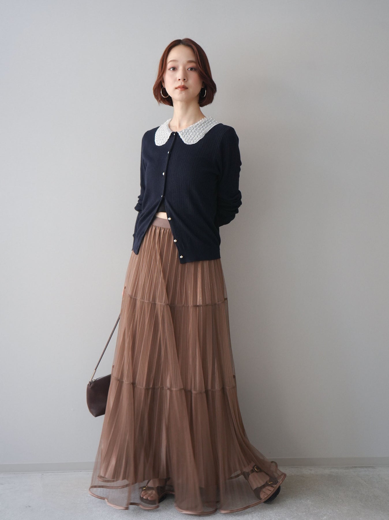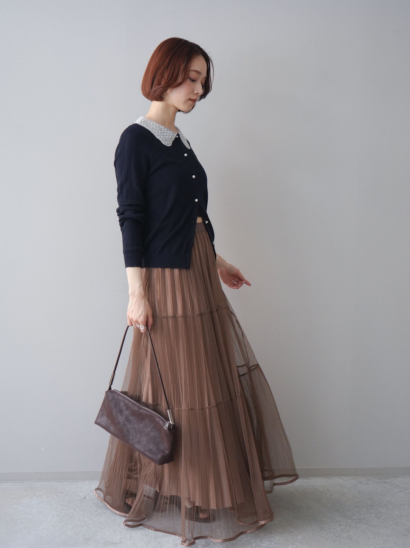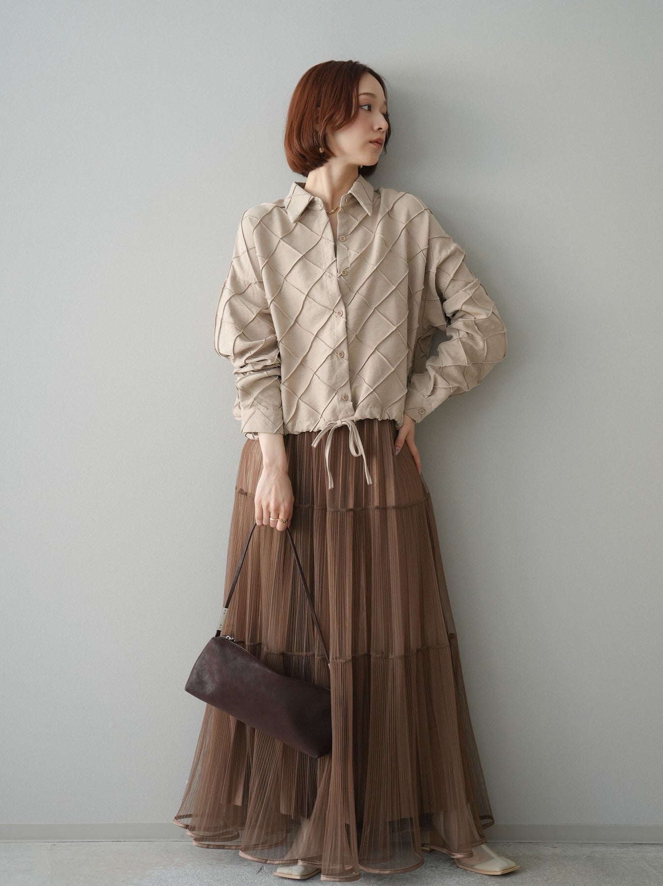 [予約]ラメプリーツレイヤードチュールロングスカート/mocha